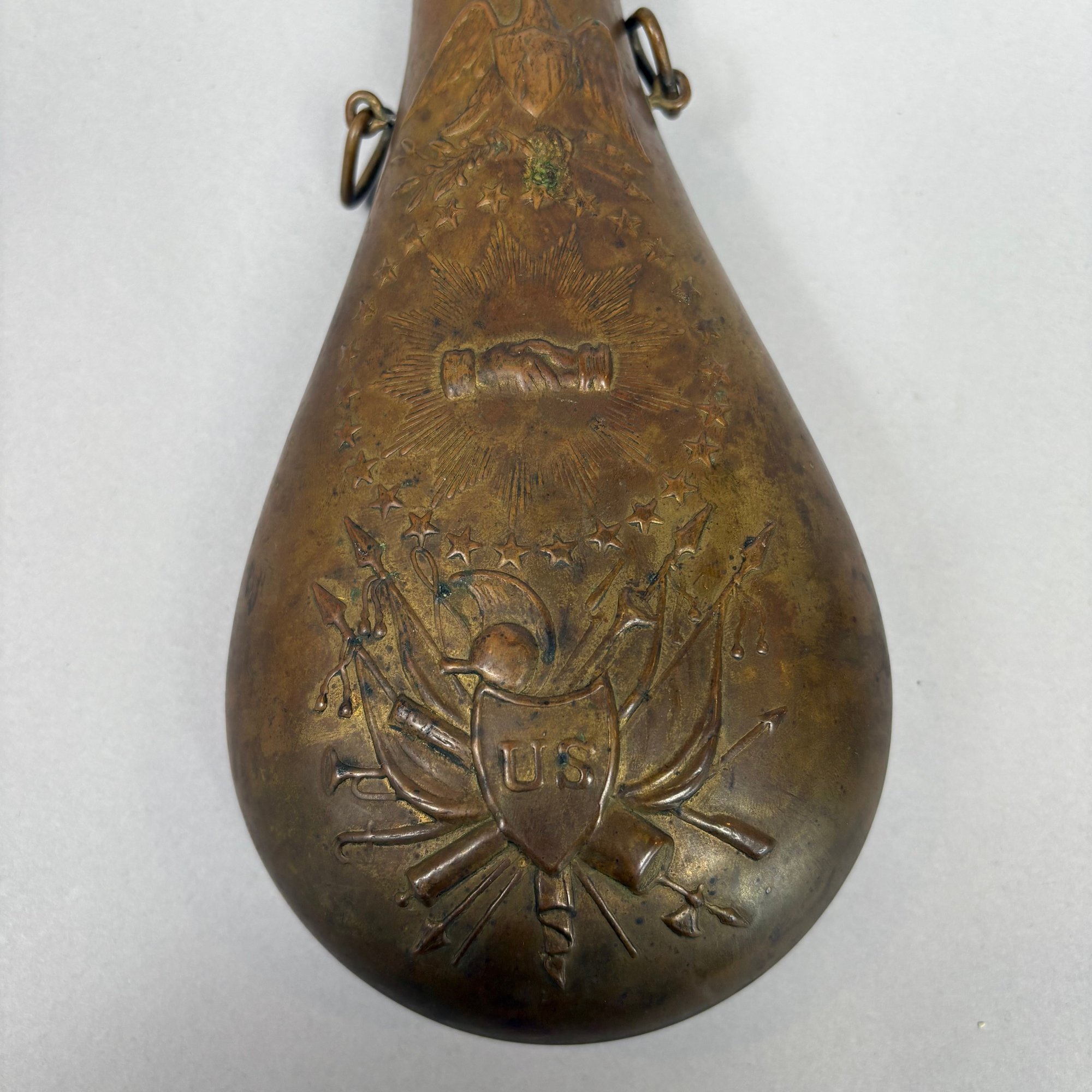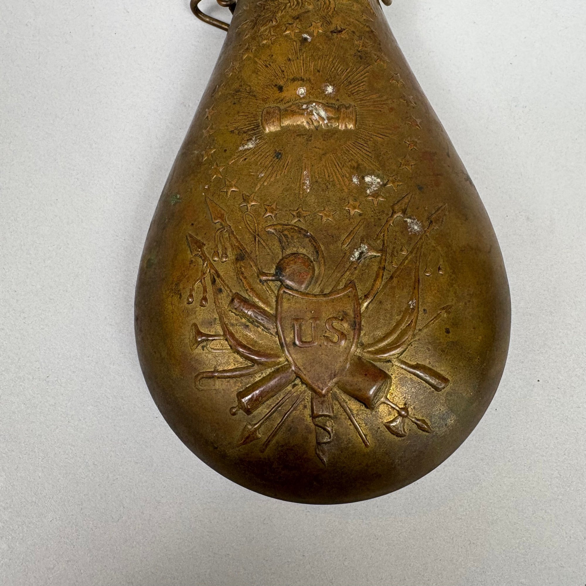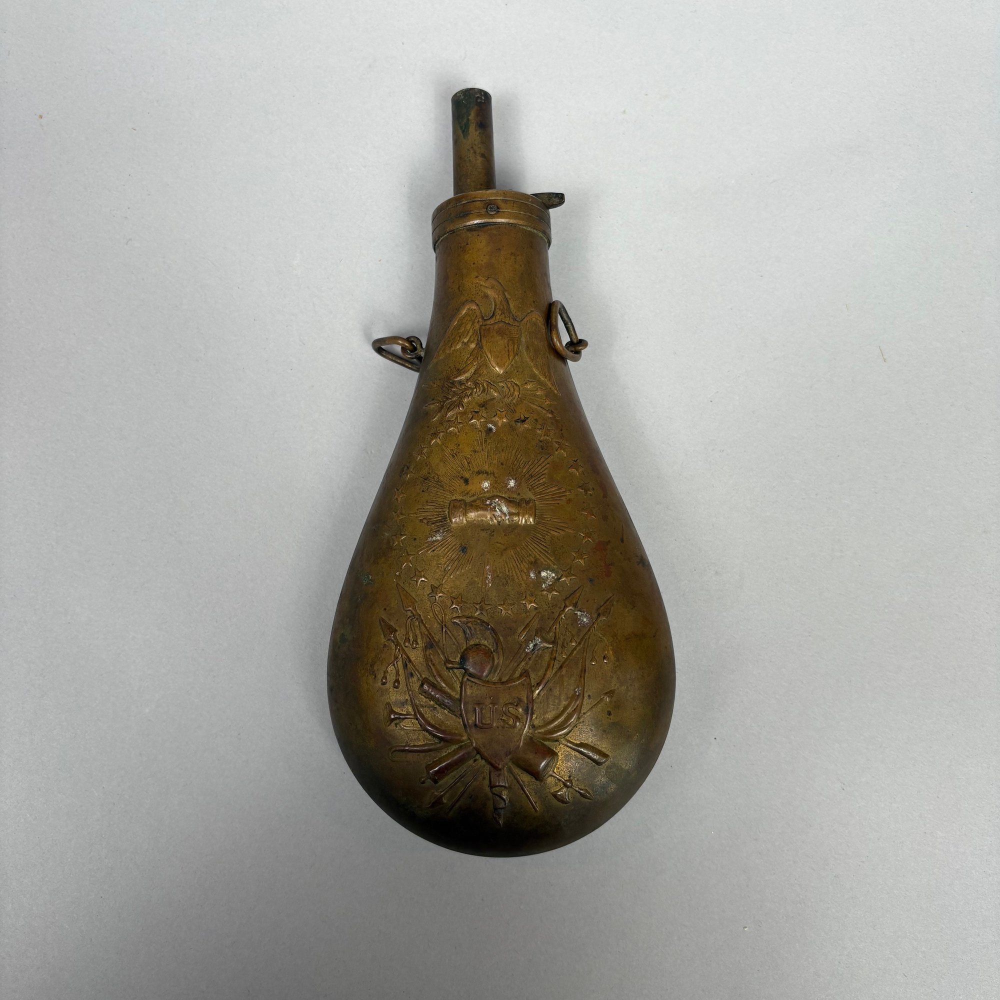 American Stamped Brass "Peace" Powder Flask.