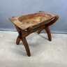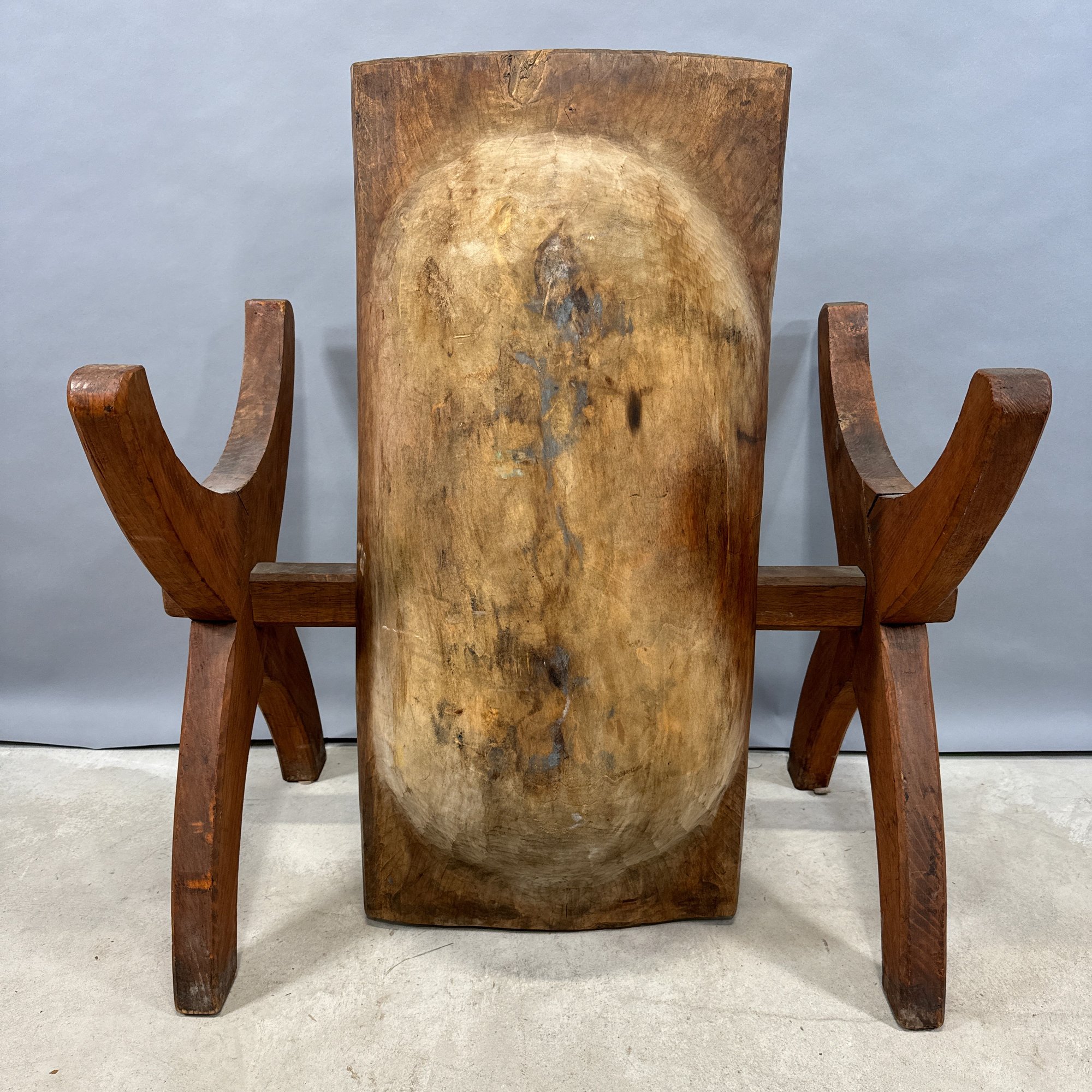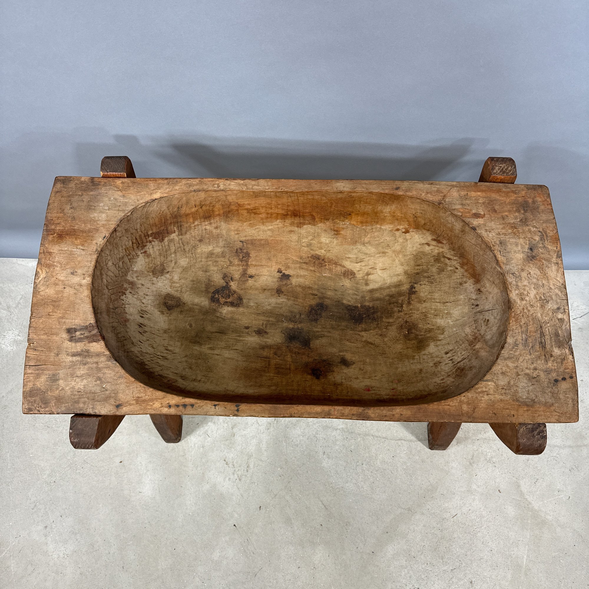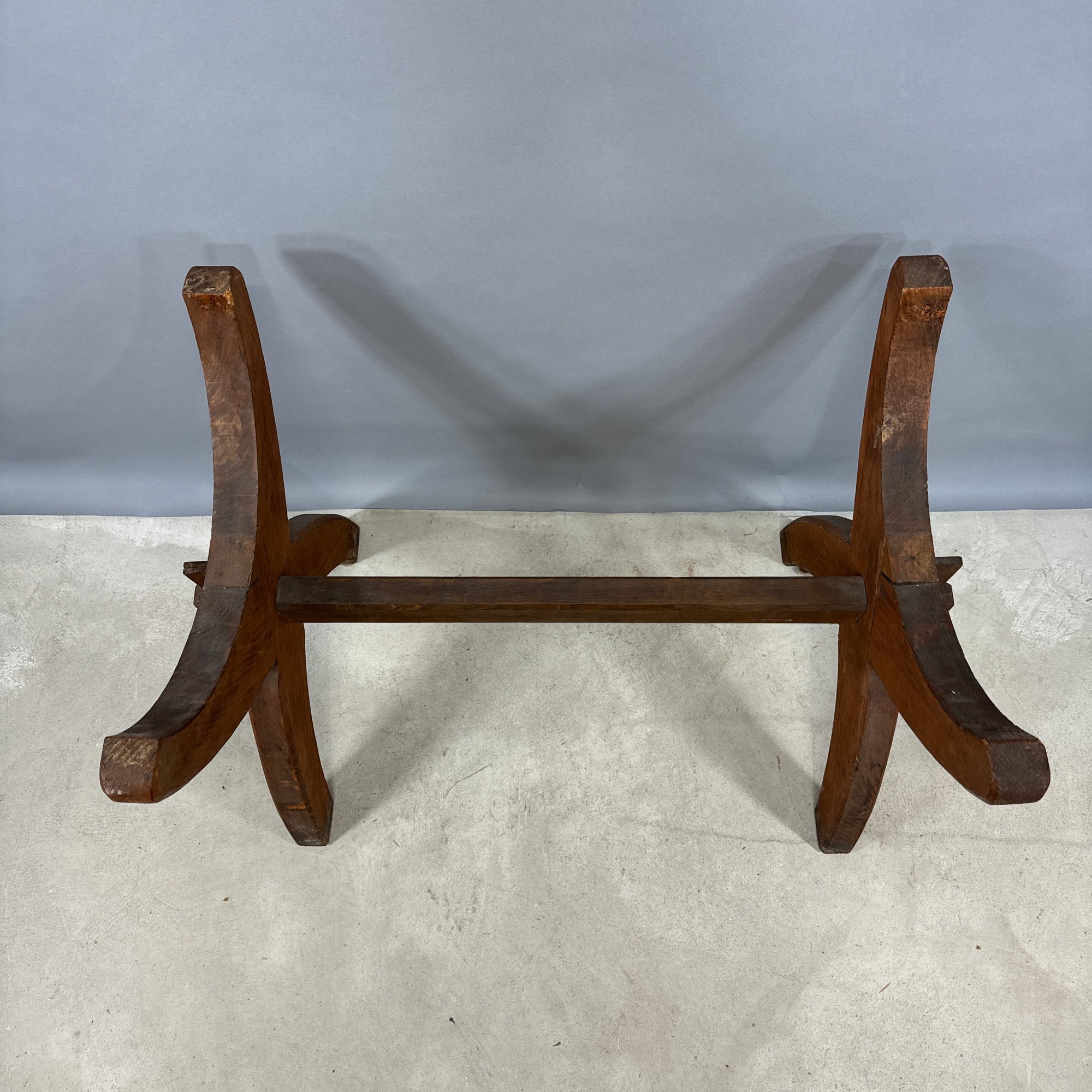 American Wooden Large Trencher, Mounted in a Stand. The trencher with wide ends mounted on a X-form stretcher.