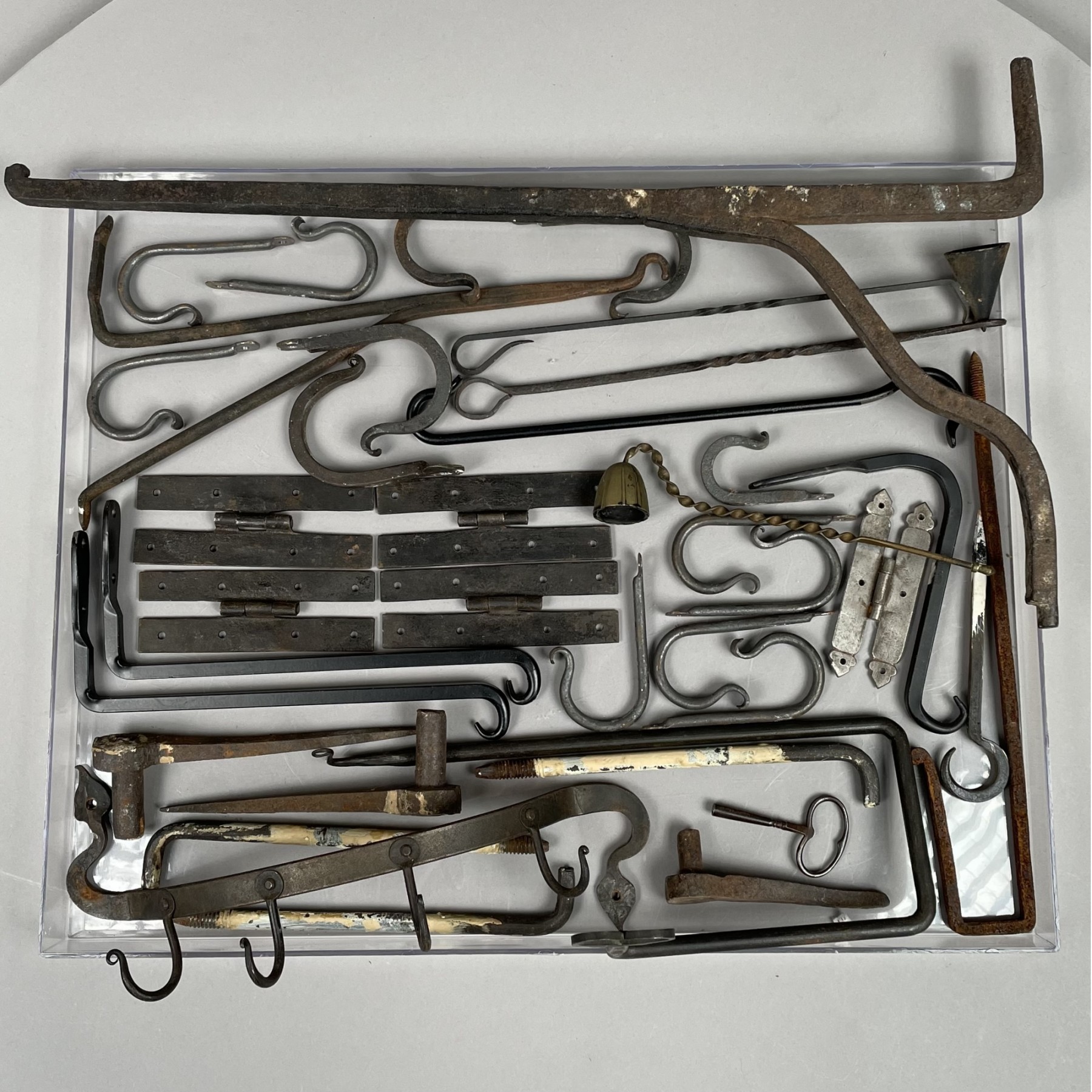 Fireplace crane: H: 12.25 in., W: .625 in., D: 22.125 in.