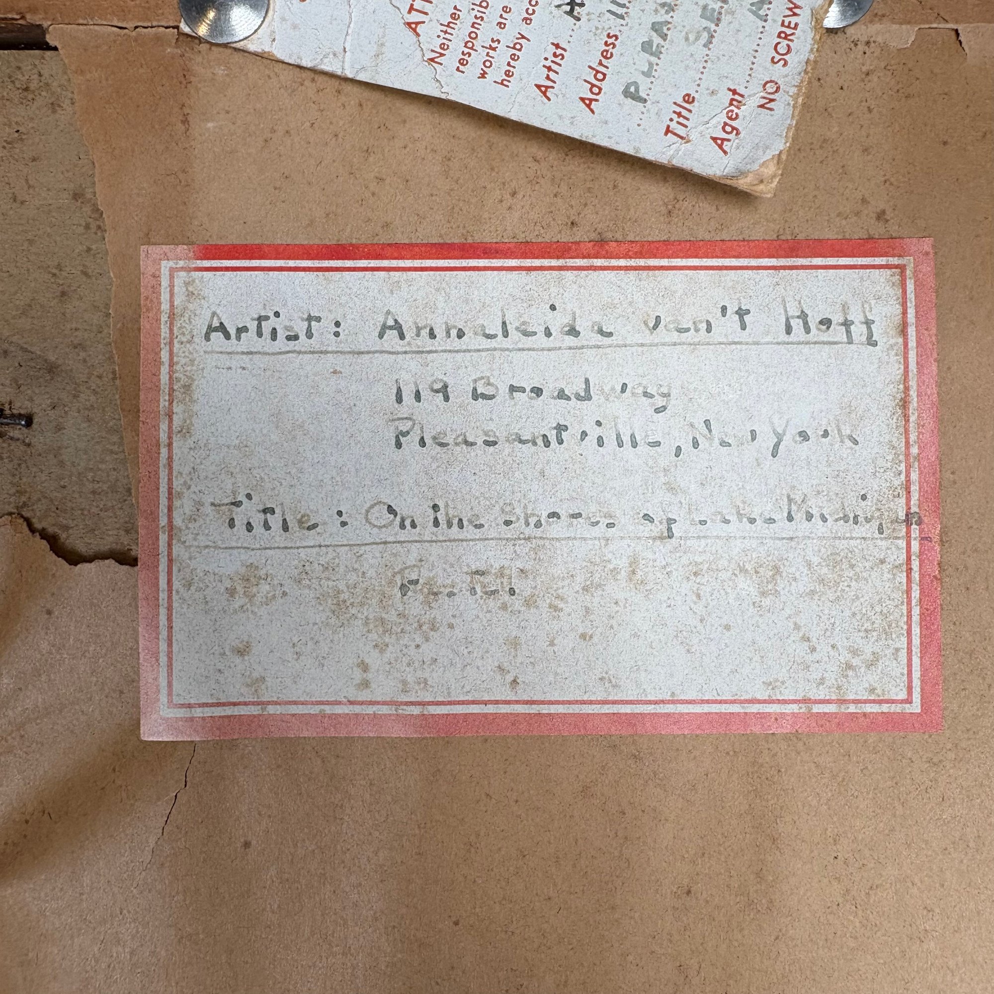 Annaleida Van't Hoff (1909-1997, Andover, New Hampshire). "On the Shores of Lake Michigan," 1954. Pastel, signed and dated "A. Van't Hoff/ '54" lower left, (23 x 18.25 inches, sight).