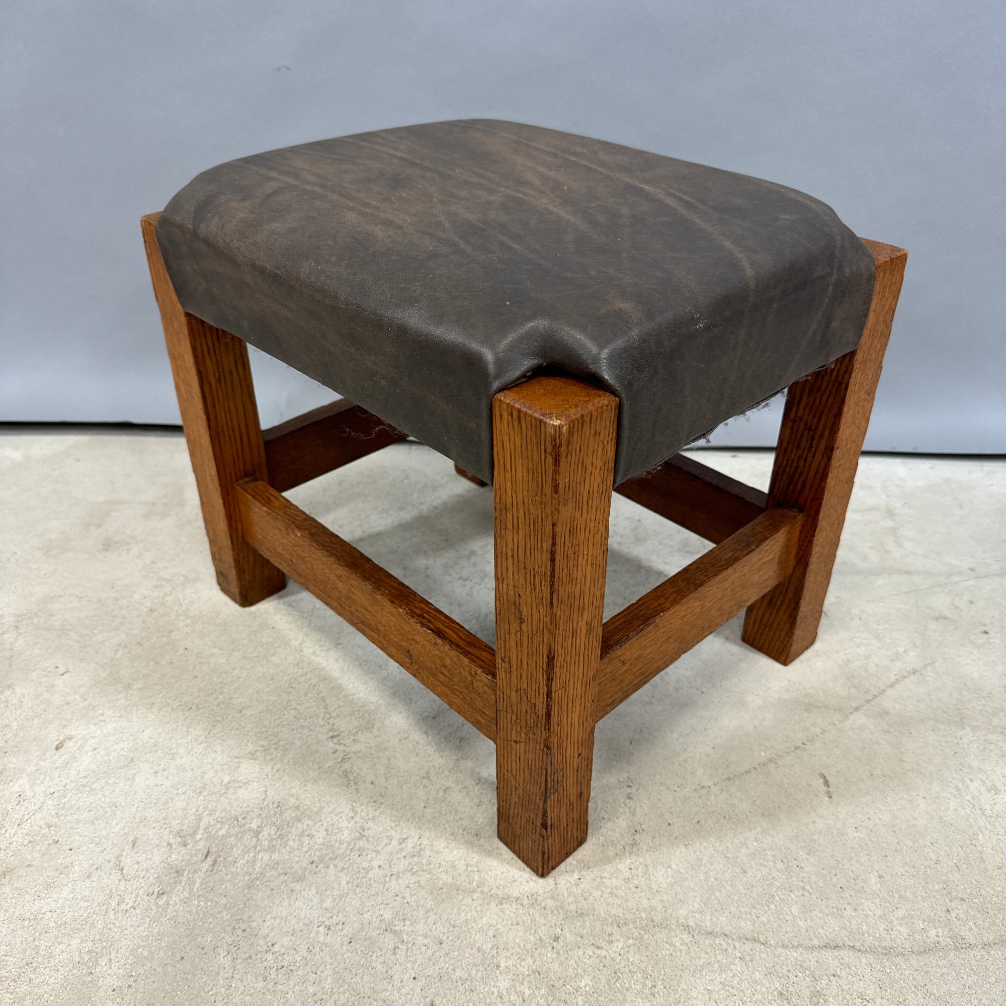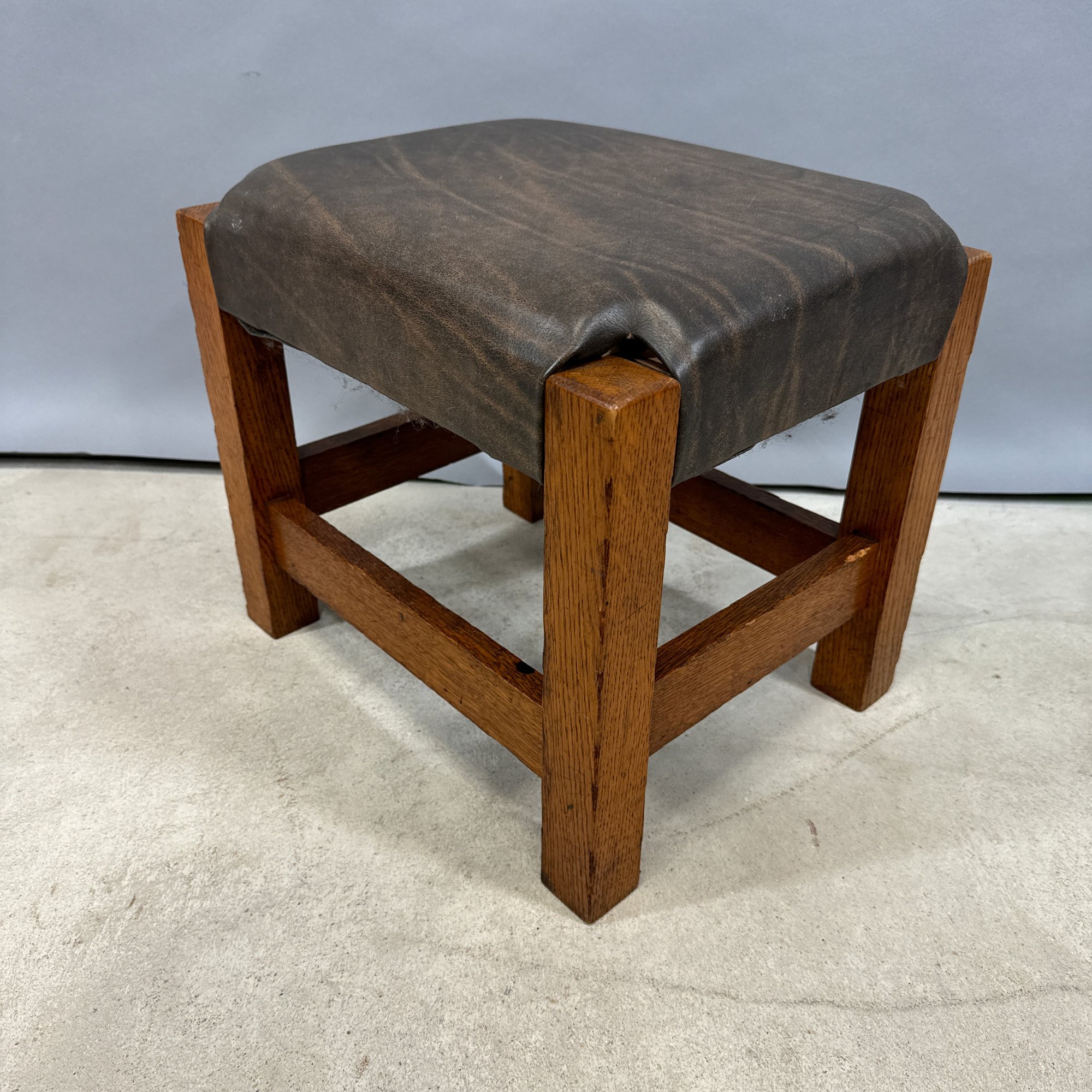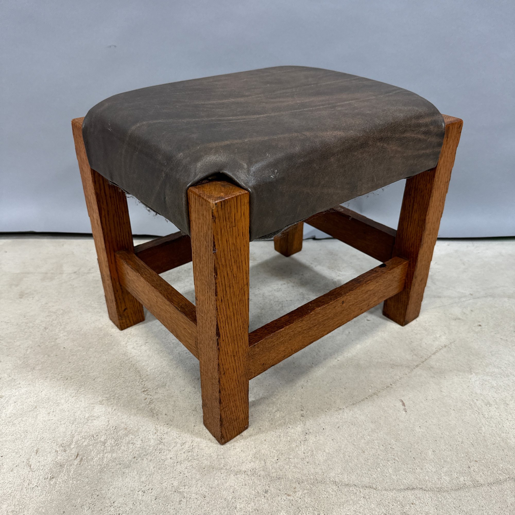 Arts & Crafts Oak Leather-Upholstered Footstool, Early 20th Century.