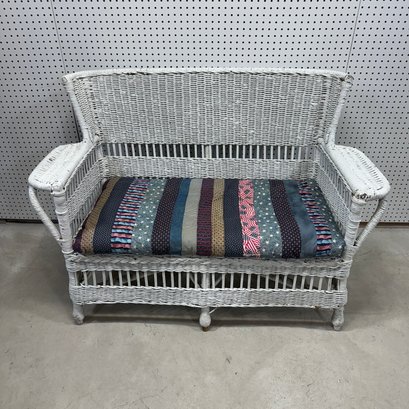 Bar Harbor Style Wicker Settee in White Paint. Including cushions and an outdoor cover.