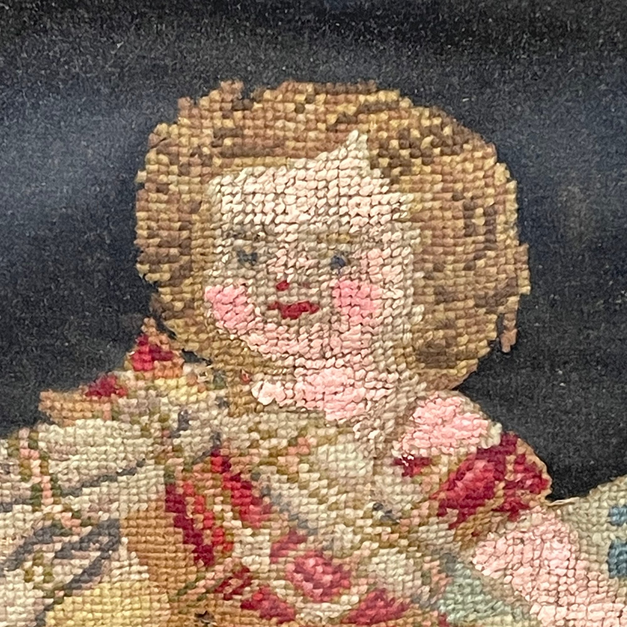 Berlin Woolwork Picture Depicting a Scottish View, Mid-Nineteenth Century. Depicting a little girl with her dog in a landscape; housed in a giltwood frame.