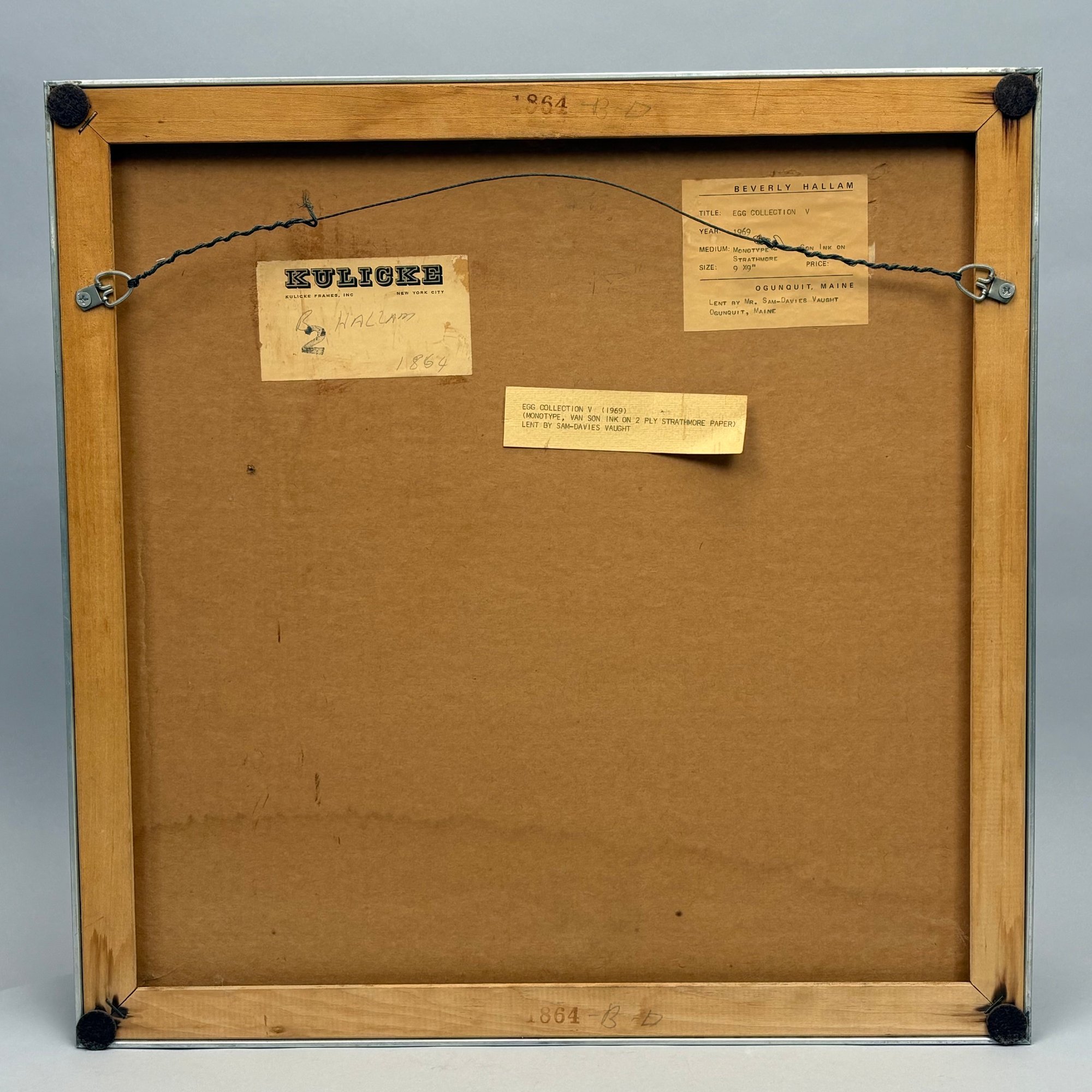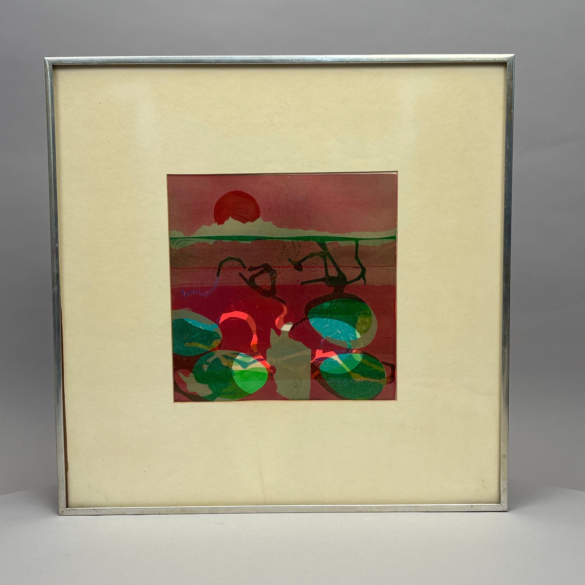 Beverly Linney Hallam (1923, Lynn, Massachusetts -2013, York, Maine). "Egg Collection V," 1969. Monotype, signed "Hallam" lower left, (9 x 9 inches, sight).