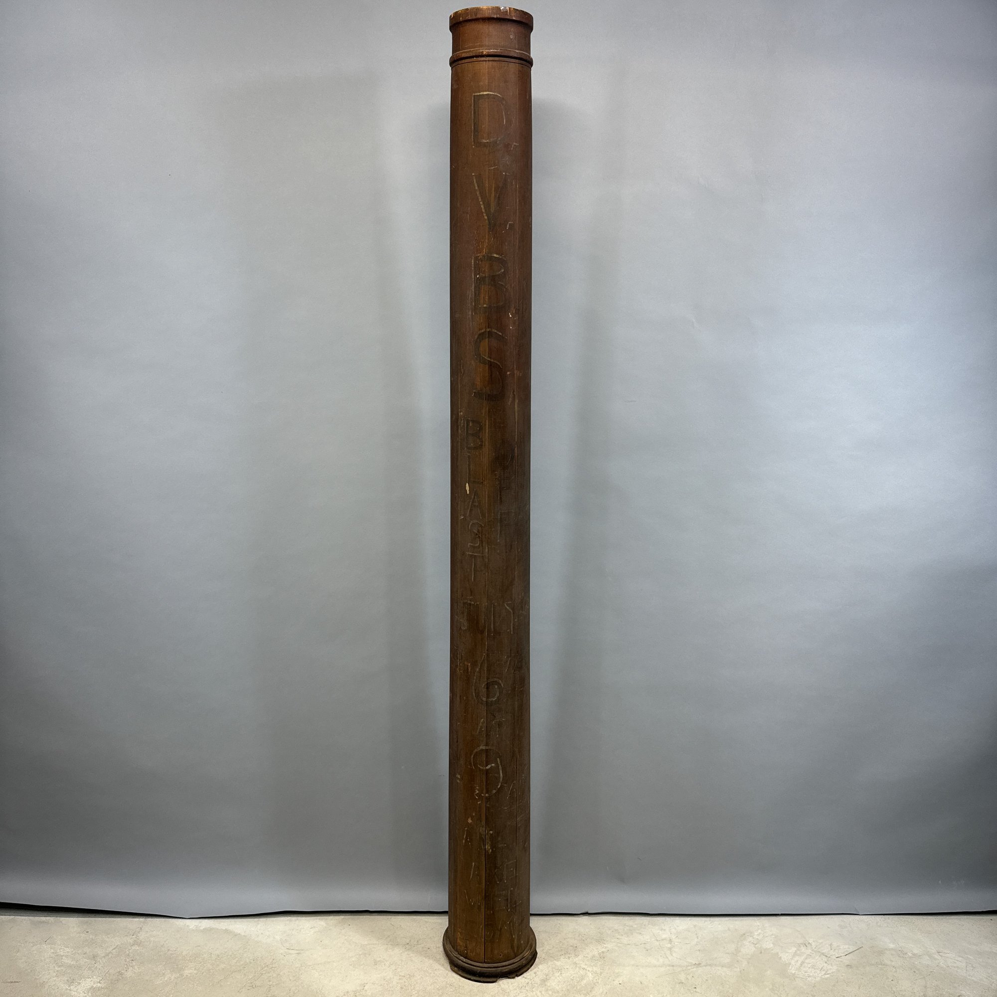 "BLAST OFF," Paint-Decorated Wood Architectural Column. Inscribed "D.V.B.S./ BLAST OFF/ JULY 6TH/ AT/ 9 AM/ AT AKEWELL DOME (?)."