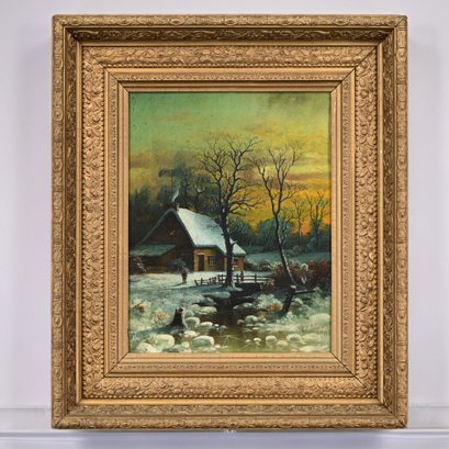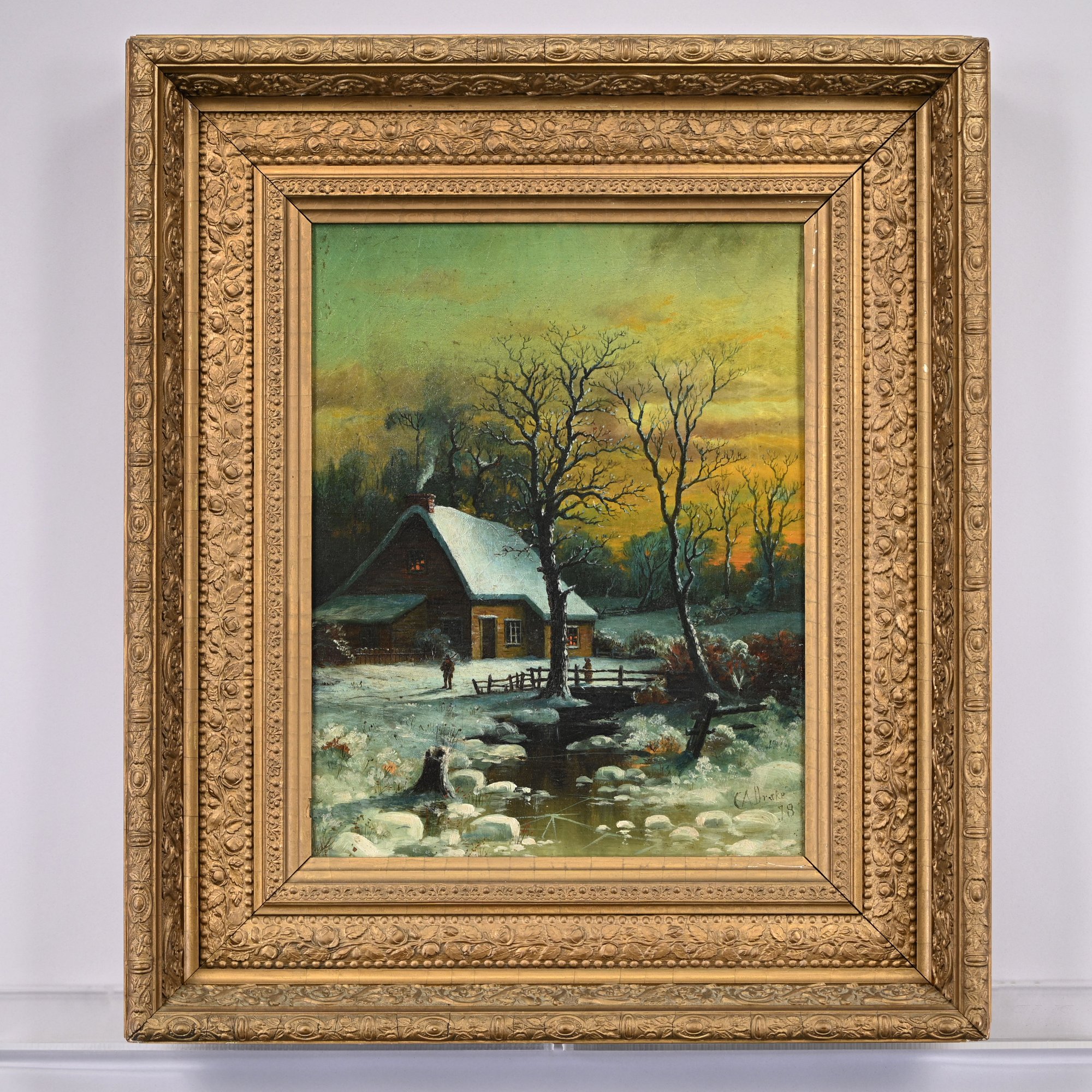 C.A. Drake (American, 19th Century). Going Hunting on a Winter Morning. Oil on canvas, signed "C.A. Drake/ 78" lower right, (17.375 x 13.375 inches, sight); housed in the original gilt gesso frame.