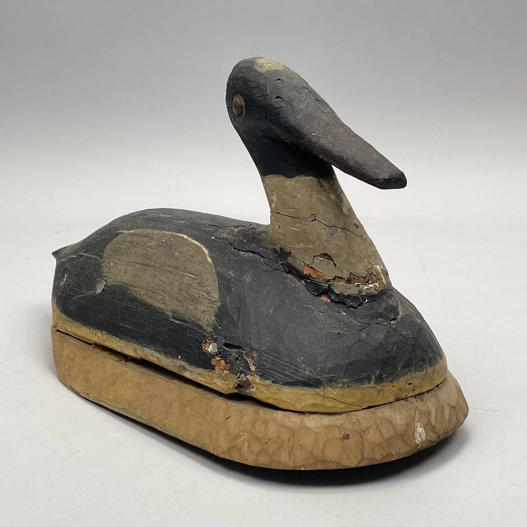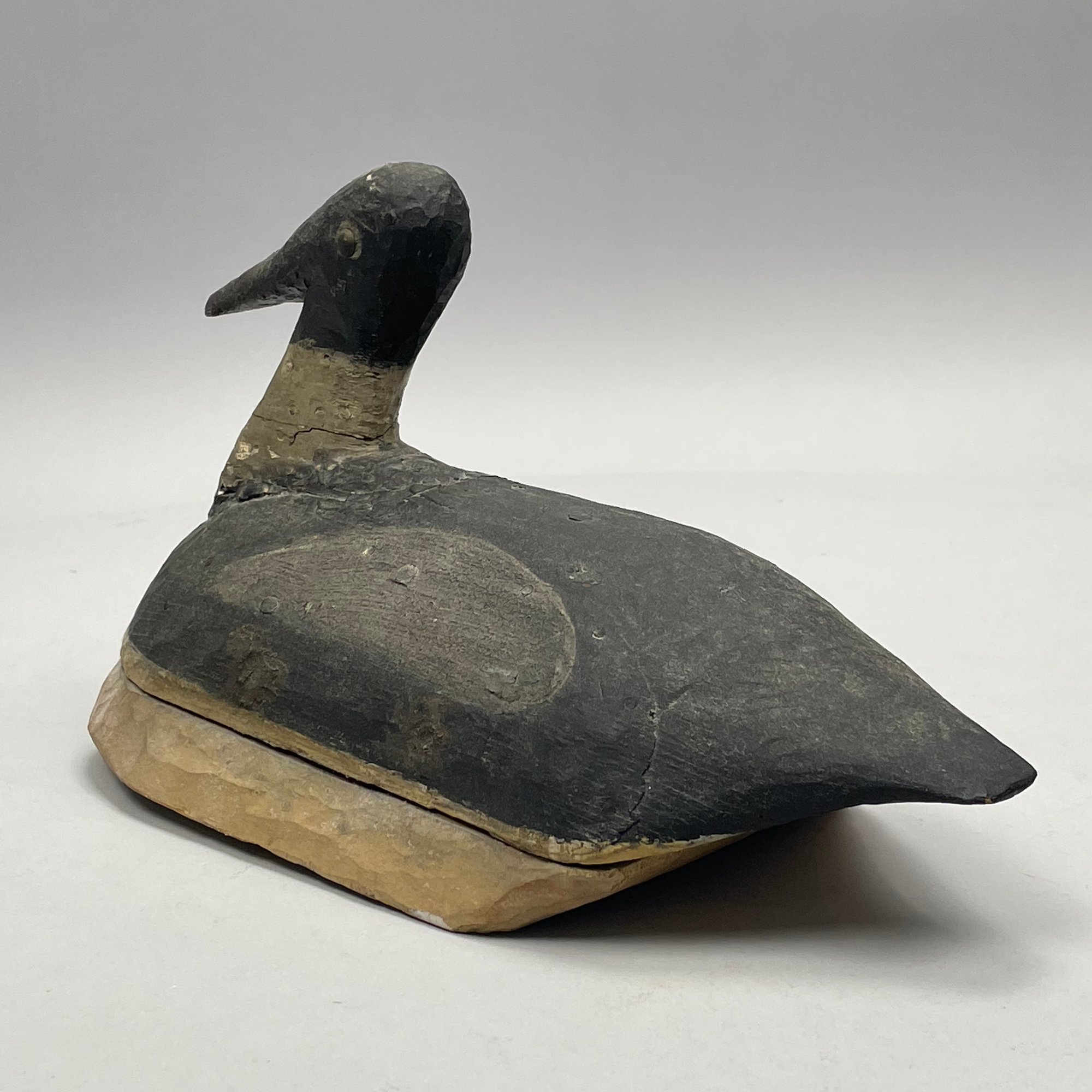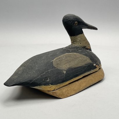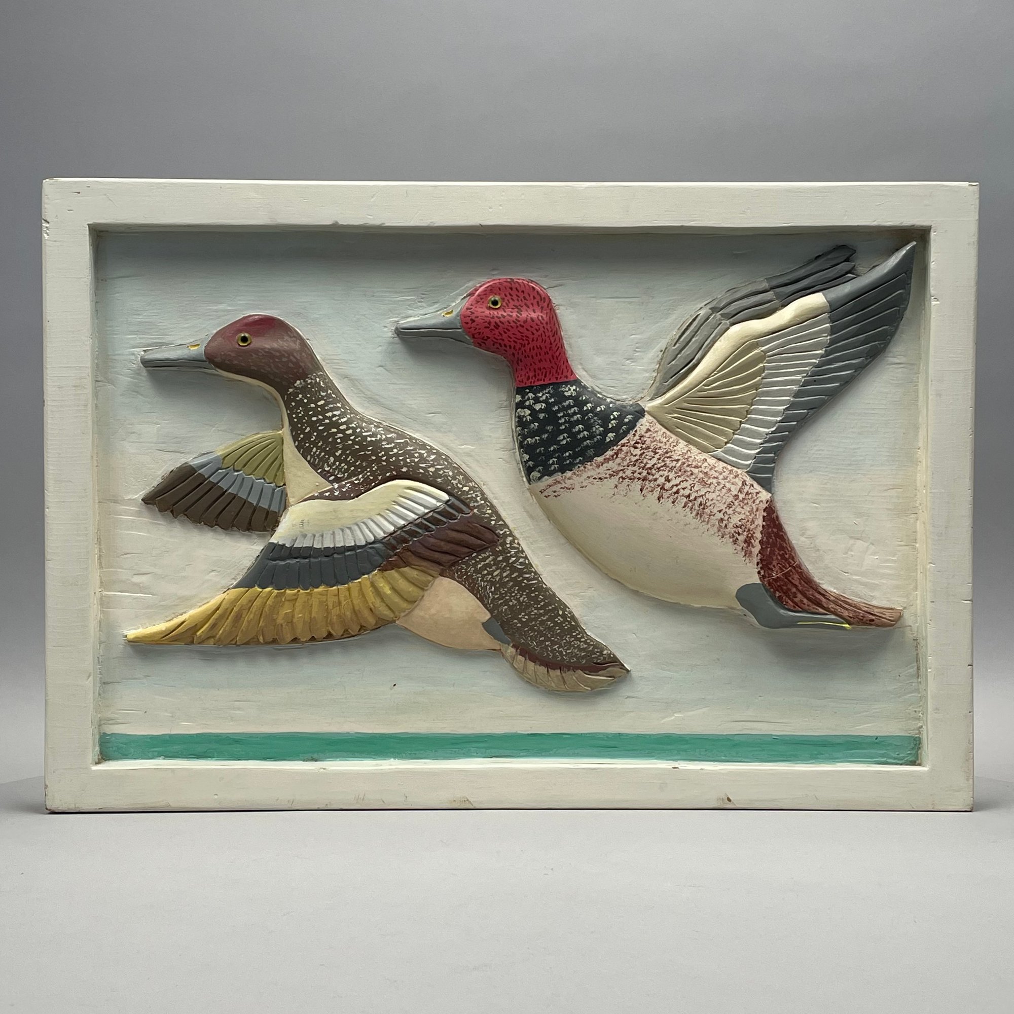 Carved and Painted Wood Duck Plaque, and a Carved and Painted Wood Duck Decoy. The plaque branded on the reverse "E.F. ELDREDGE/ CHATHAM, MASS."