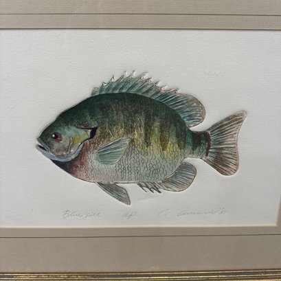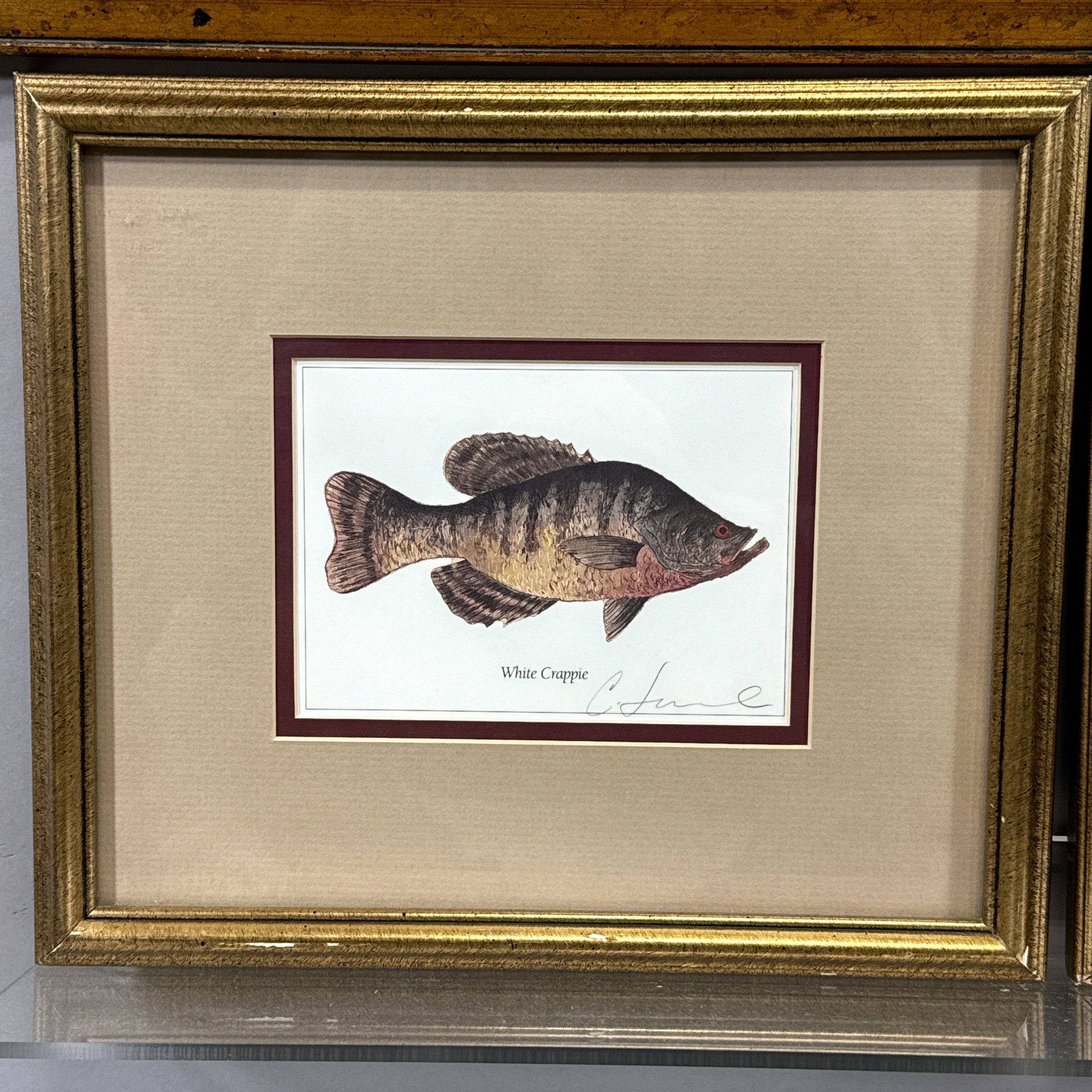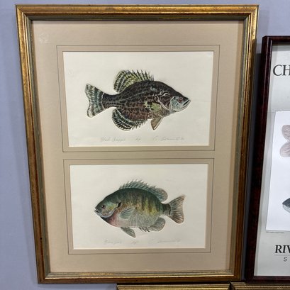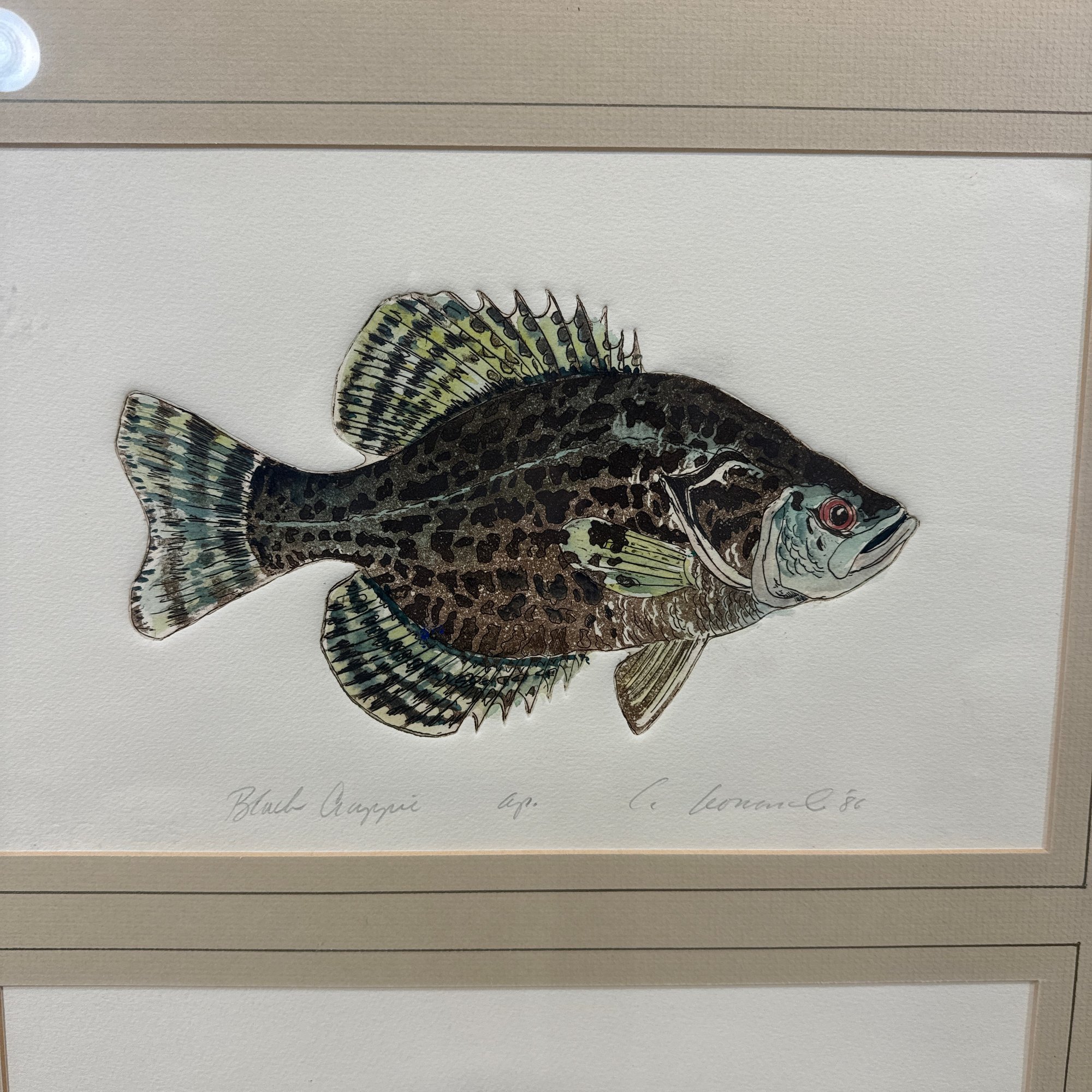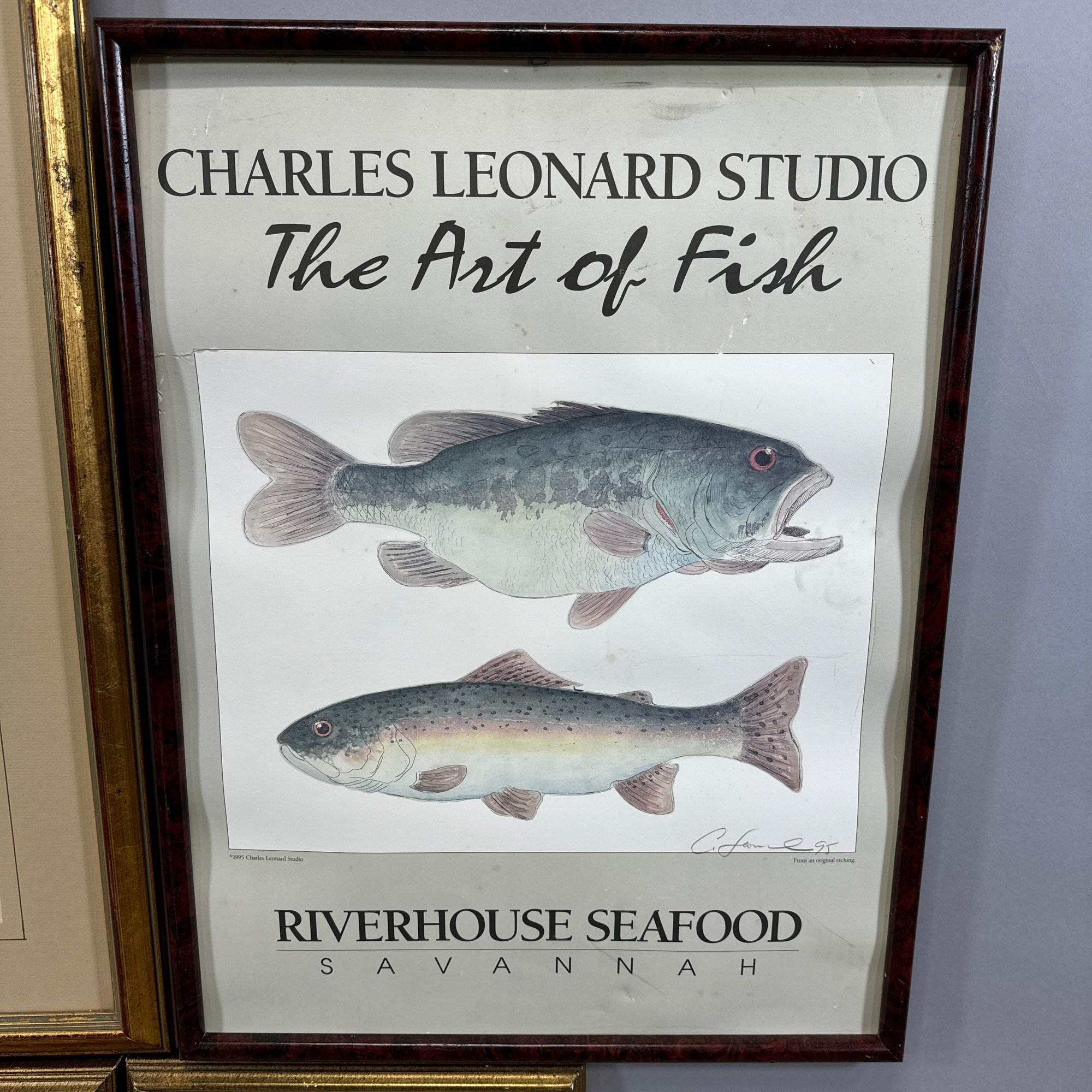 Charles Leonard (20th-21st Century). "Largemouth Bass" and "White Crappie," and "Black Crappie" and "Bluegill." Three prints, each signed by the artist; and a "CHARLES LEONARD STUDIO/ The Art of Fish/ "RIVERHOUSE SEAFOOD/ SAVANNAH" poster, signed by the artist. (4)