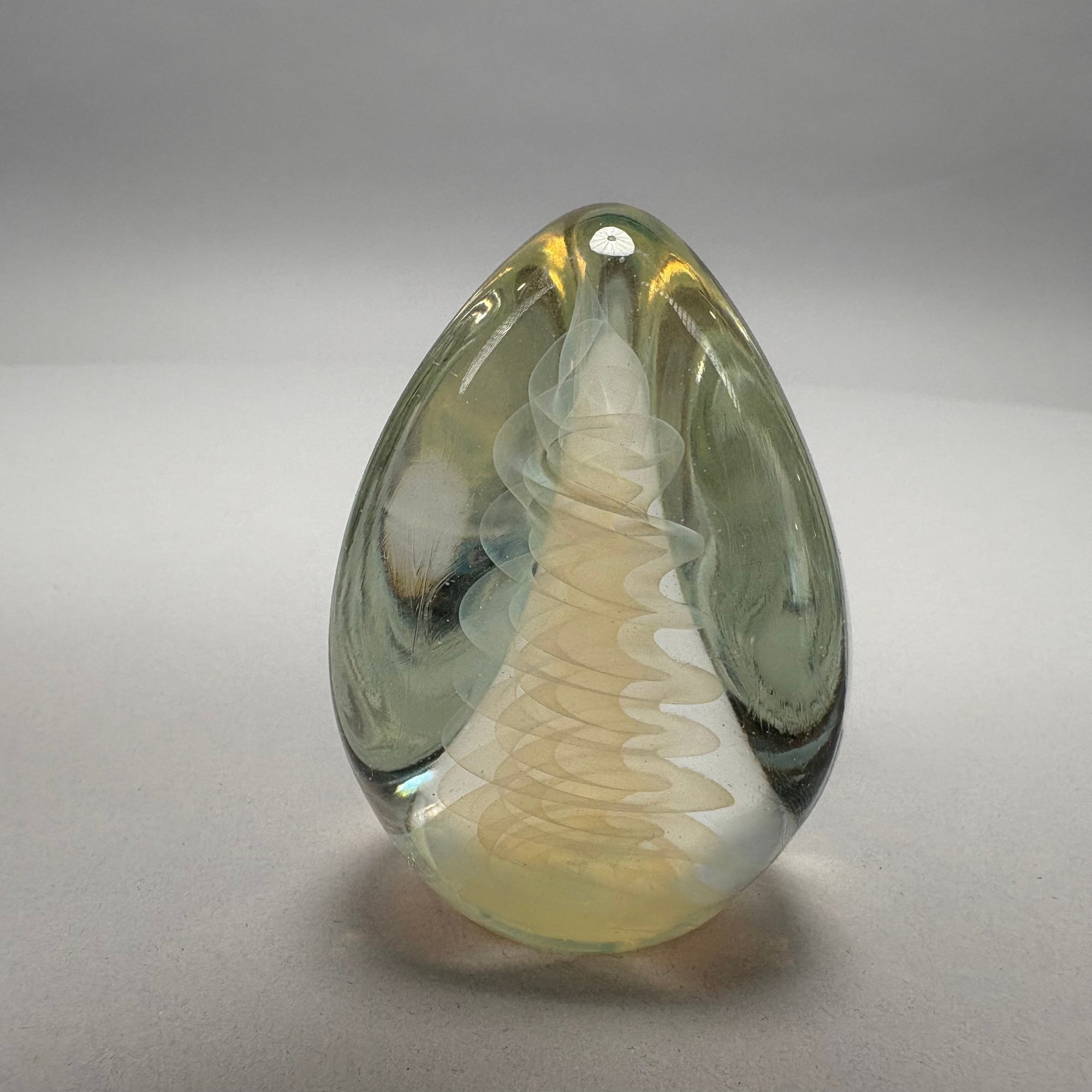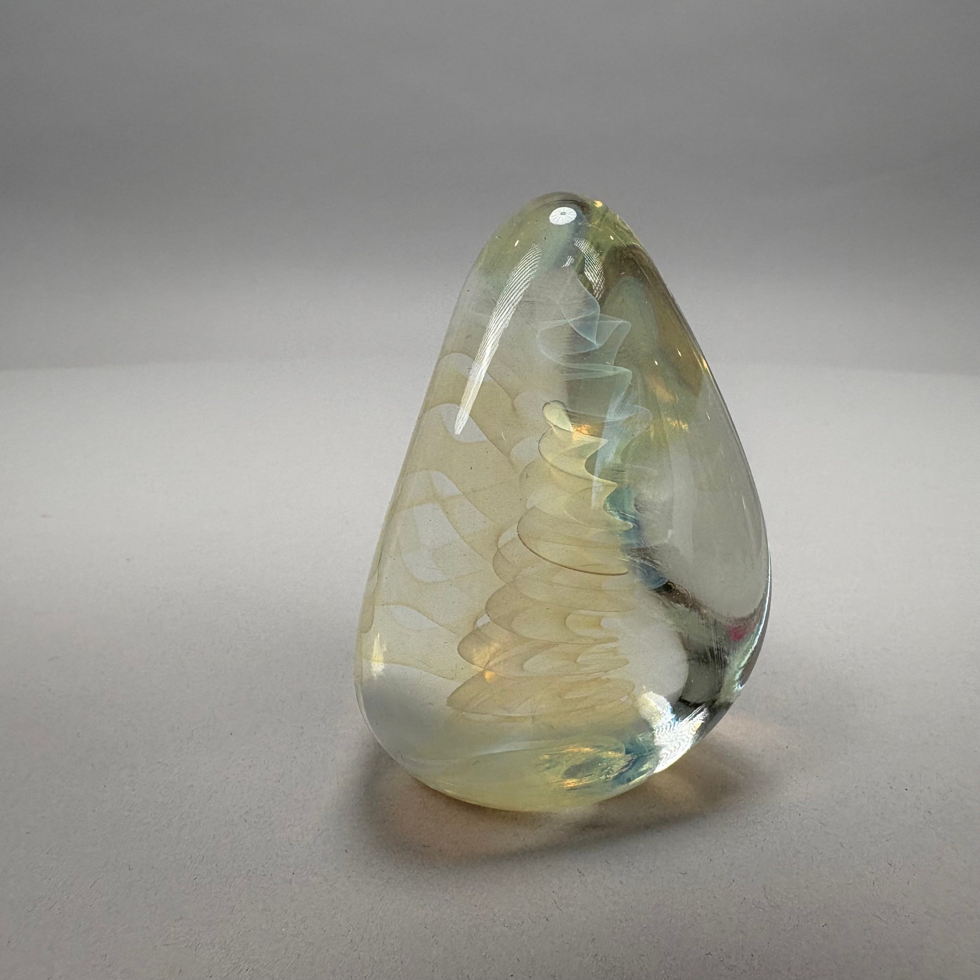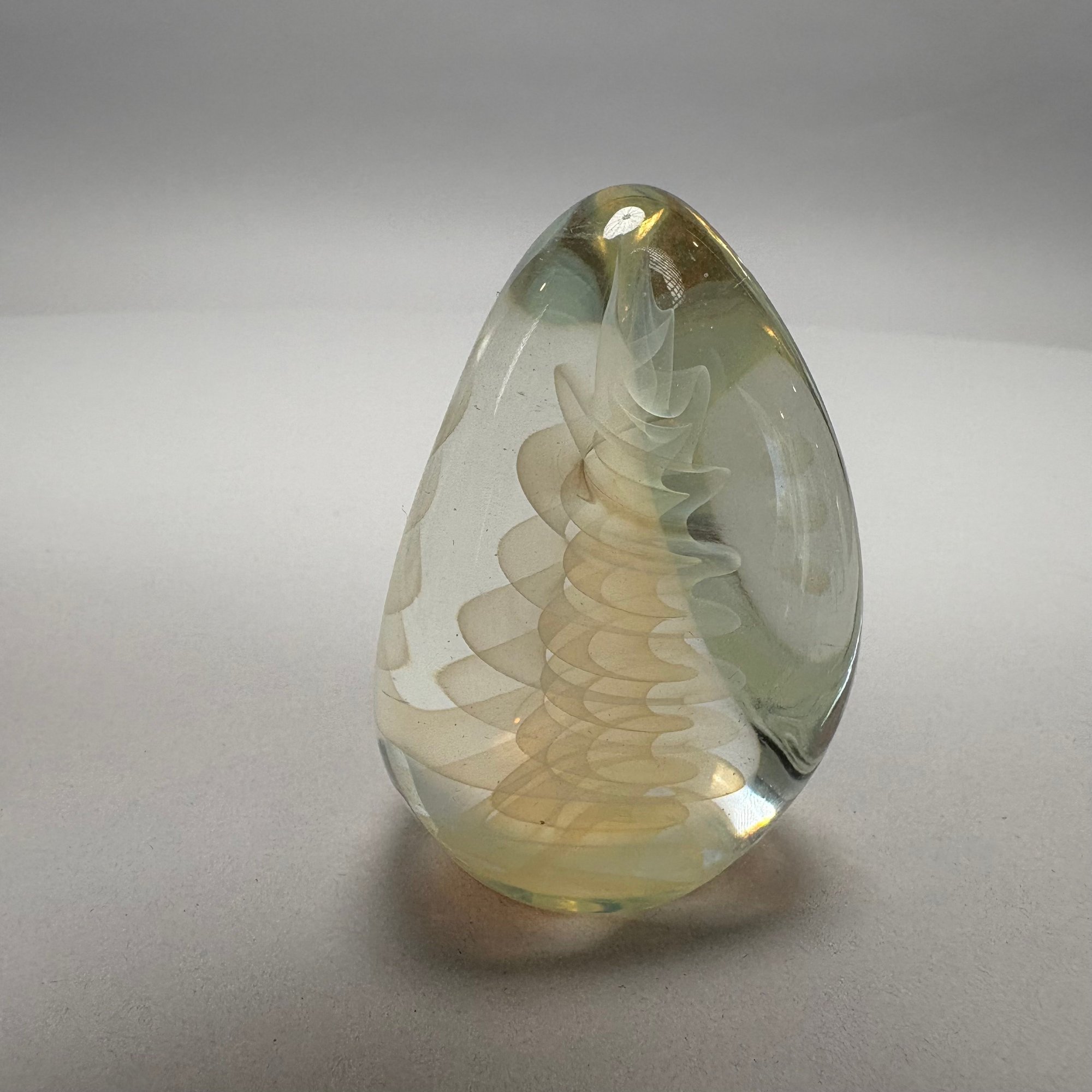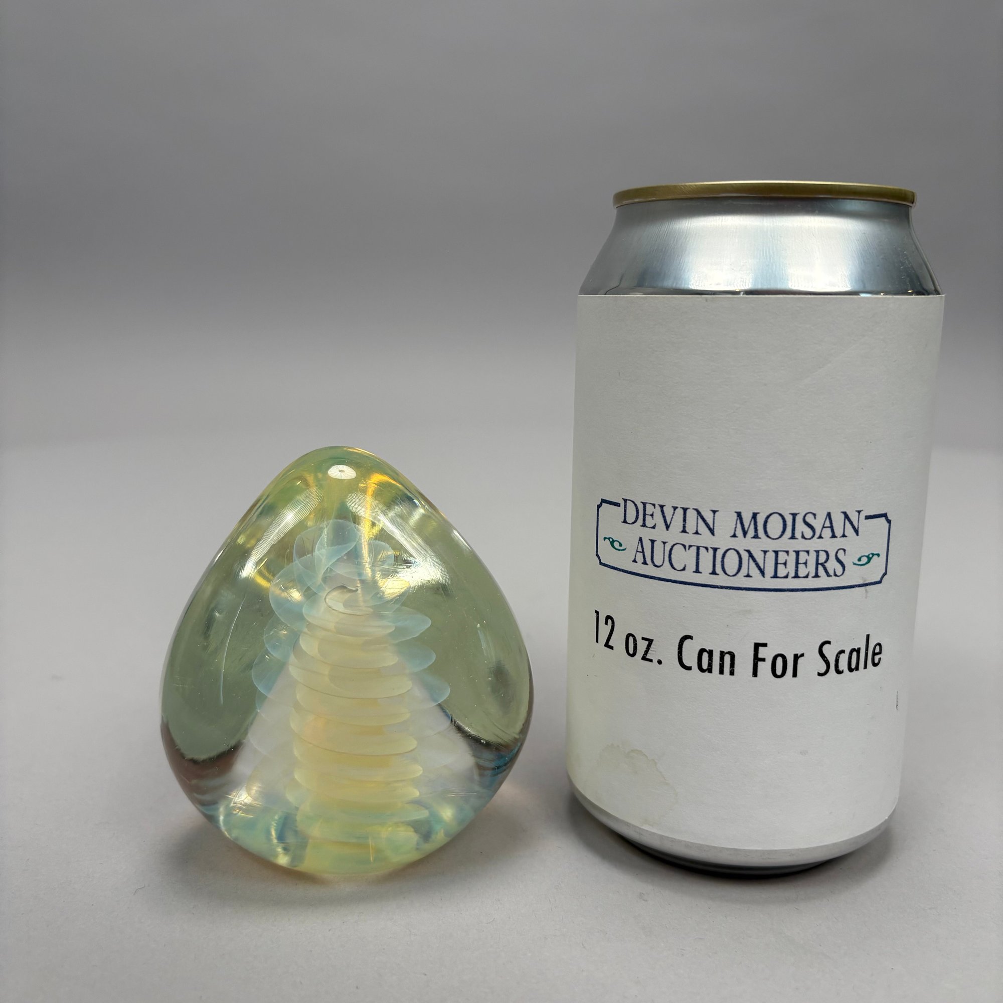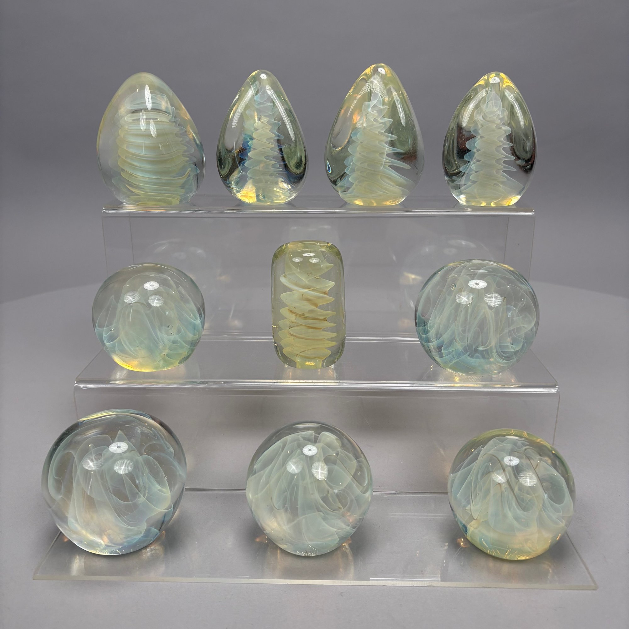 Charles Wright (American, 1944-2016). Ten Studio Art Glass Paperweights, Circa 1995. Comprising five opalescent weights in various shapes, each enclosing a loose white spiral, one etched "C. Wright," one etched "C. Wright/ 1995" and three unsigned; and five opalescent weights, each enclosing white swirls, two signed "C. Wright" and three unsigned.