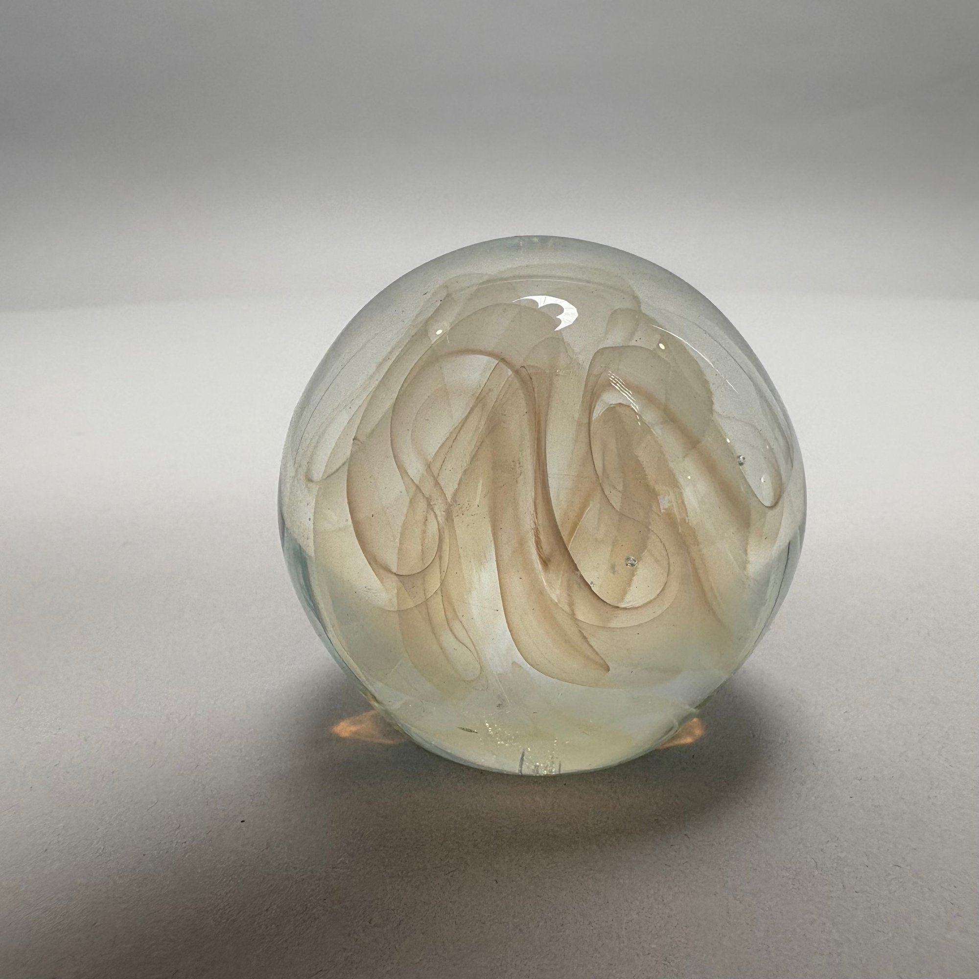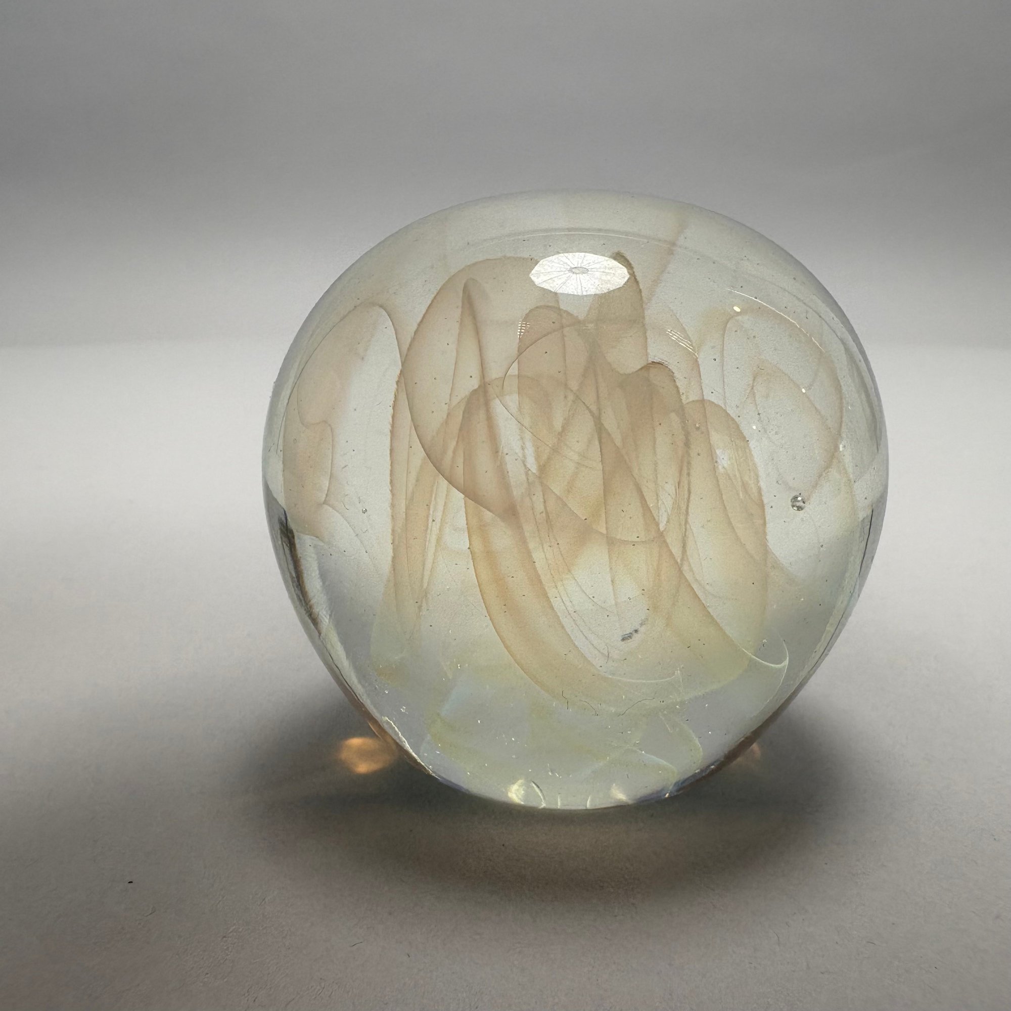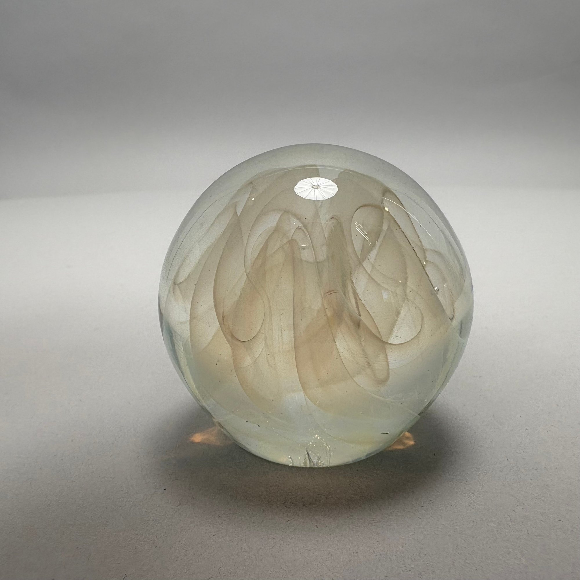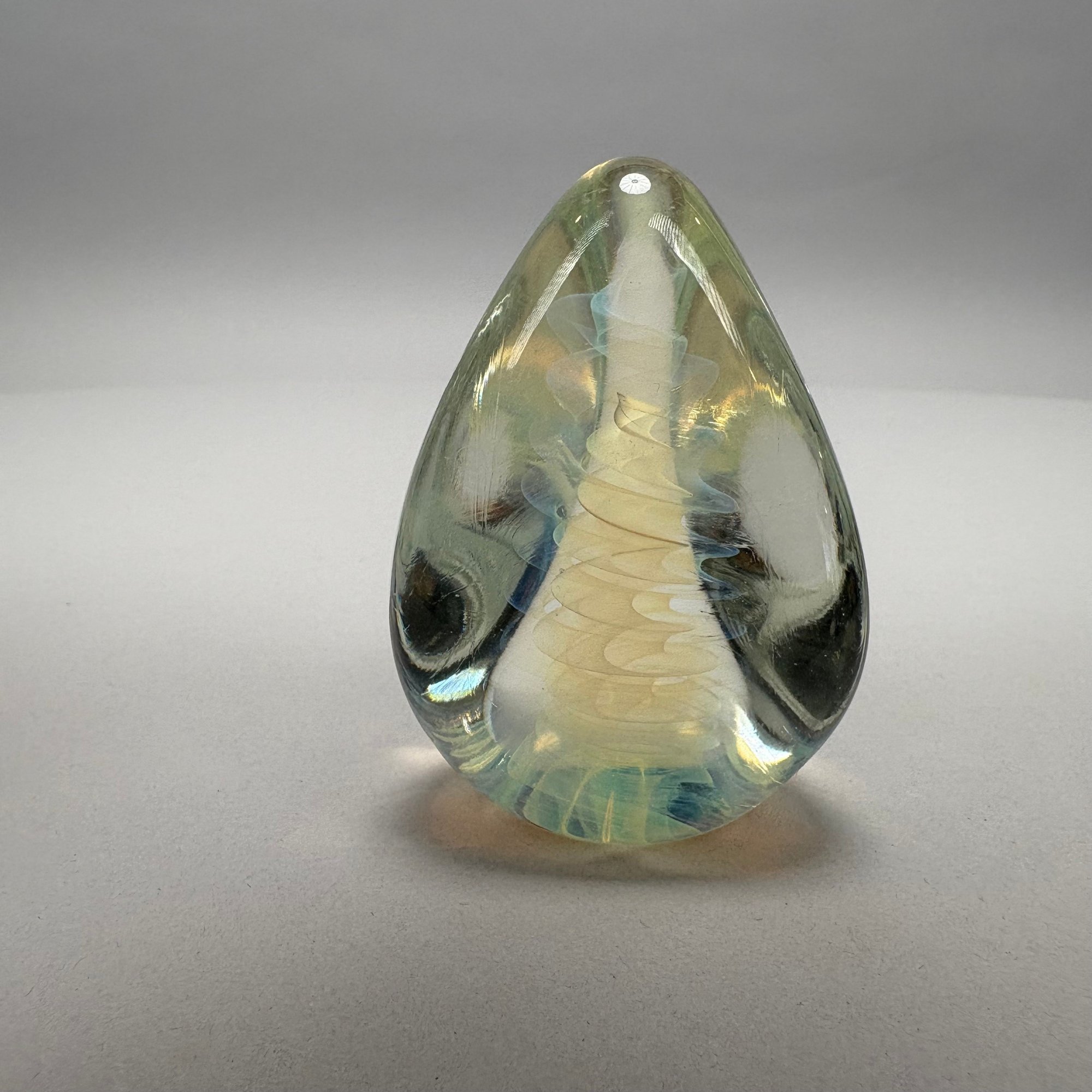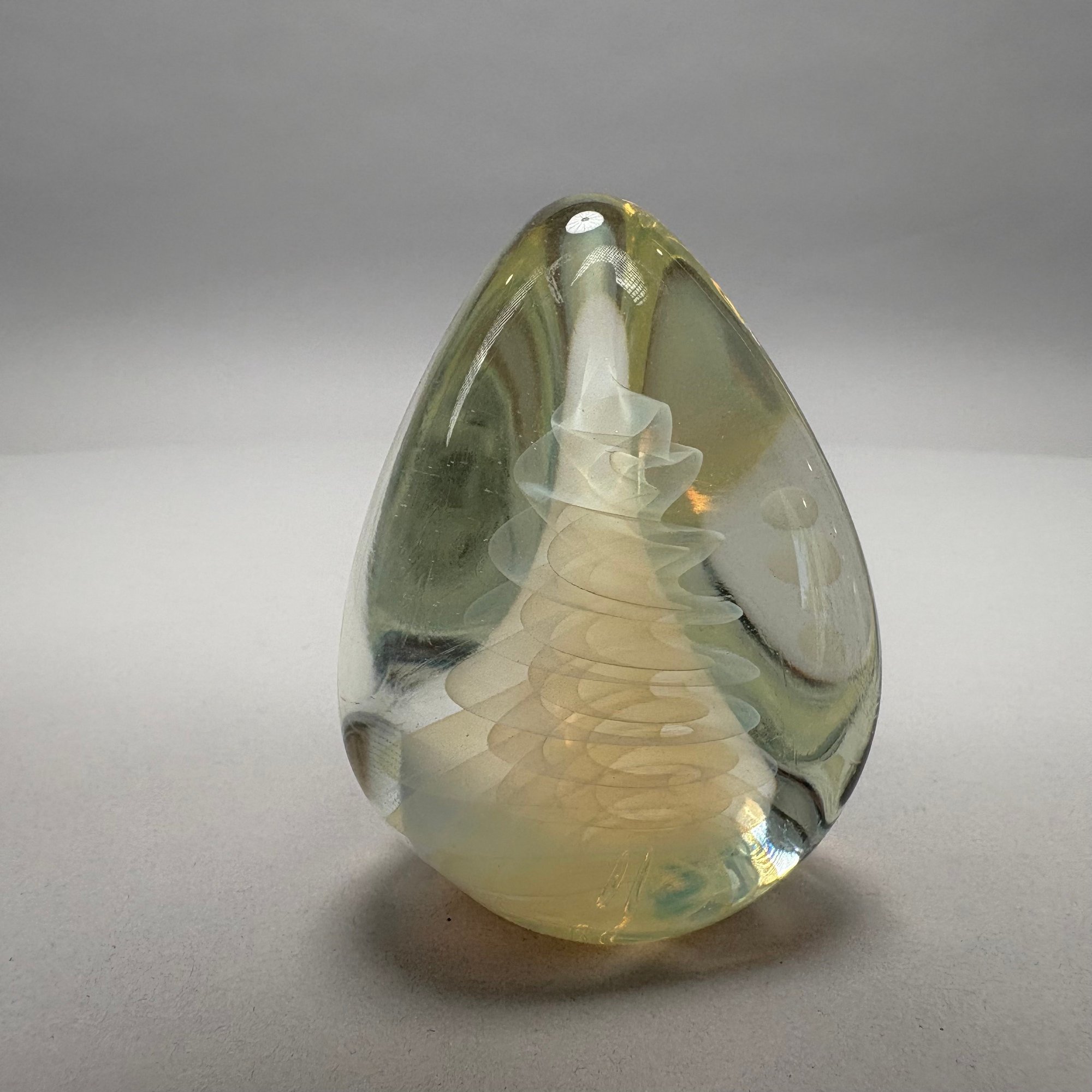 Charles Wright (American, 1944-2016). Ten Studio Art Glass Paperweights, Circa 1995. Comprising five opalescent weights in various shapes, each enclosing a loose white spiral, one etched "C. Wright," one etched "C. Wright/ 1995" and three unsigned; and five opalescent weights, each enclosing white swirls, two signed "C. Wright" and three unsigned.