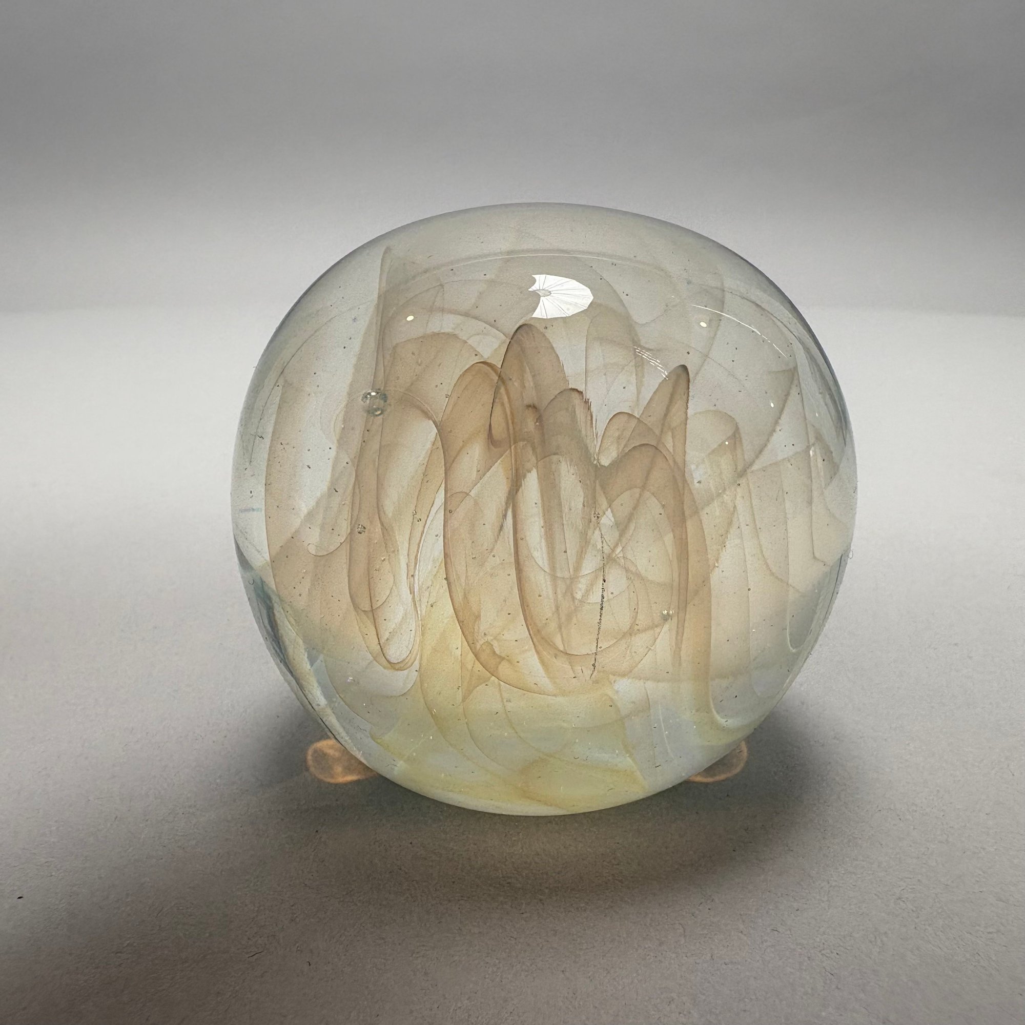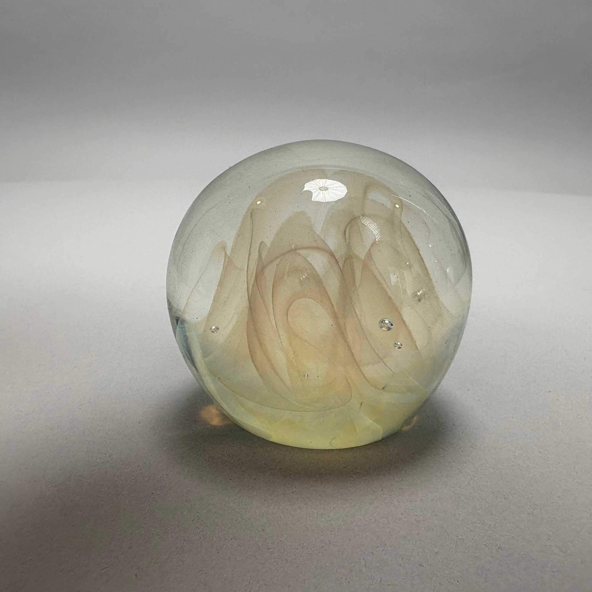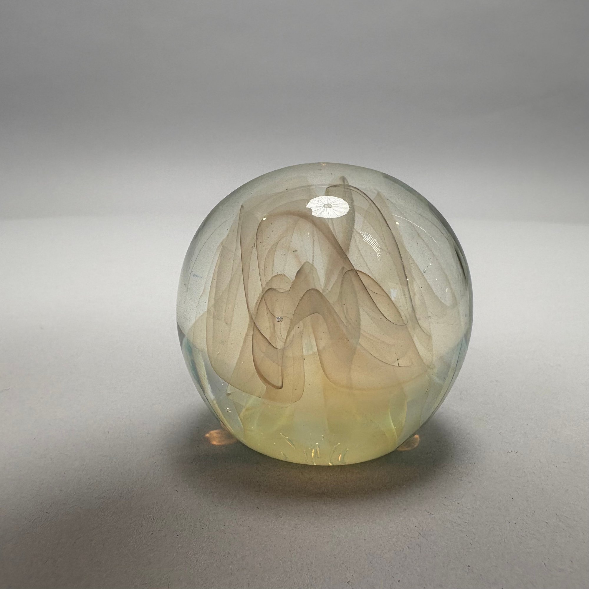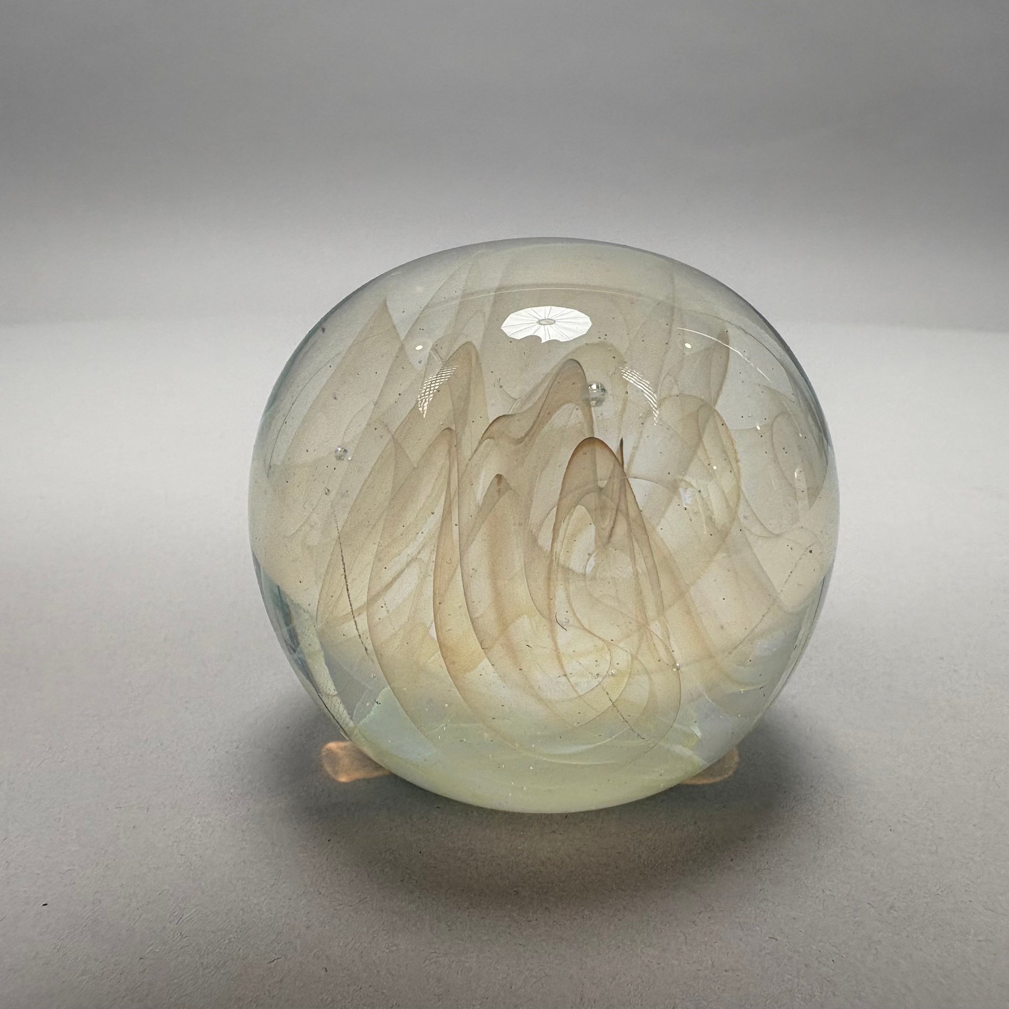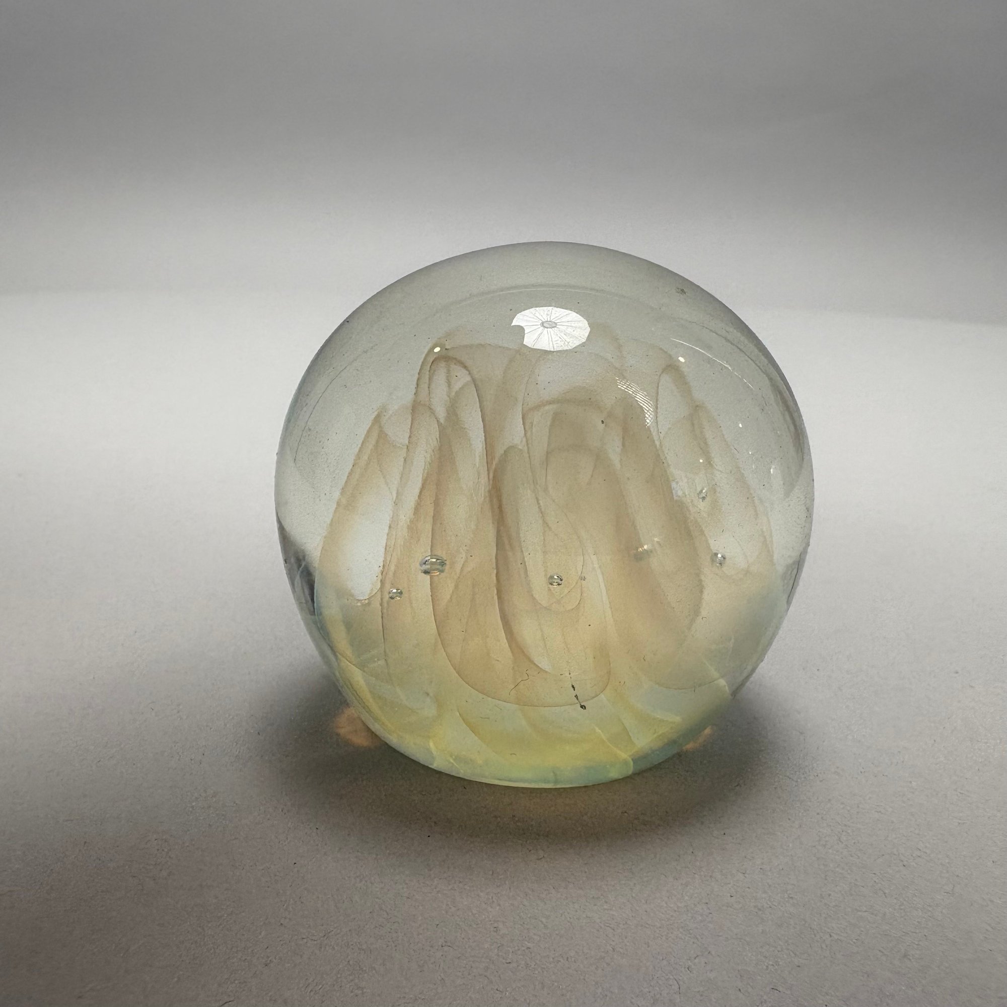 Charles Wright (American, 1944-2016). Ten Studio Art Glass Paperweights, Circa 1995. Comprising five opalescent weights in various shapes, each enclosing a loose white spiral, one etched "C. Wright," one etched "C. Wright/ 1995" and three unsigned; and five opalescent weights, each enclosing white swirls, two signed "C. Wright" and three unsigned.