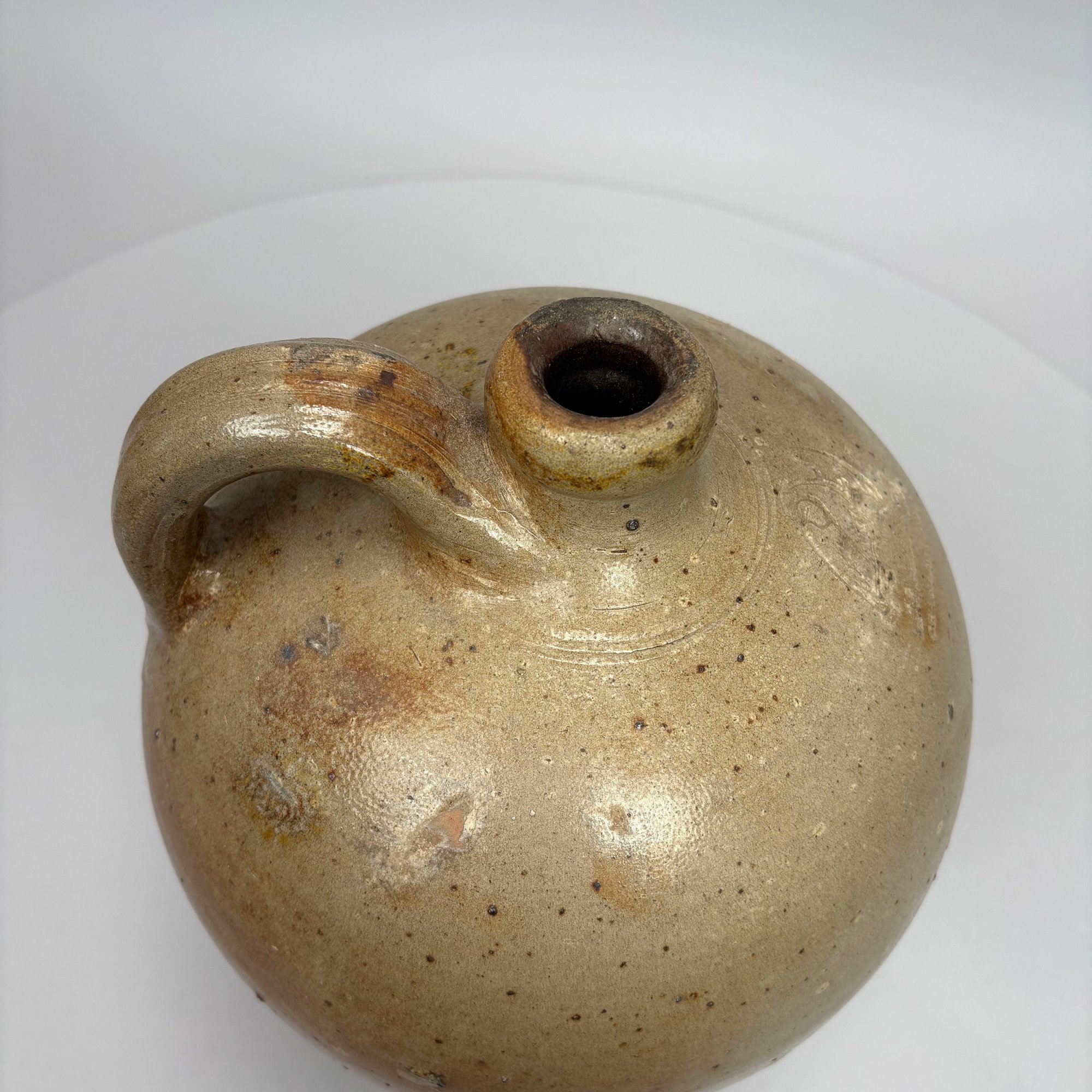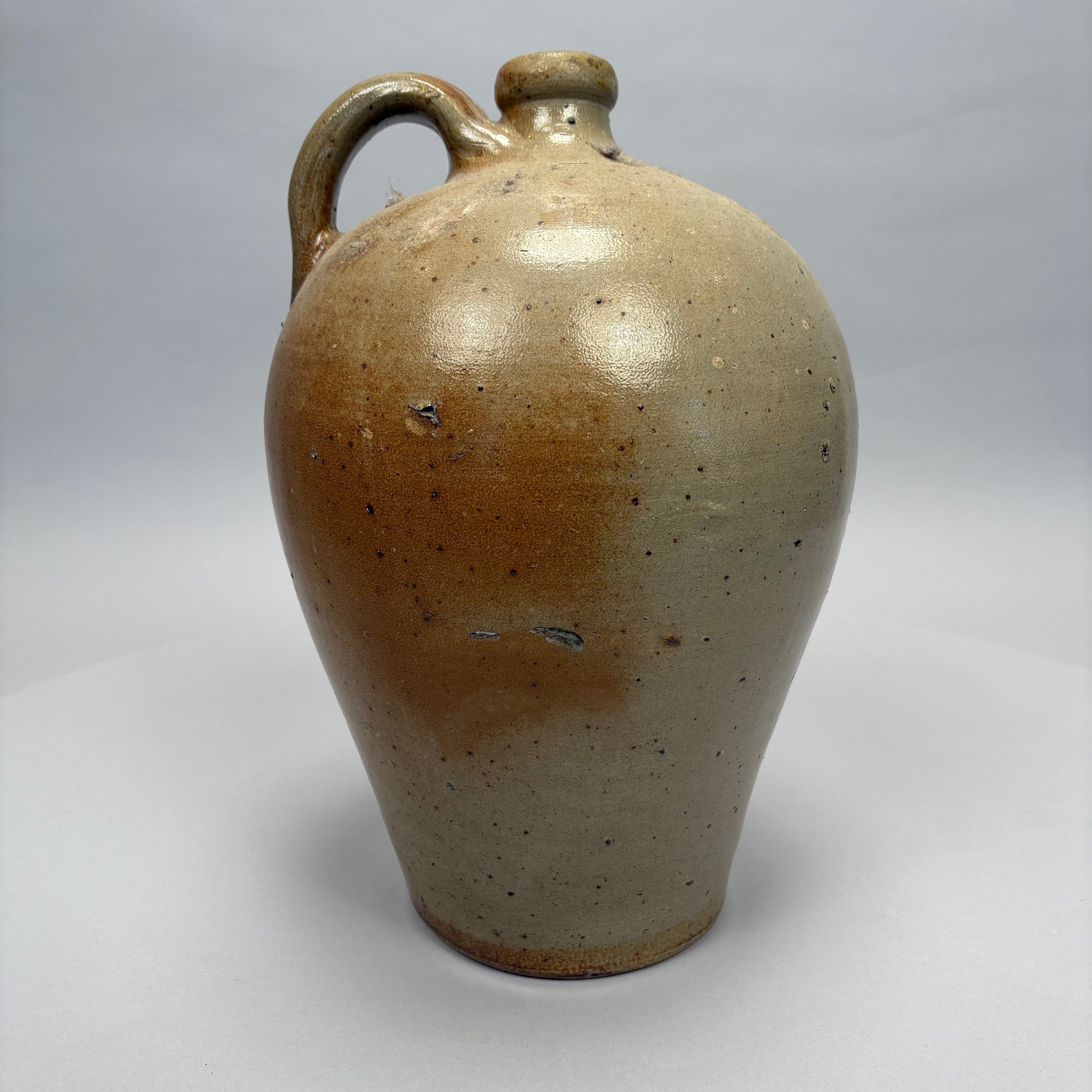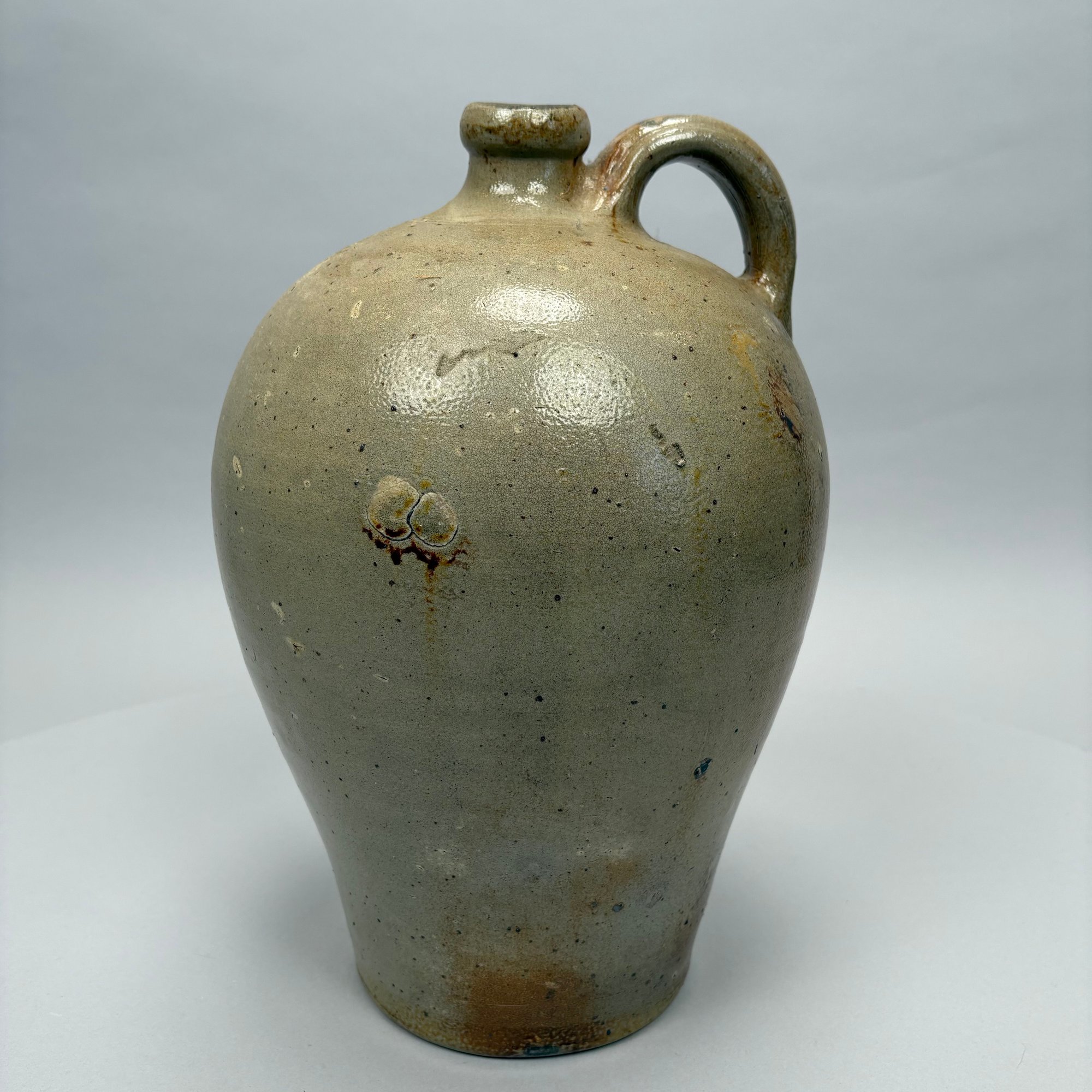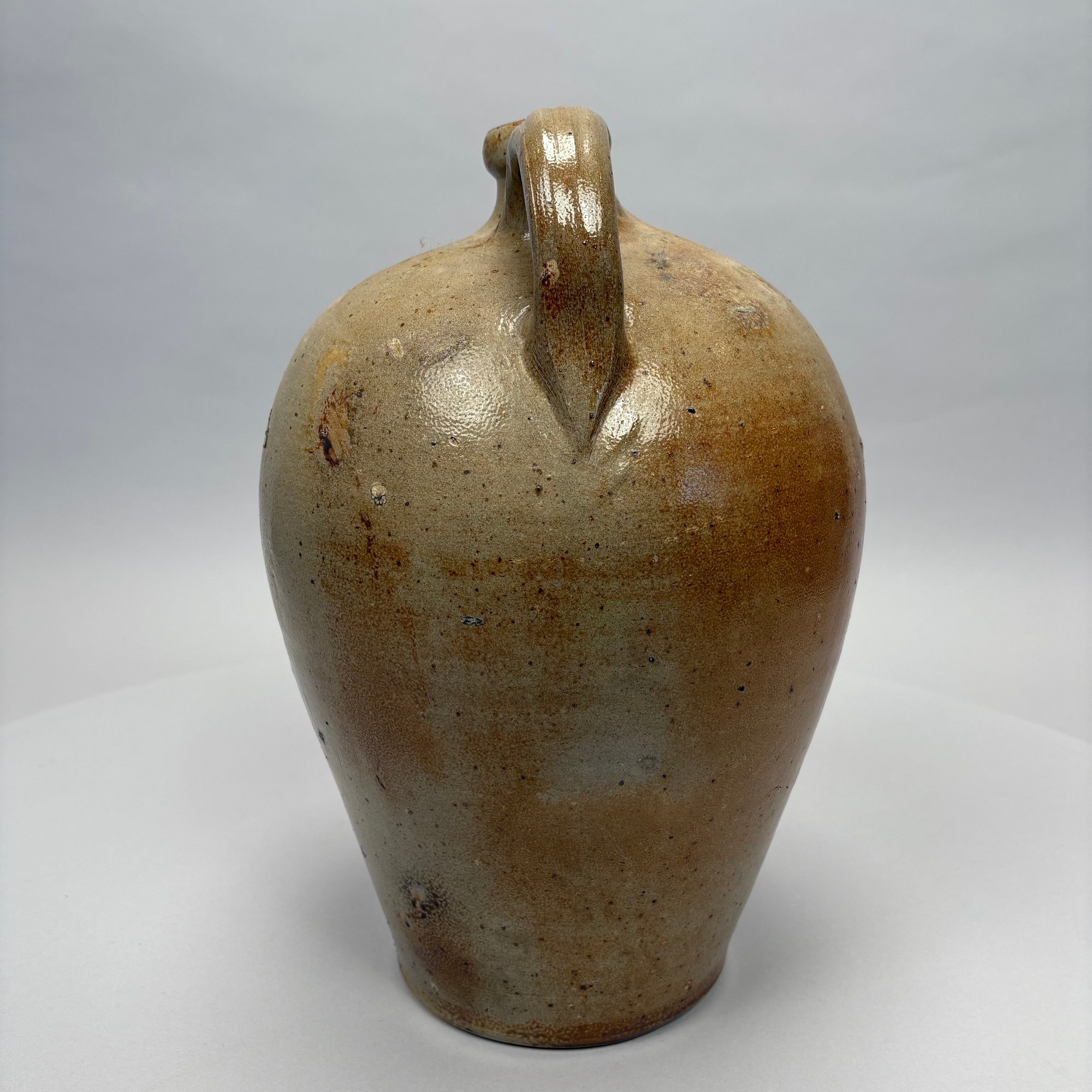 Charlestown, Massachusetts Saltglaze Stoneware Iron-Decorated Jug, Attributed to Frederick Carpenter, Charlestown, Massachusetts, 1812-1827. Of ovoid shape, impressed with an eagle perched atop a cannon above "CHARLESTOWN."