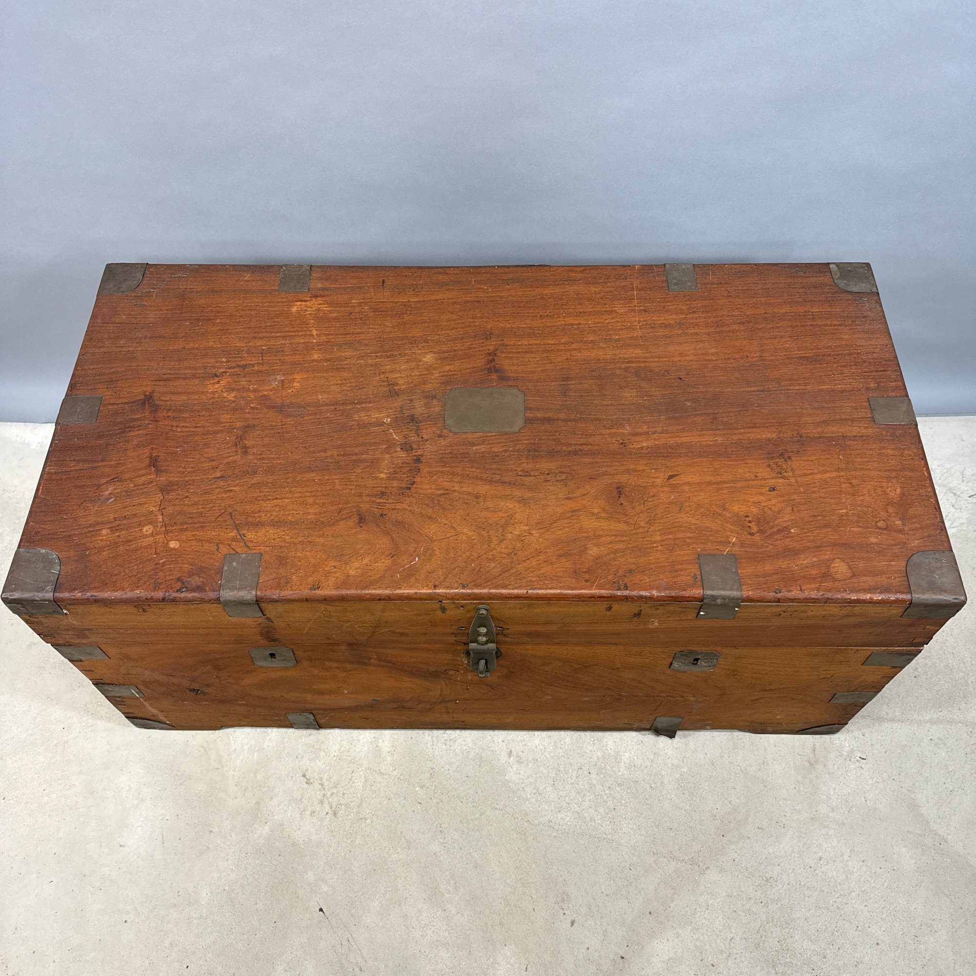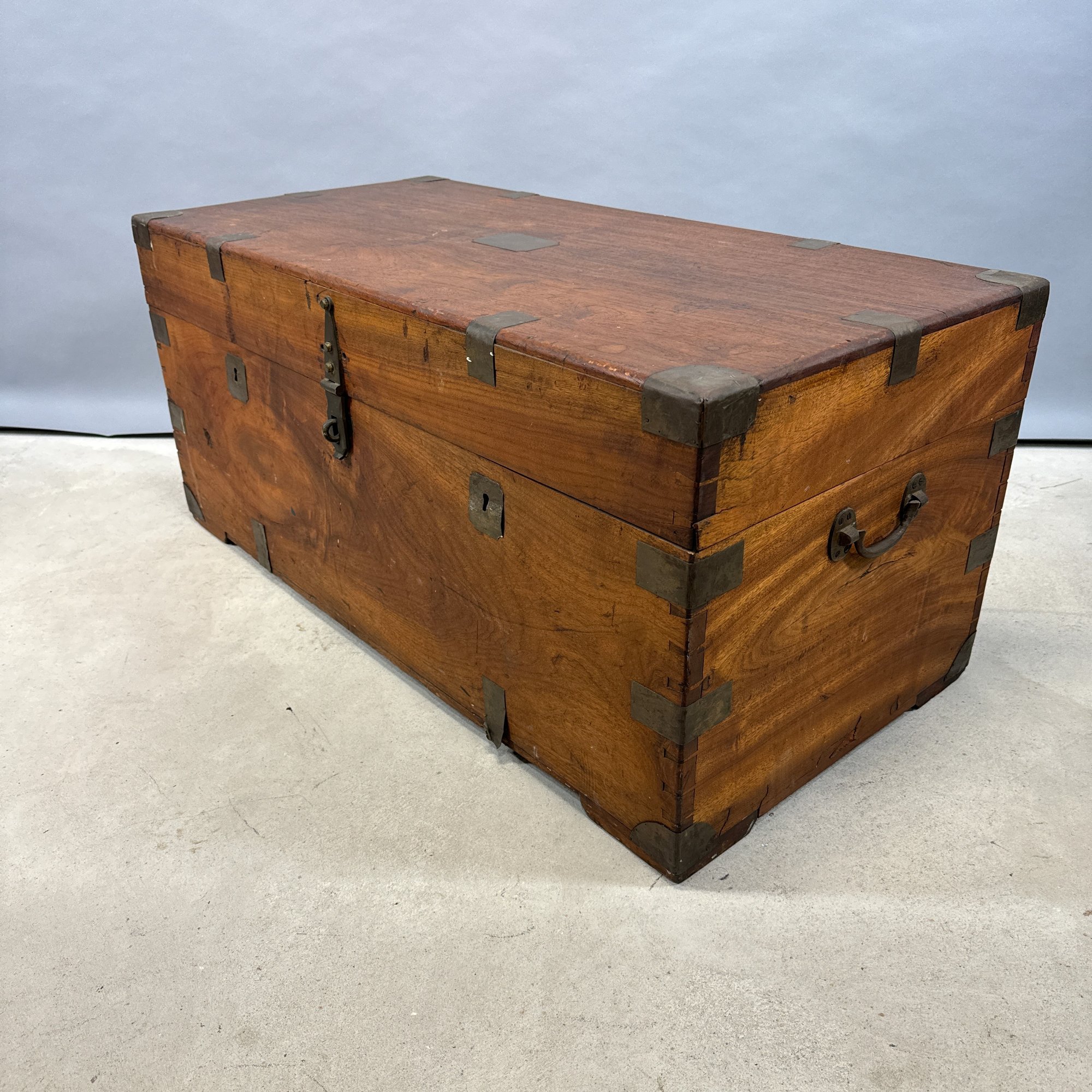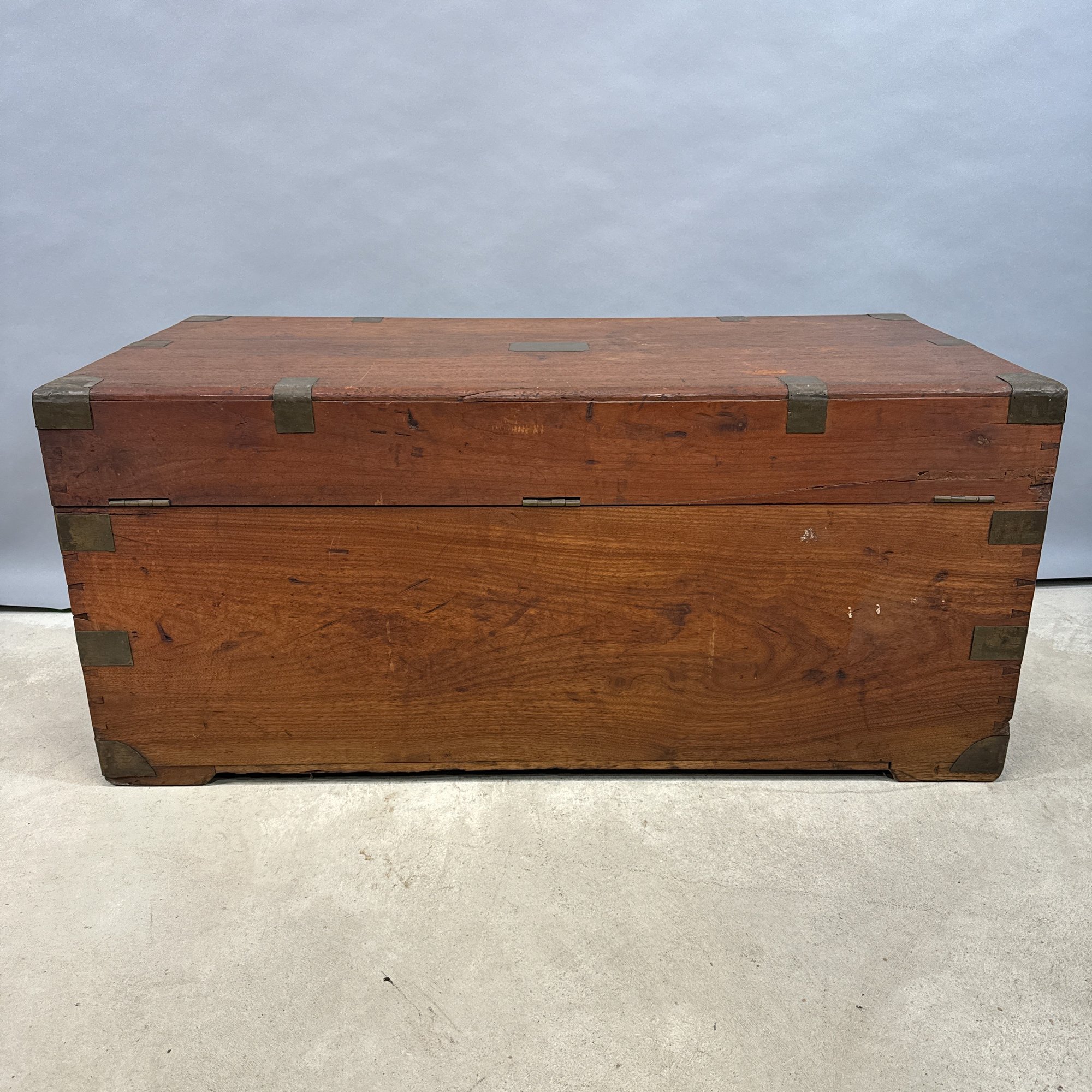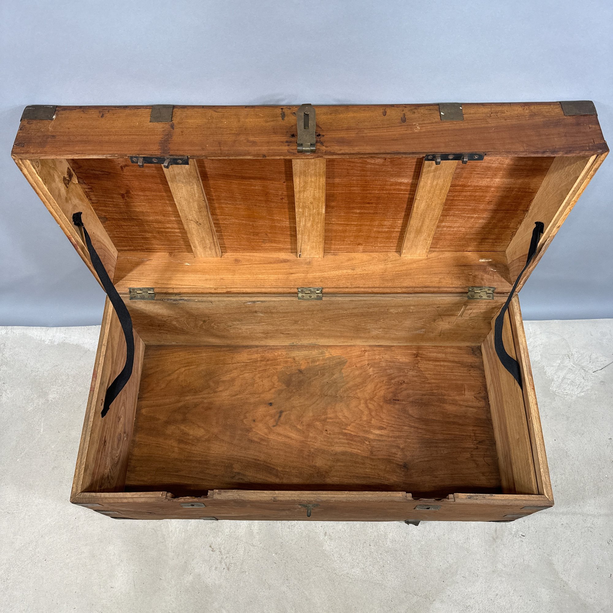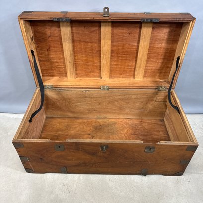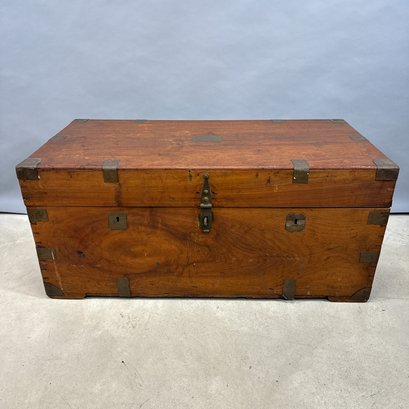 China Trade Brass-Bound Camphorwood Chest. The rectangular lid opening to a storage compartment.
