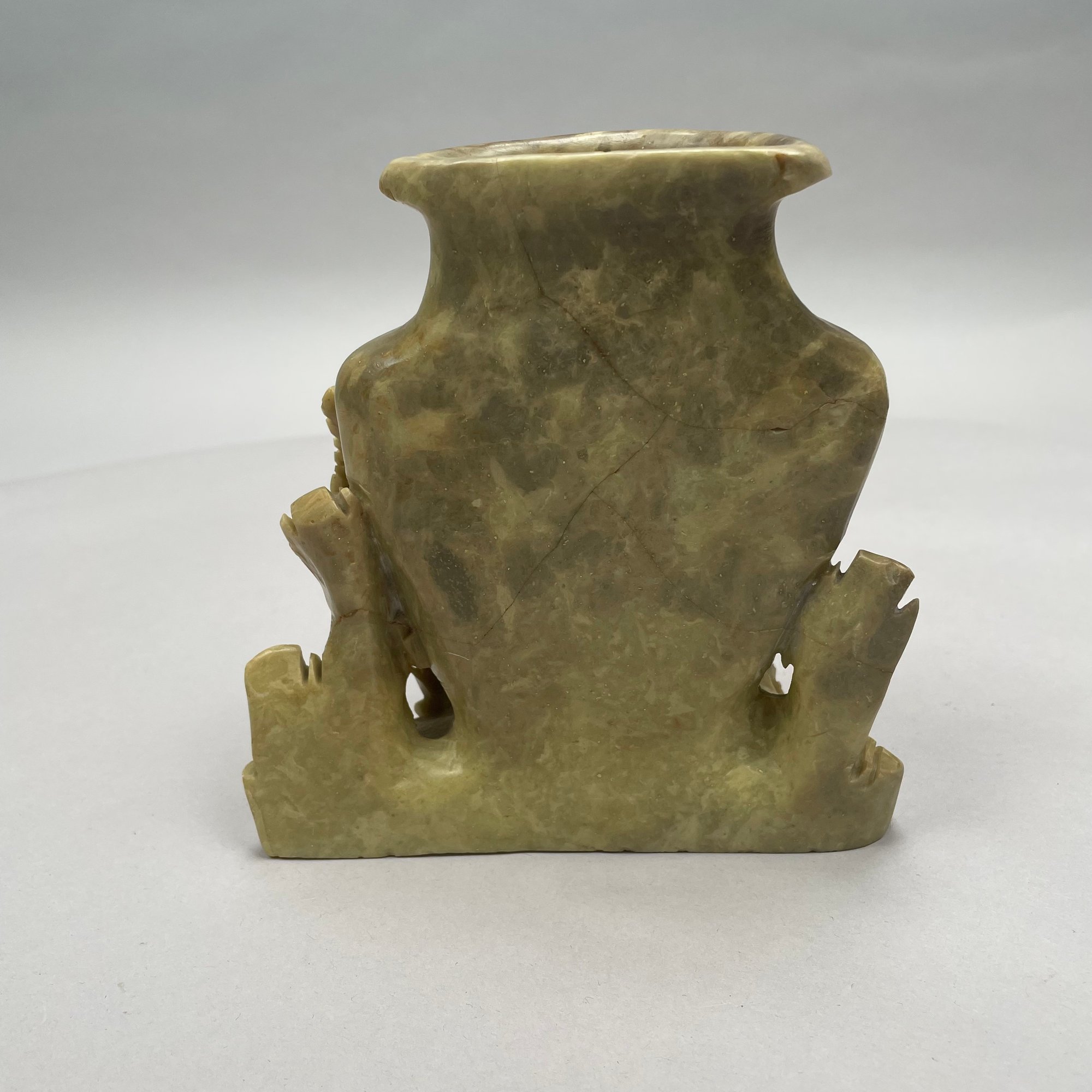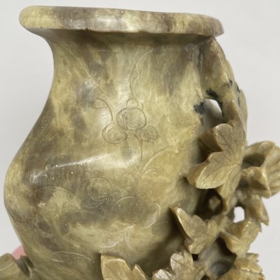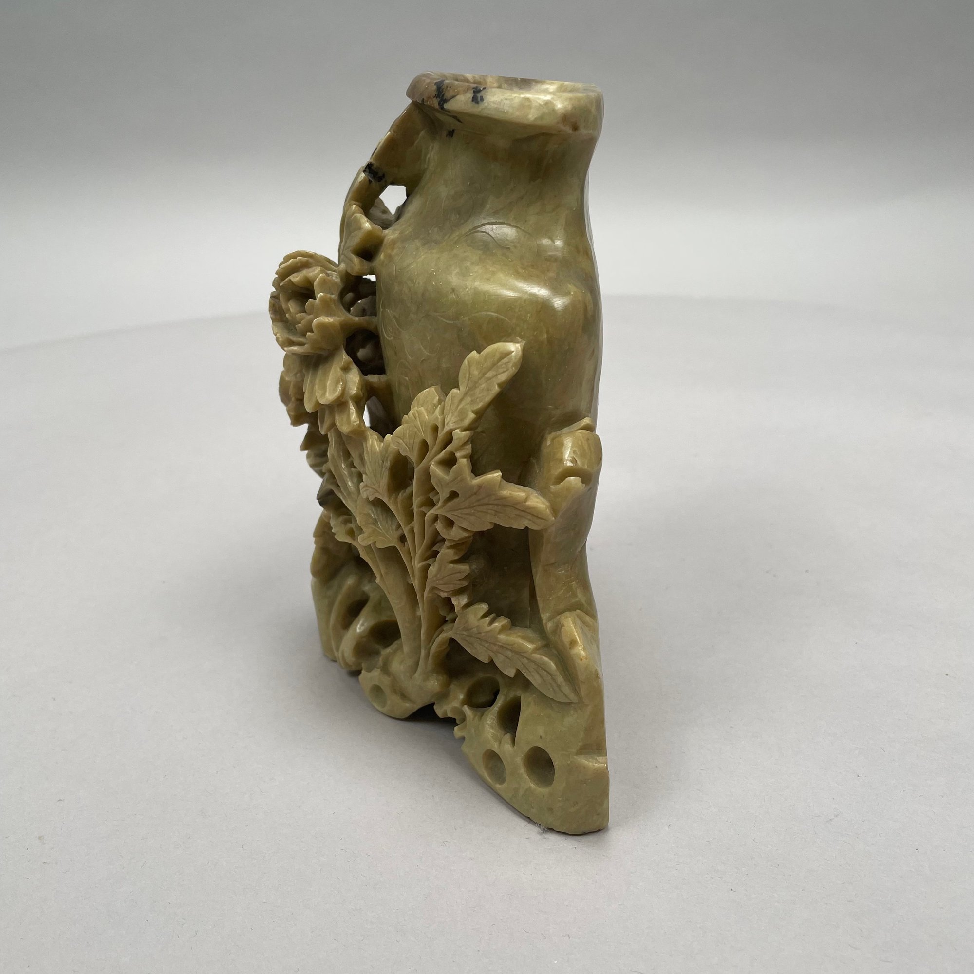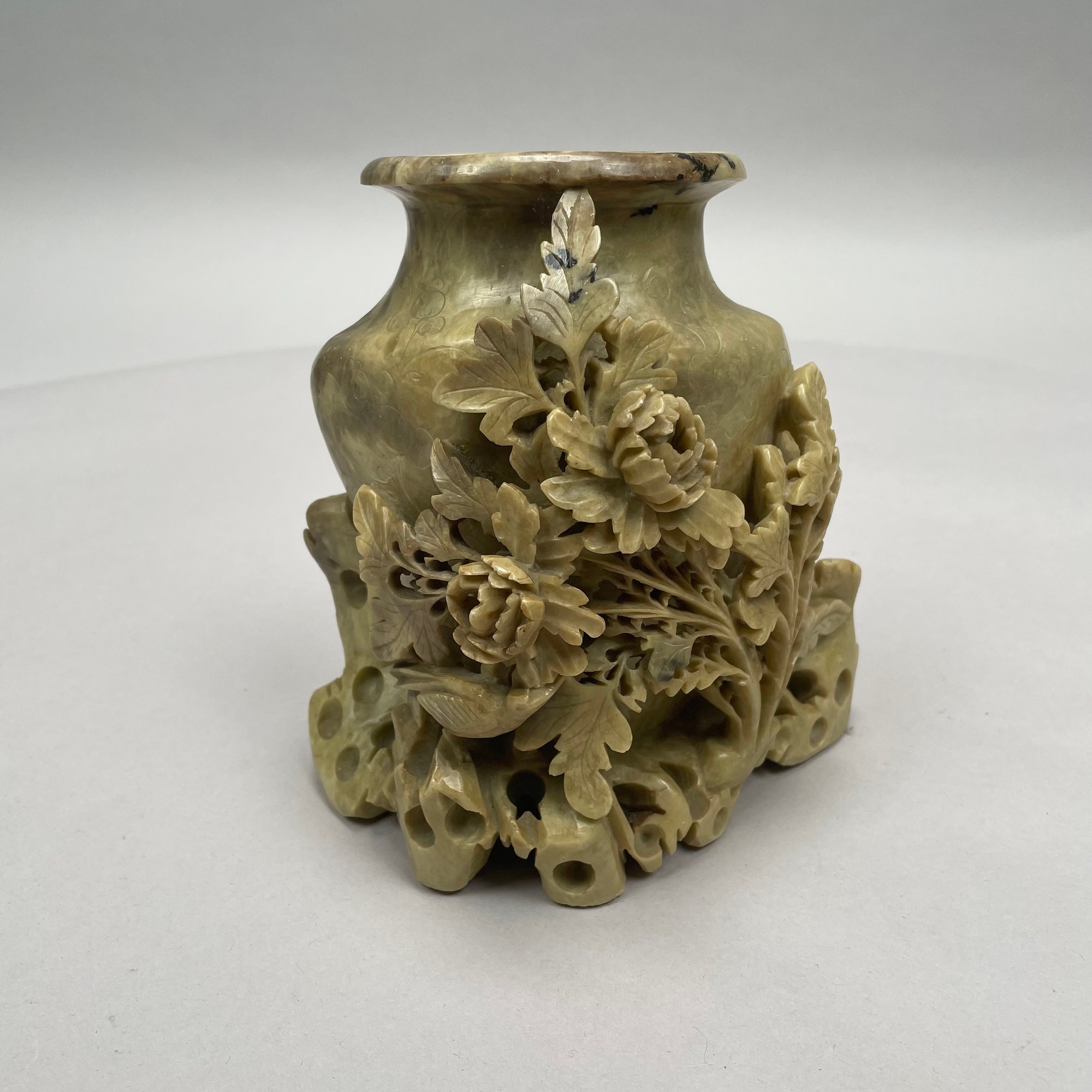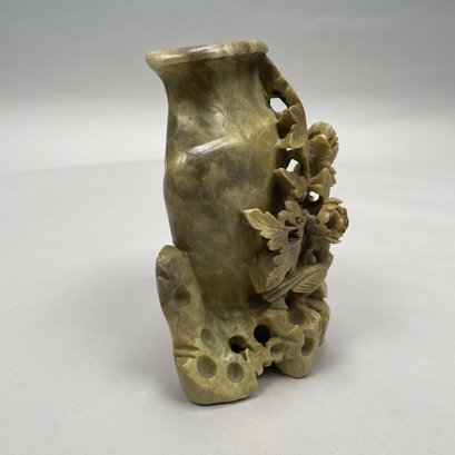 Chinese Carved Soapstone Vase. The vase incised with floral sprays and pierce-carved with rockwork and peony sprays.