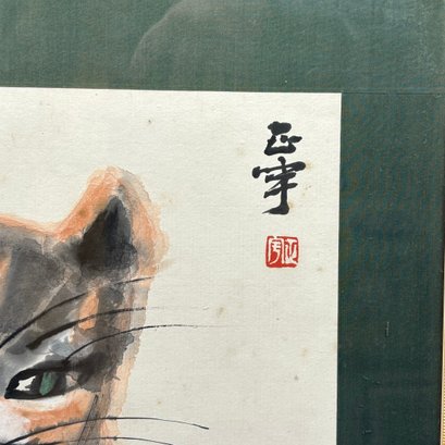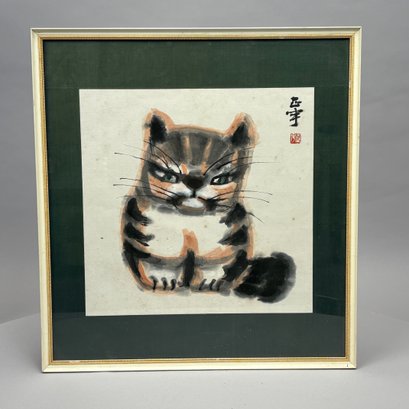 Chinese Painting of a Tabby Cat. Ink and watercolor on paper, signed and with red seal, (13.375 x 13.625 inches, sight).