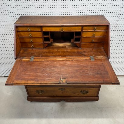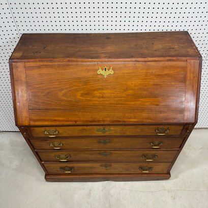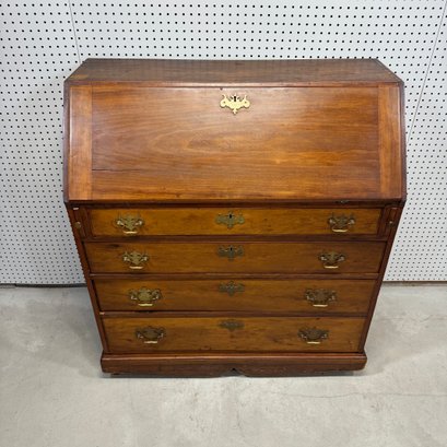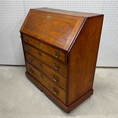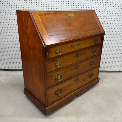 Chippendale Maple Slant-Front Desk. The rectangular top above a slant-front, above four molded graduated drawers, raised on a molded base, on casters.