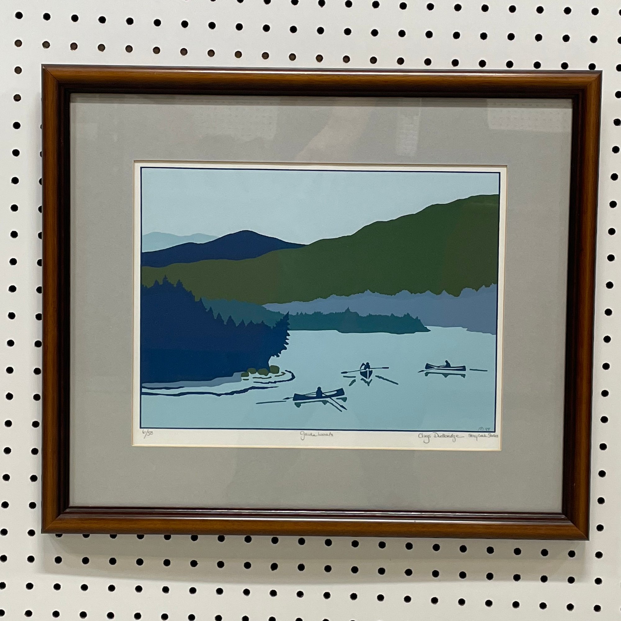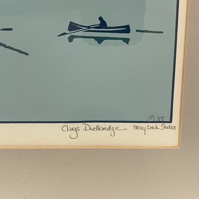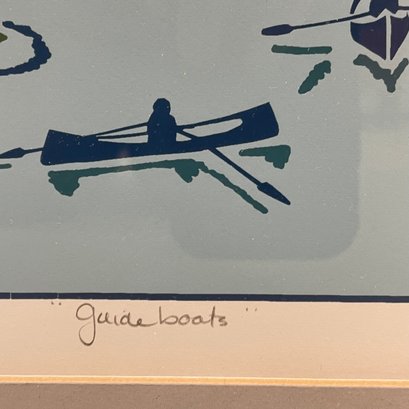 Chrys Dudbridge - "Guideboats," 1988. Print, number 6/ 50, title "Guideboats" lower center, "6/50" lower left and "c 88,"/ "Chrys Dudbridge Stony Creek Studios" lower right, all in pencil, (10.25 x 13.5 inches, sight).