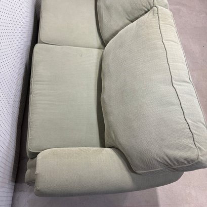 Contemporary Upholstered Sofa on Bun Feet.