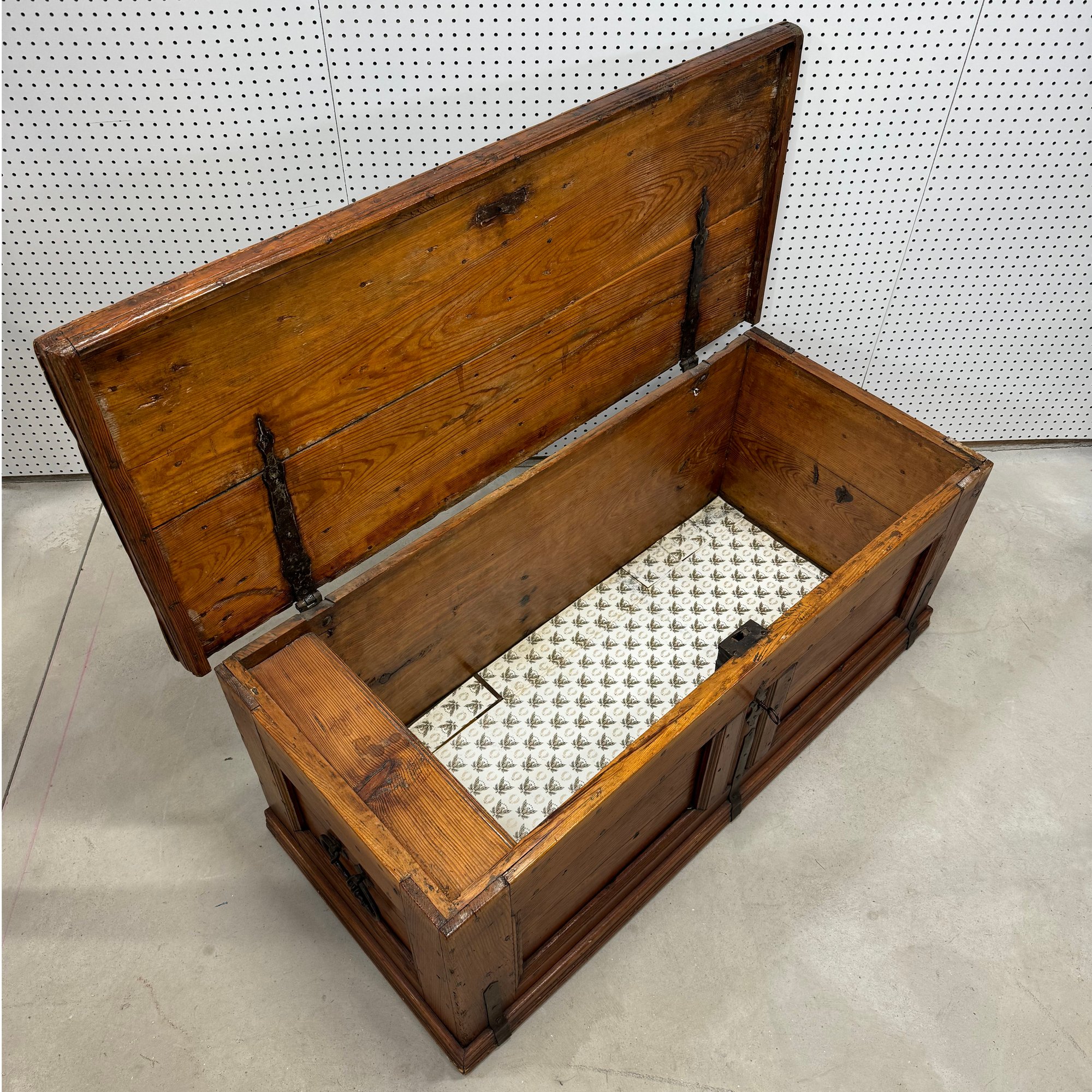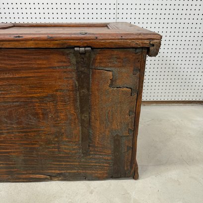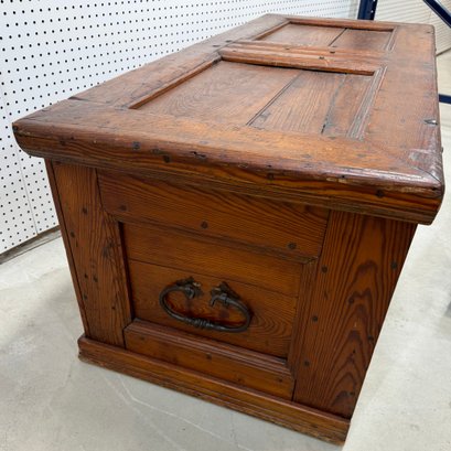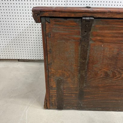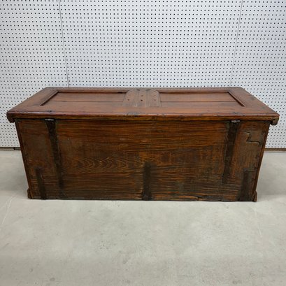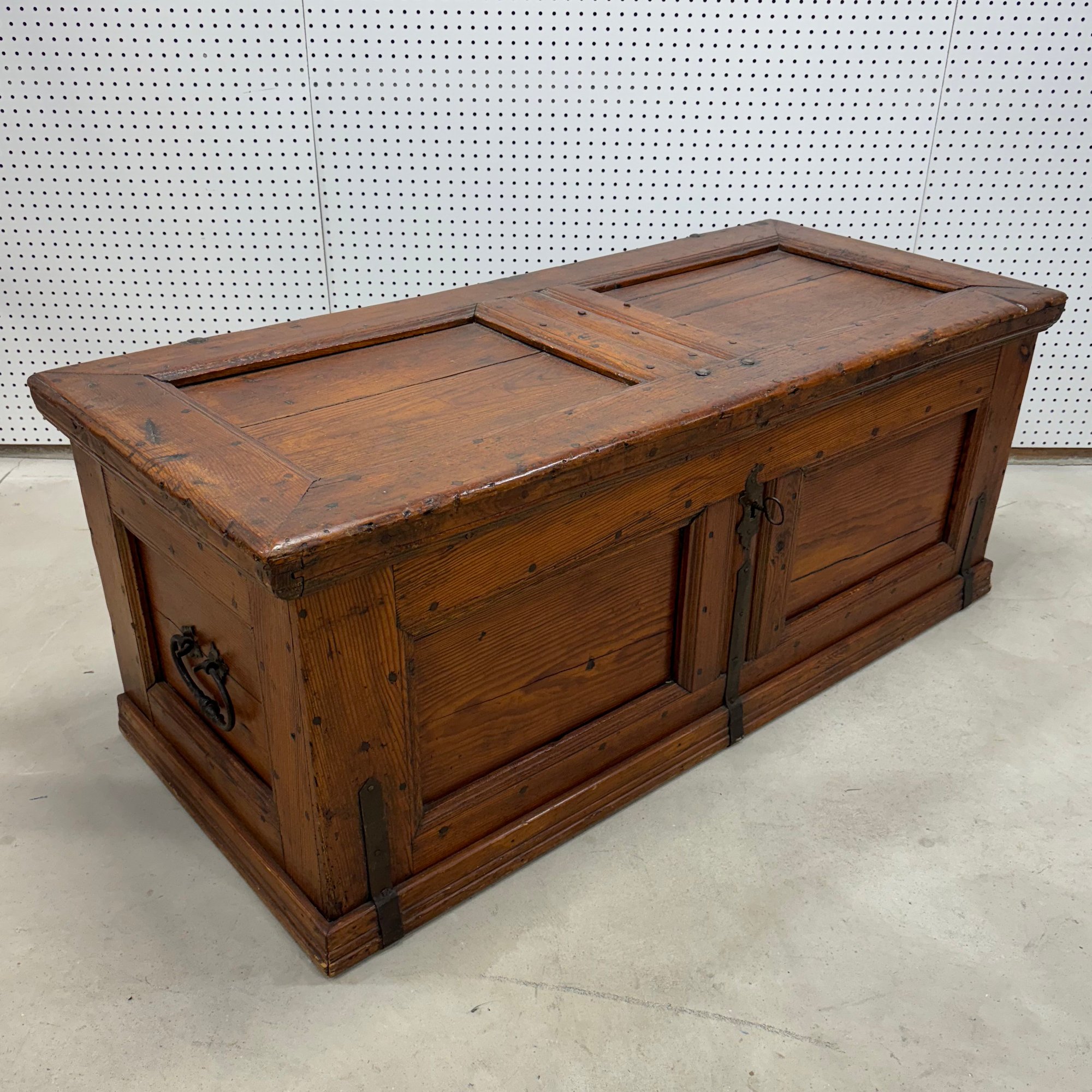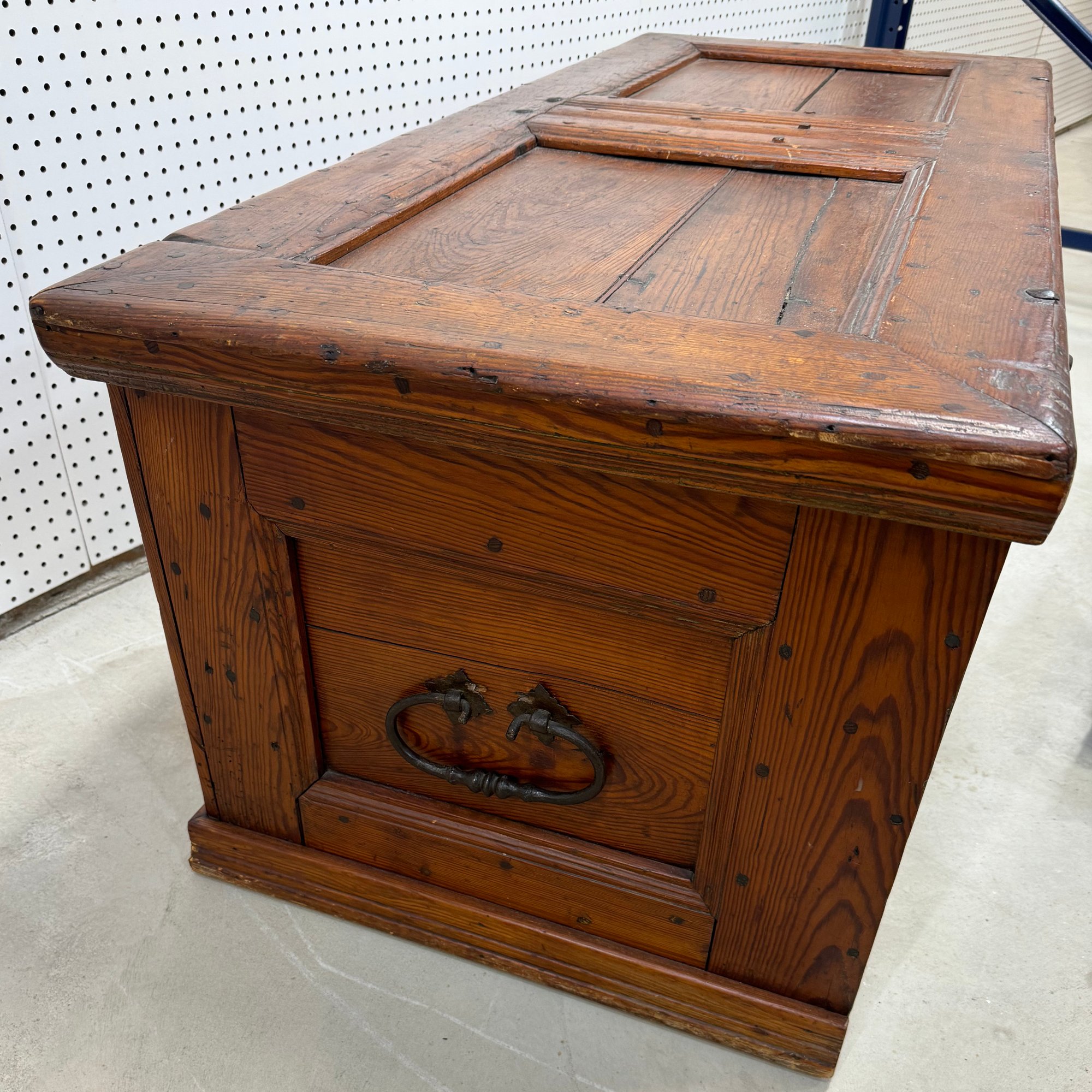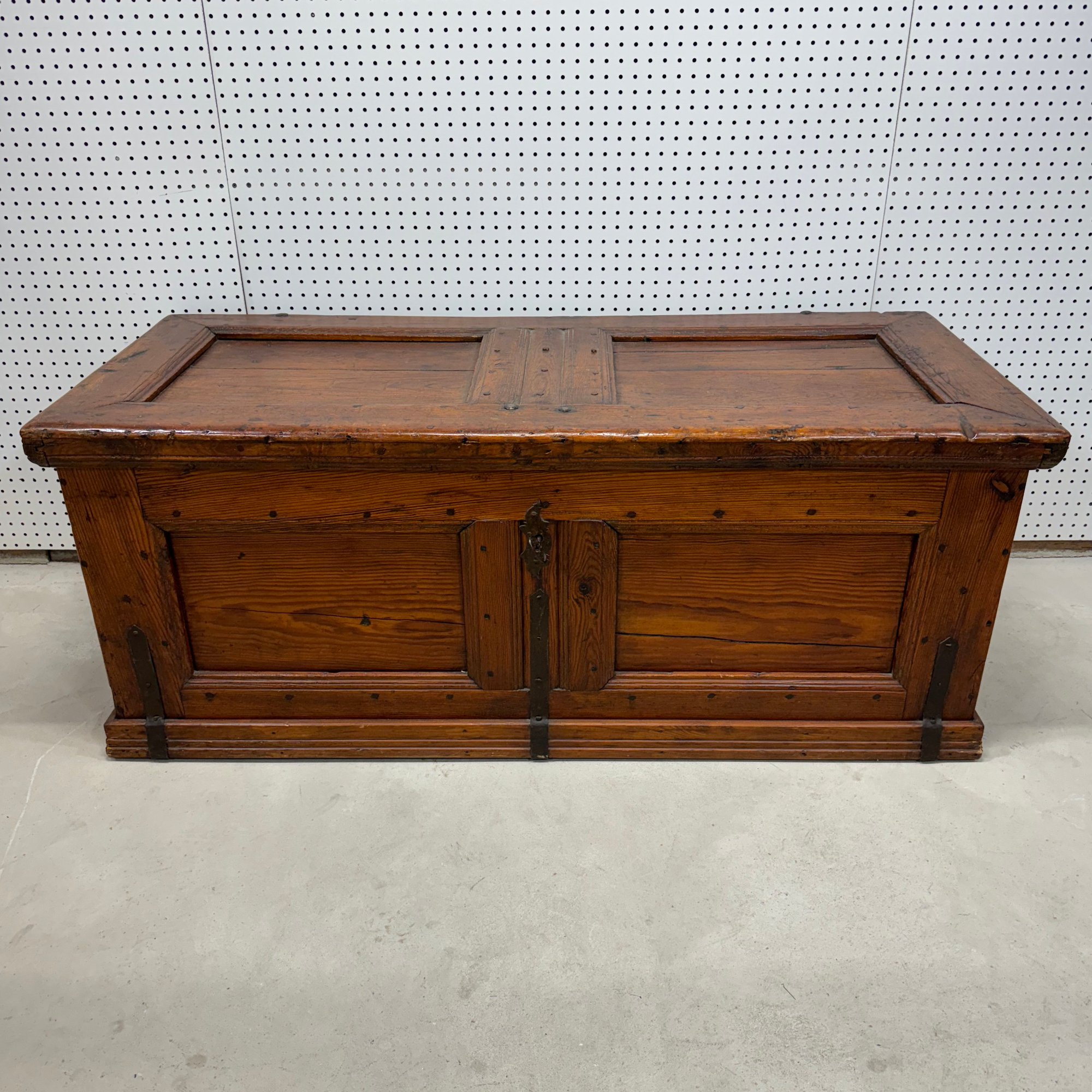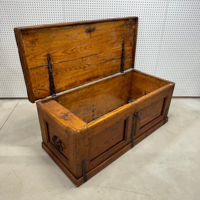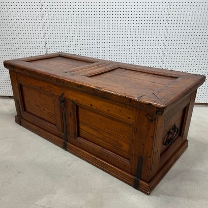 Continental Pine Trunk with Wrought-Iron Hinges, Lock Plate and Bail Carrying Handles.