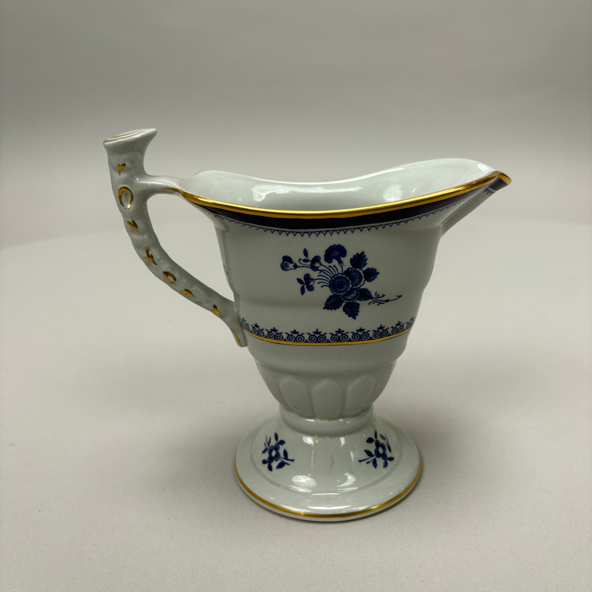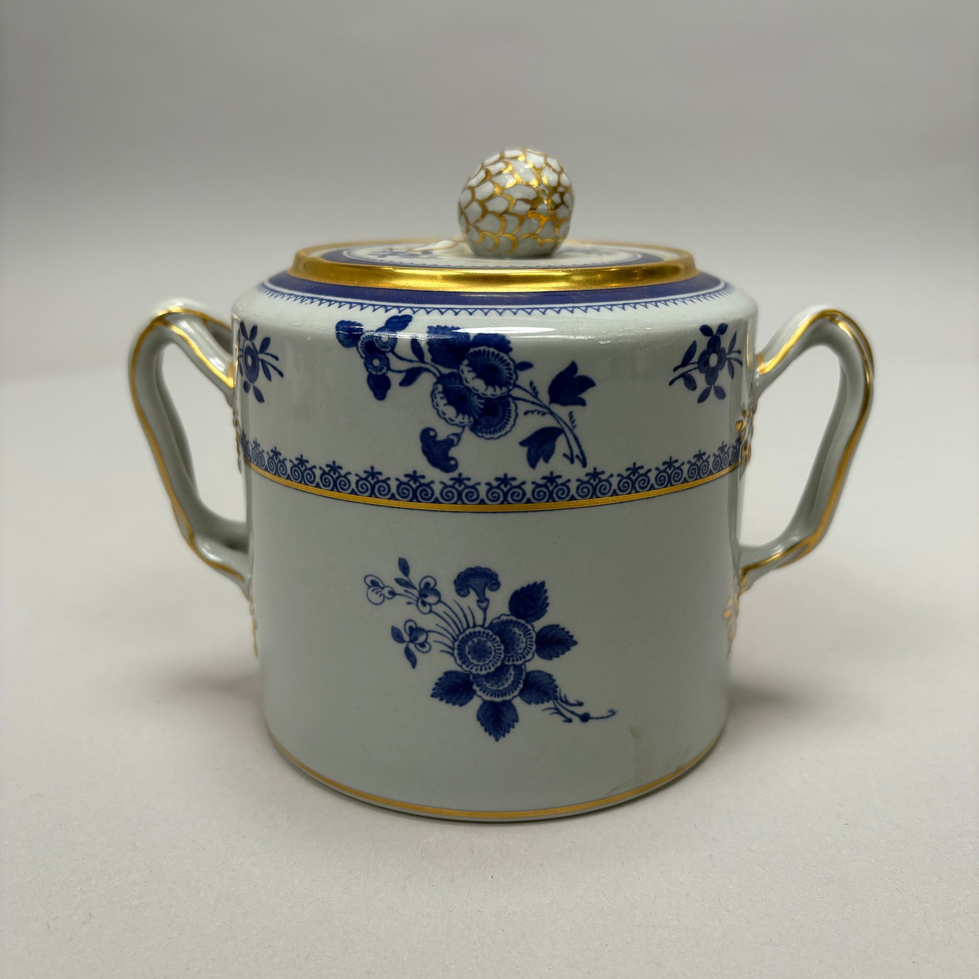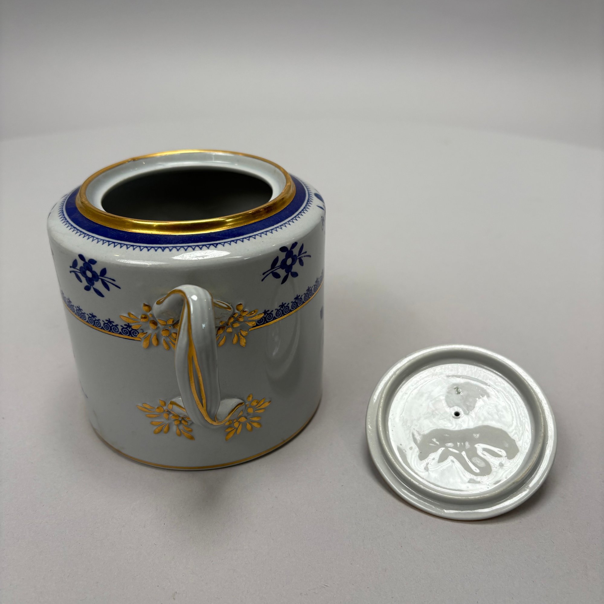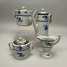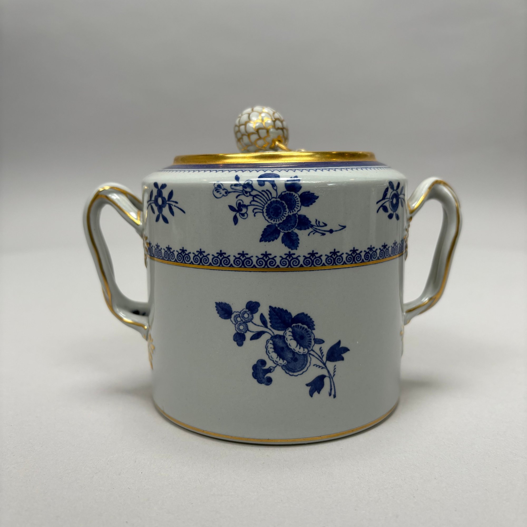 Copeland Spode Blue 'Spode's Gloucester' Tea and Coffee Service, 20th Century. Comprising a lighthouse-form coffeepot, drum-form teapot, sugar bowl and helmet- form cream jug, each marked "COPELAND SPODE/ Stone Lowestoft Style/ Contemporary/ ENGLAND/ SPODE'S GLOUCESTER," pattern "42649" in iron-red.