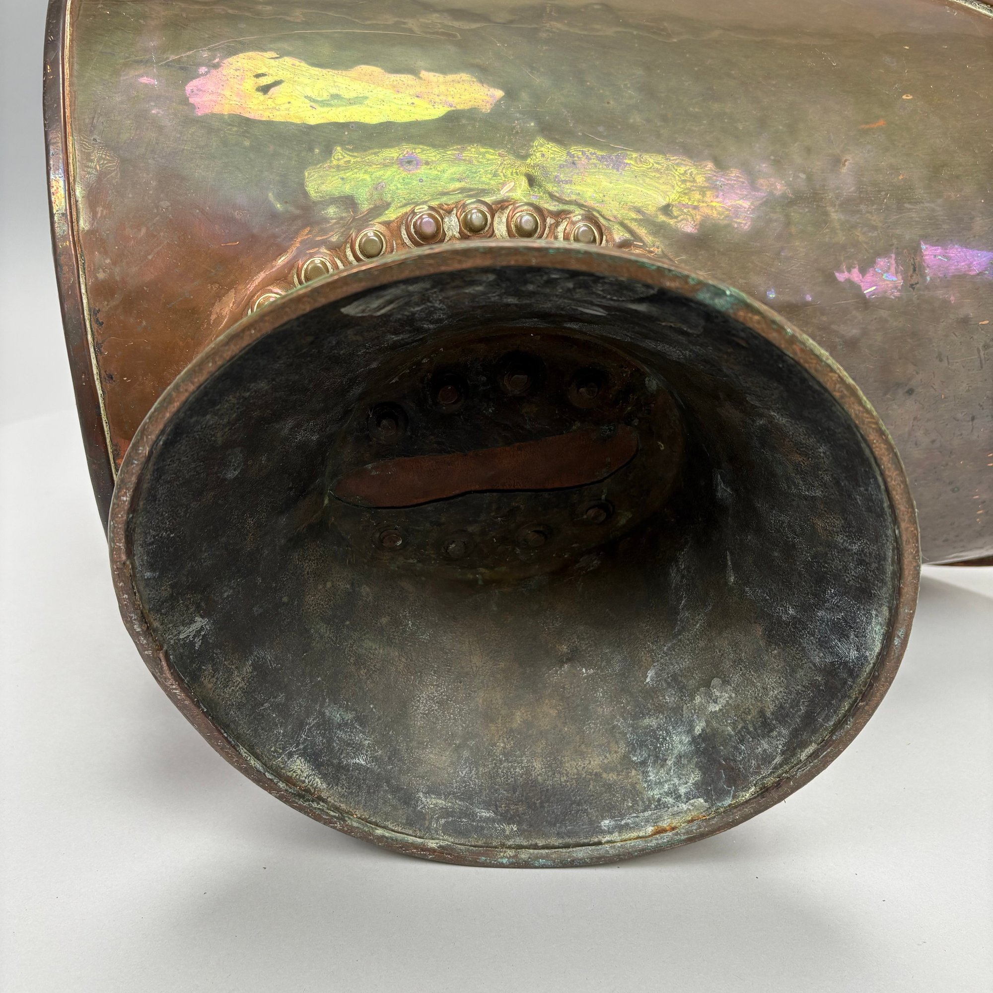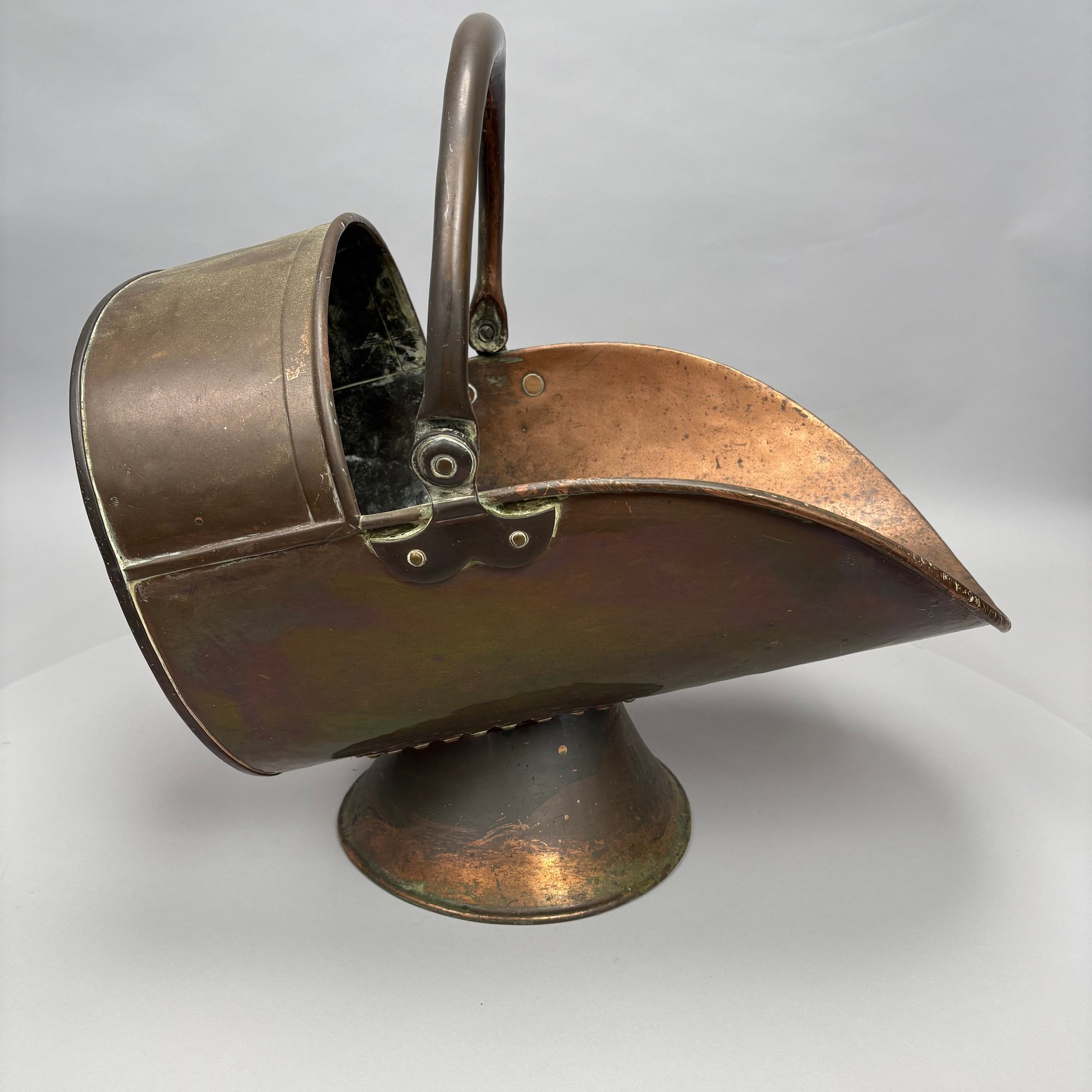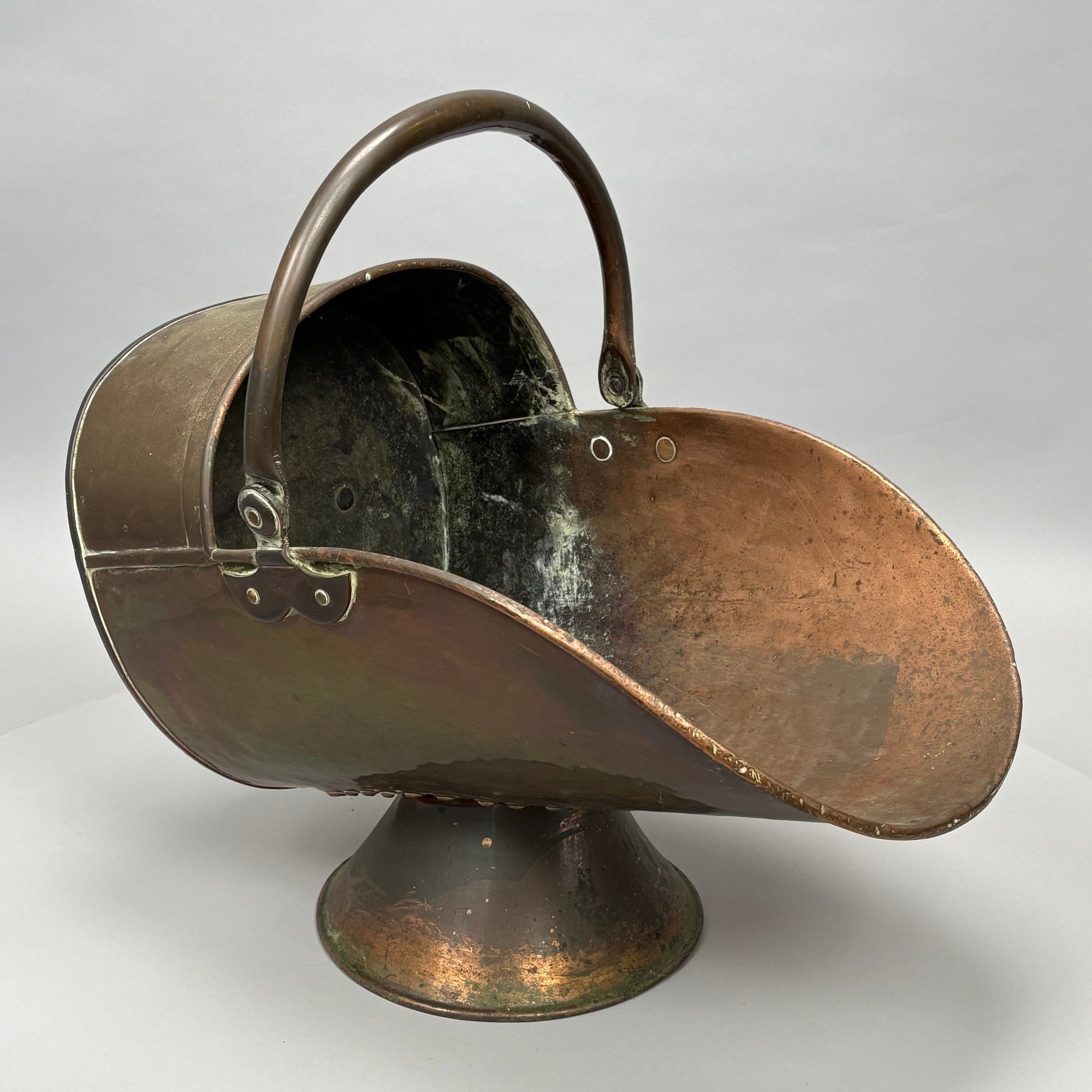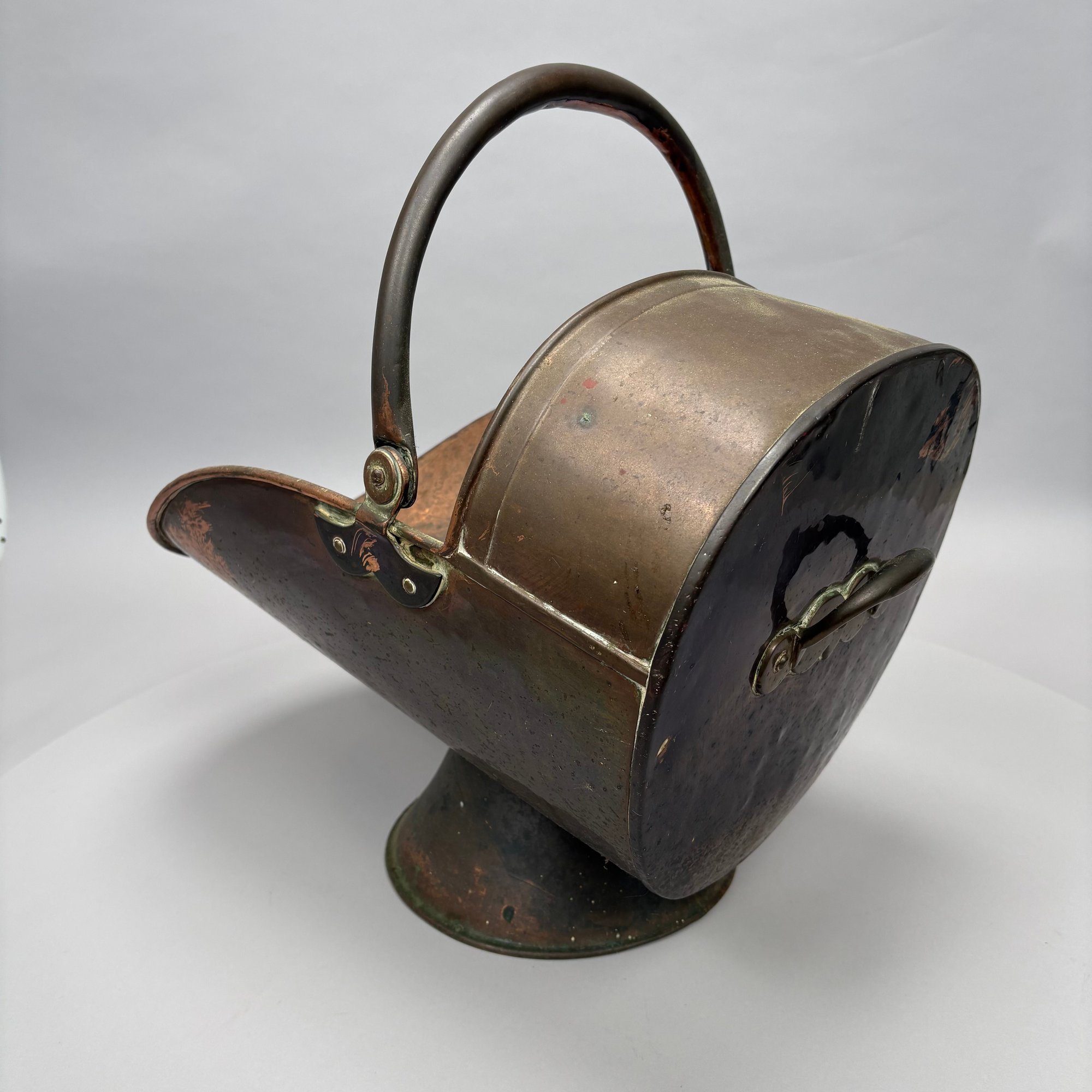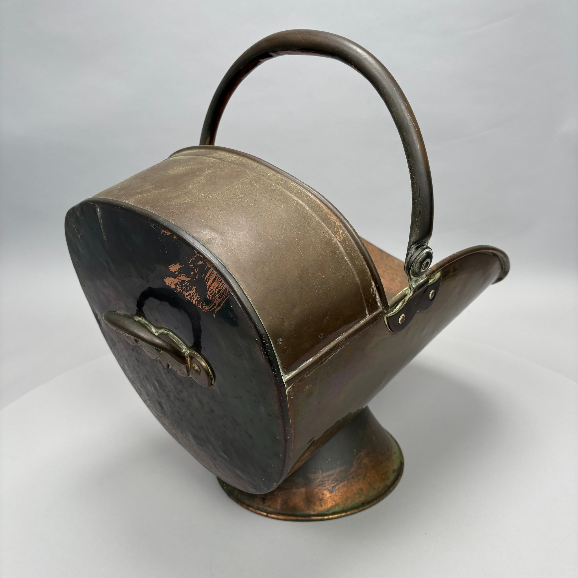 Coal hod: H: 17.5 in., L: 22.25 in., D: 12.375 in.