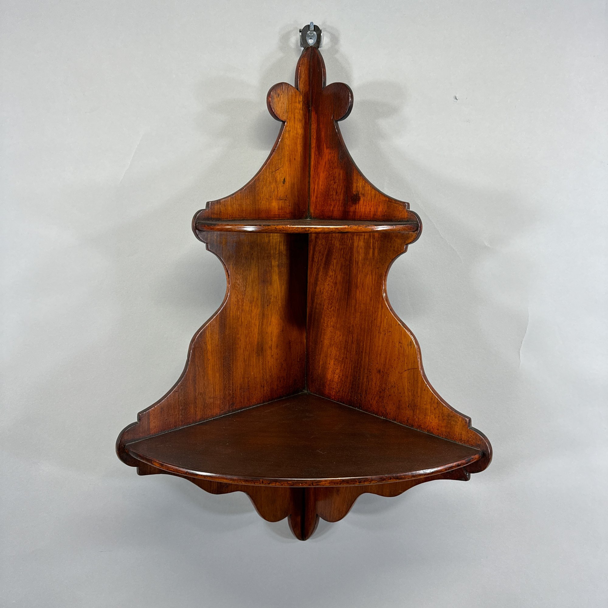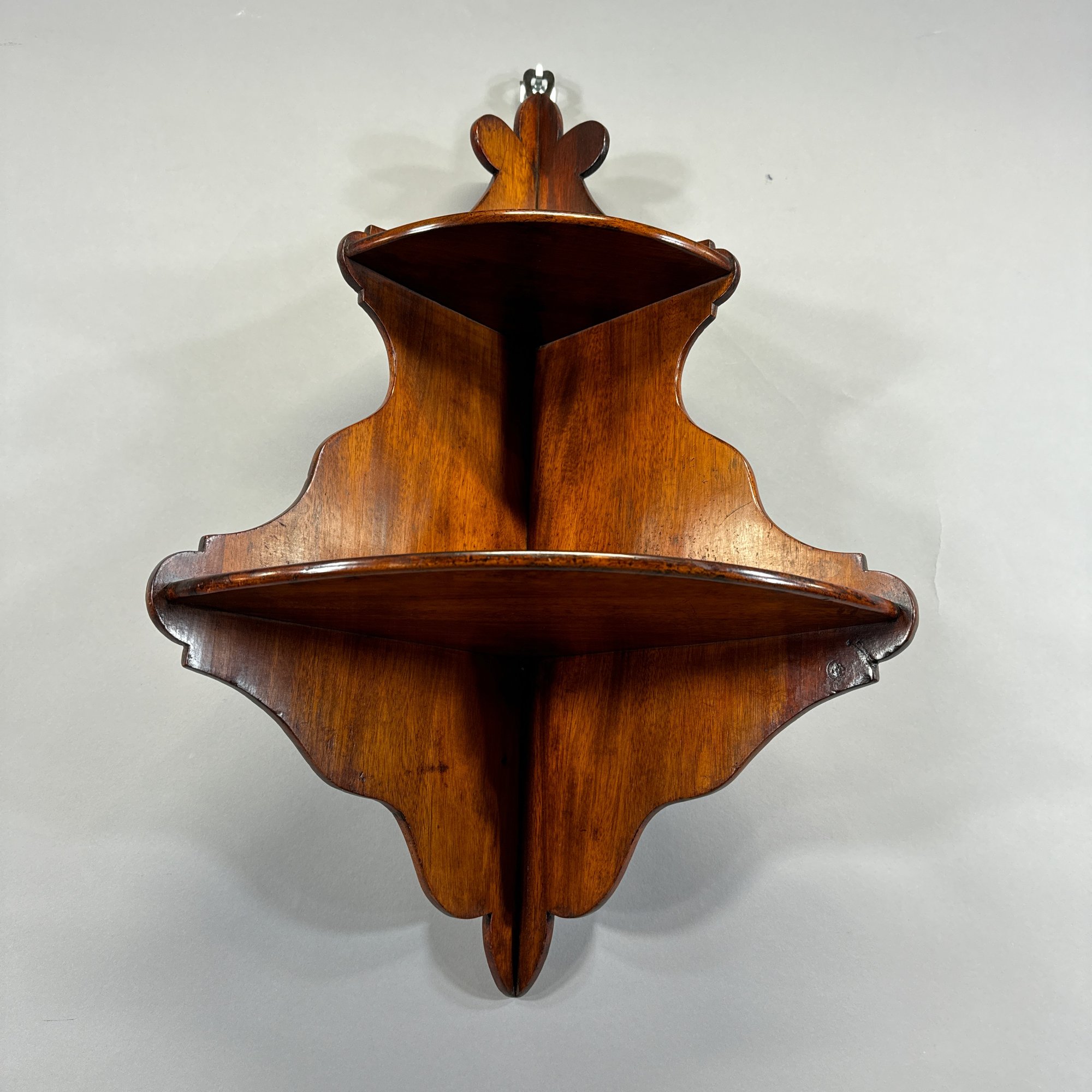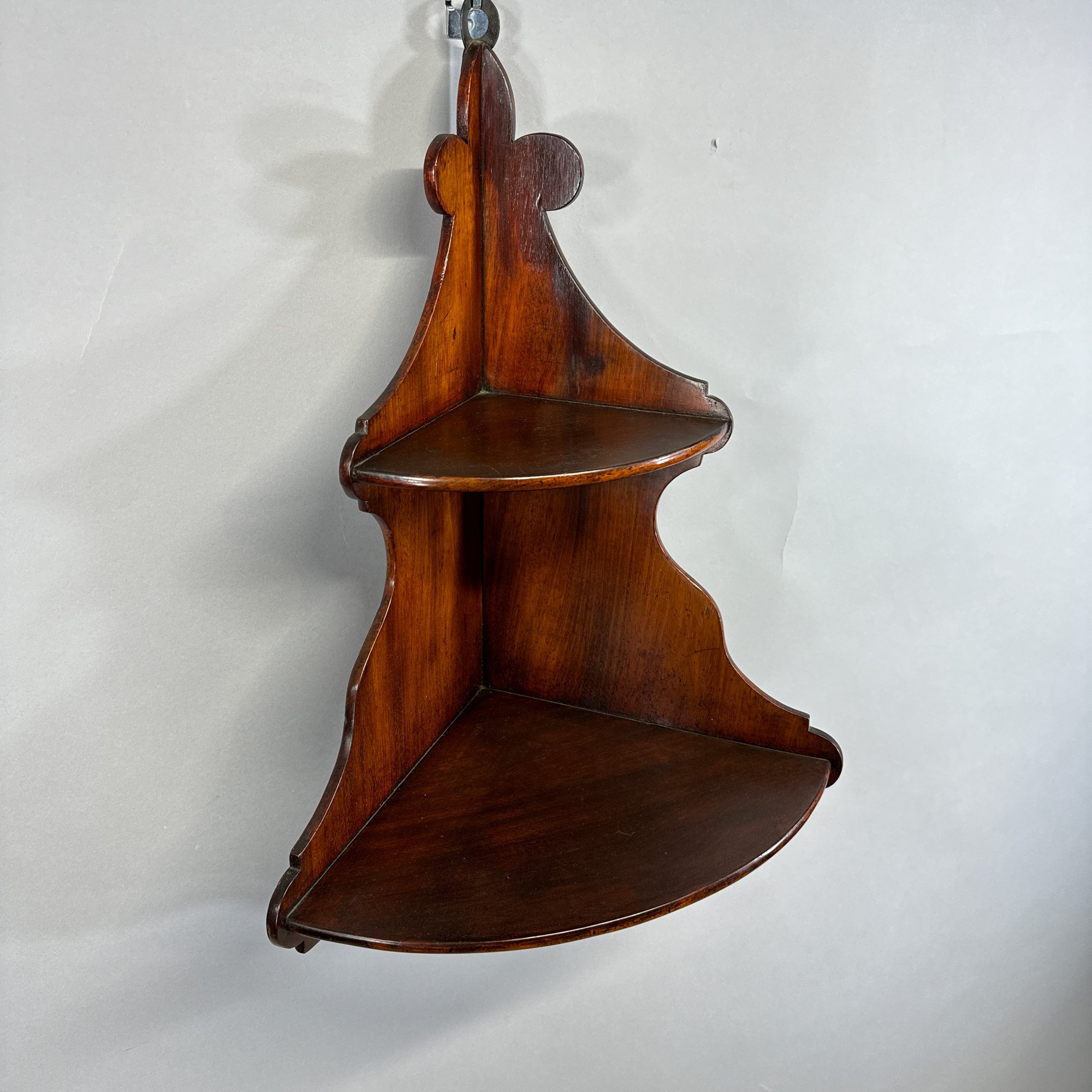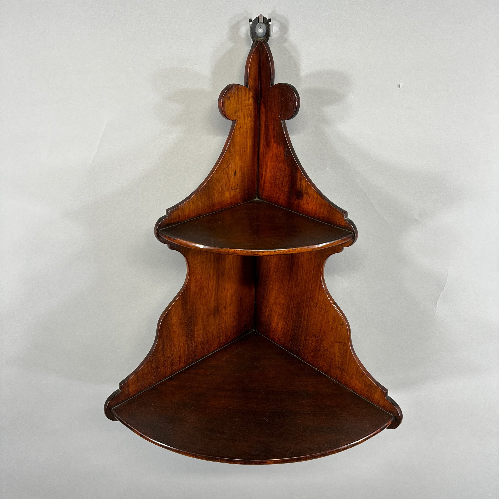Country Primitive Hanging Walnut Corner Shelf. The shaped sides forming a spear-shaped finial, fitted with two graduated shelves.