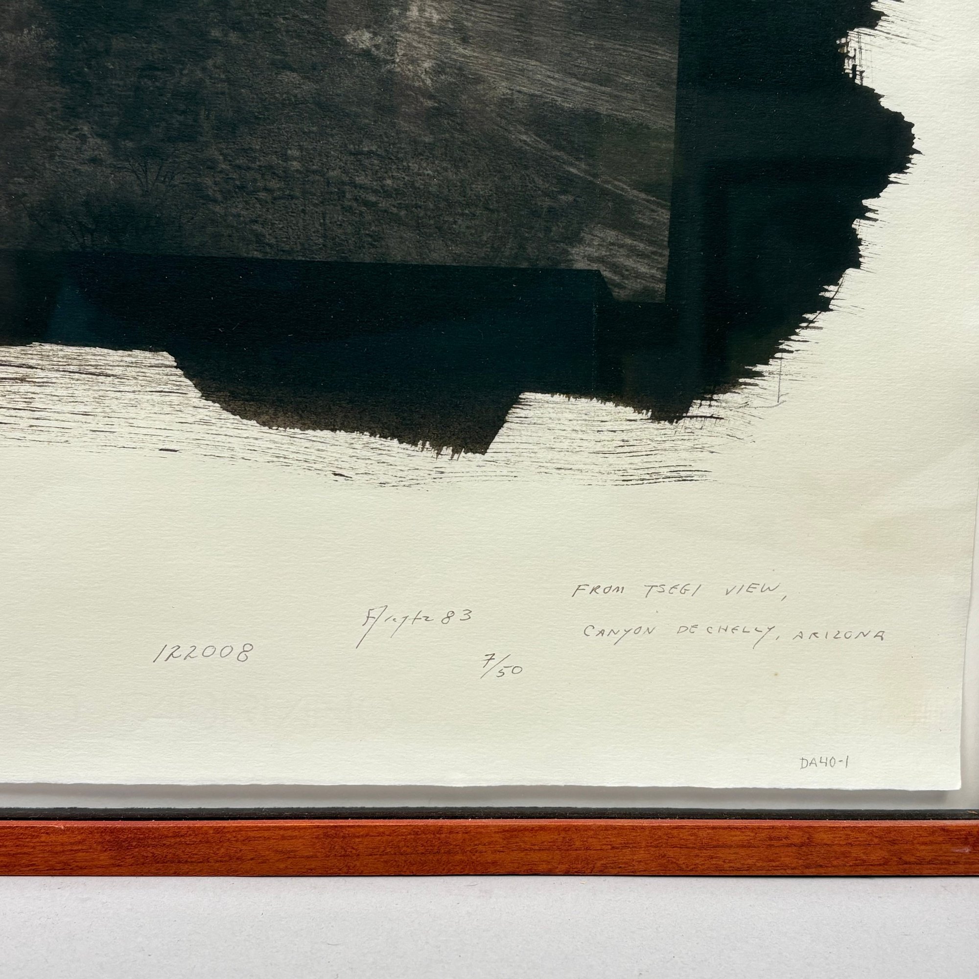 Dick Arentz (B. 1935, American). "From Tsegi View, Canyon de Chelly, Arizona," 1983. Gelatin silver print, edition #7/50, titled, signed and dated "Arentz 83," "122008" and "DA40-1" all in pencil lower right, (Sheet size 21.75 x 26.125 inches).
