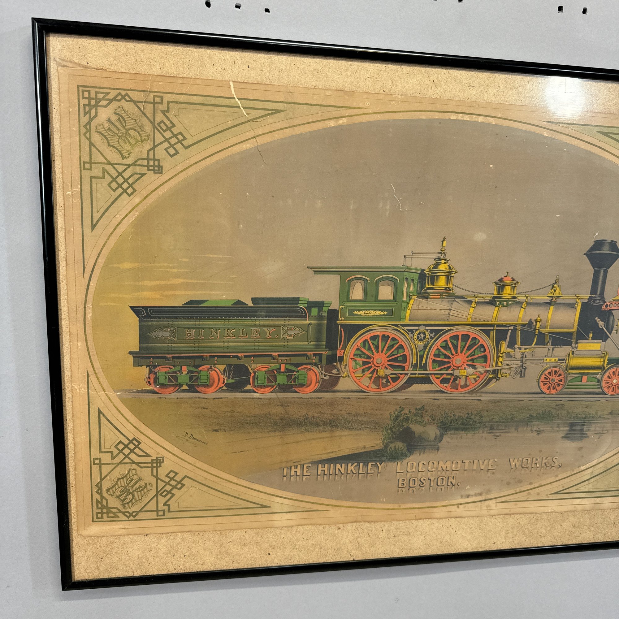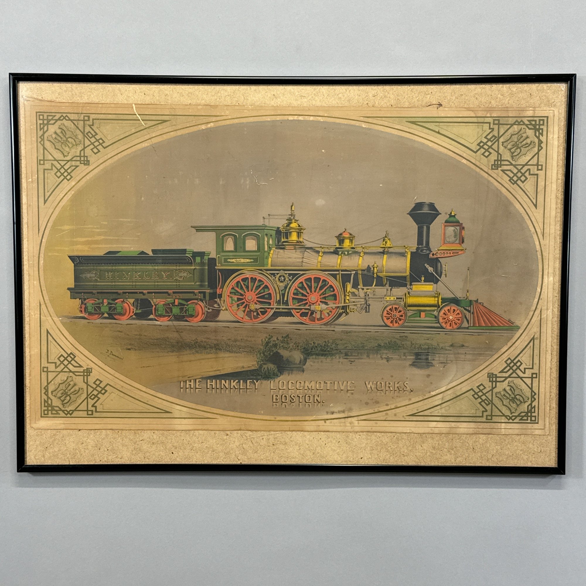Dominick I. Drummond (c. 1830-1899). "The Hinkley Locomotive Works, Boston." Color lithograph, printed by C.H. Crosby & Co. Lithographers, published in Boston 1870-1880, signed "D. Drummond" lower left, (sheet size 16.75 x 27 inches).