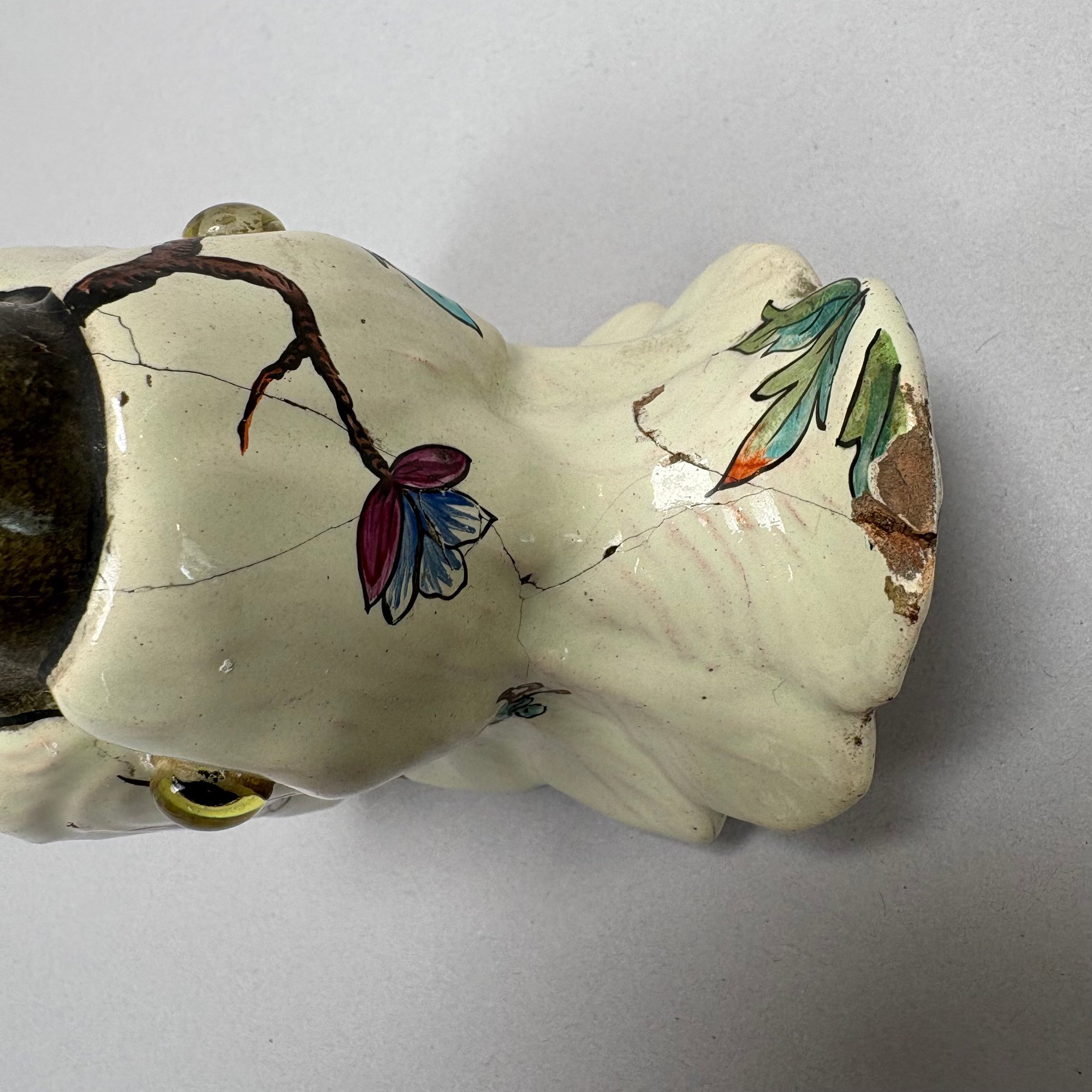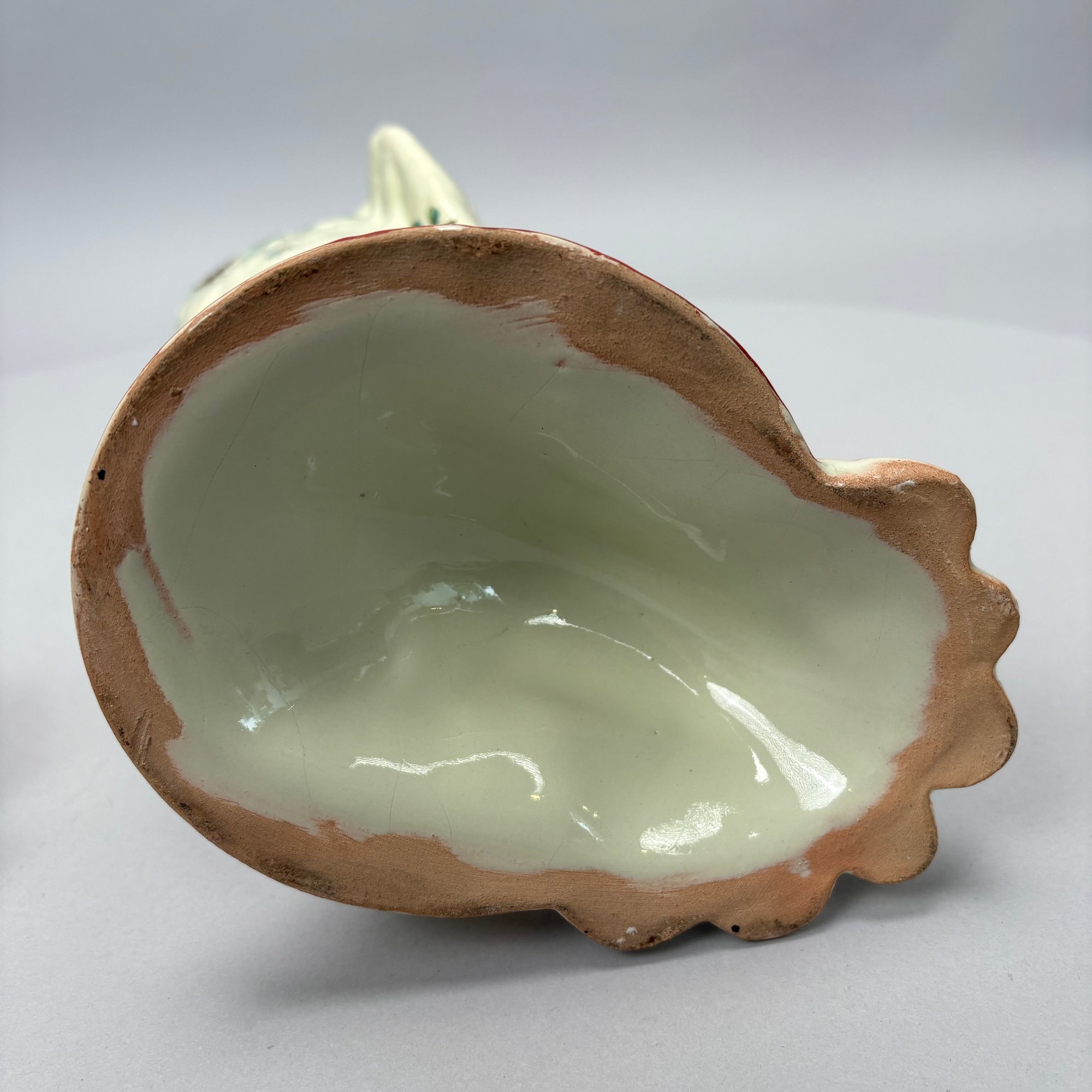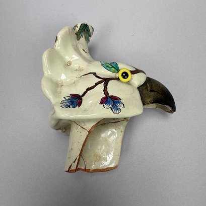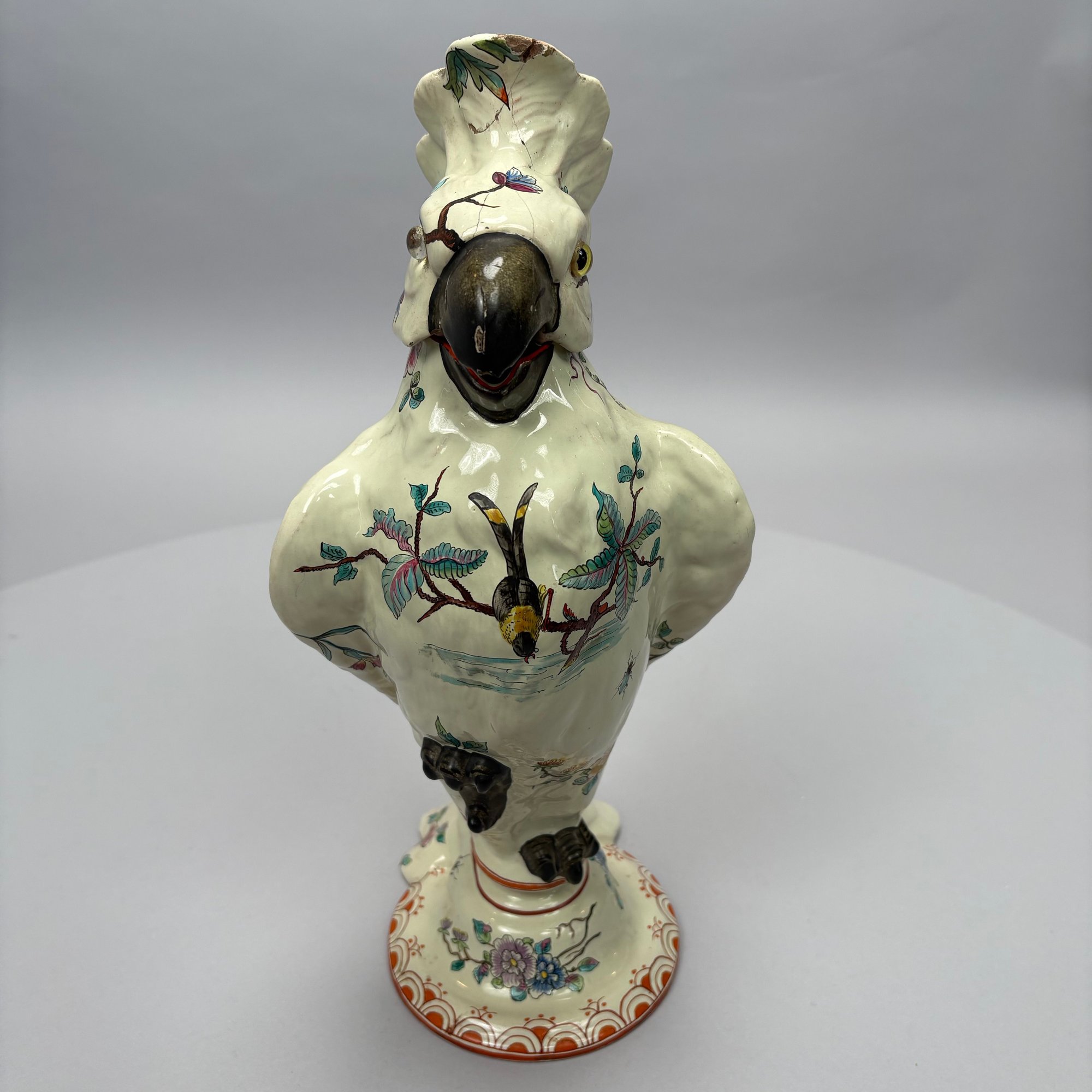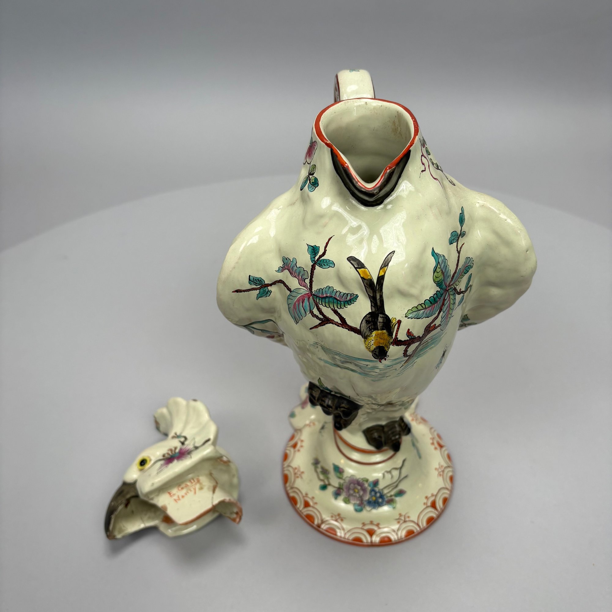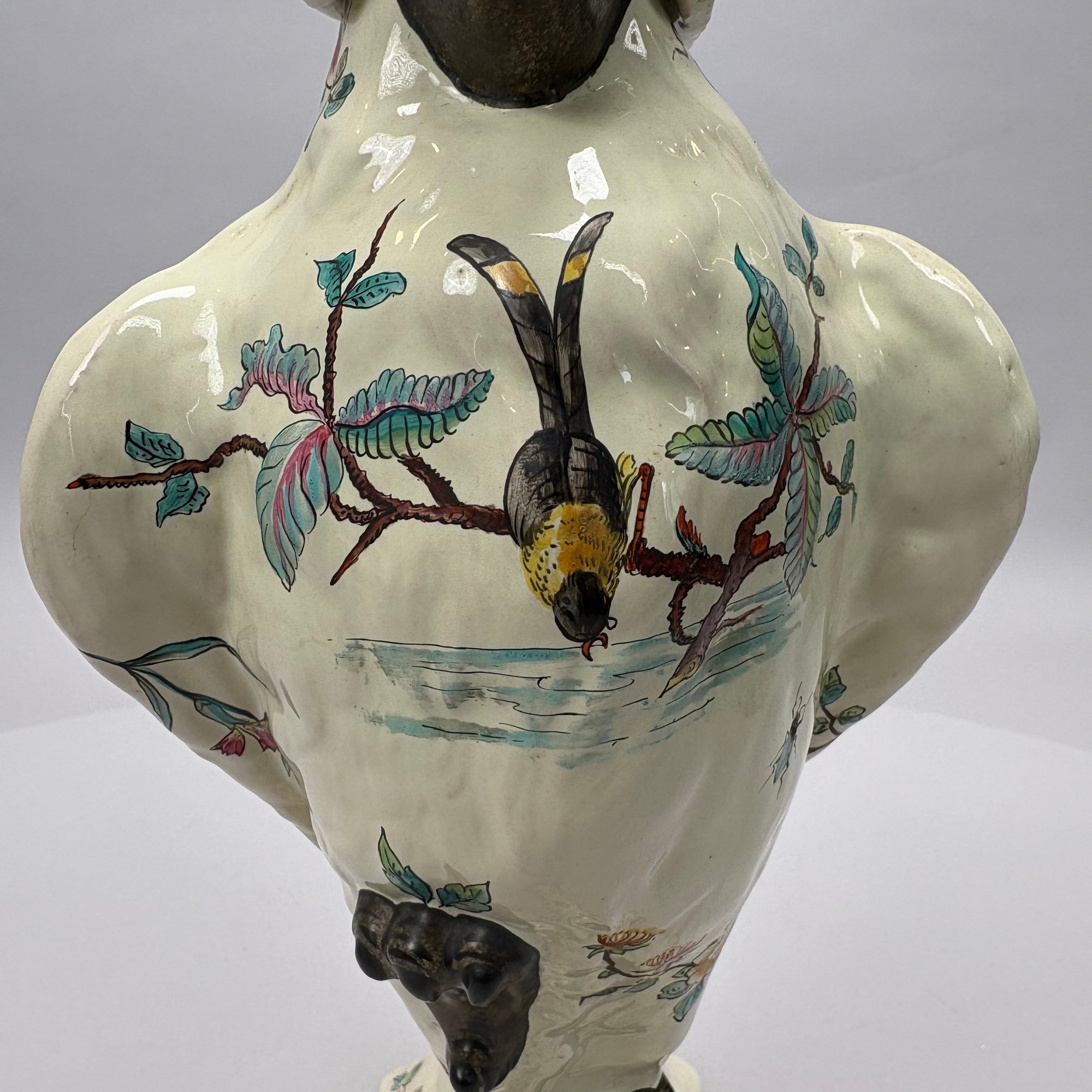 Cockatoo pitcher: H: 14.625 in., W: 7.75 in., D: 6 in.