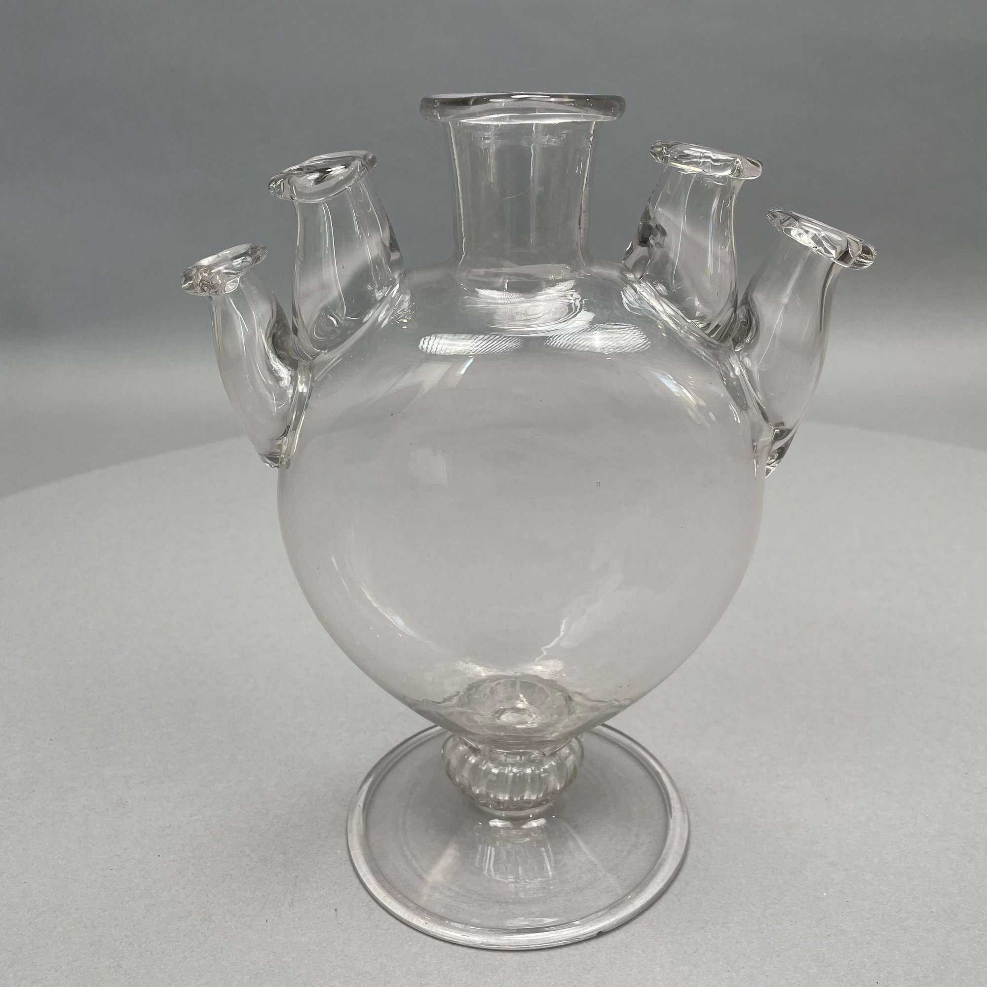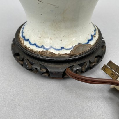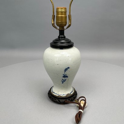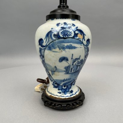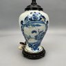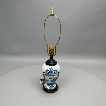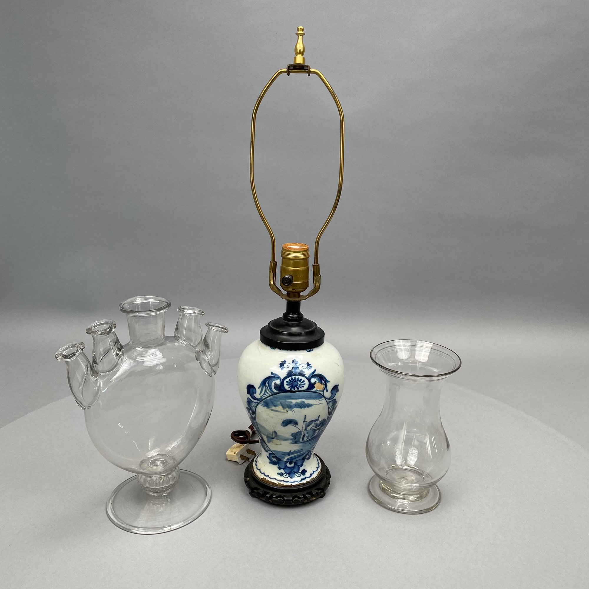 Dutch Delft Blue and White Lamp, a Colorless Blown Glass Tulip Vase and a Baluster Vase.