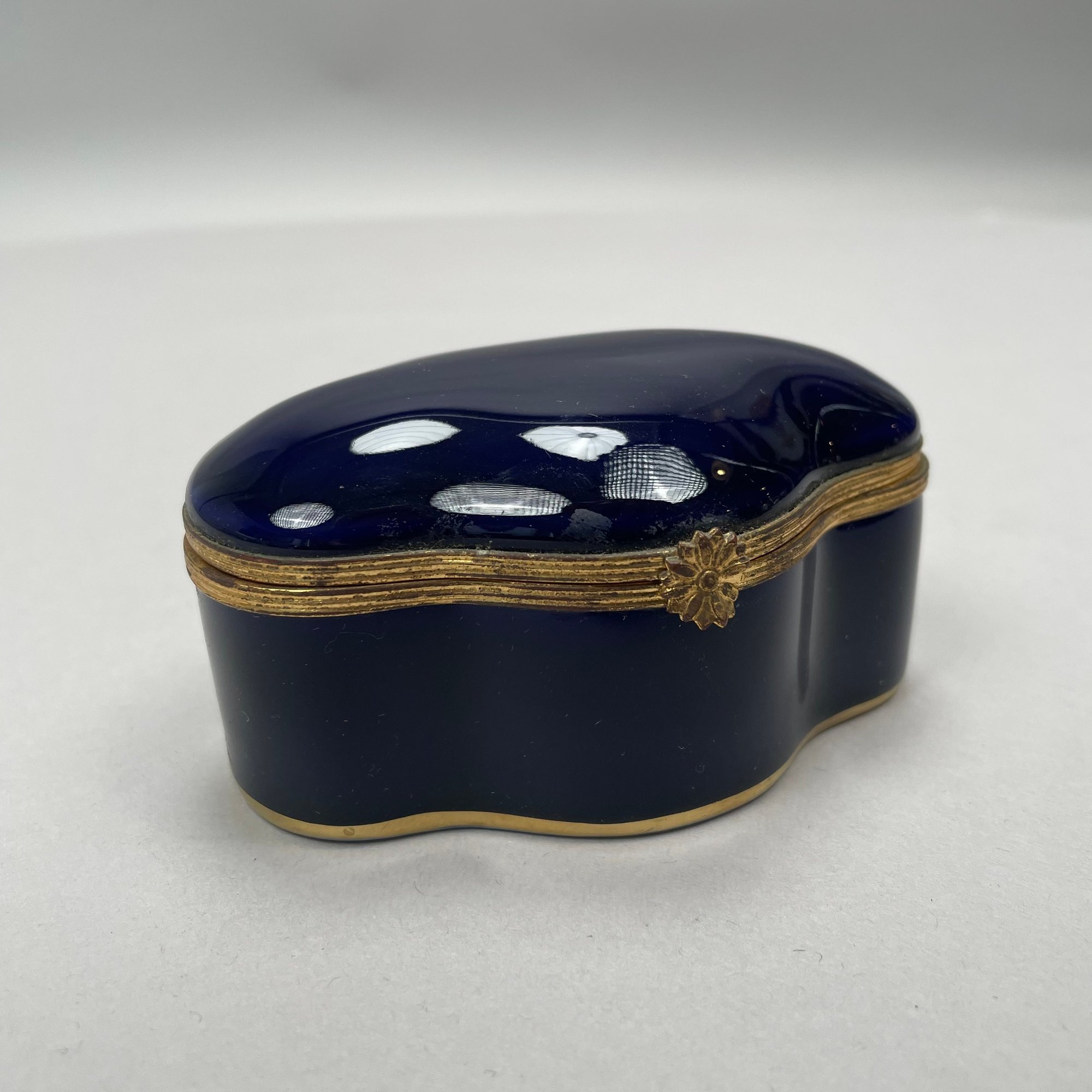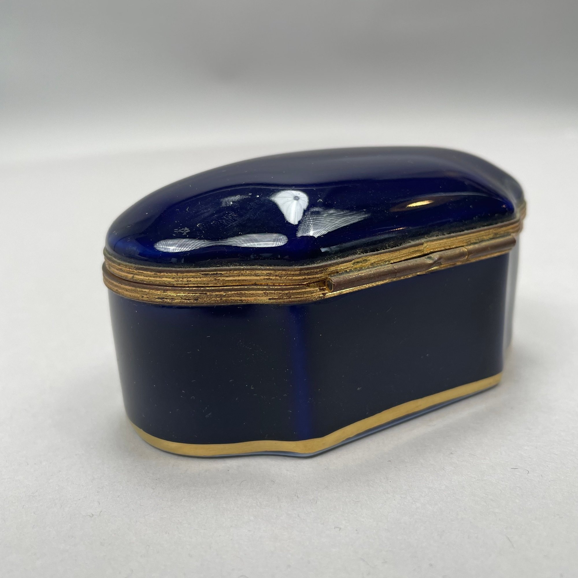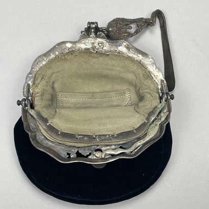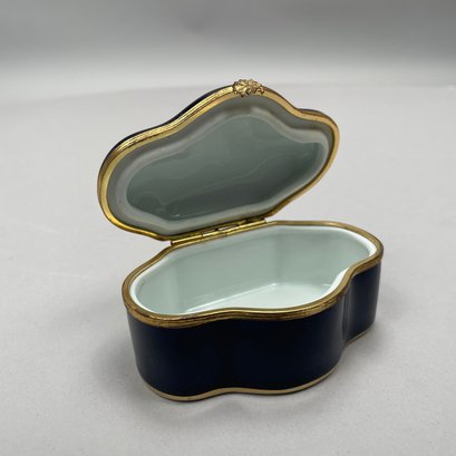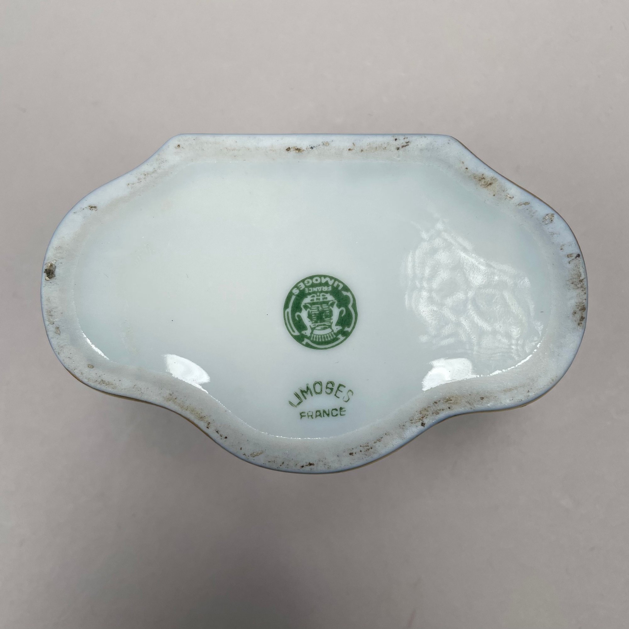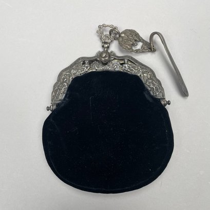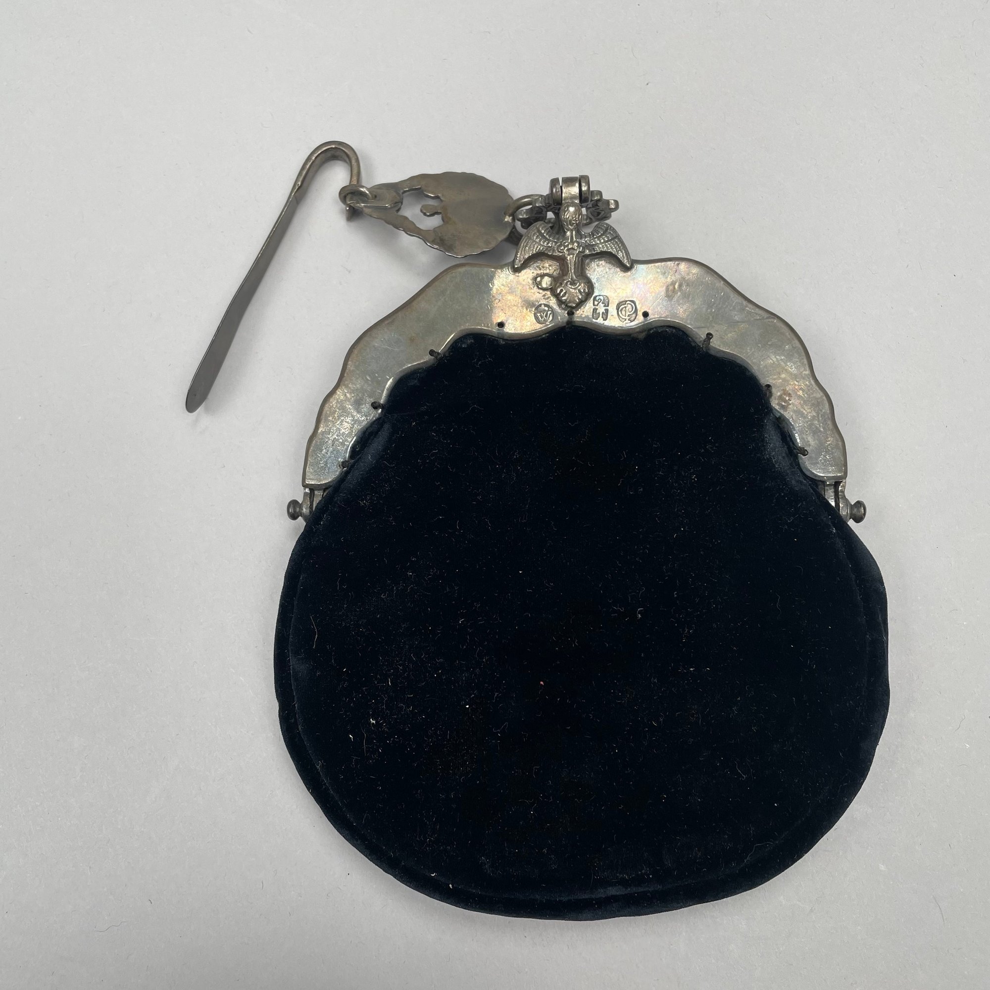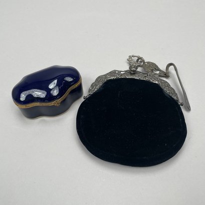 Dutch Silver and Velvet Chatelaine Purse and a Limoges Porcelain Trinket Box, Late 19th-20th Century. The purse marked with pseudo hallmarks, the box printed "LIMOGES FRANCE" in green.
