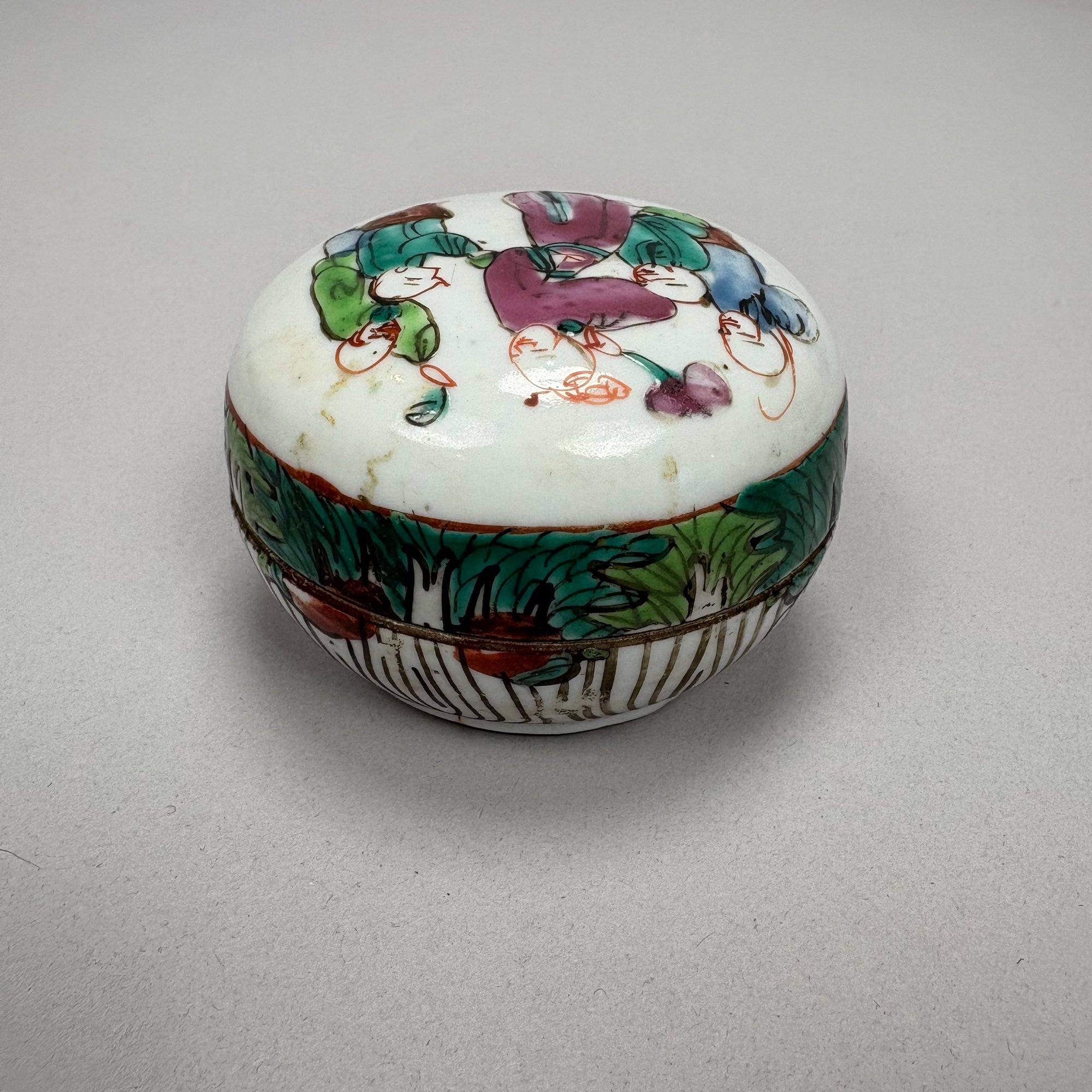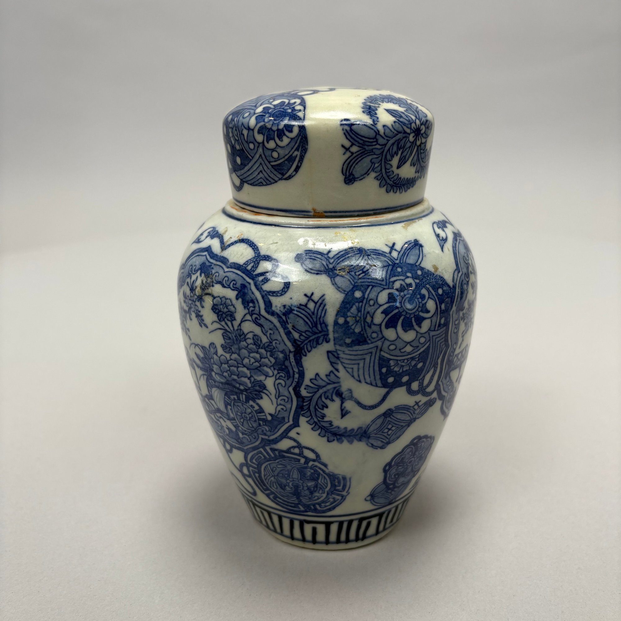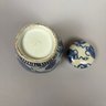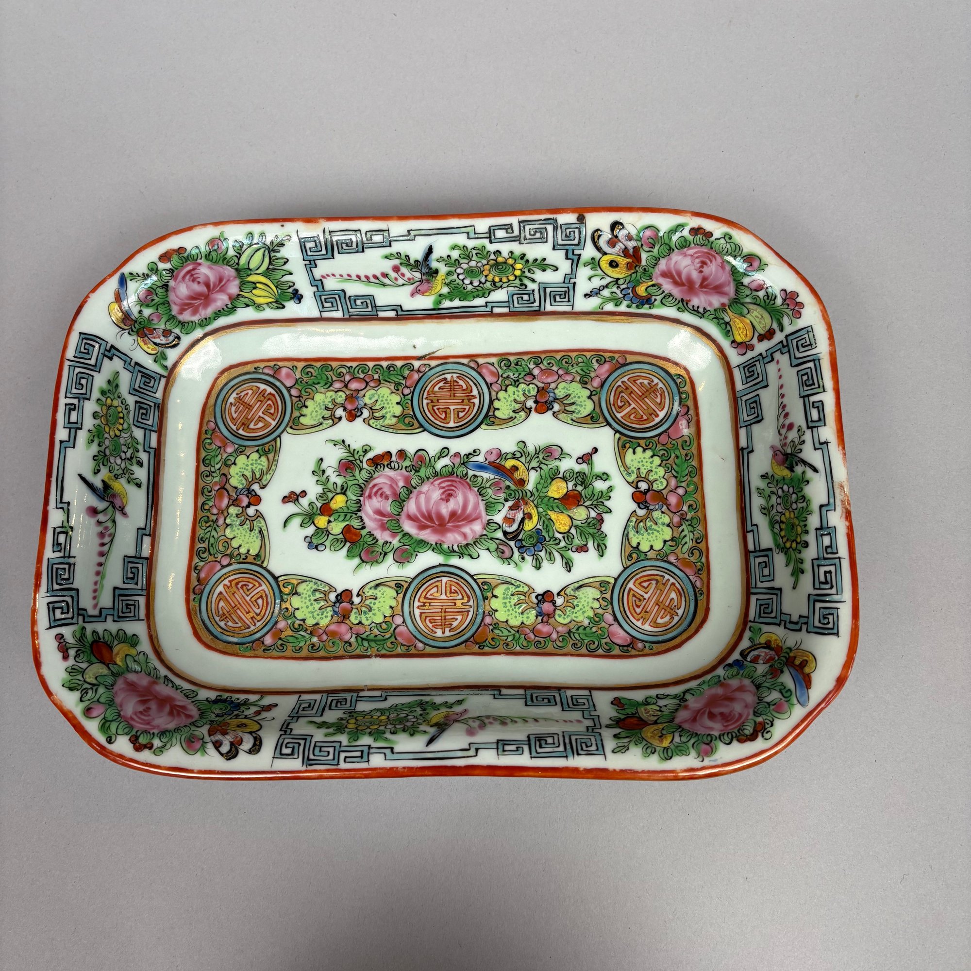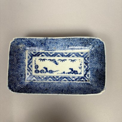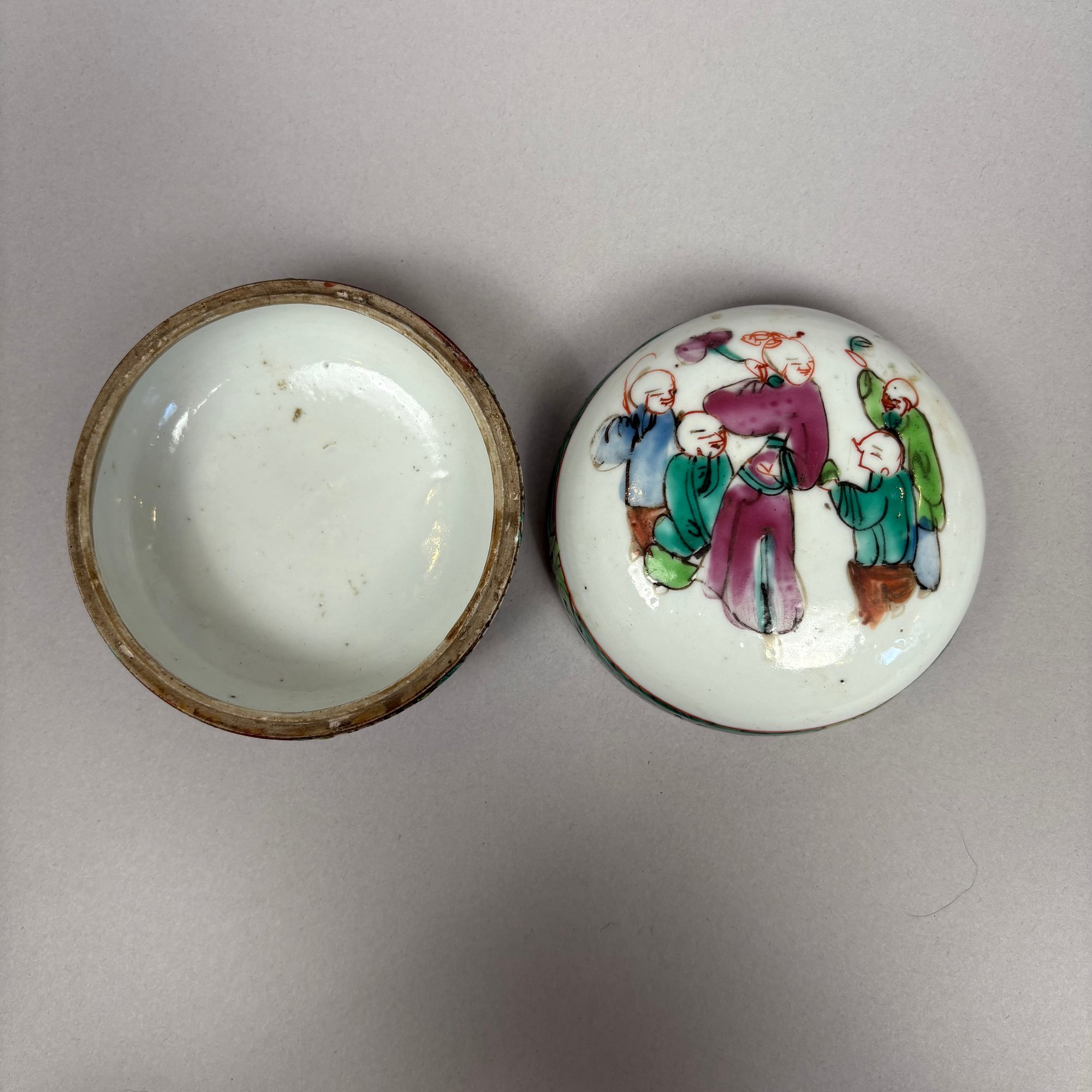 Nine English and Asian Ceramic Decorative Wares, 19th and 20th Century. Comprising a Mason's ironstone Chinoiserie sweetmeat dish, impressed and printed factory marks; an ironstone Imari soup plate, likely Masons; 'Pinecone' pattern bowl; blue and white jar and cover and a tray; famille rose serving dish, jar and circular box and cover; and a Japanese bowl.
