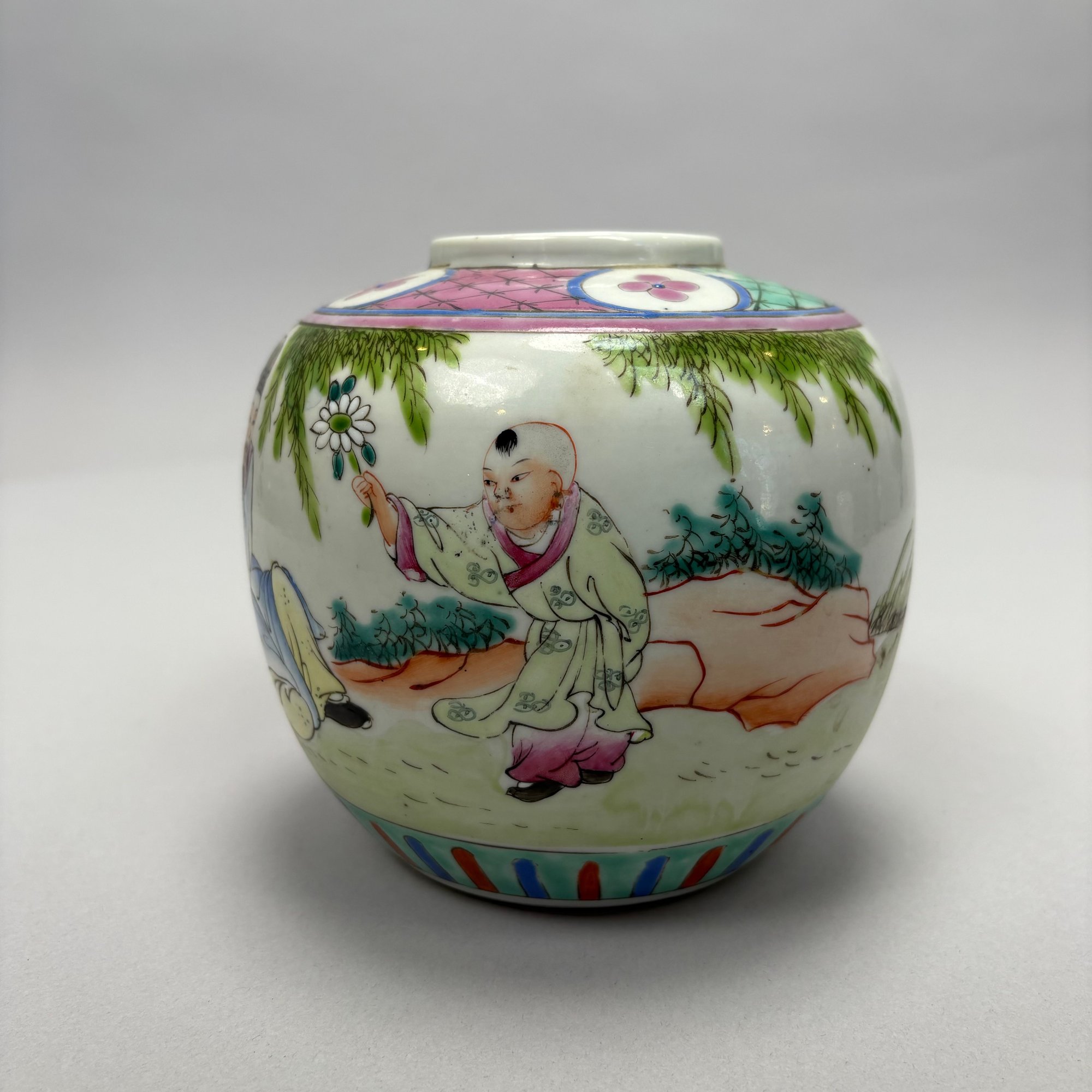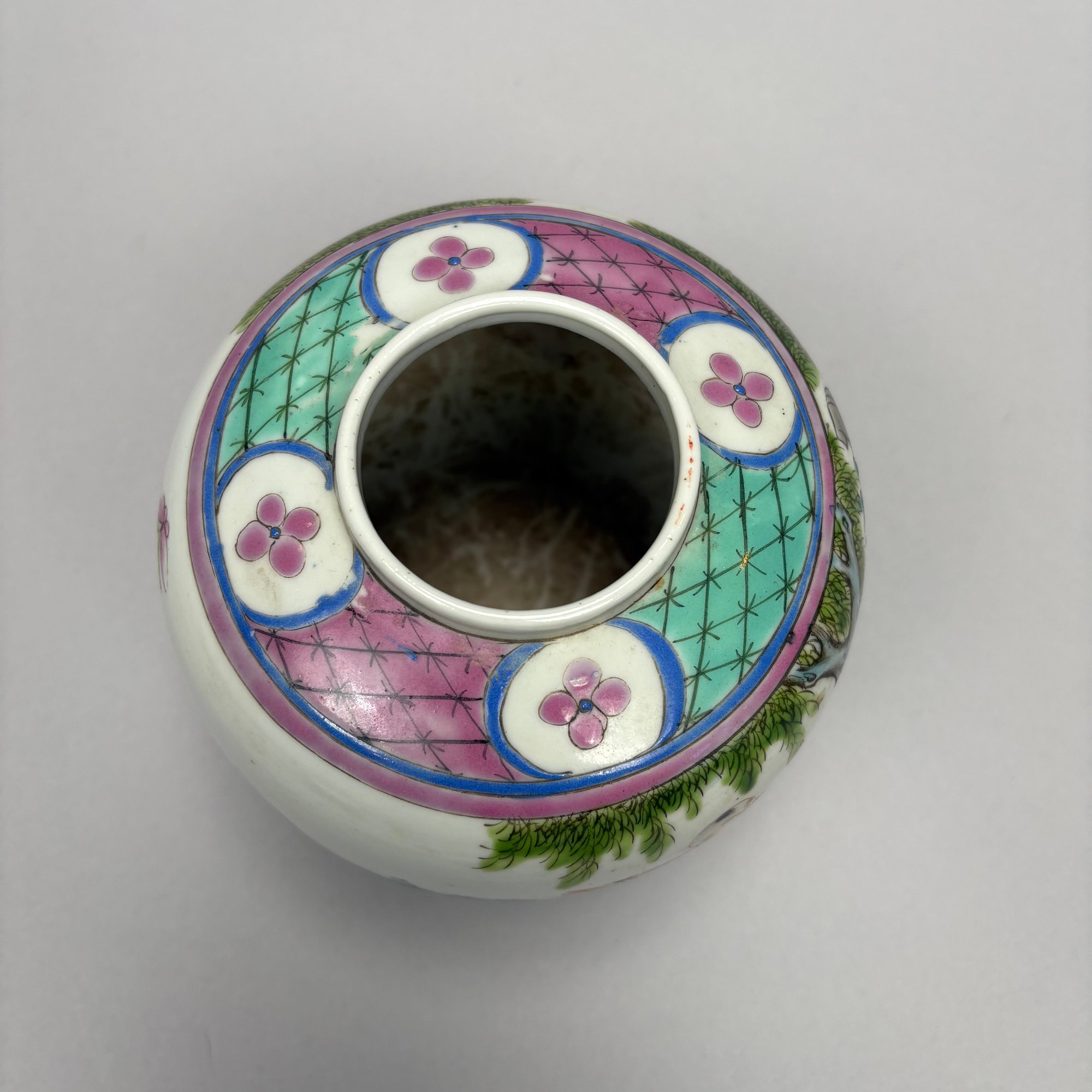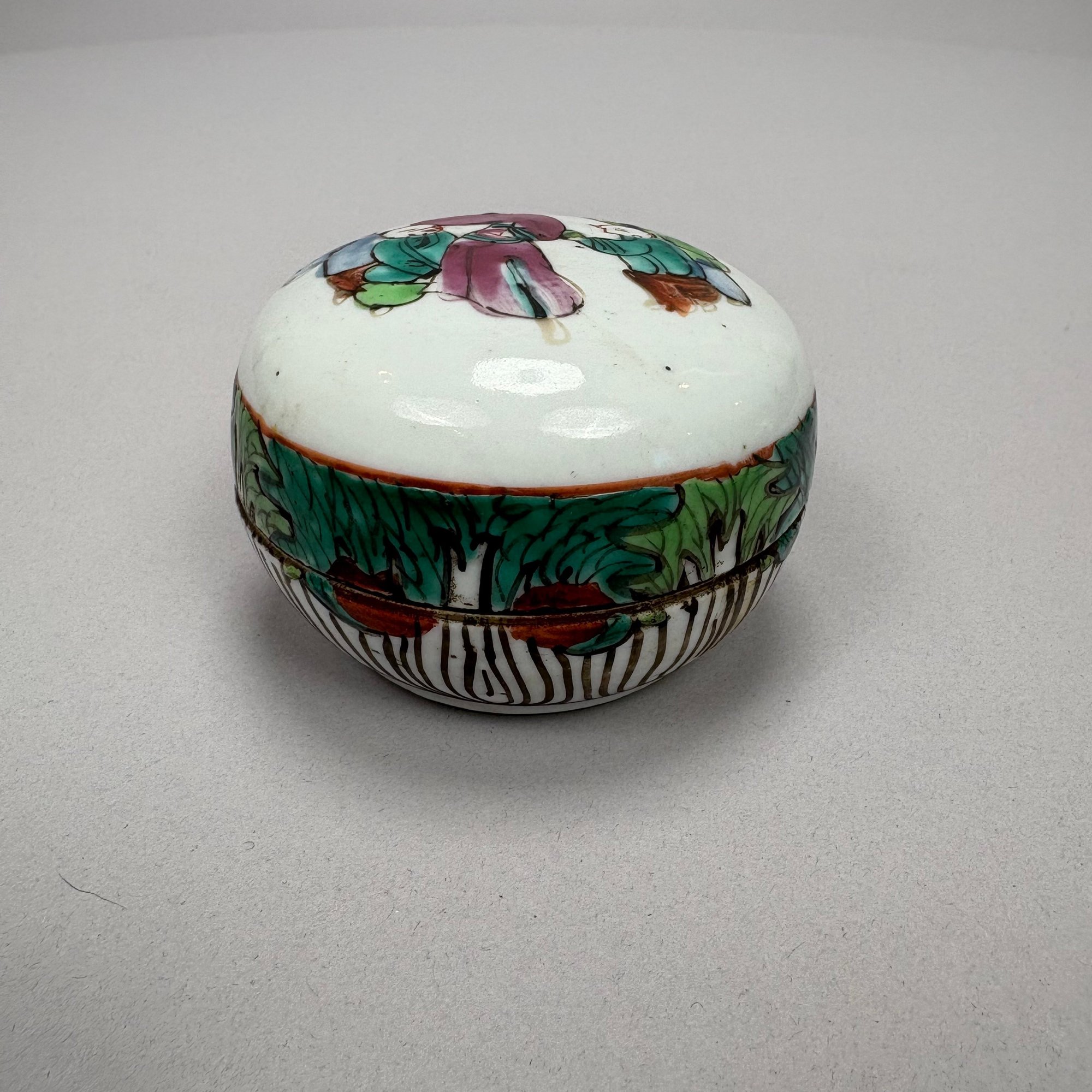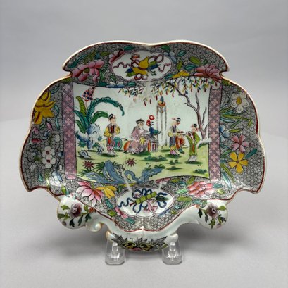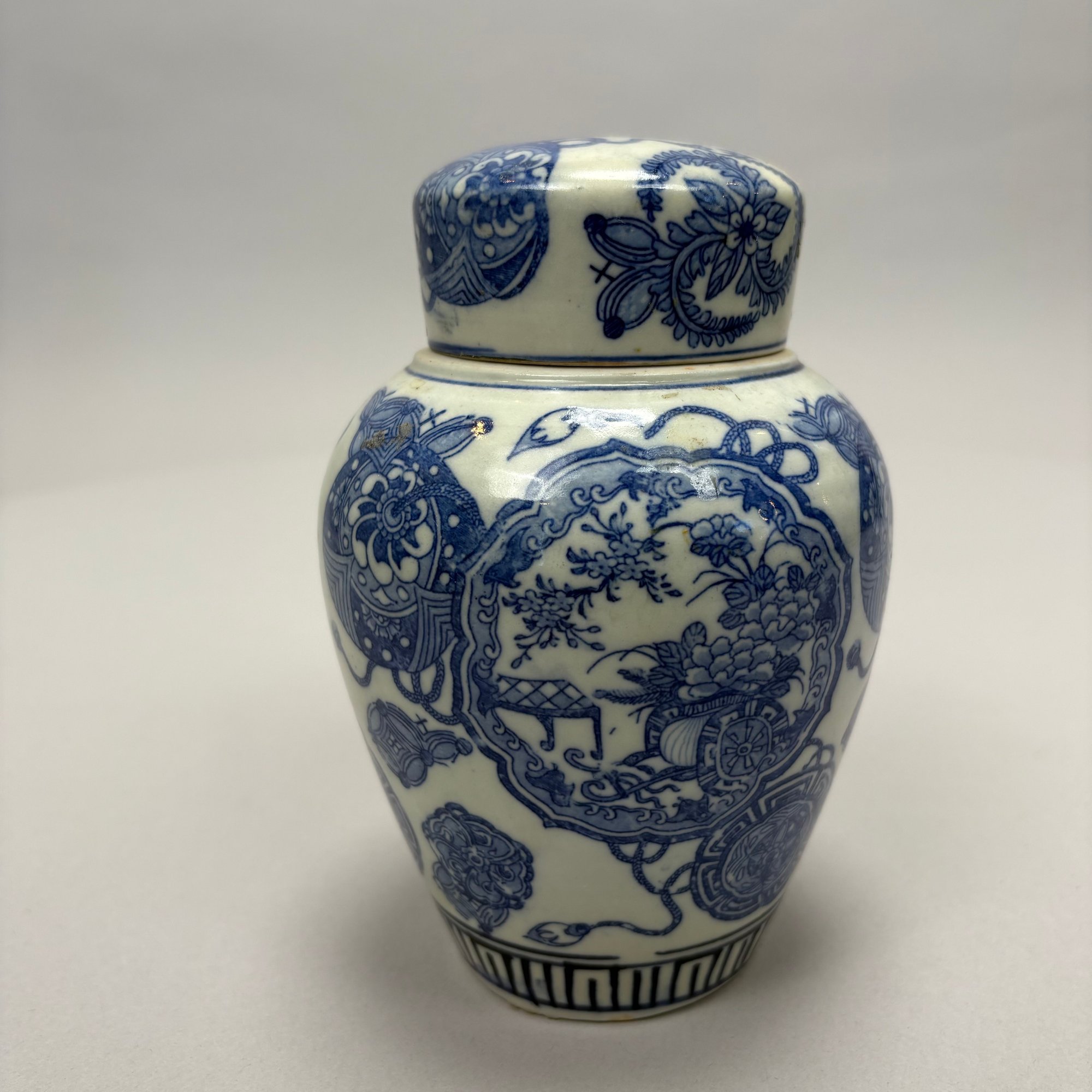 Nine English and Asian Ceramic Decorative Wares, 19th and 20th Century. Comprising a Mason's ironstone Chinoiserie sweetmeat dish, impressed and printed factory marks; an ironstone Imari soup plate, likely Masons; 'Pinecone' pattern bowl; blue and white jar and cover and a tray; famille rose serving dish, jar and circular box and cover; and a Japanese bowl.