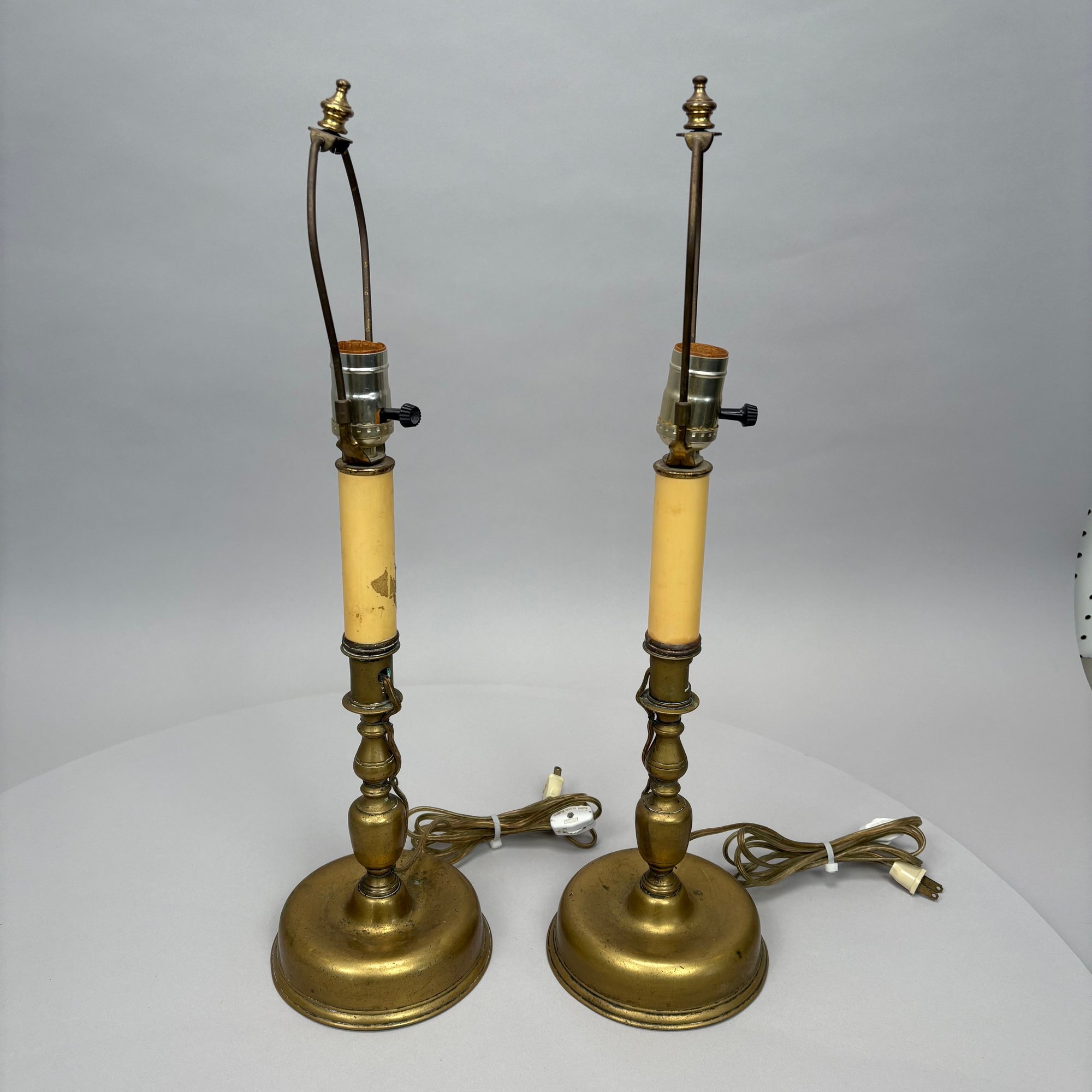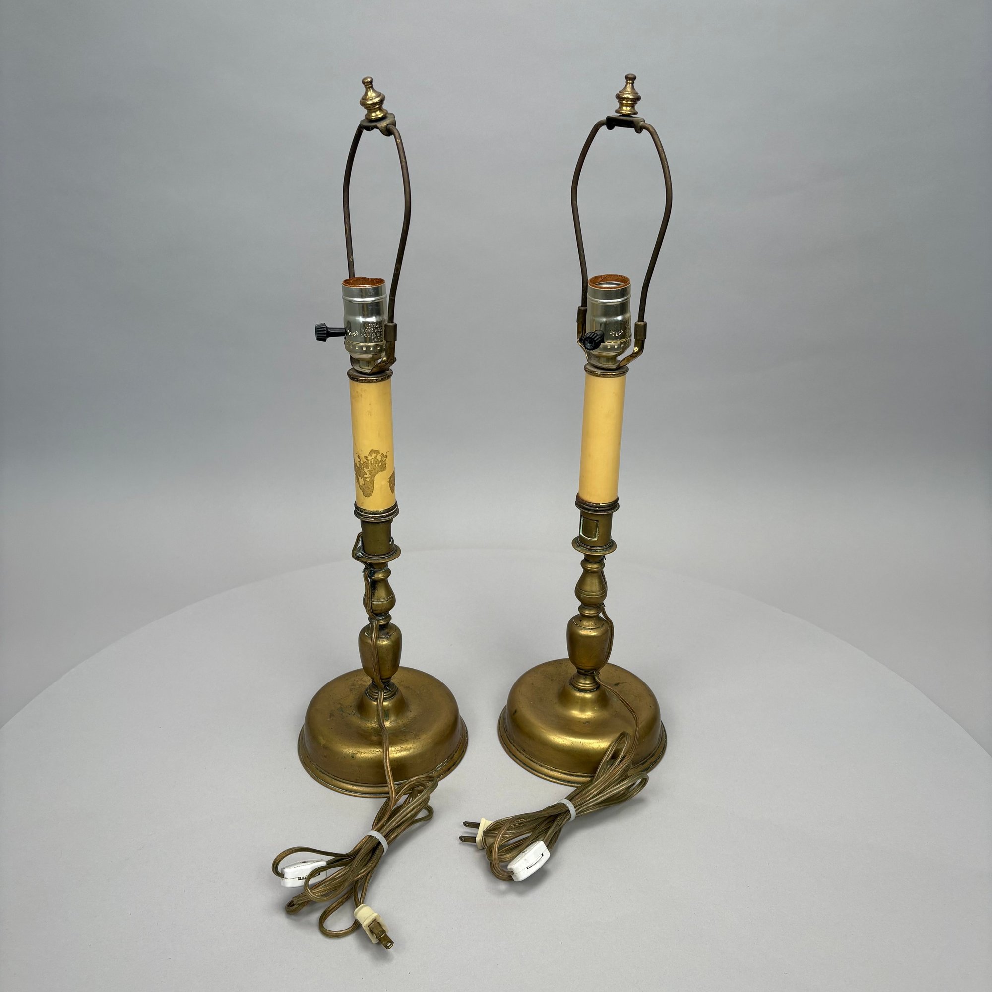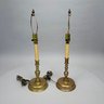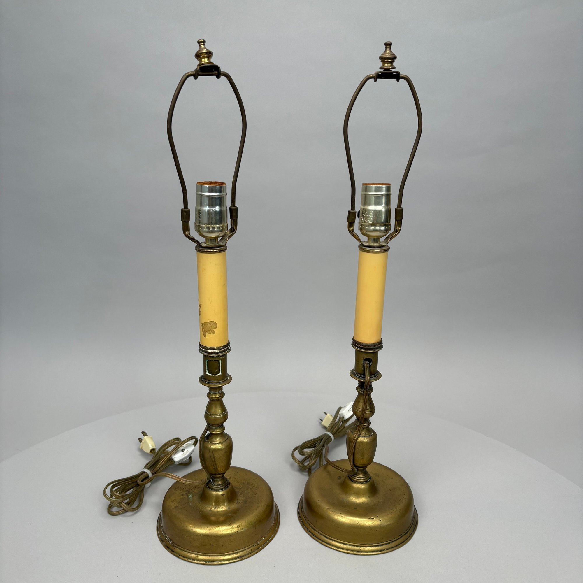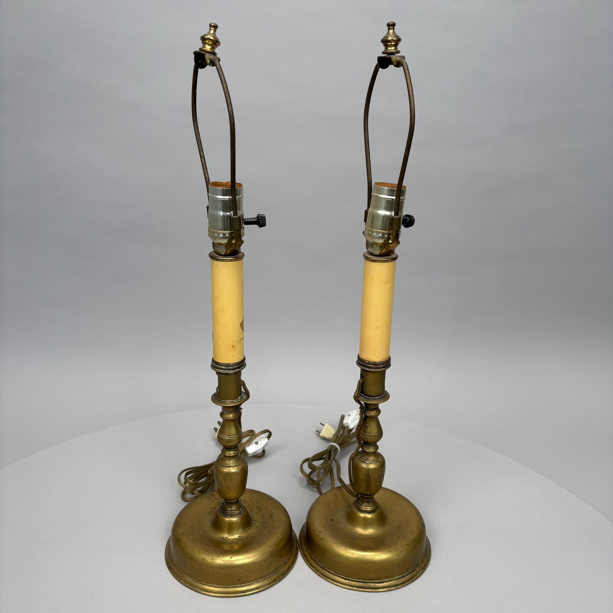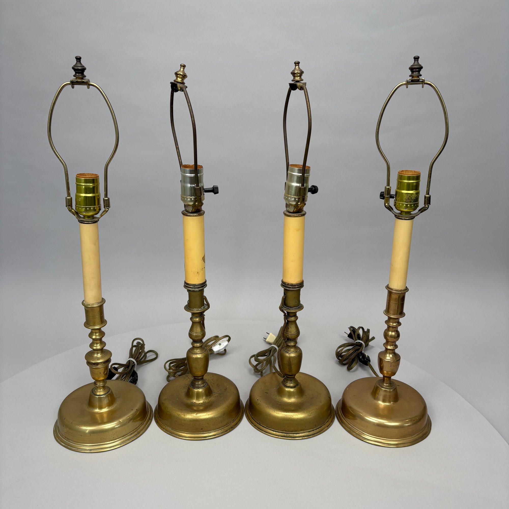 Near Pair and Two Dutch Brass Candlesticks, Now Electrified as Lamps.