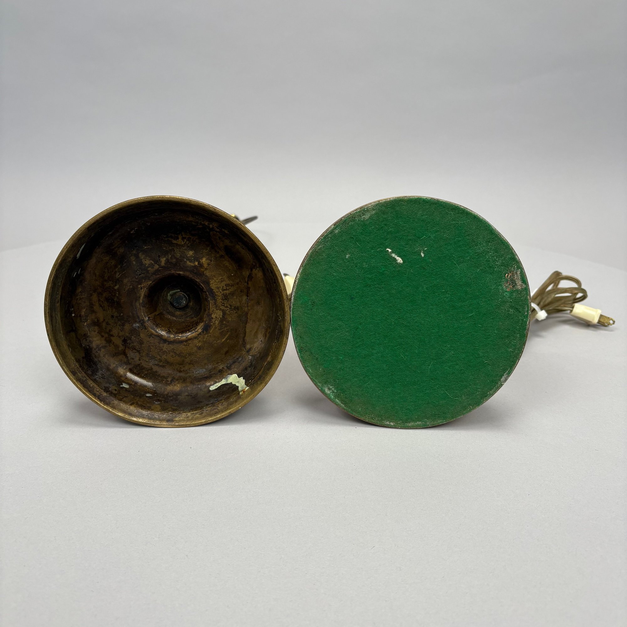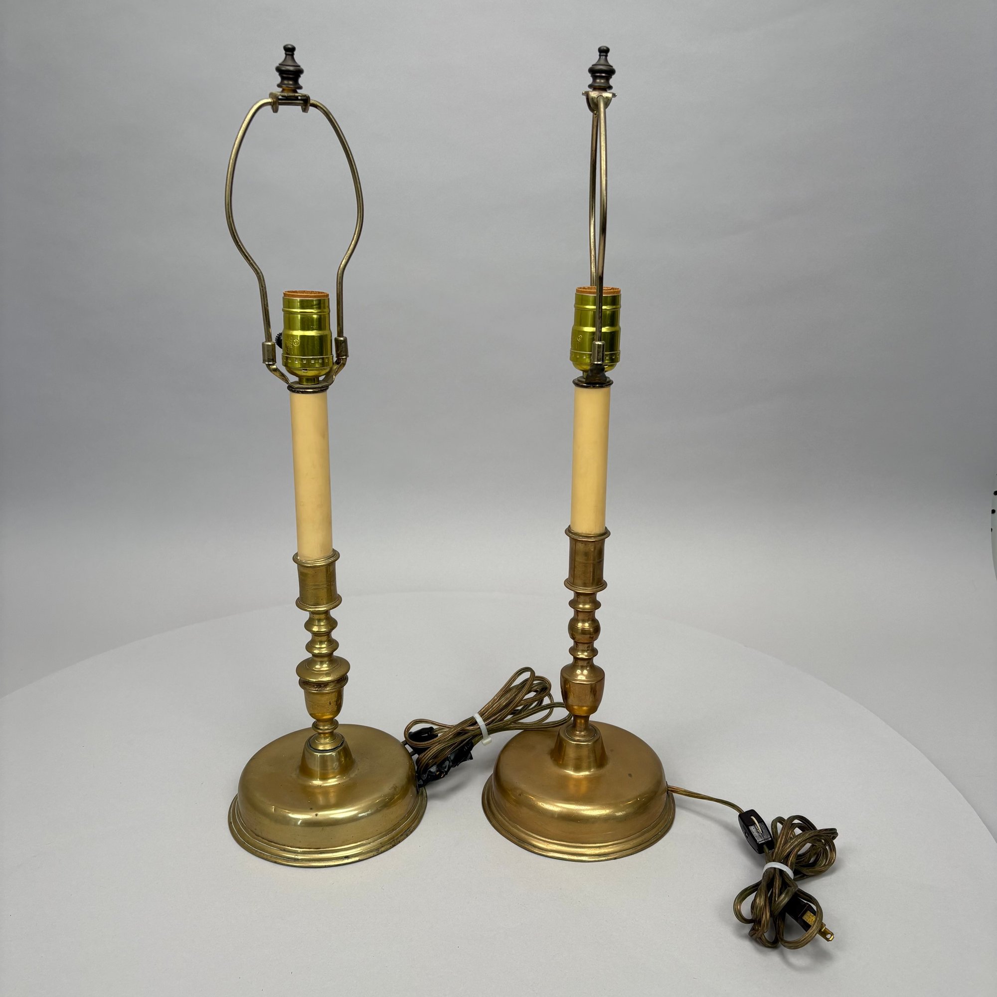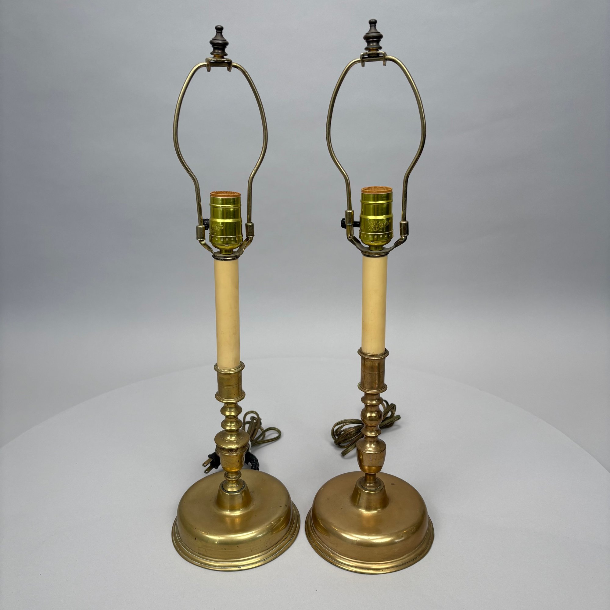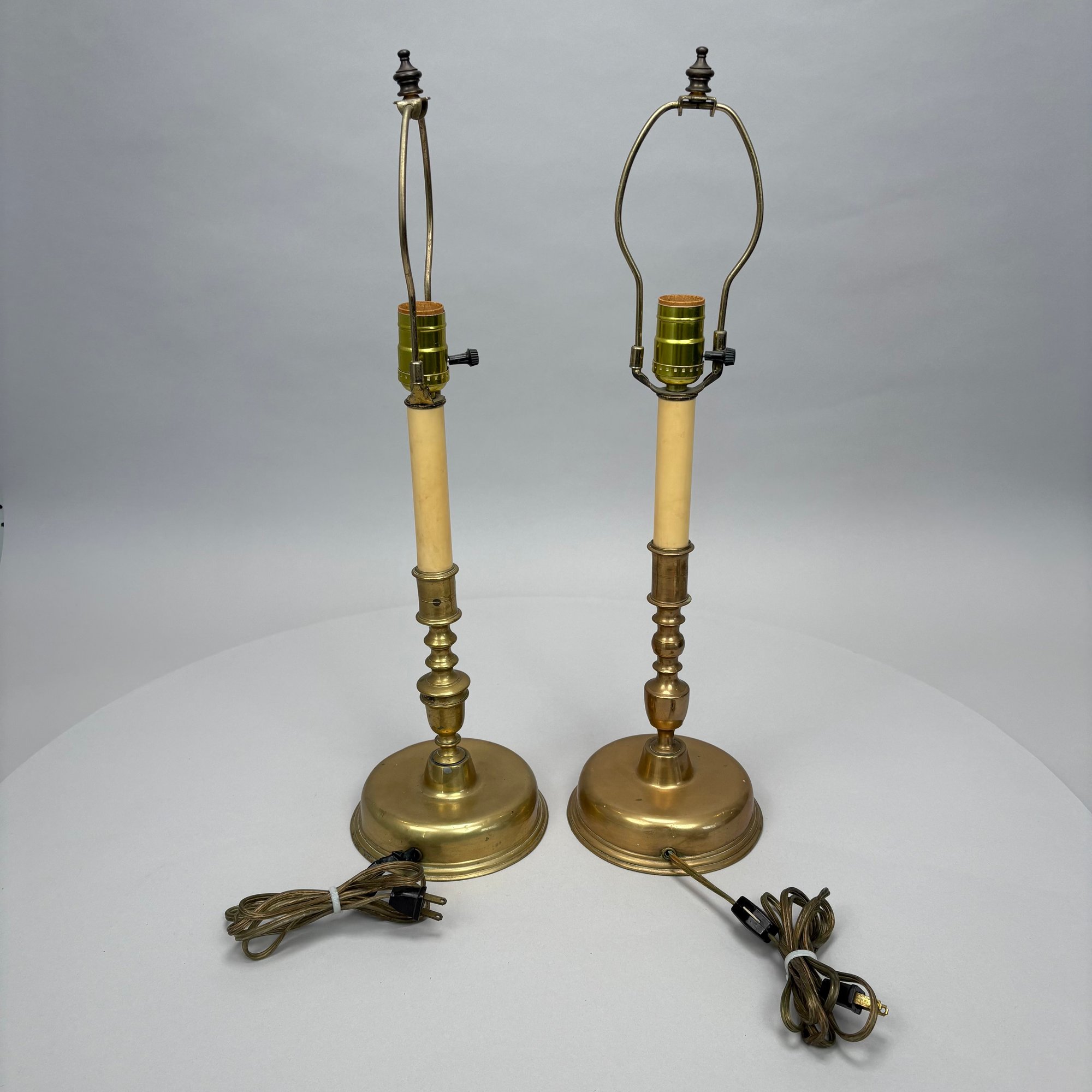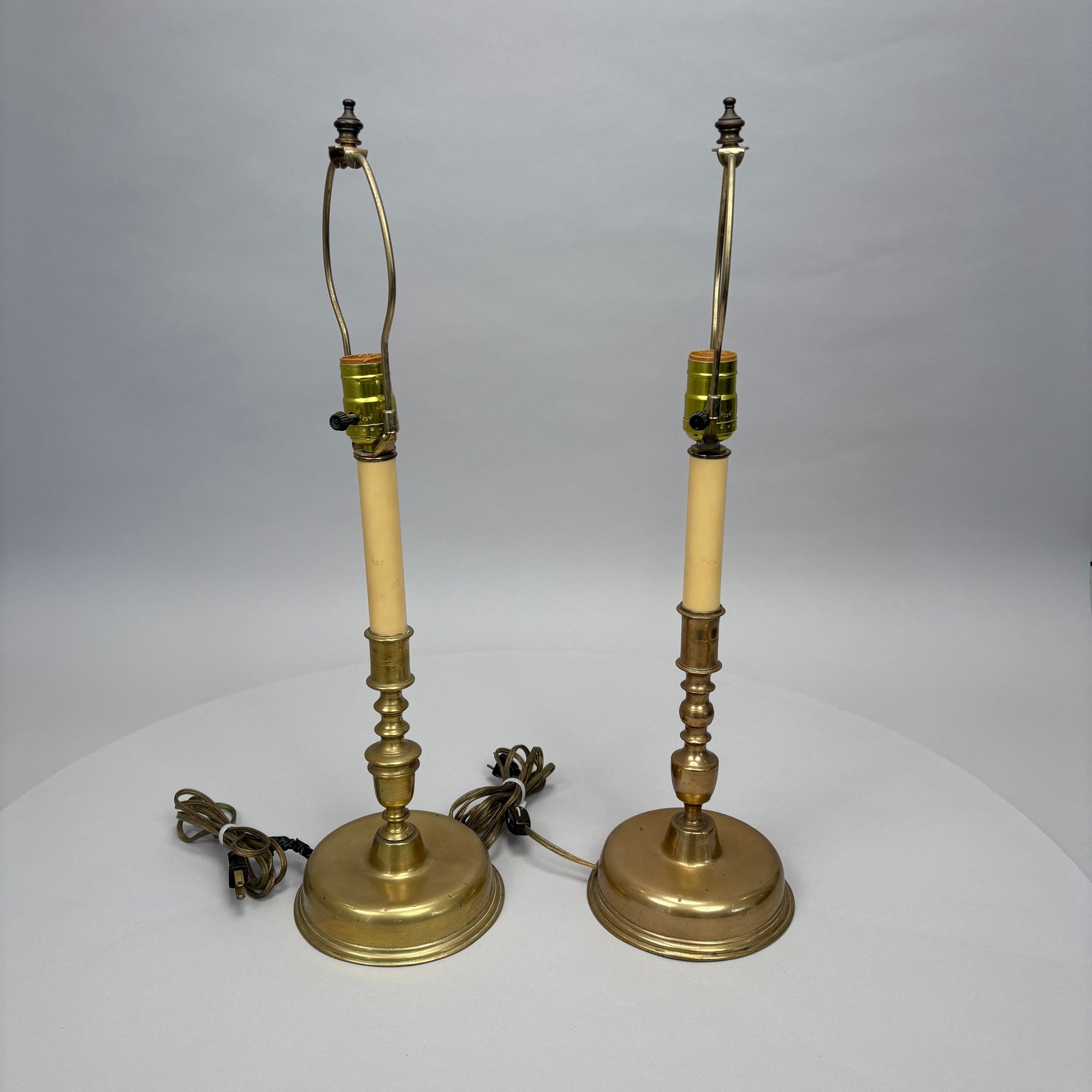 Near Pair and Two Dutch Brass Candlesticks, Now Electrified as Lamps.