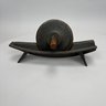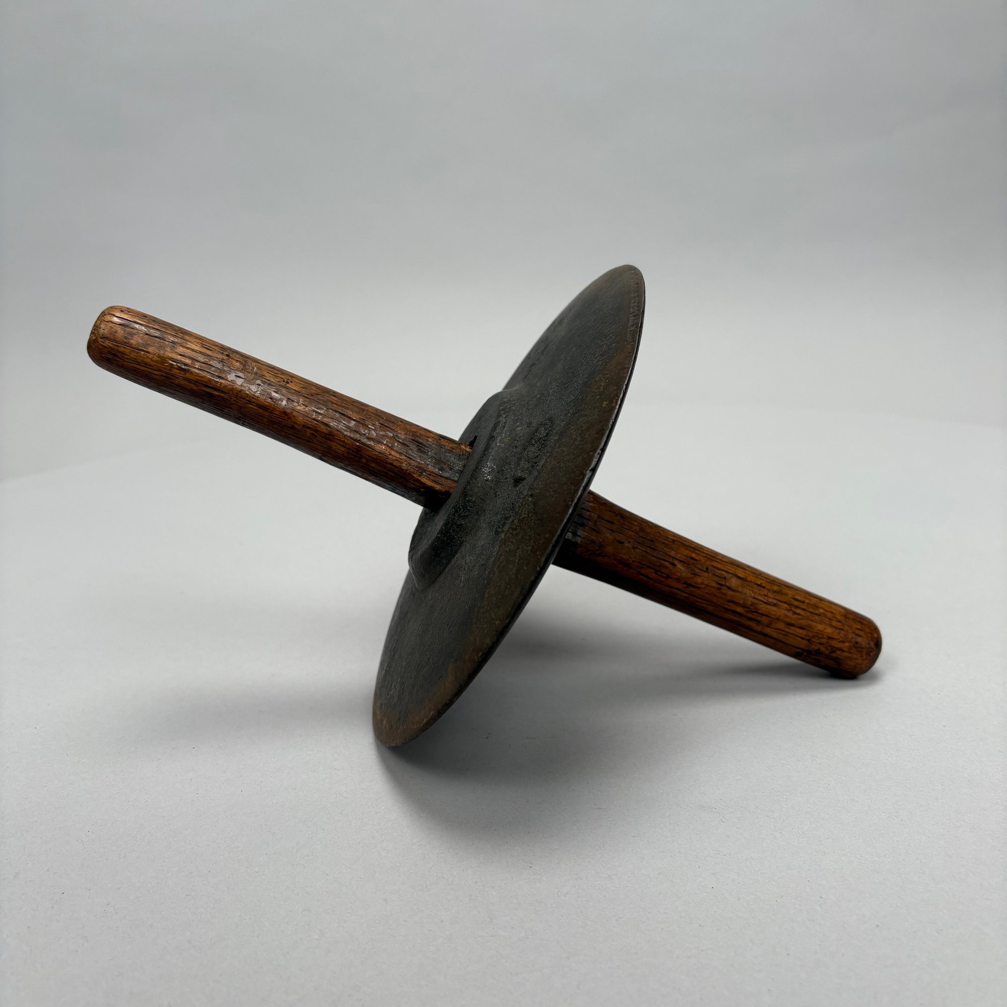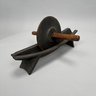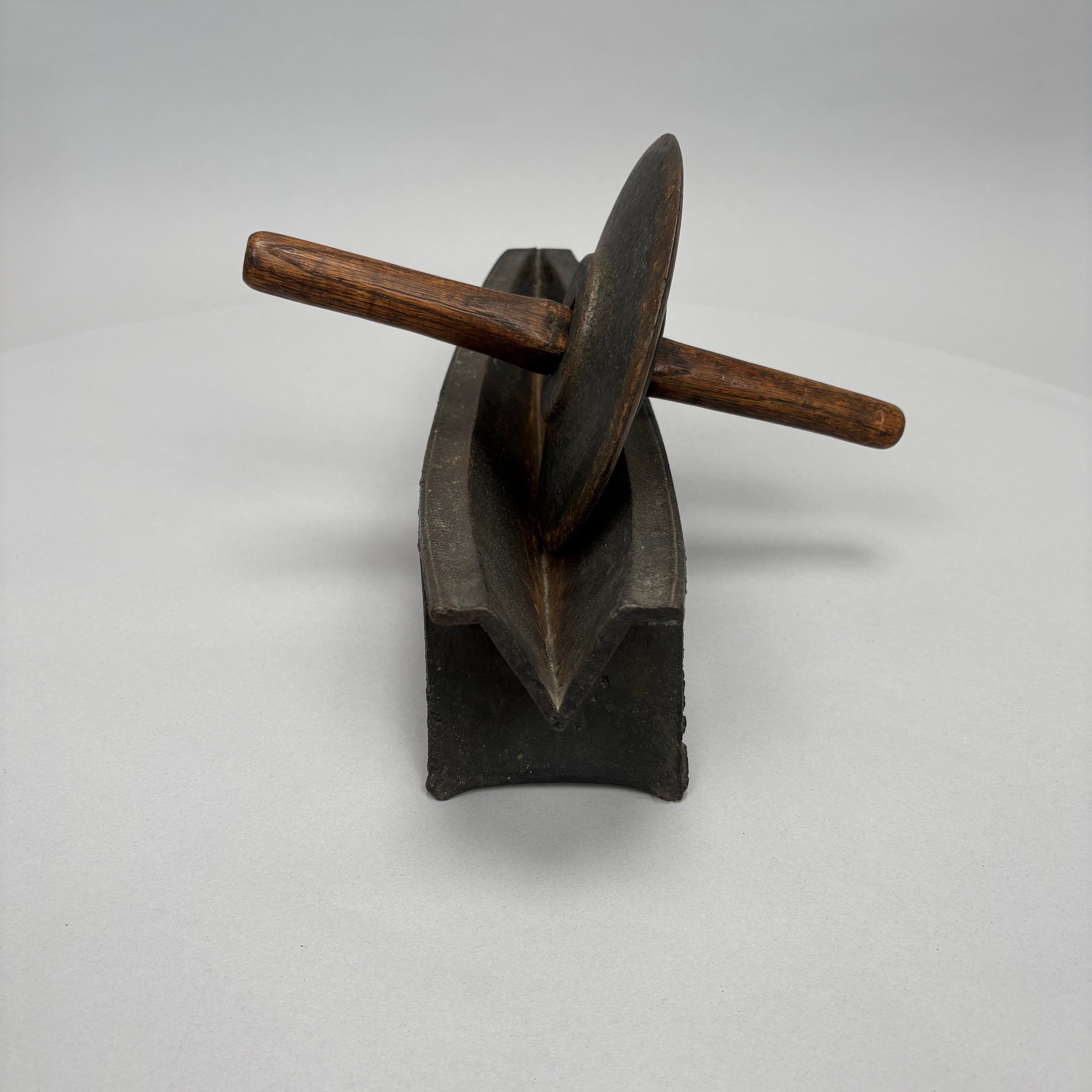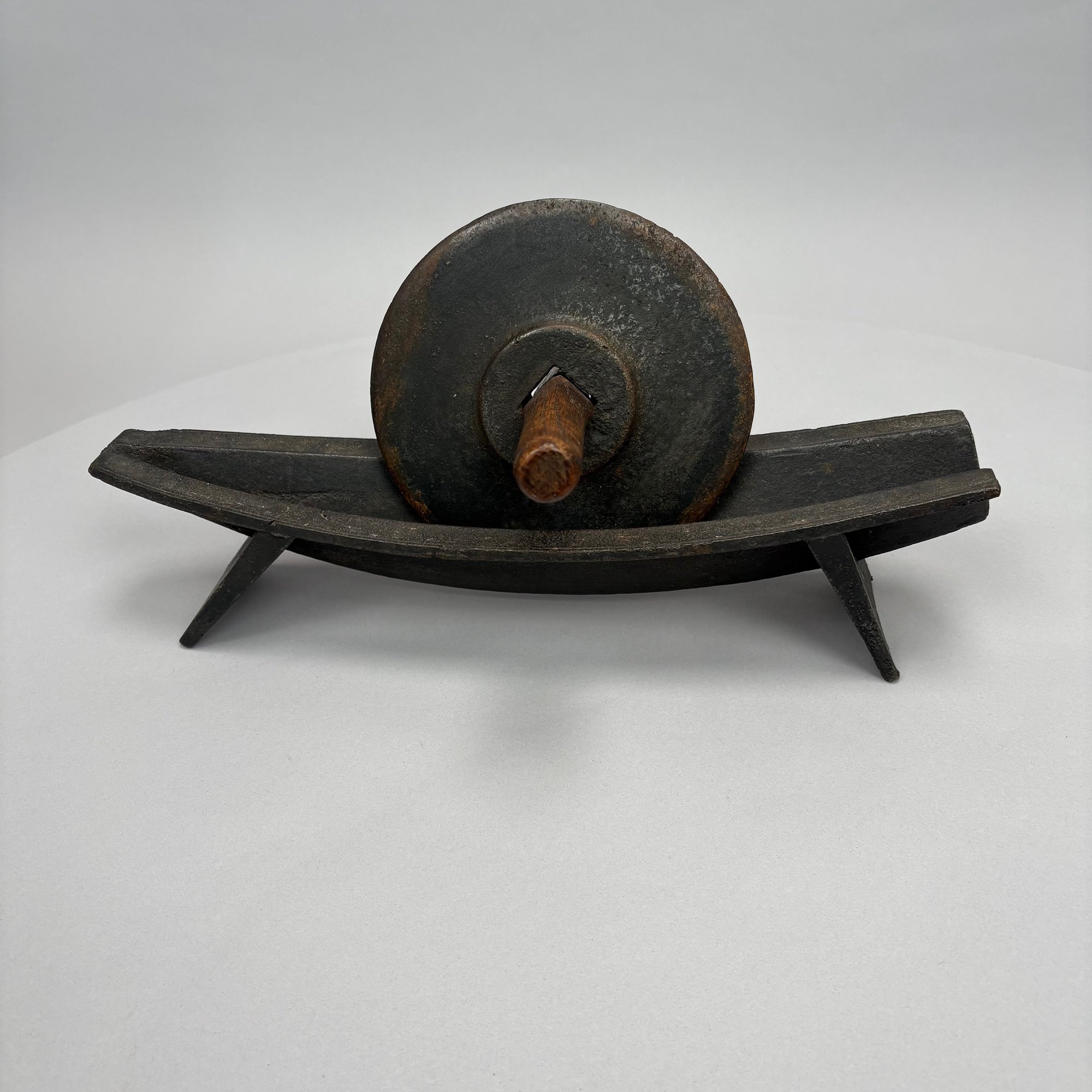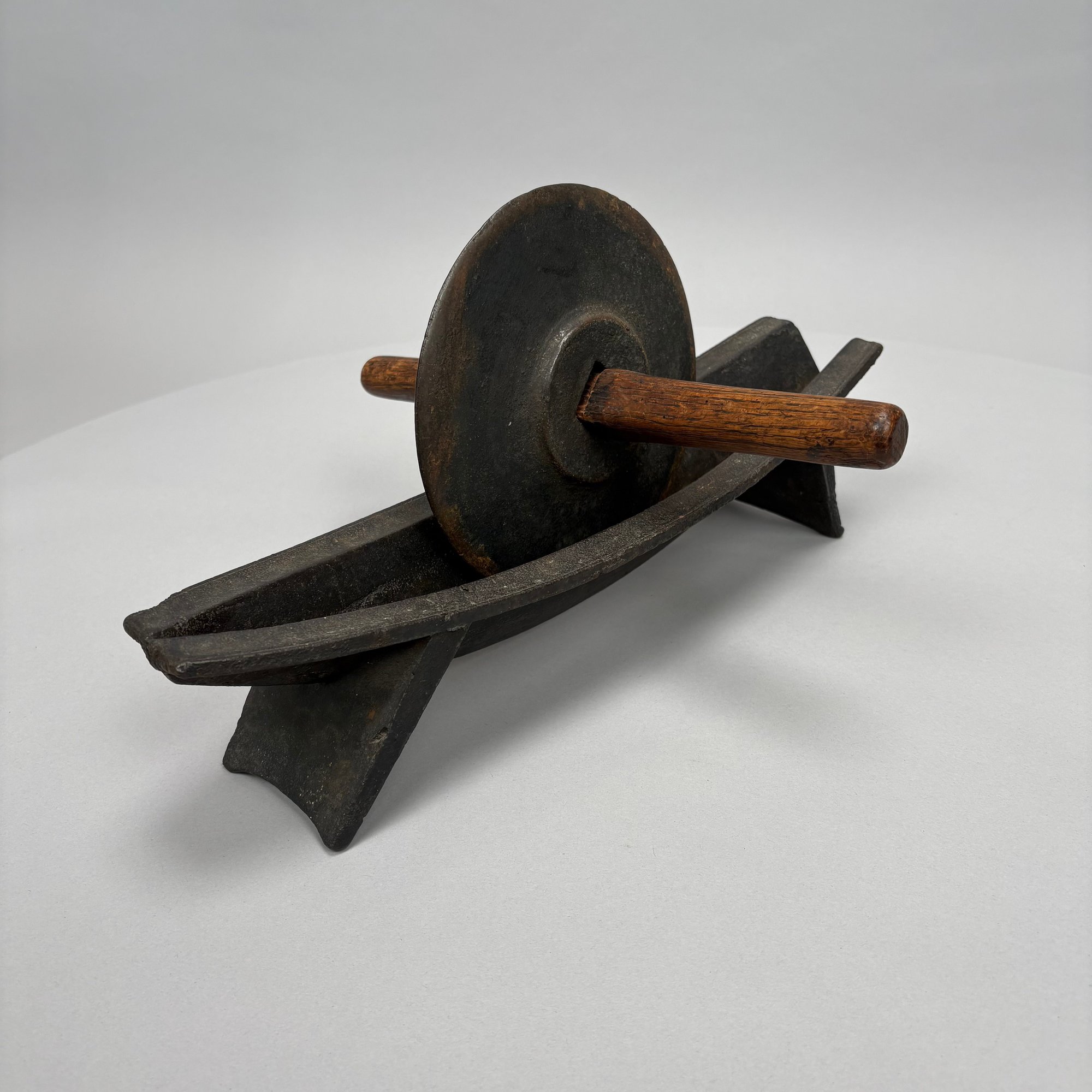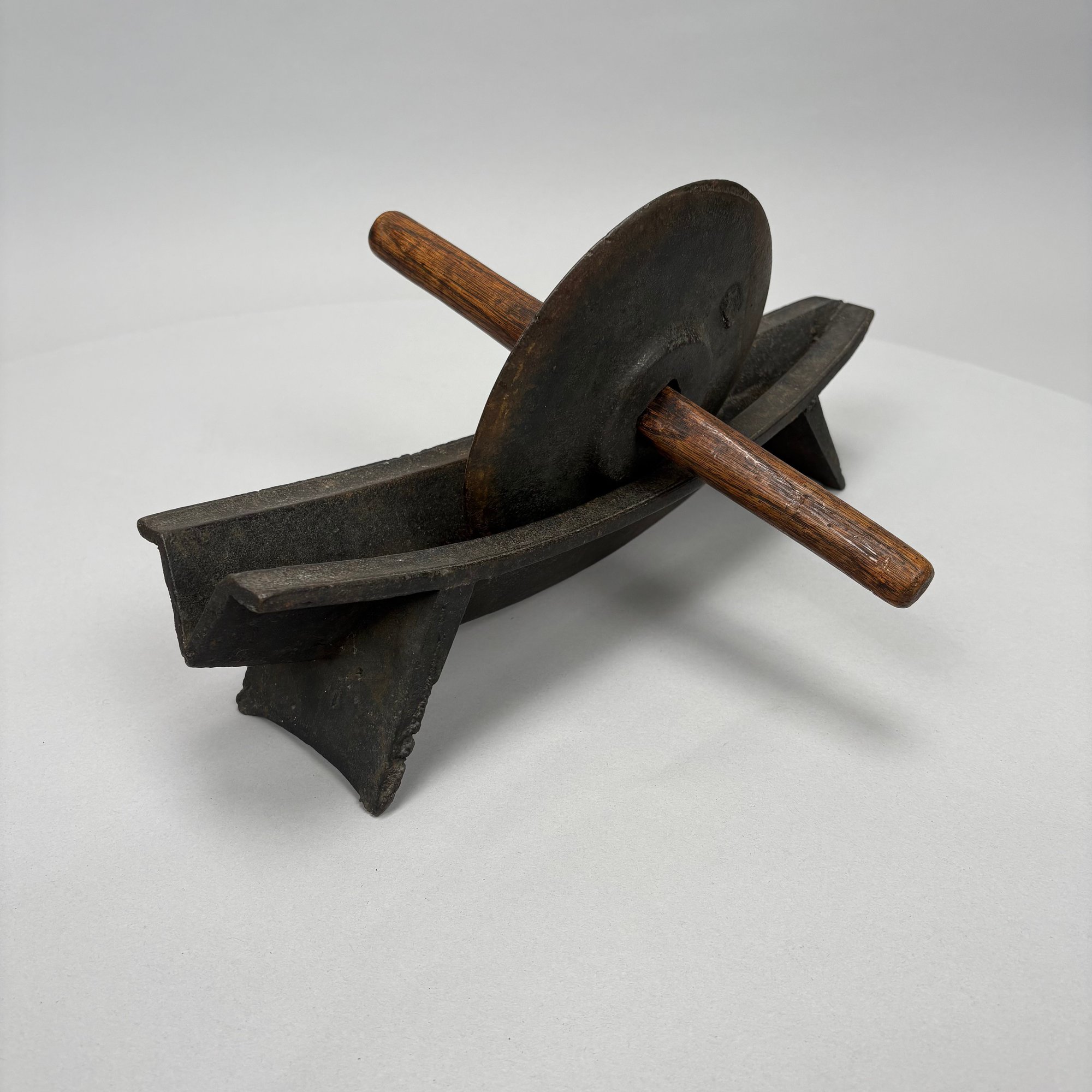 Early Iron and Wood Herb Grinder, 19th Century. In two pieces, with grinding wheel and trough.