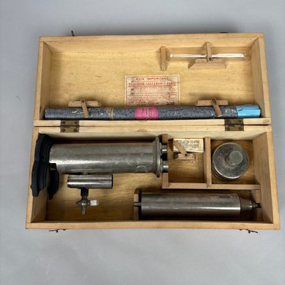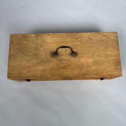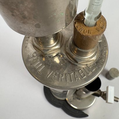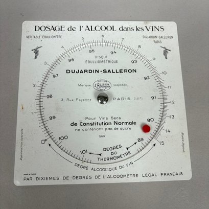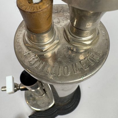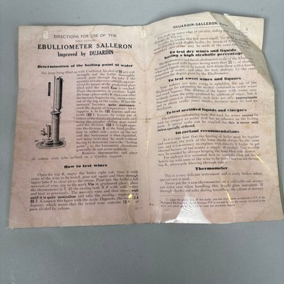 Ebulliometer Salleron, Improved by Dujardin, Paris. No. 69151, with a thermometer and instructions; housed in the original pine case with metal bail handle and stamped on the cover "PER VINUM J. SALLERON DUJARDIN PARIS."