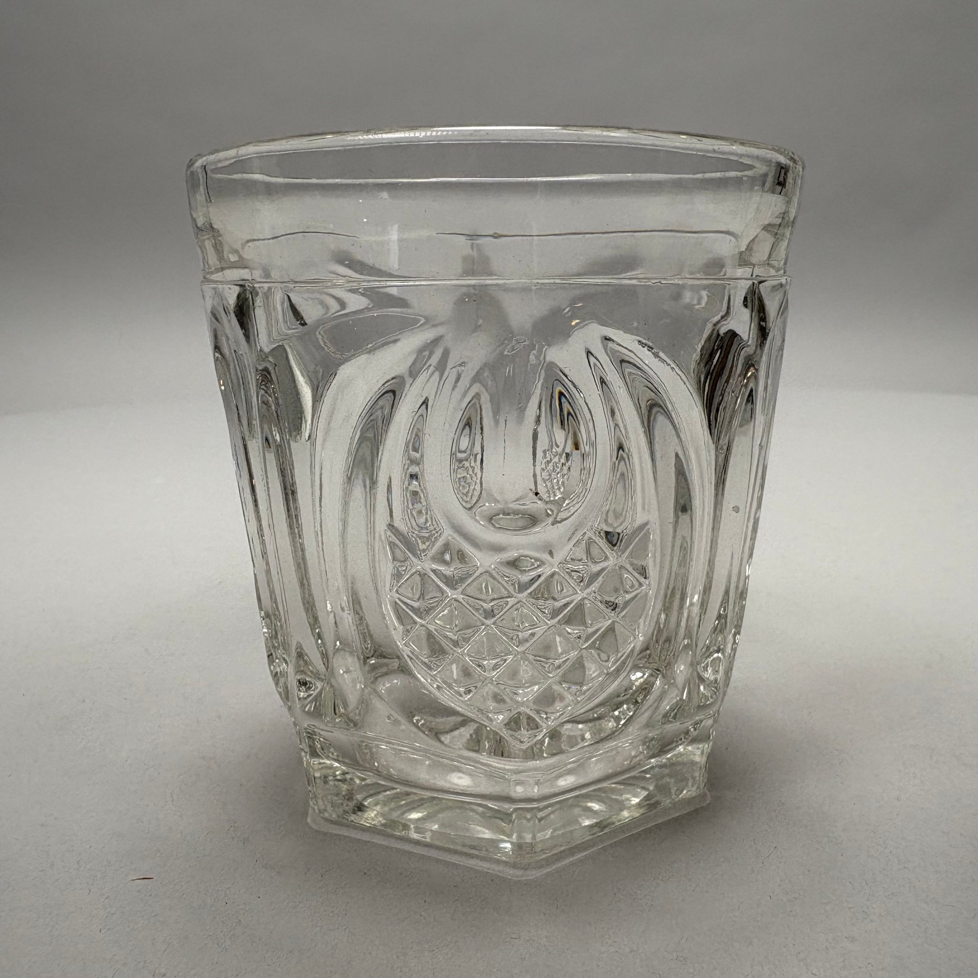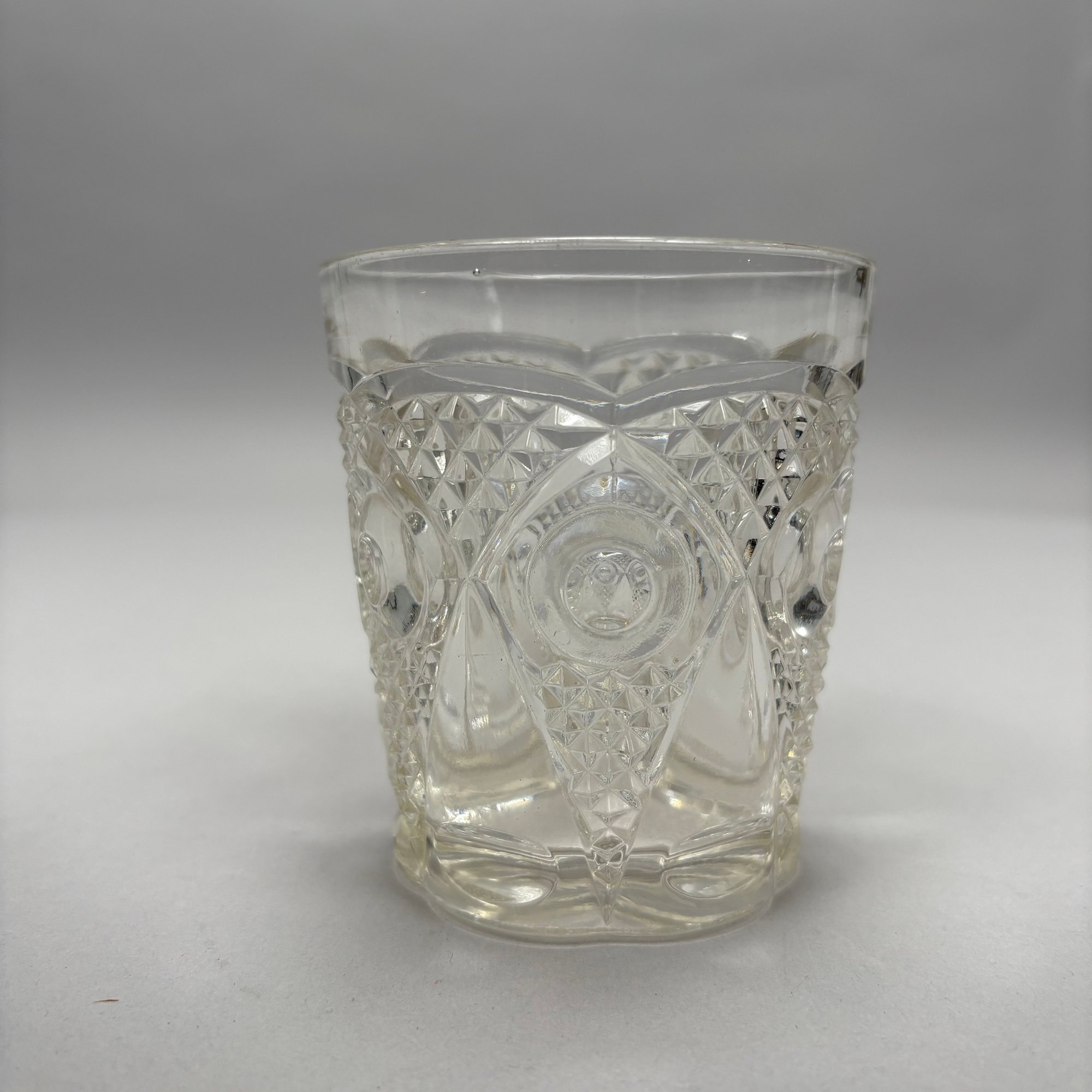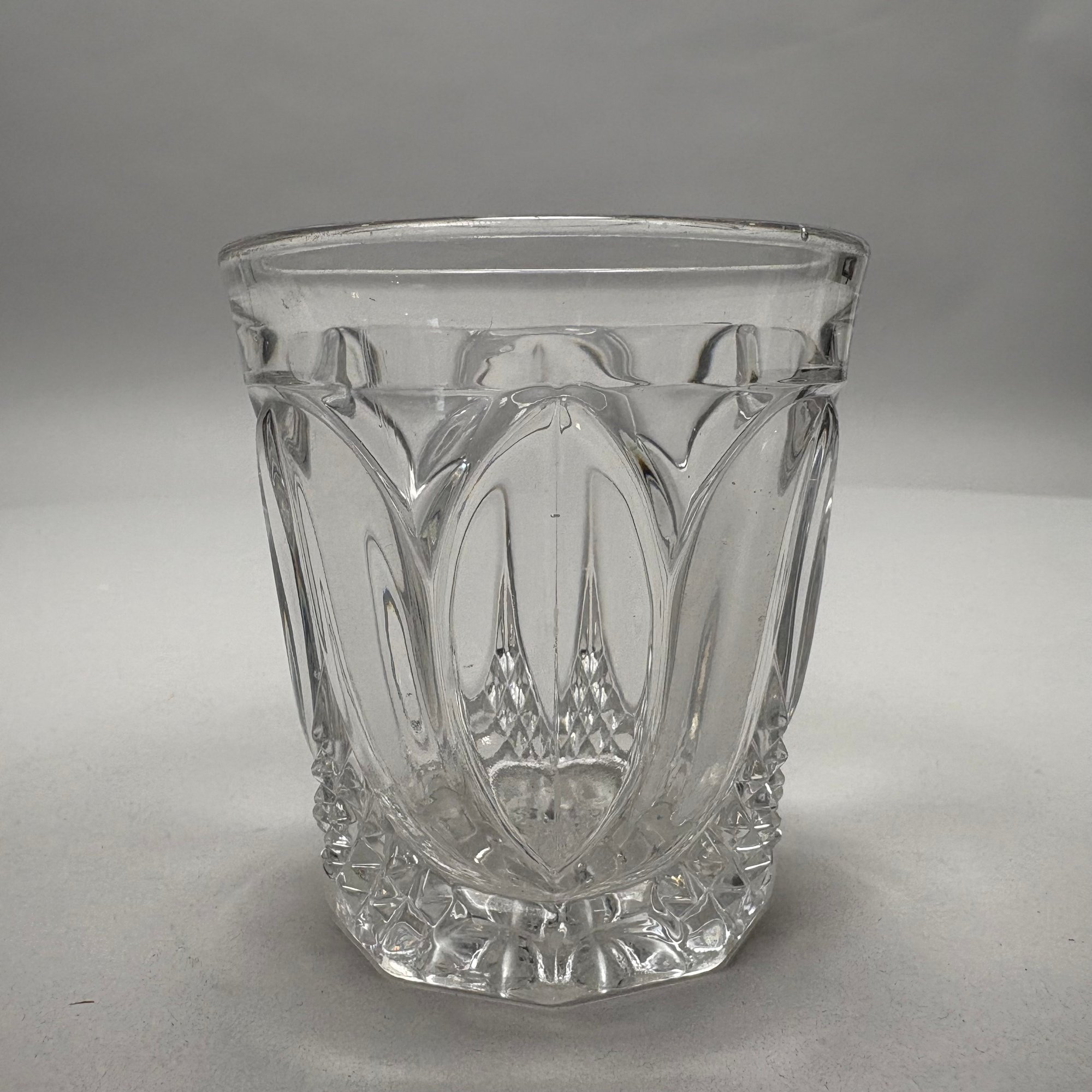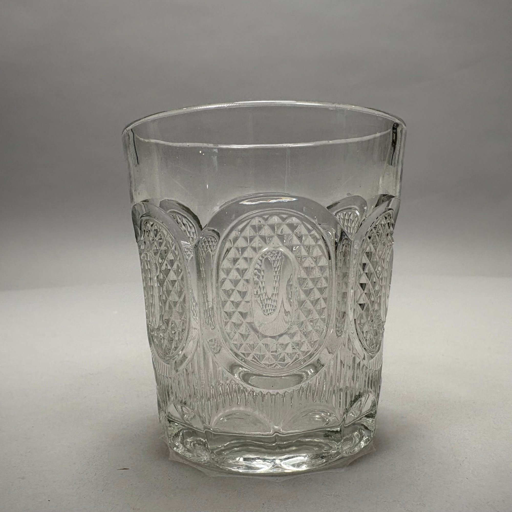 Eight American Colorless Flint Pattern Glass Tumblers, Mid-19th Century. Molded in various bull's-eye, oval, circular and cornucopia patterns with rayed and sawtooth borders, including a pair molded with tulips and two different sawtooth borders, Bryce, Richards & Co., Pittsburgh, Pennsylvania, 1854-1865.
