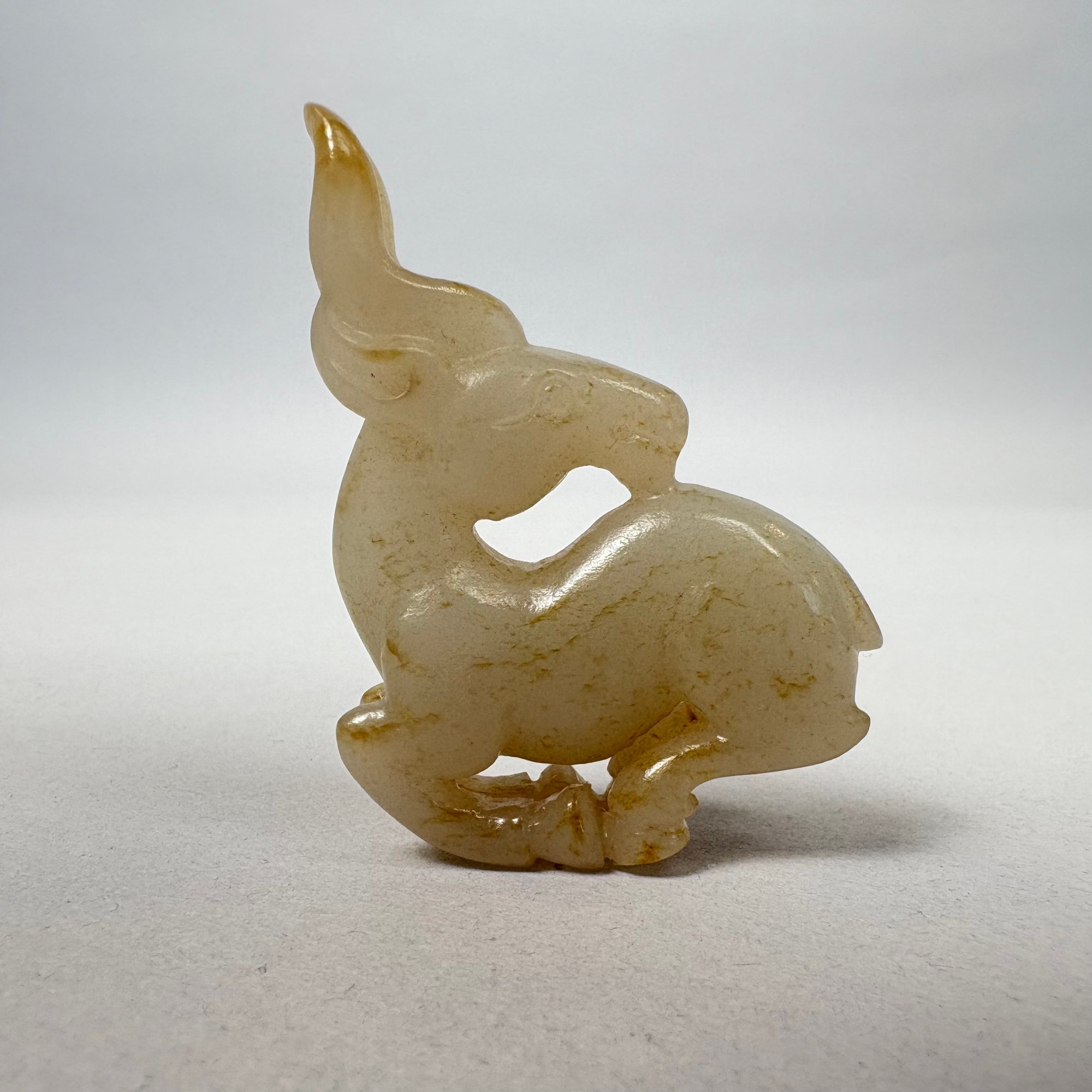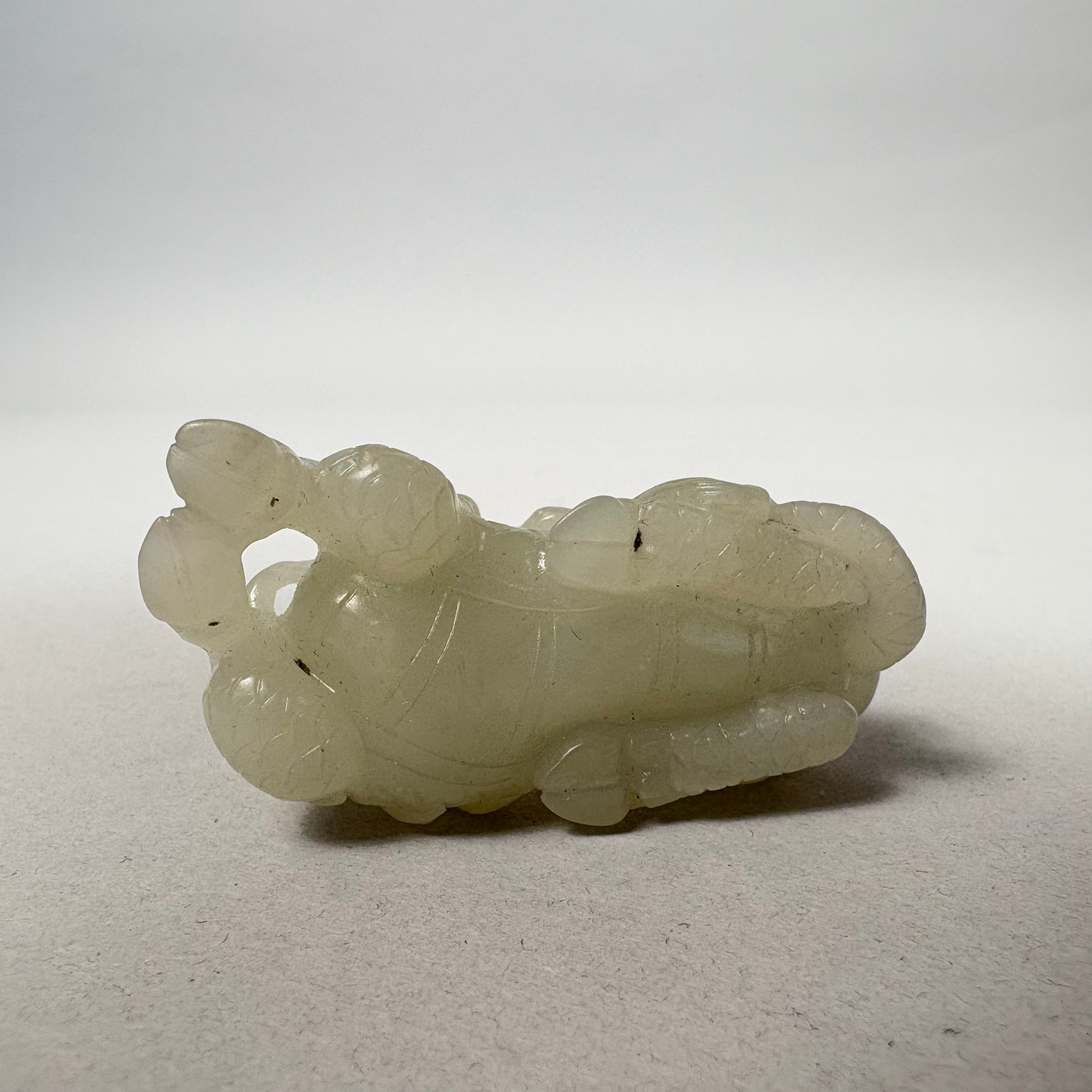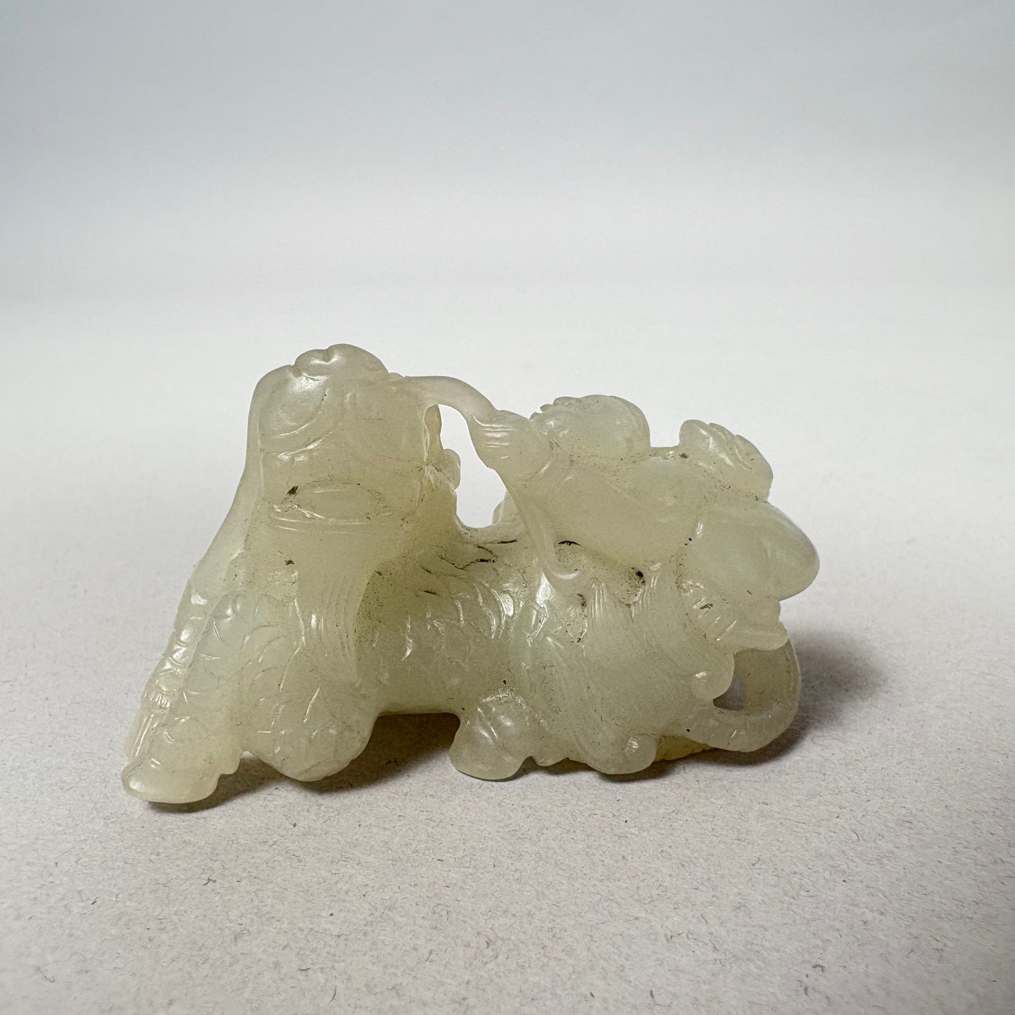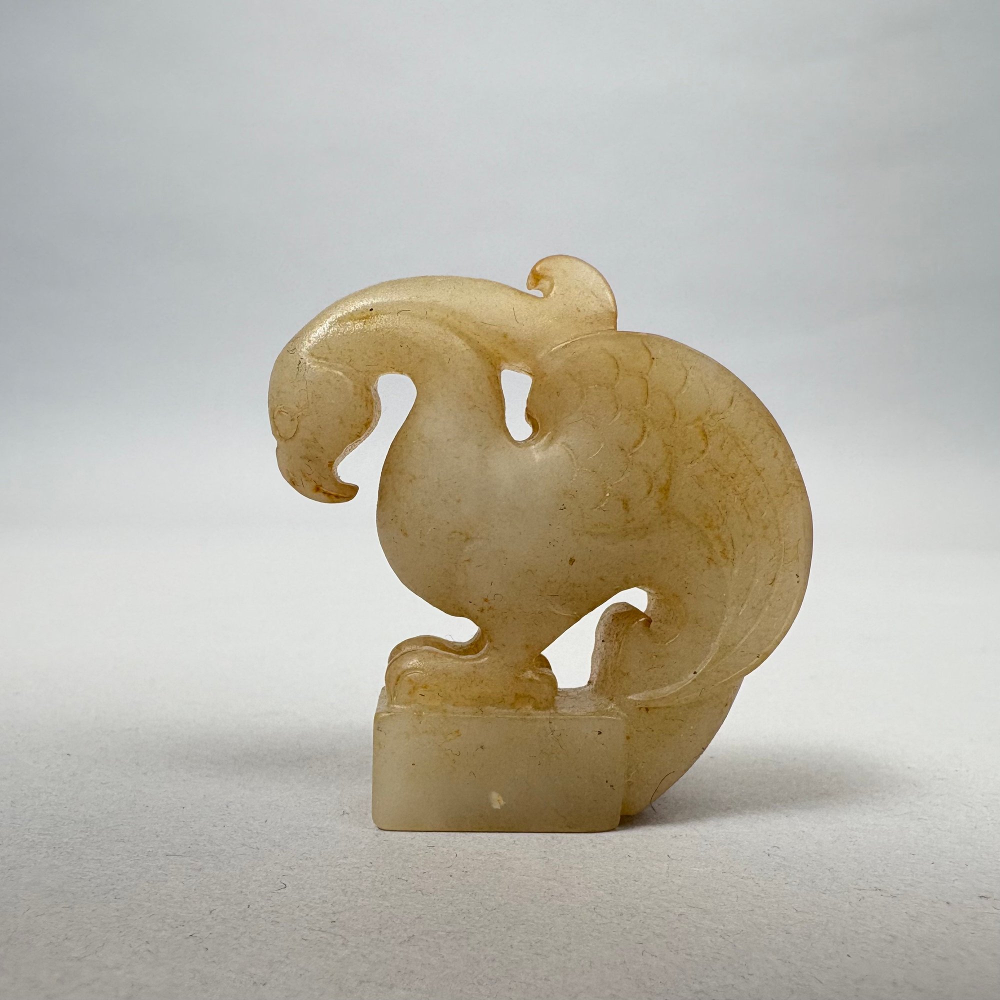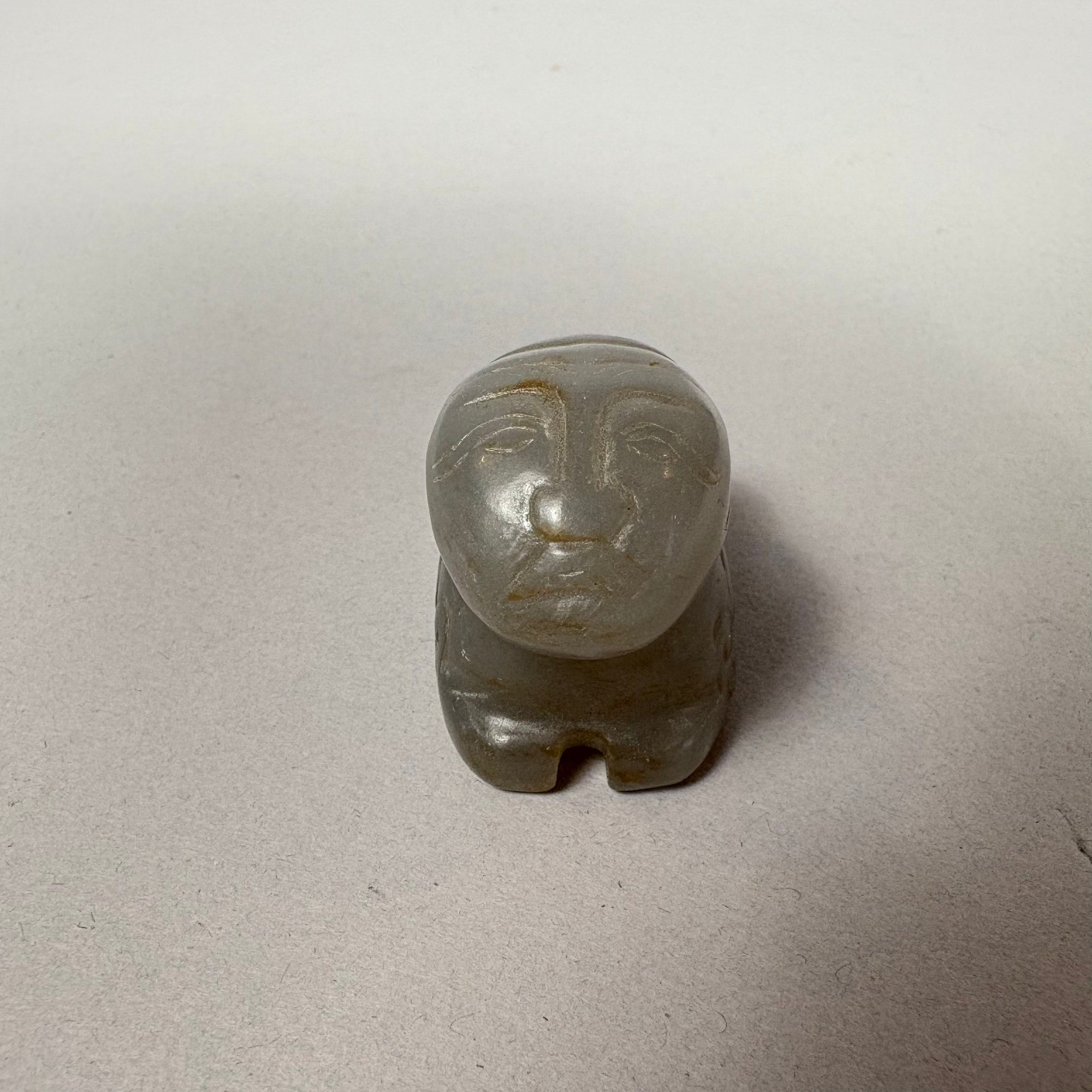 Eight Chinese Carved Nephrite Jade and Hardstone Ornamental Objects. Comprising a figure of Huangdi on top of a dragon and grabbing its whisker, a figure of a foreign man, a Chimei (spirit with human face and four legs), a water buffalo, donkey, sheep, recumbent elephant and phoenix.