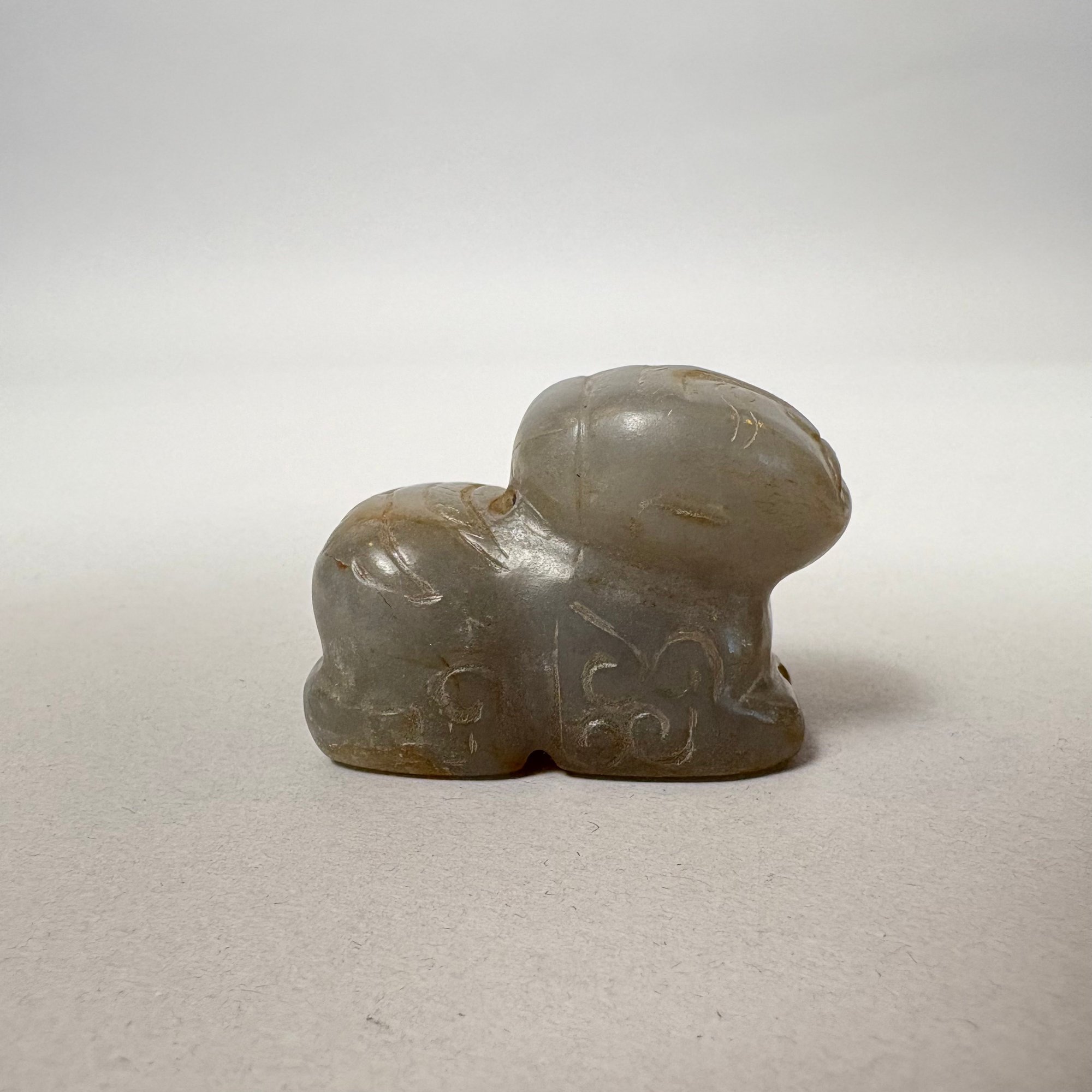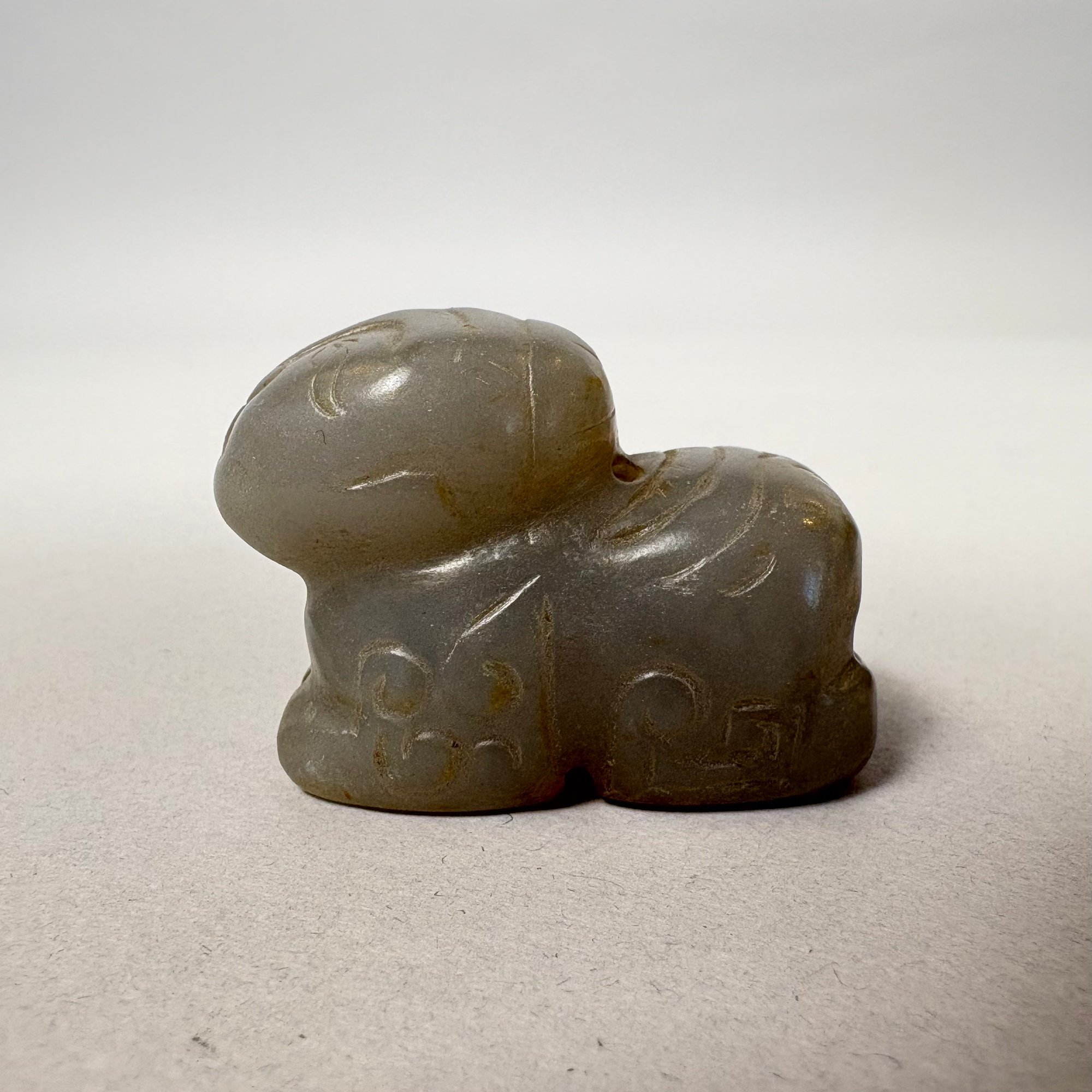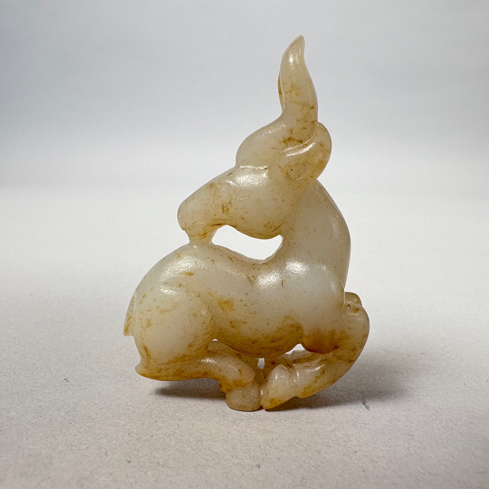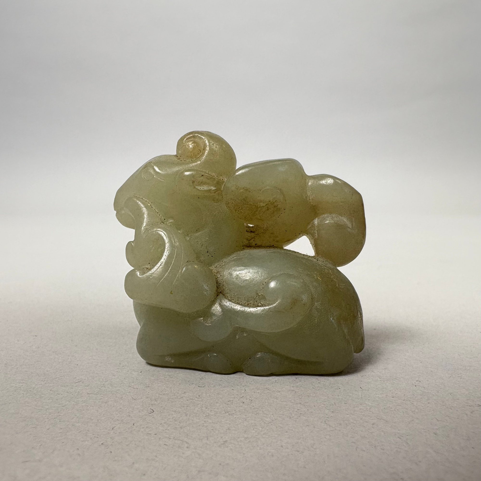 Eight Chinese Carved Nephrite Jade and Hardstone Ornamental Objects. Comprising a figure of Huangdi on top of a dragon and grabbing its whisker, a figure of a foreign man, a Chimei (spirit with human face and four legs), a water buffalo, donkey, sheep, recumbent elephant and phoenix.