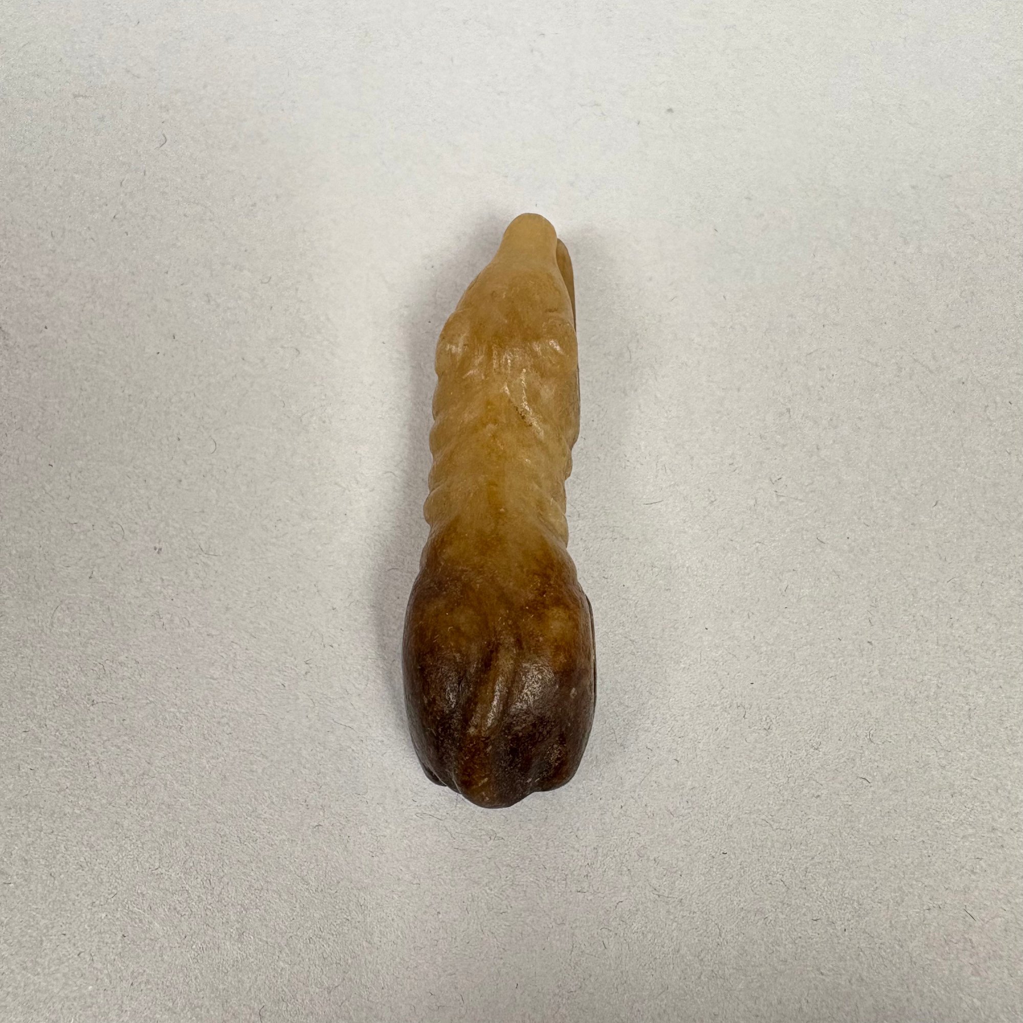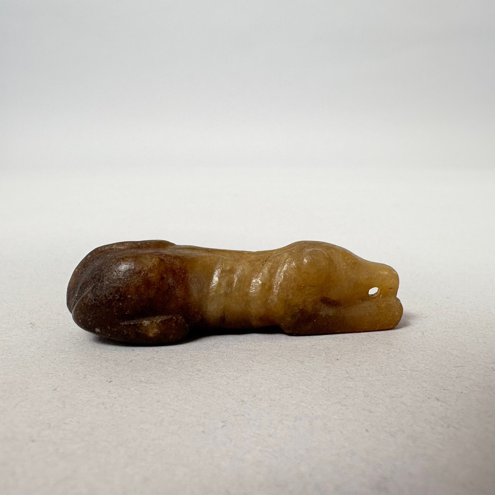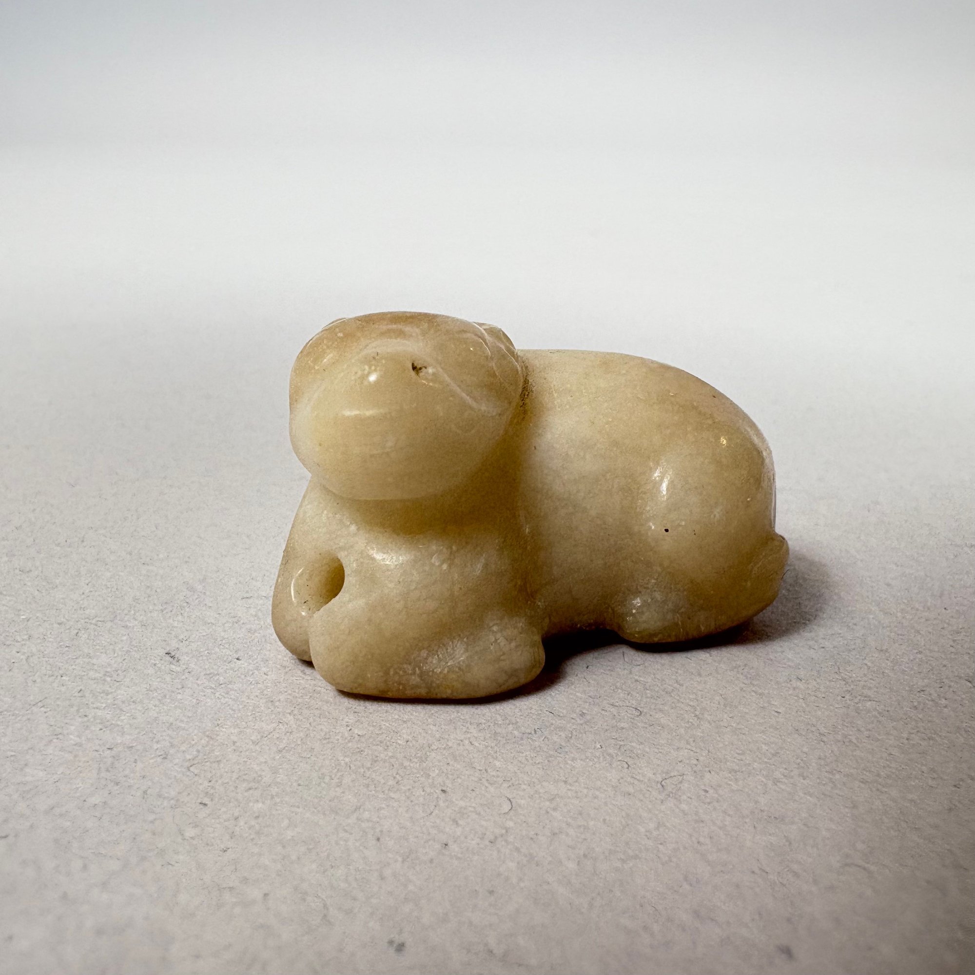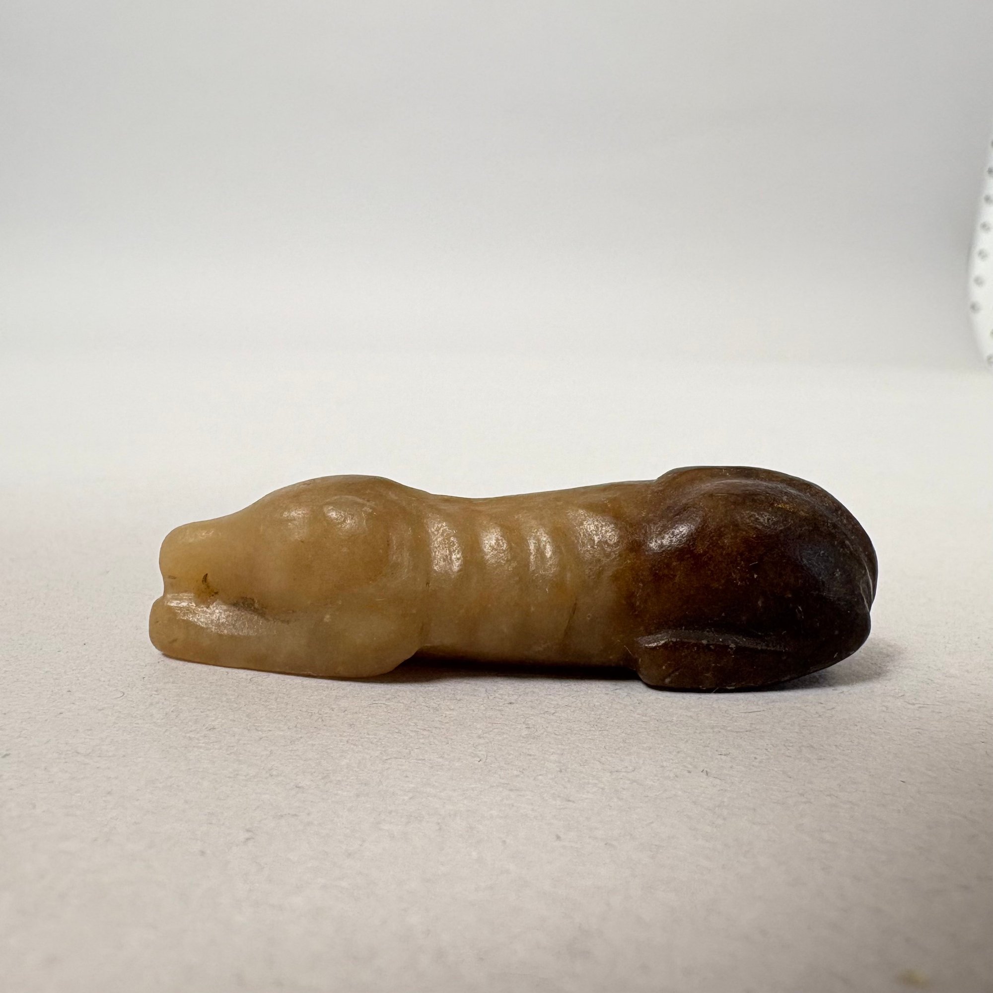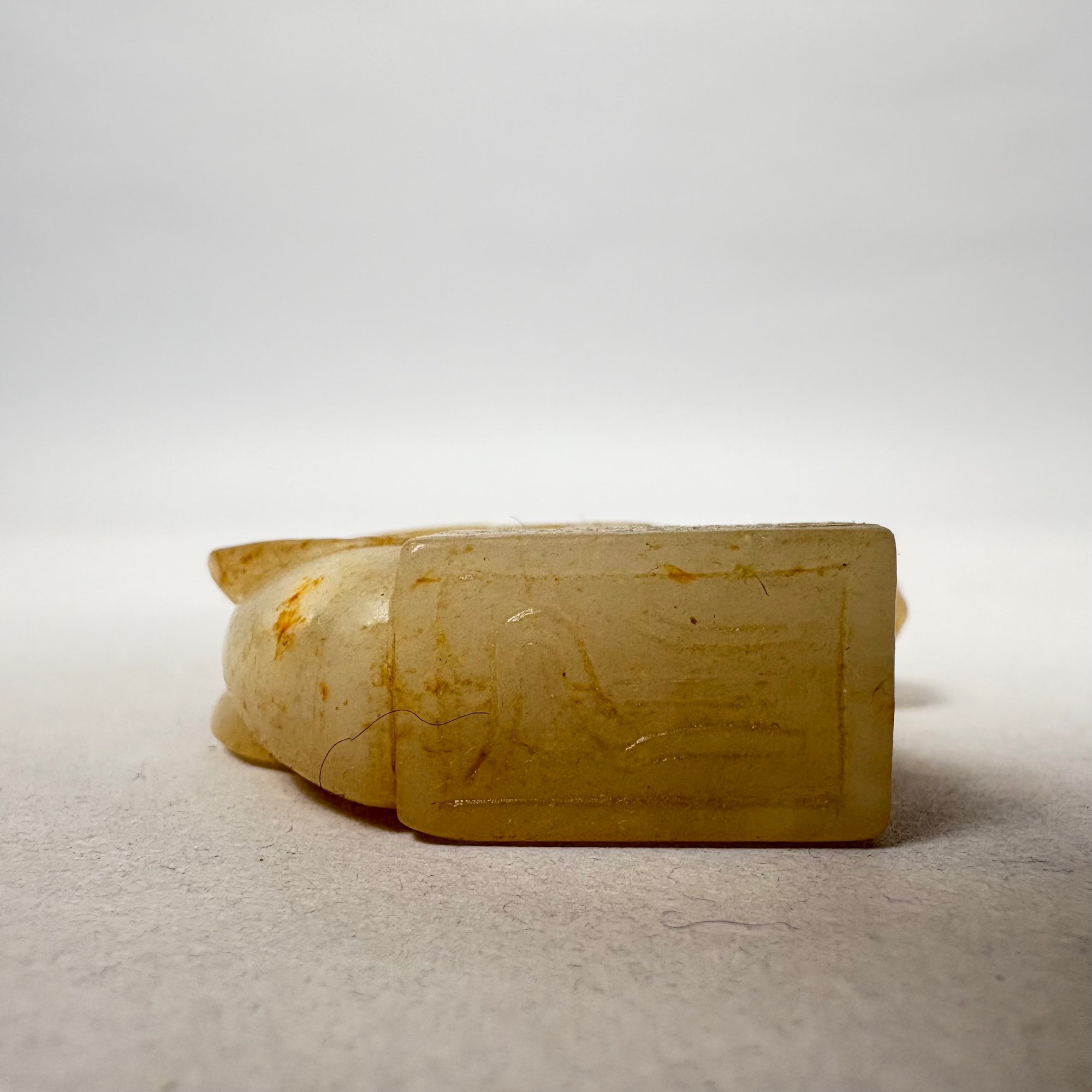 Eight Chinese Carved Nephrite Jade and Hardstone Ornamental Objects. Comprising a figure of Huangdi on top of a dragon and grabbing its whisker, a figure of a foreign man, a Chimei (spirit with human face and four legs), a water buffalo, donkey, sheep, recumbent elephant and phoenix.