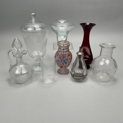 Group of Continental and American Engraved and Enamelled Glass Serving and Decorative Wares.