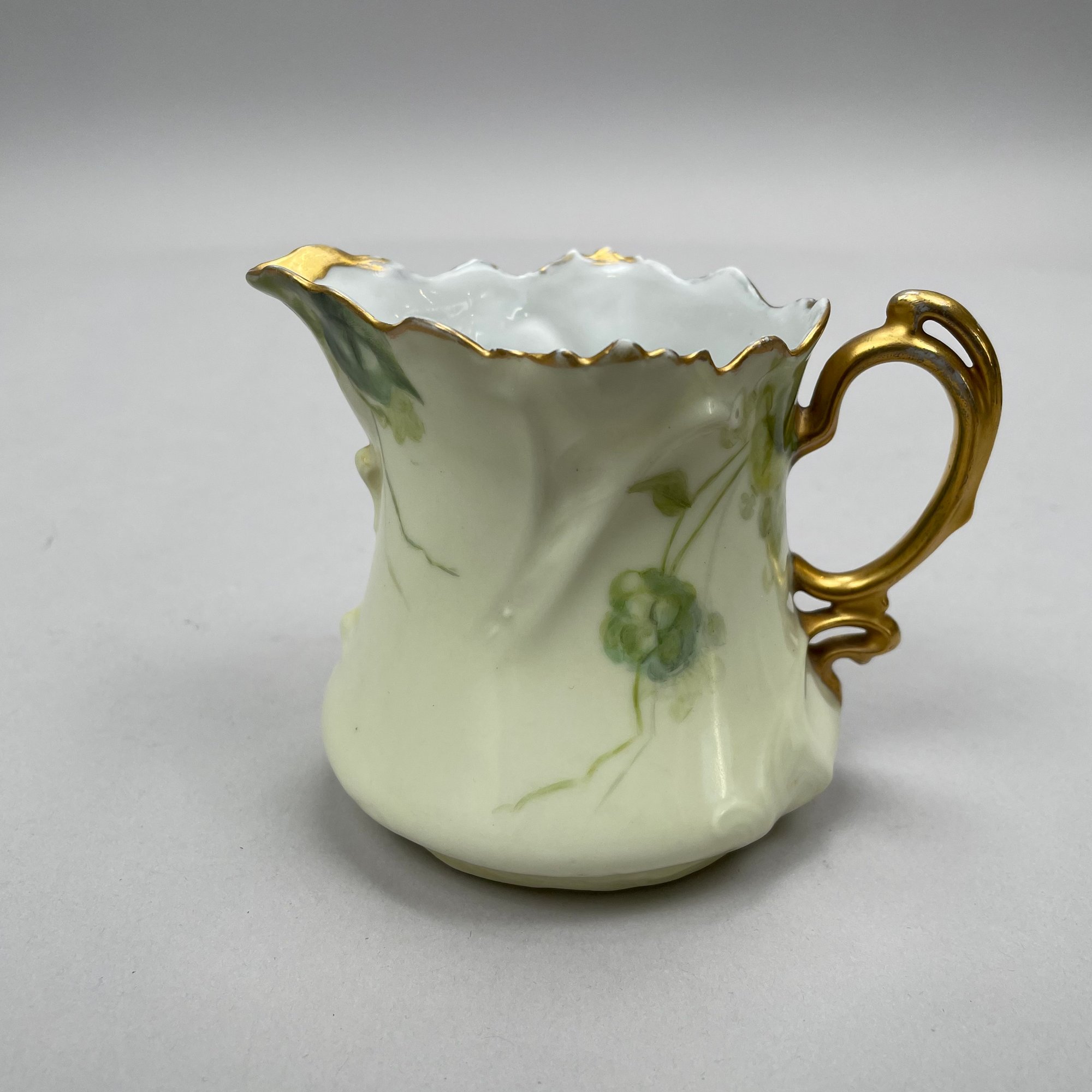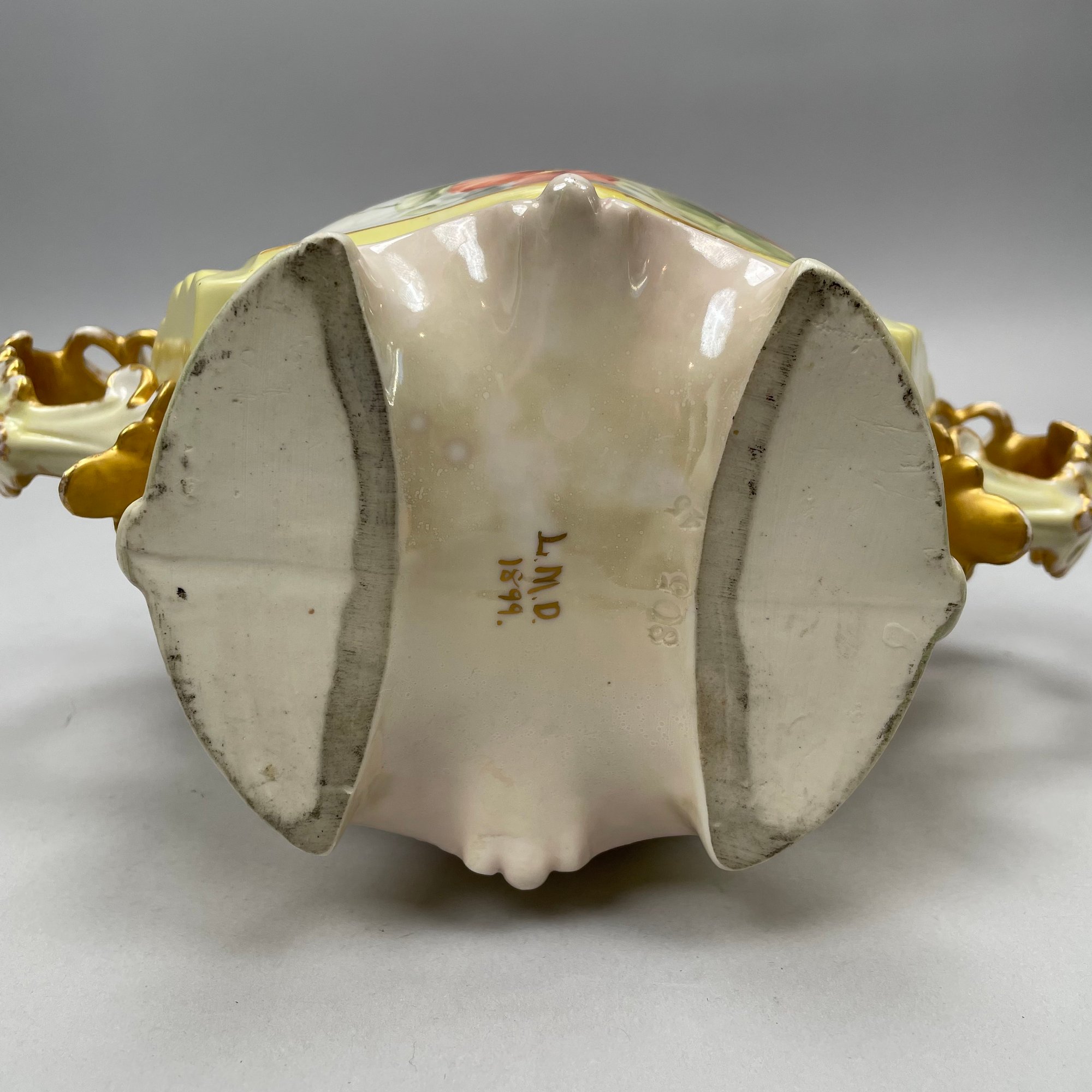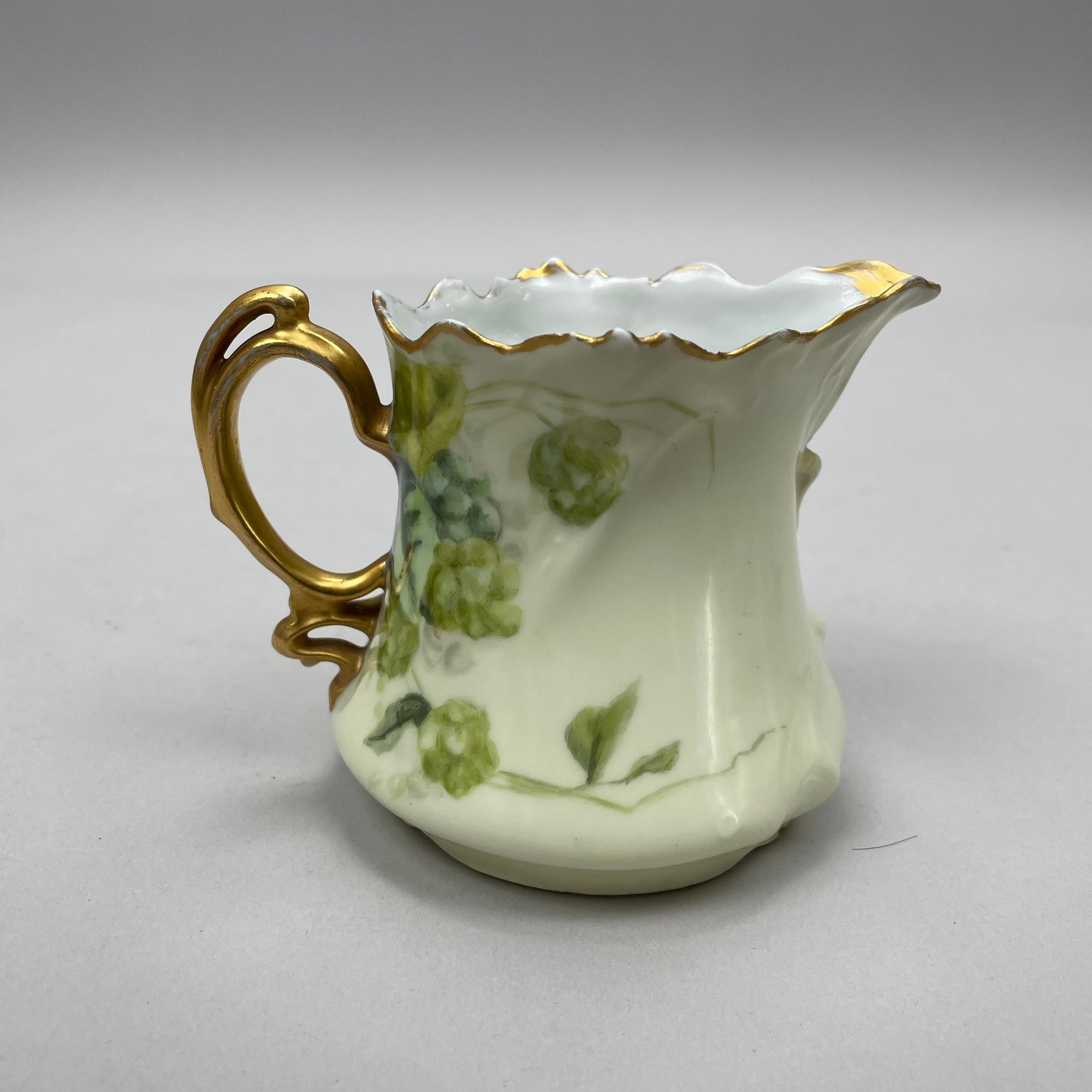 Eight Continental Handpainted Porcelain Wares, Late Nineteenth-Early Twentieth Century. Comprising a set of four Limoges plates, a milk pitcher initialled and dated "B.K.P./ 1916, a Nippon bowl, a vase initialled and dated "L.M.D. 1899, and an Austrian Turn Wien jardiniere, 1897-1906, printed factory mark, painted "II/ 6421/ 2519/ 34."