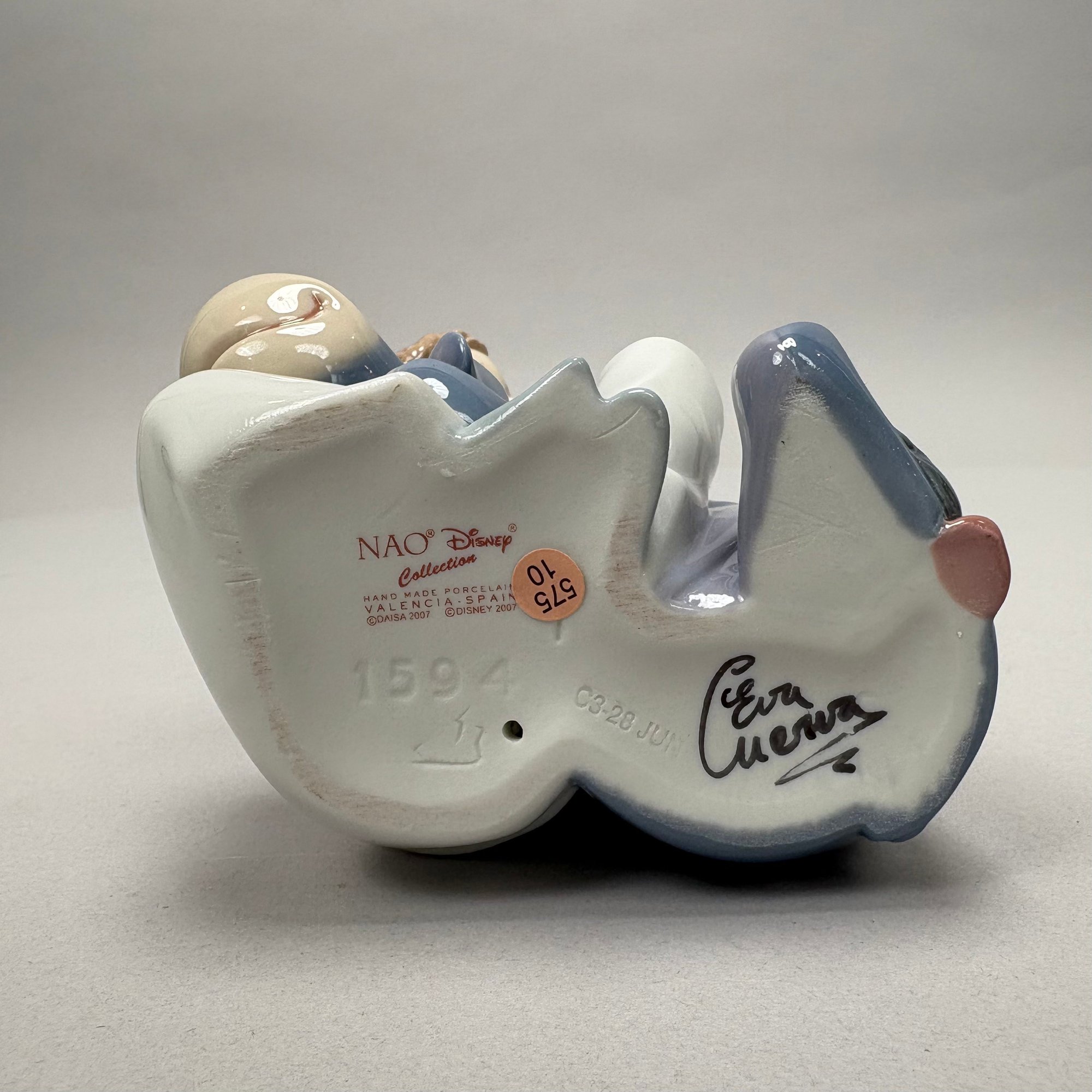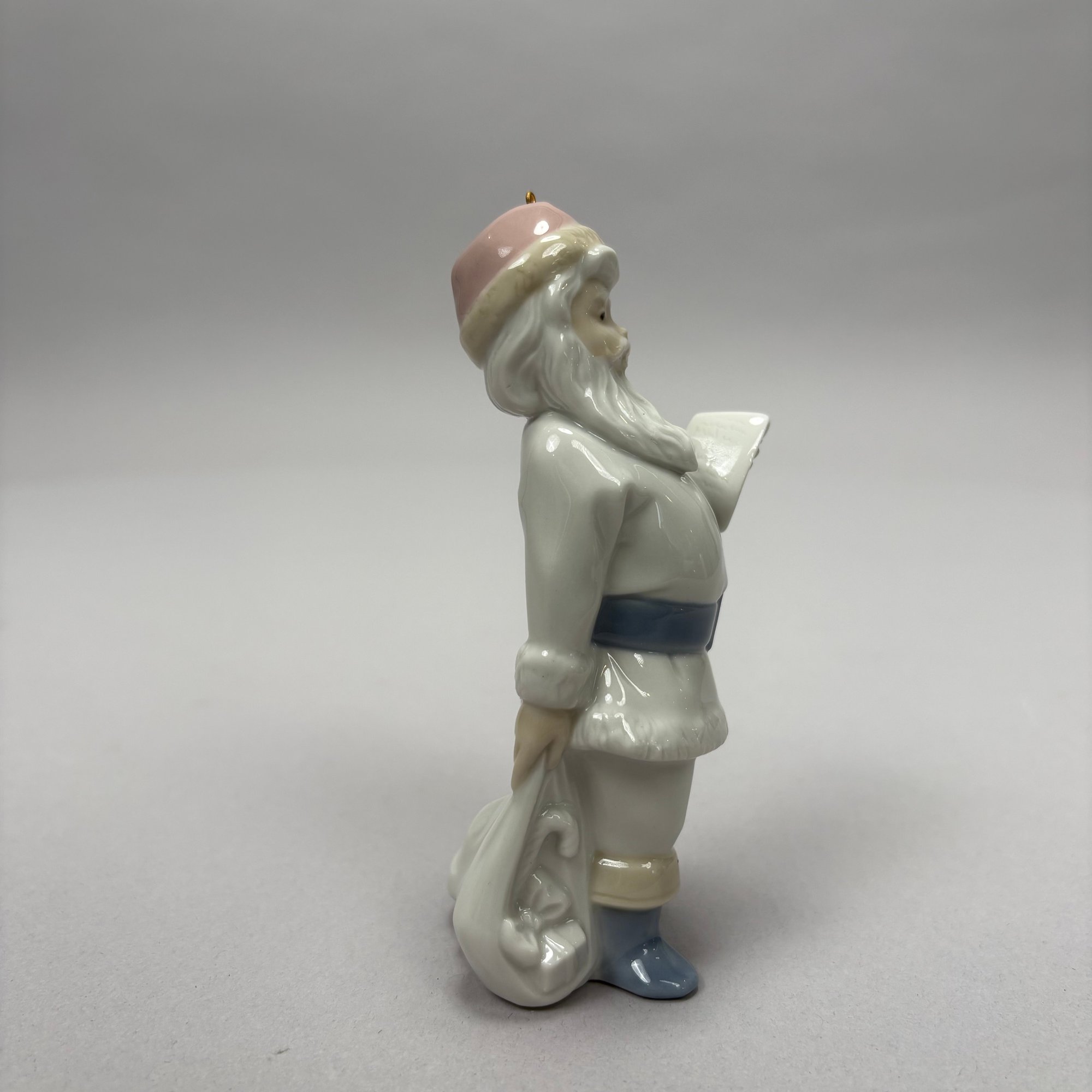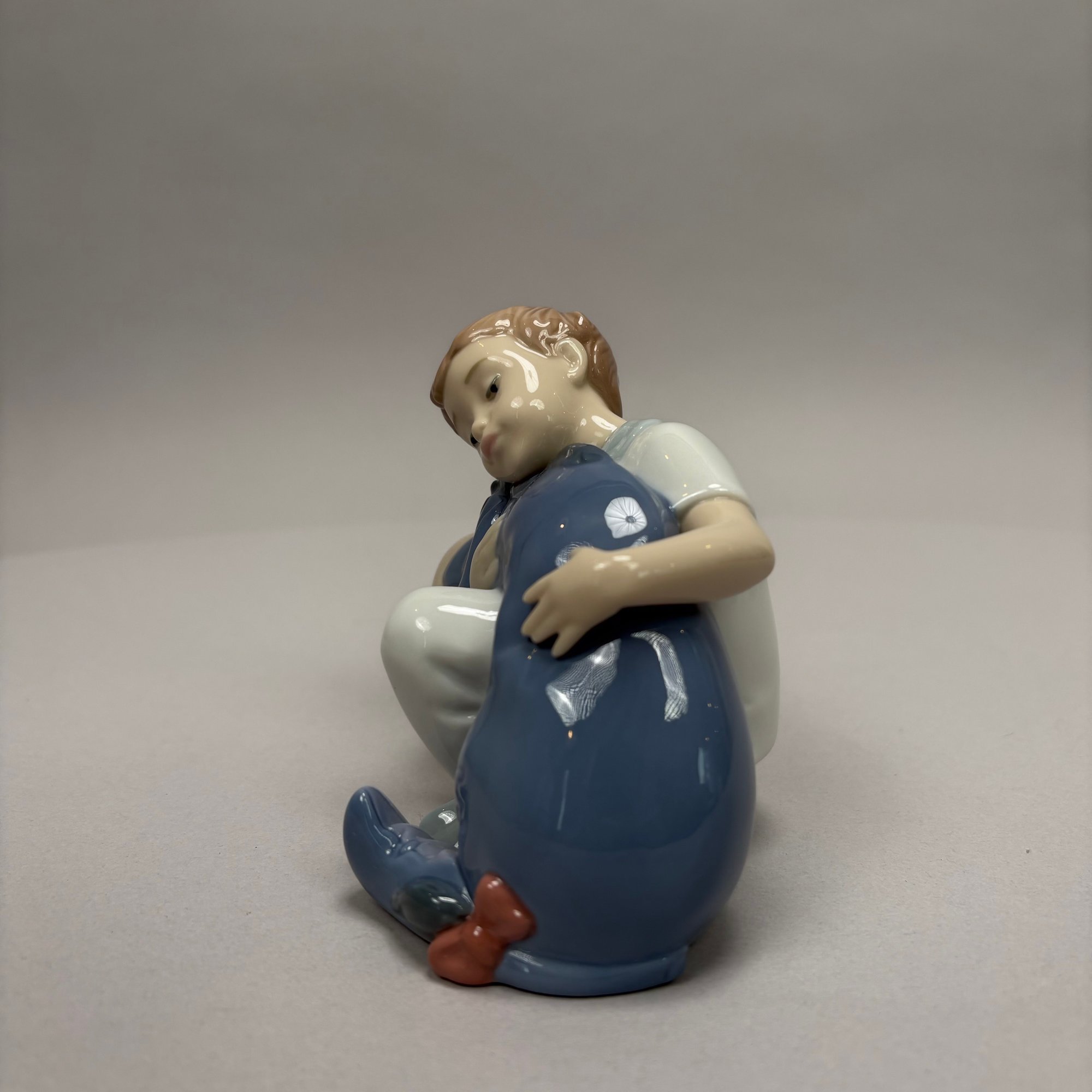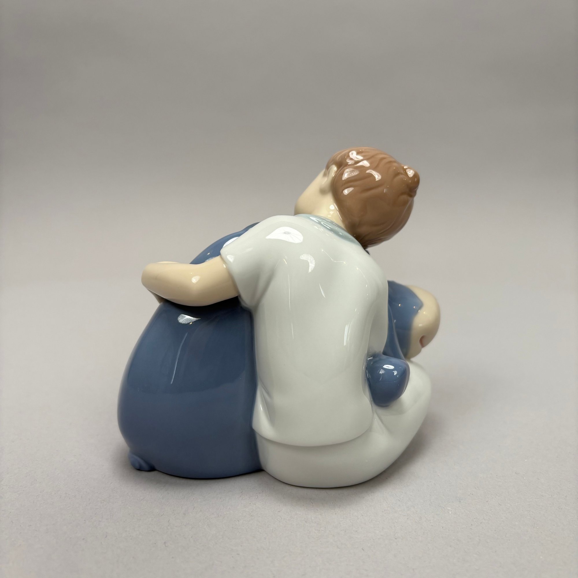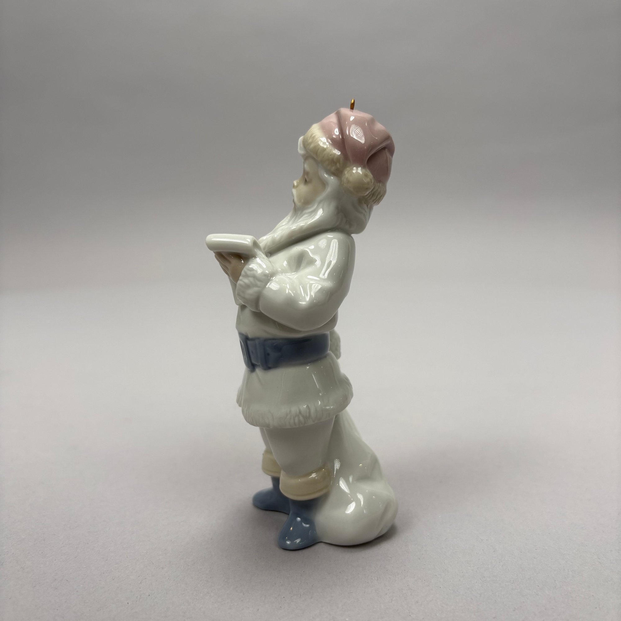Comprising a Lladro #1867 "Flowers of Peace" figure (signed, with base & brass photo frame), a Lladro #7677 "Art Brings Us Together" figure, a Lladro #17657 "Sailing the Seas" cup, a Lladro #17616 "Winter Bell", a Lladro #5842 "Santa Claus" figure, a Nao by Lladro #1155 "Nina con Palmatoria" figure, a Nao by Lladro #2001595 "Hugs With Tigger" figure (signed), and a Nao by Lladro #2001594 "Dreams With Eeyore" figure (signed); each housed in the original box.