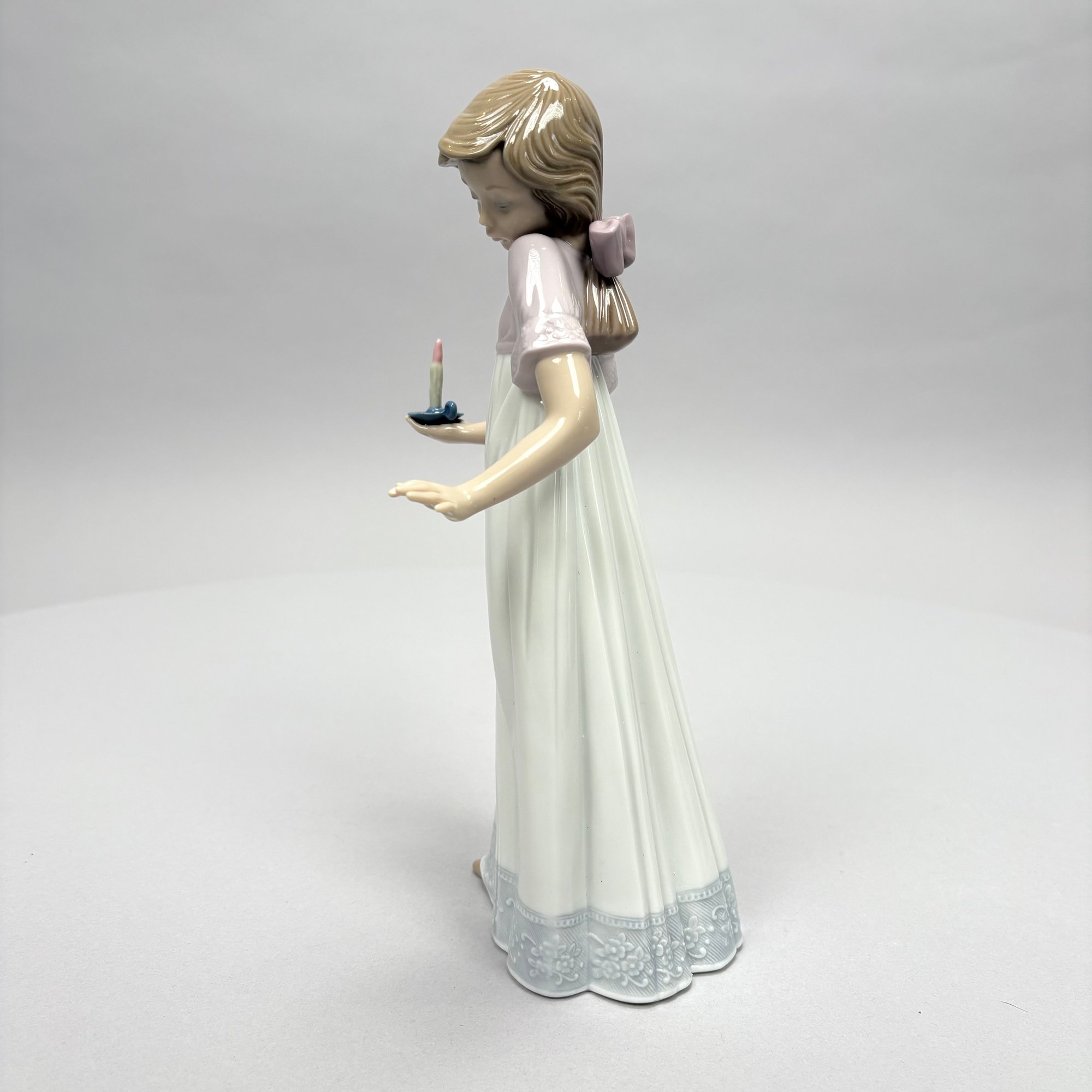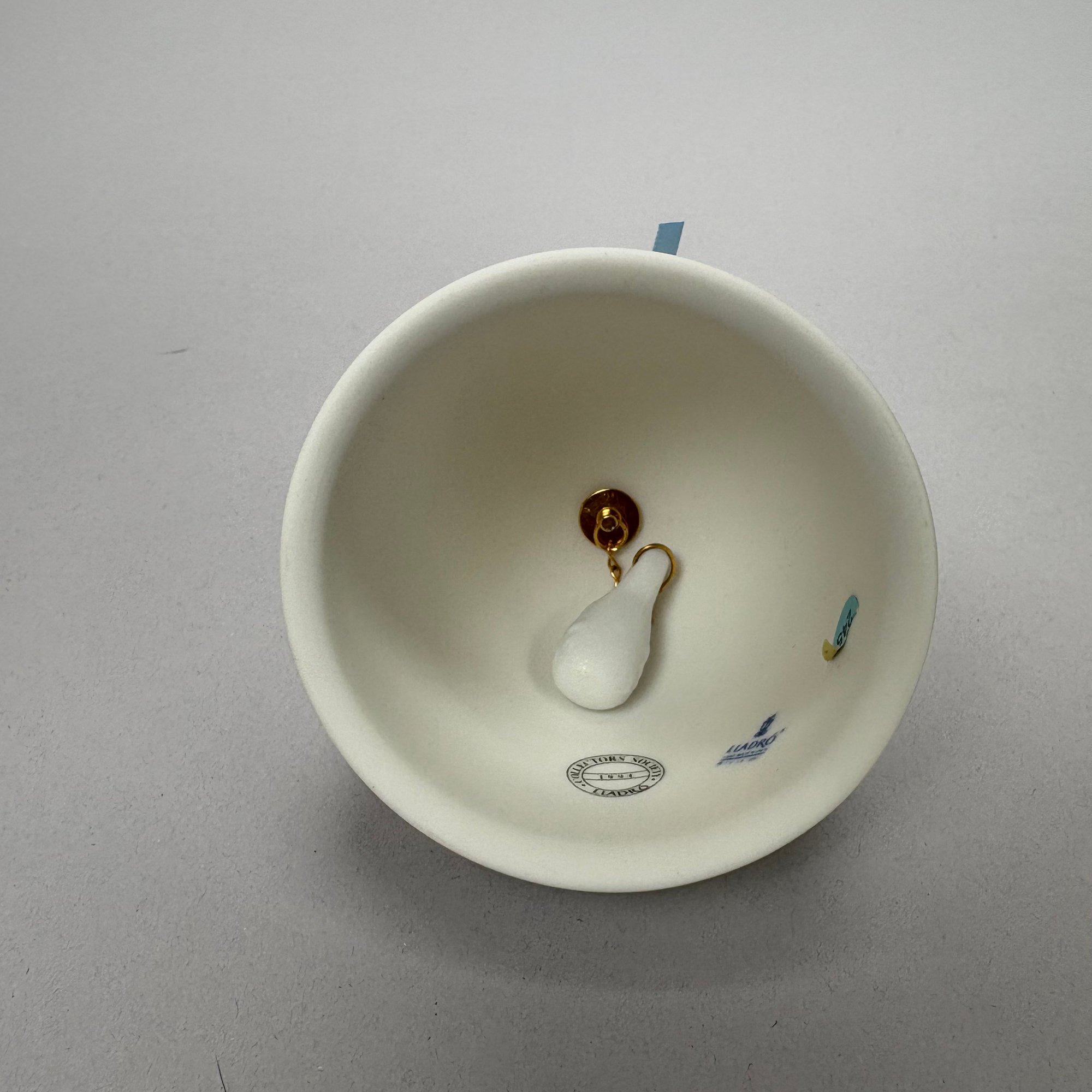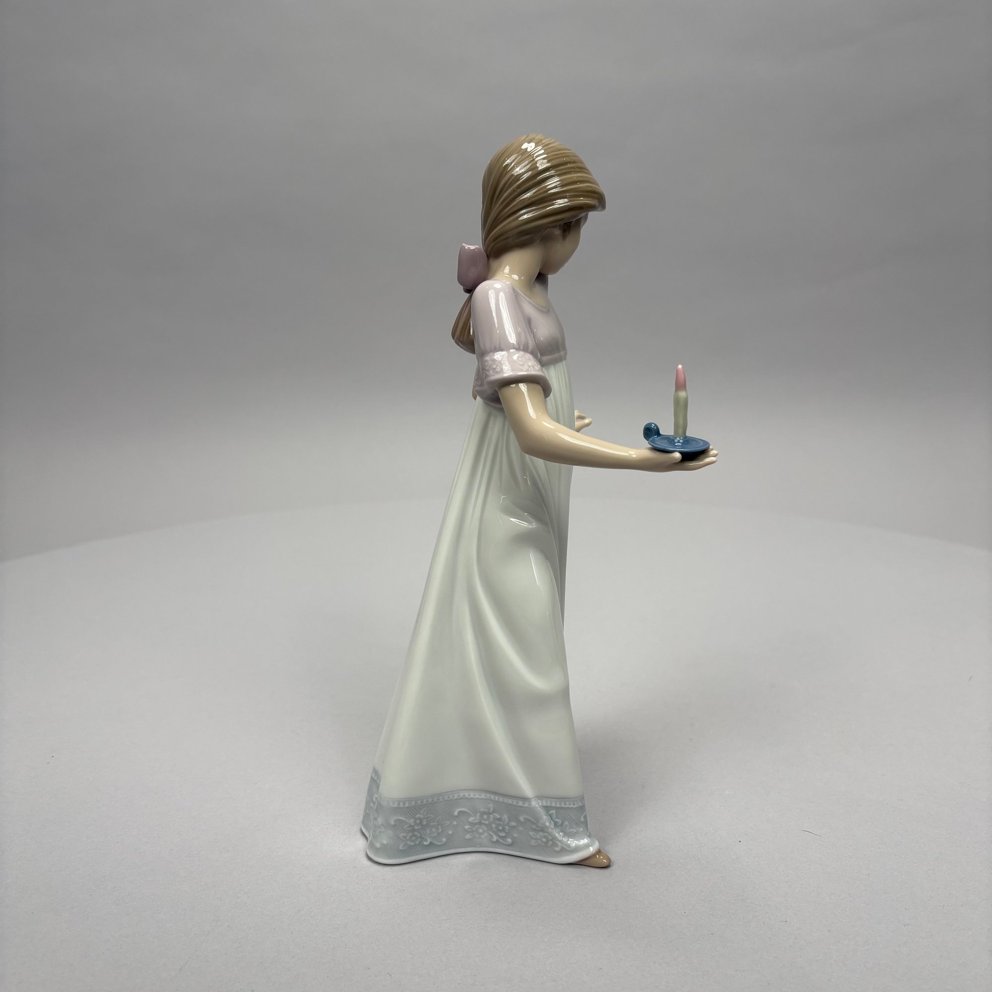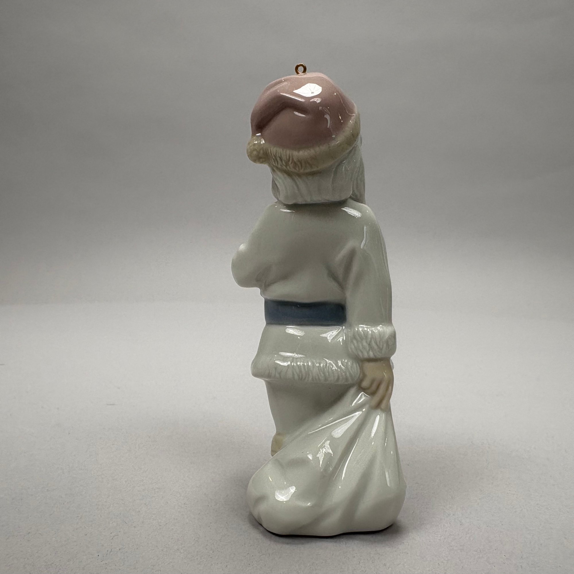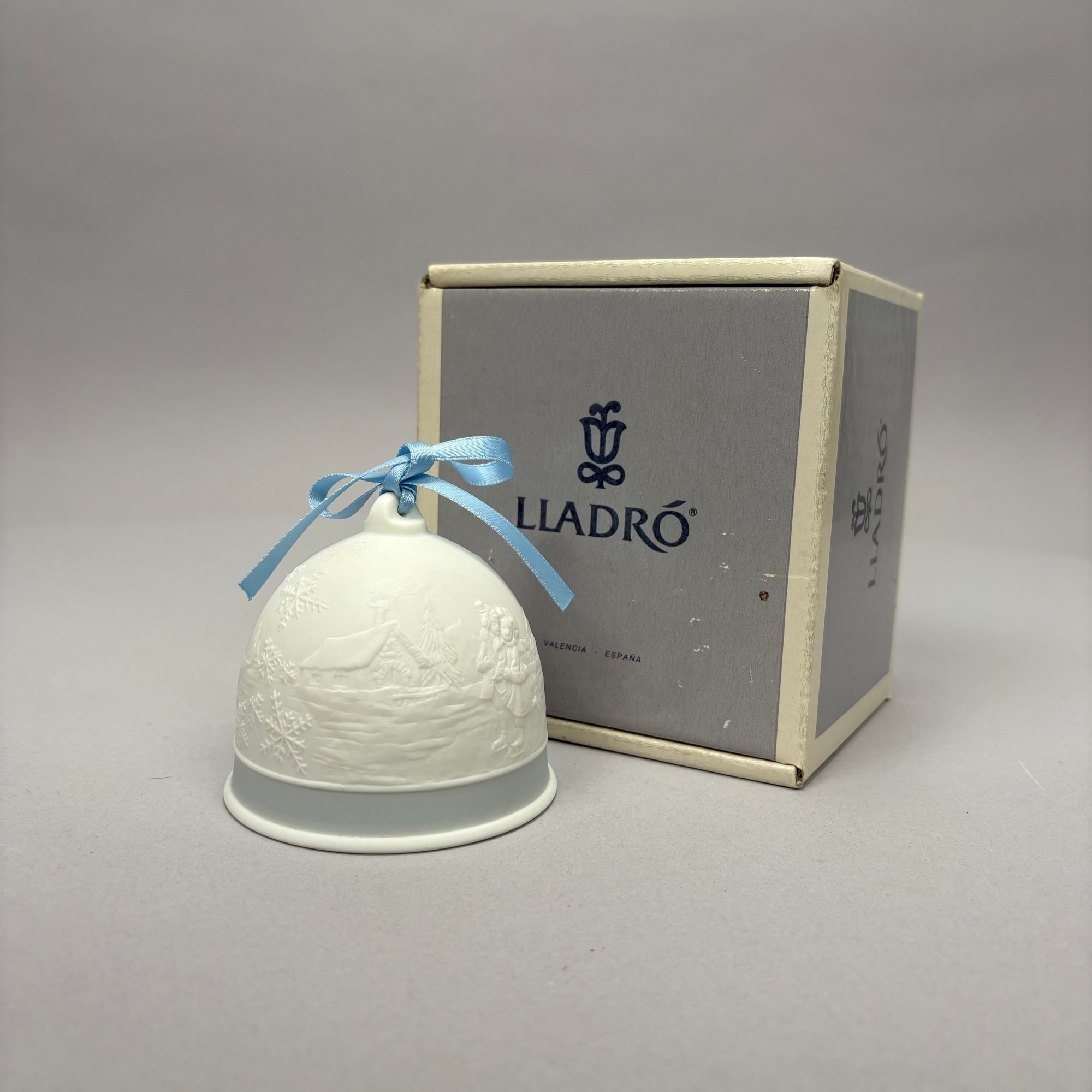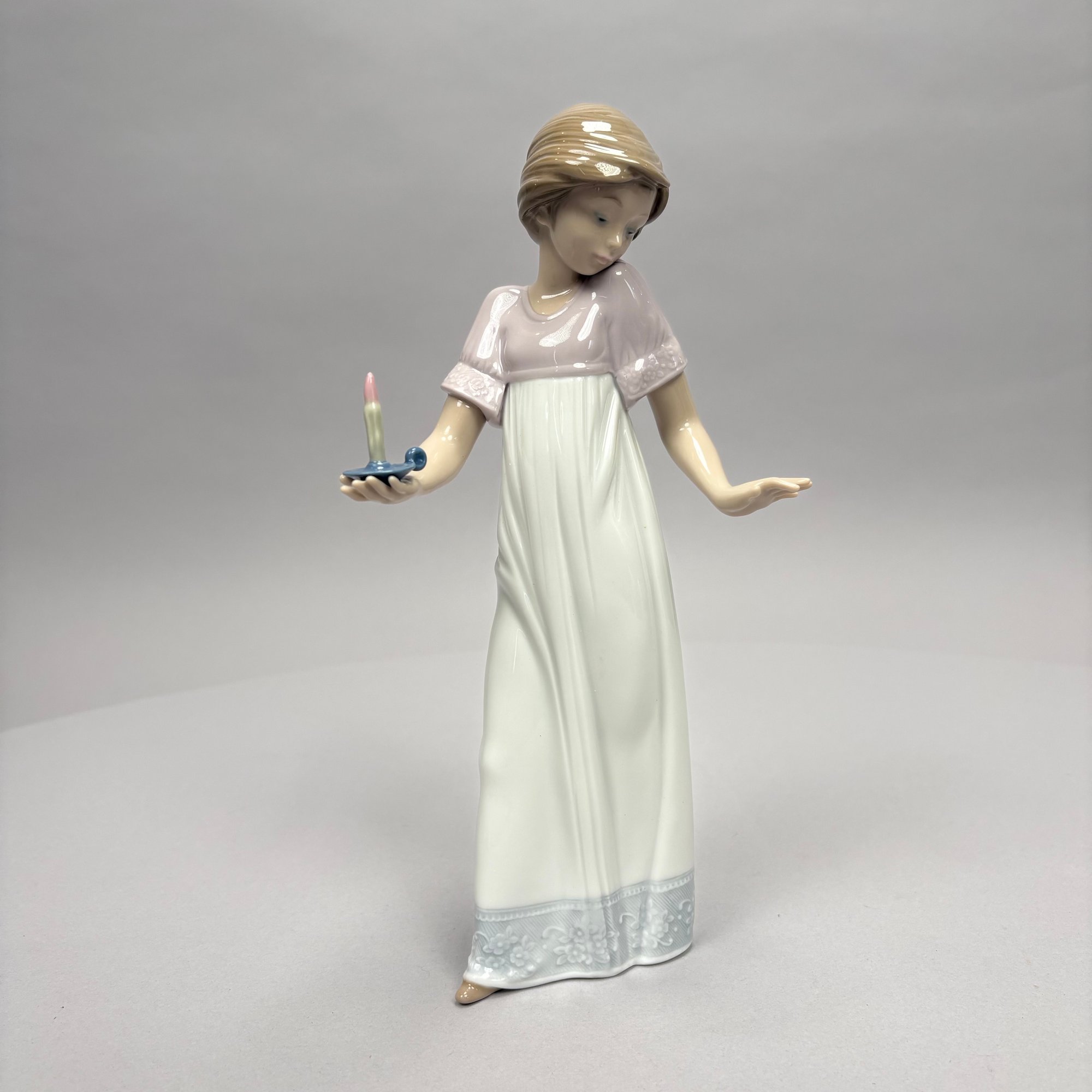 Comprising a Lladro #1867 "Flowers of Peace" figure (signed, with base & brass photo frame), a Lladro #7677 "Art Brings Us Together" figure, a Lladro #17657 "Sailing the Seas" cup, a Lladro #17616 "Winter Bell", a Lladro #5842 "Santa Claus" figure, a Nao by Lladro #1155 "Nina con Palmatoria" figure, a Nao by Lladro #2001595 "Hugs With Tigger" figure (signed), and a Nao by Lladro #2001594 "Dreams With Eeyore" figure (signed); each housed in the original box.