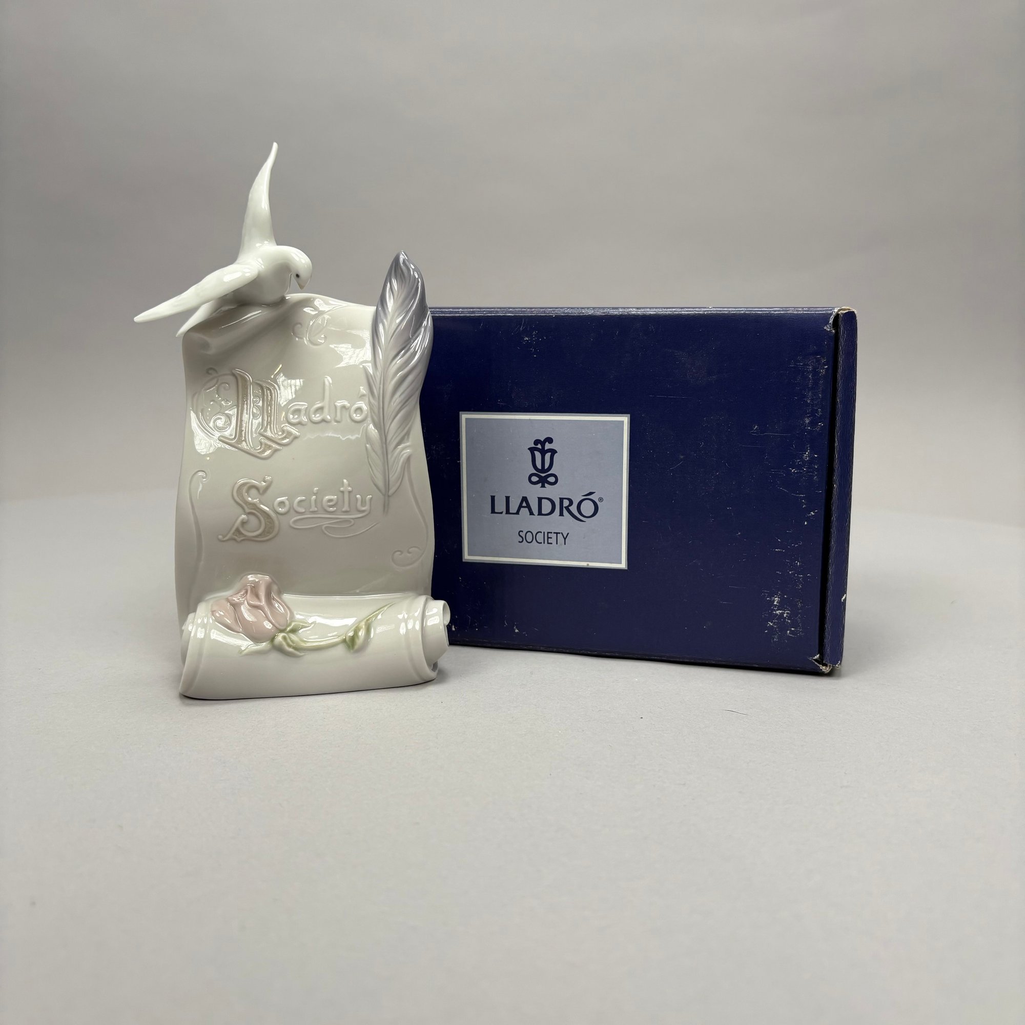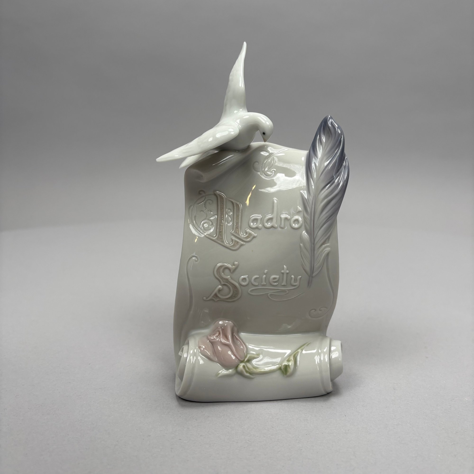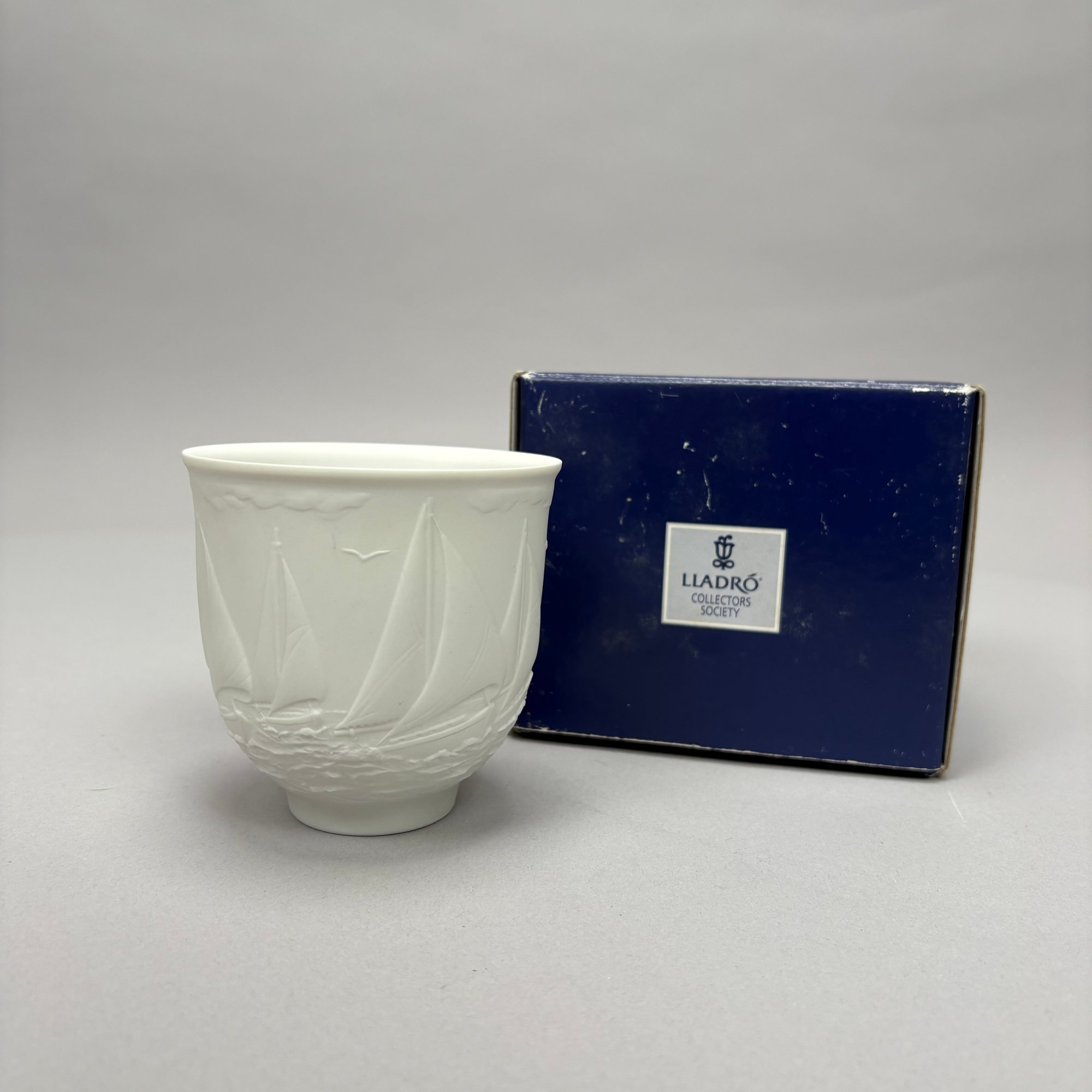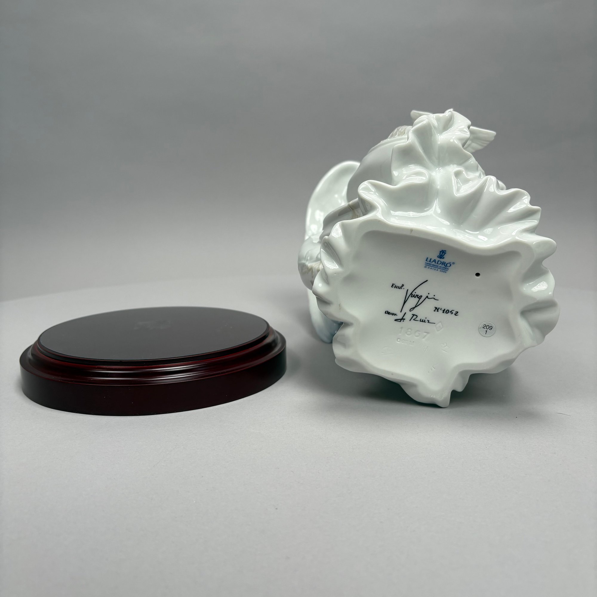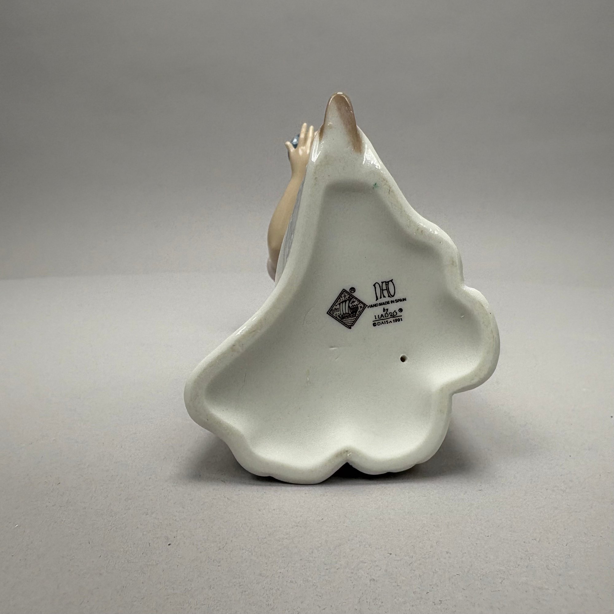 Comprising a Lladro #1867 "Flowers of Peace" figure (signed, with base & brass photo frame), a Lladro #7677 "Art Brings Us Together" figure, a Lladro #17657 "Sailing the Seas" cup, a Lladro #17616 "Winter Bell", a Lladro #5842 "Santa Claus" figure, a Nao by Lladro #1155 "Nina con Palmatoria" figure, a Nao by Lladro #2001595 "Hugs With Tigger" figure (signed), and a Nao by Lladro #2001594 "Dreams With Eeyore" figure (signed); each housed in the original box.