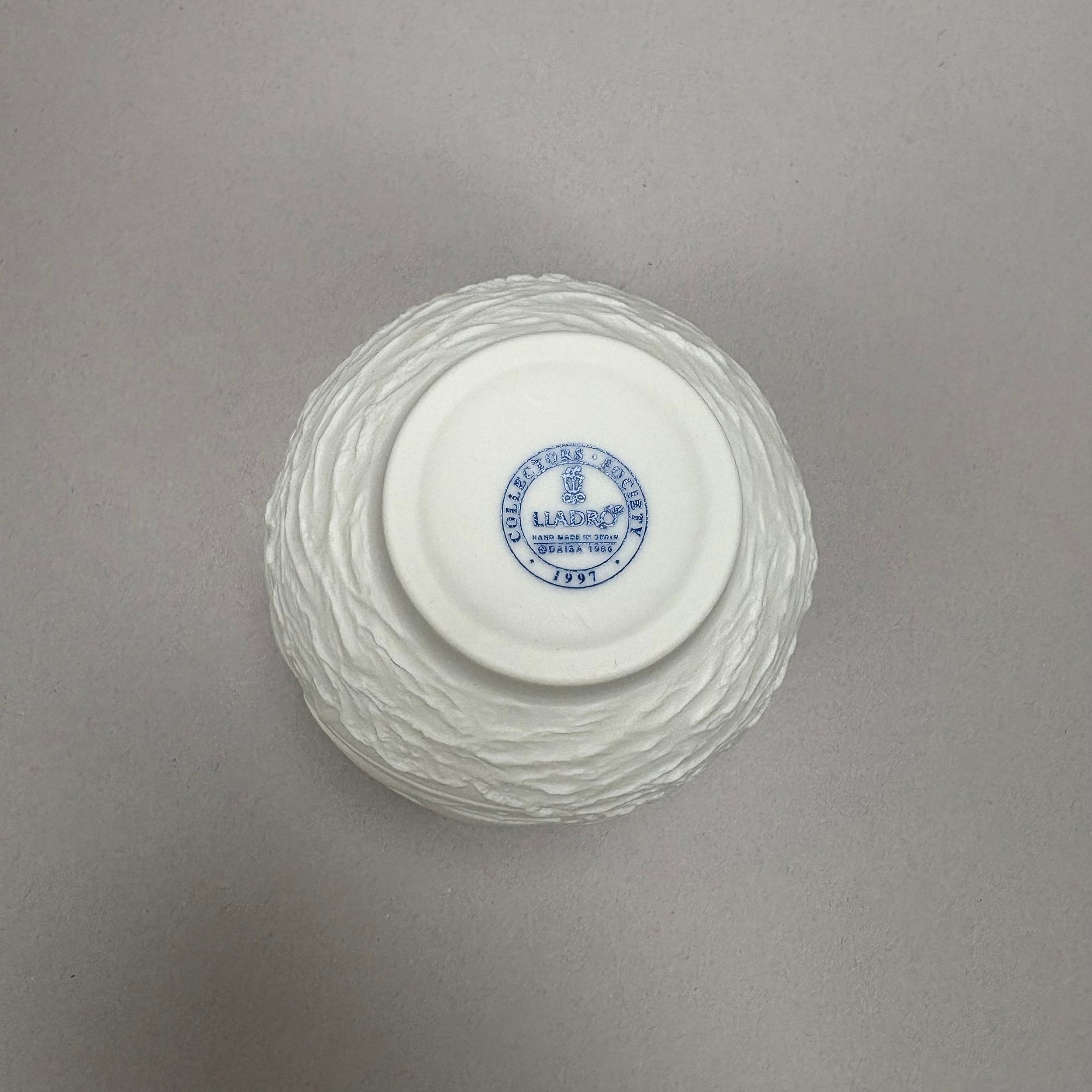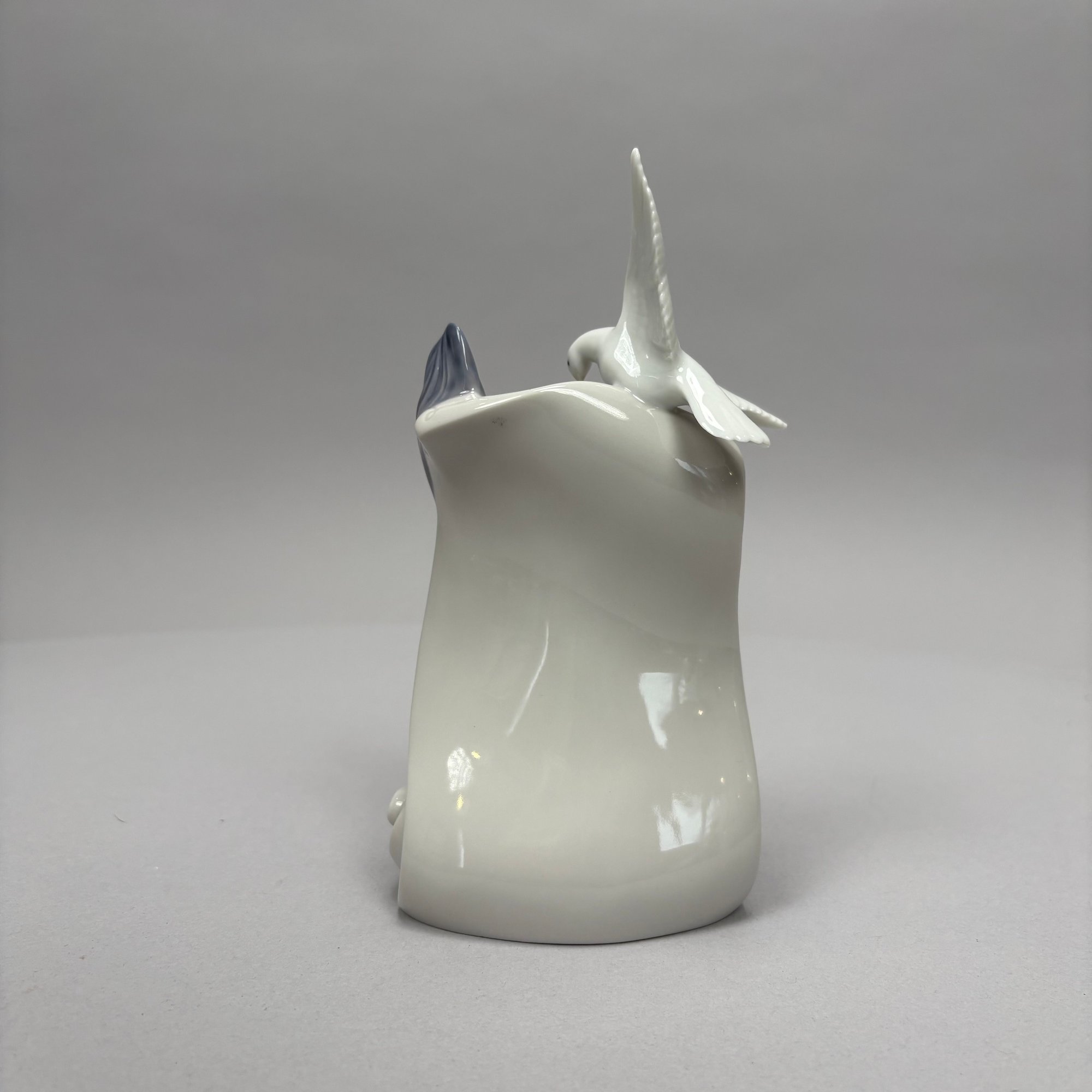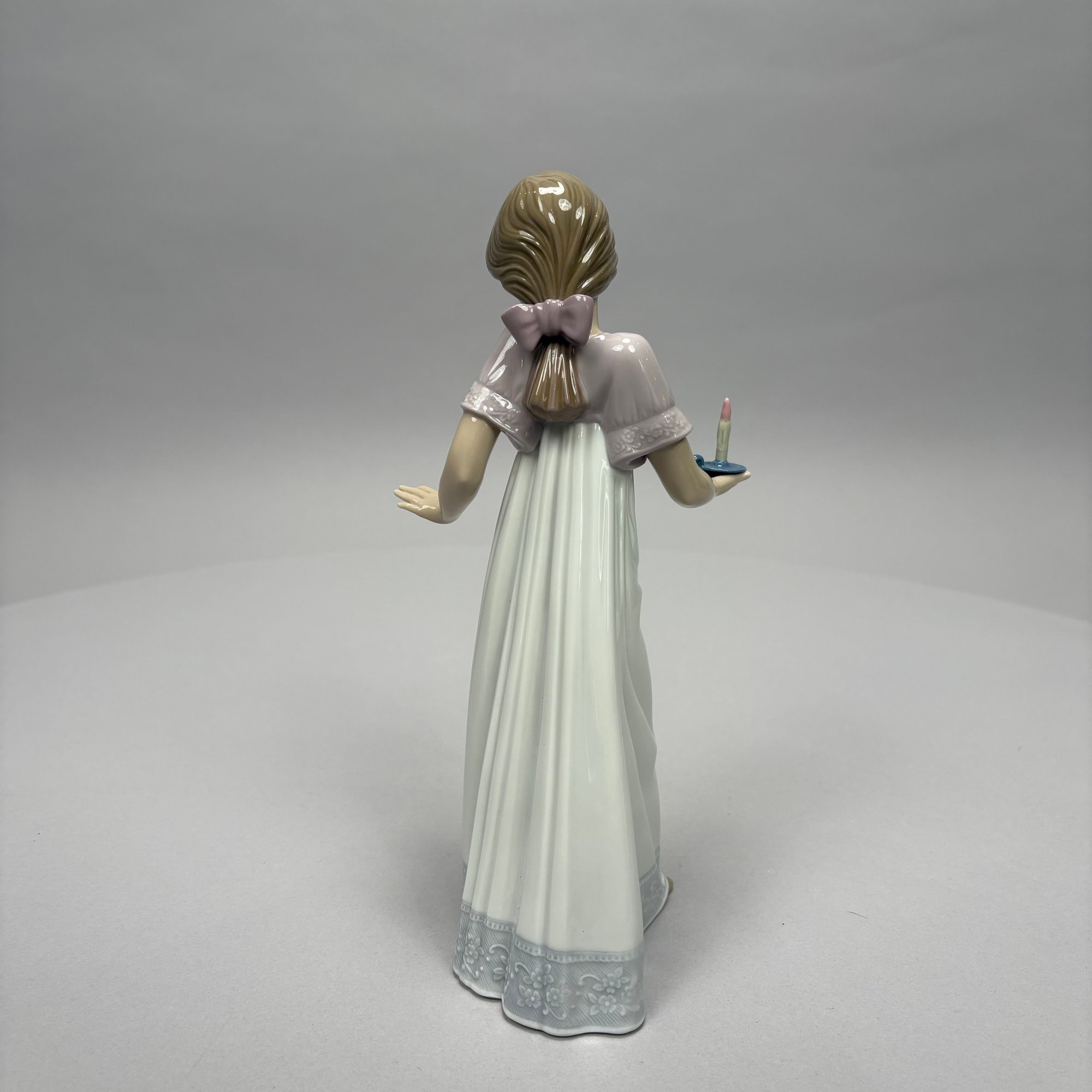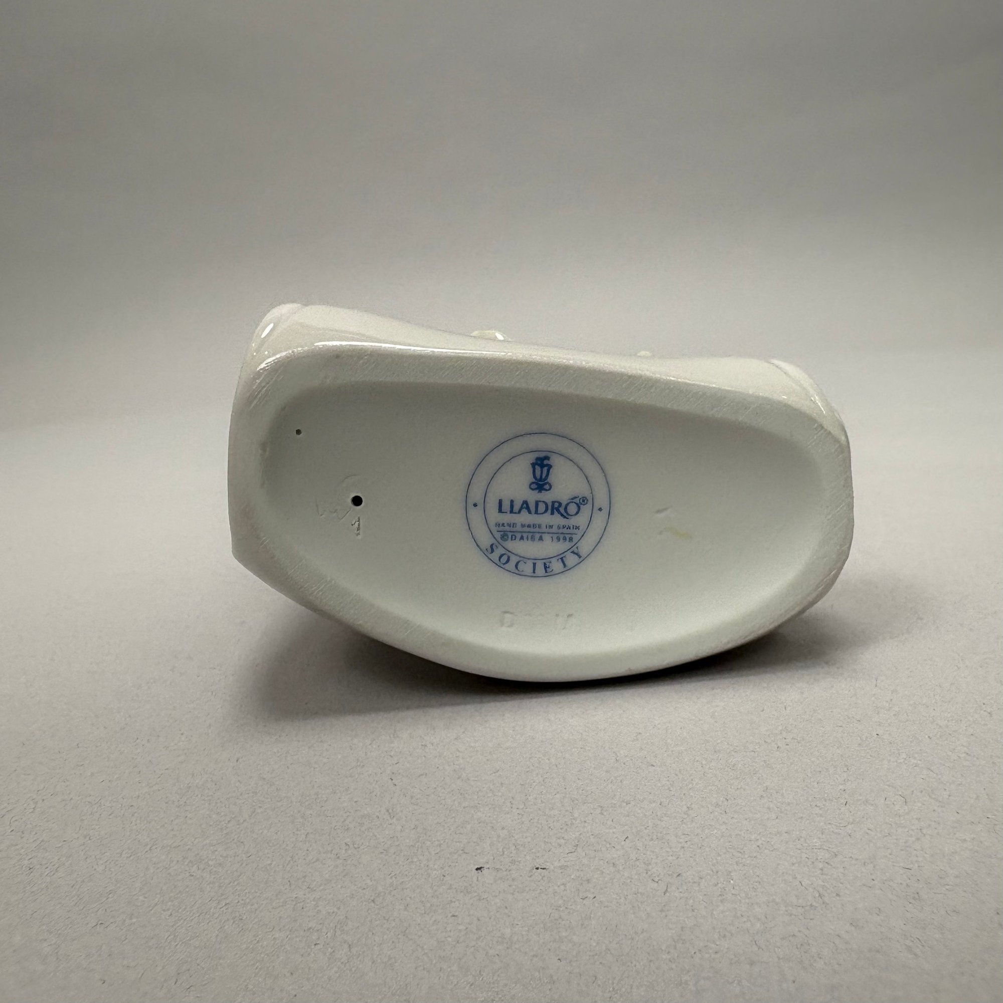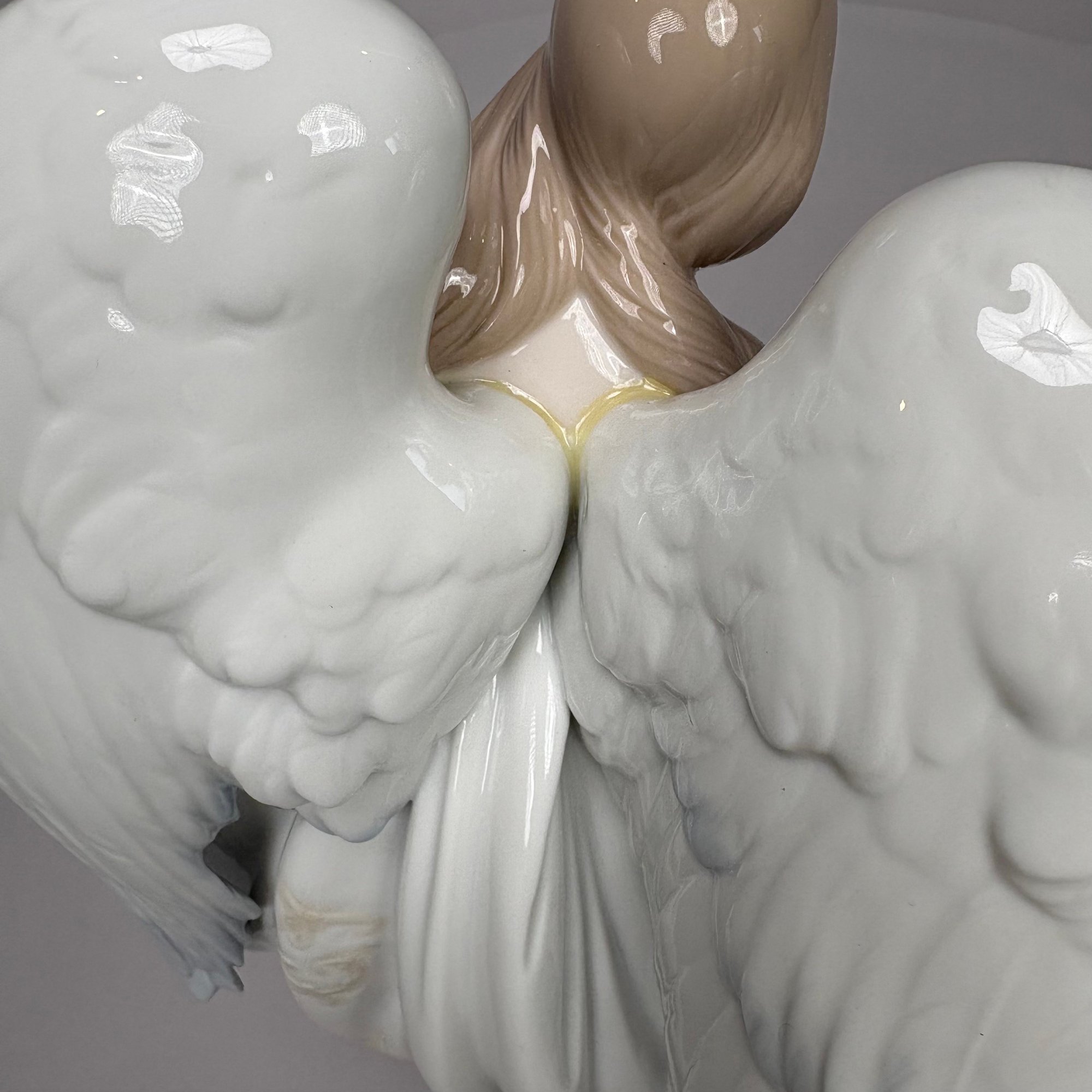 Comprising a Lladro #1867 "Flowers of Peace" figure (signed, with base & brass photo frame), a Lladro #7677 "Art Brings Us Together" figure, a Lladro #17657 "Sailing the Seas" cup, a Lladro #17616 "Winter Bell", a Lladro #5842 "Santa Claus" figure, a Nao by Lladro #1155 "Nina con Palmatoria" figure, a Nao by Lladro #2001595 "Hugs With Tigger" figure (signed), and a Nao by Lladro #2001594 "Dreams With Eeyore" figure (signed); each housed in the original box.