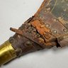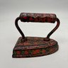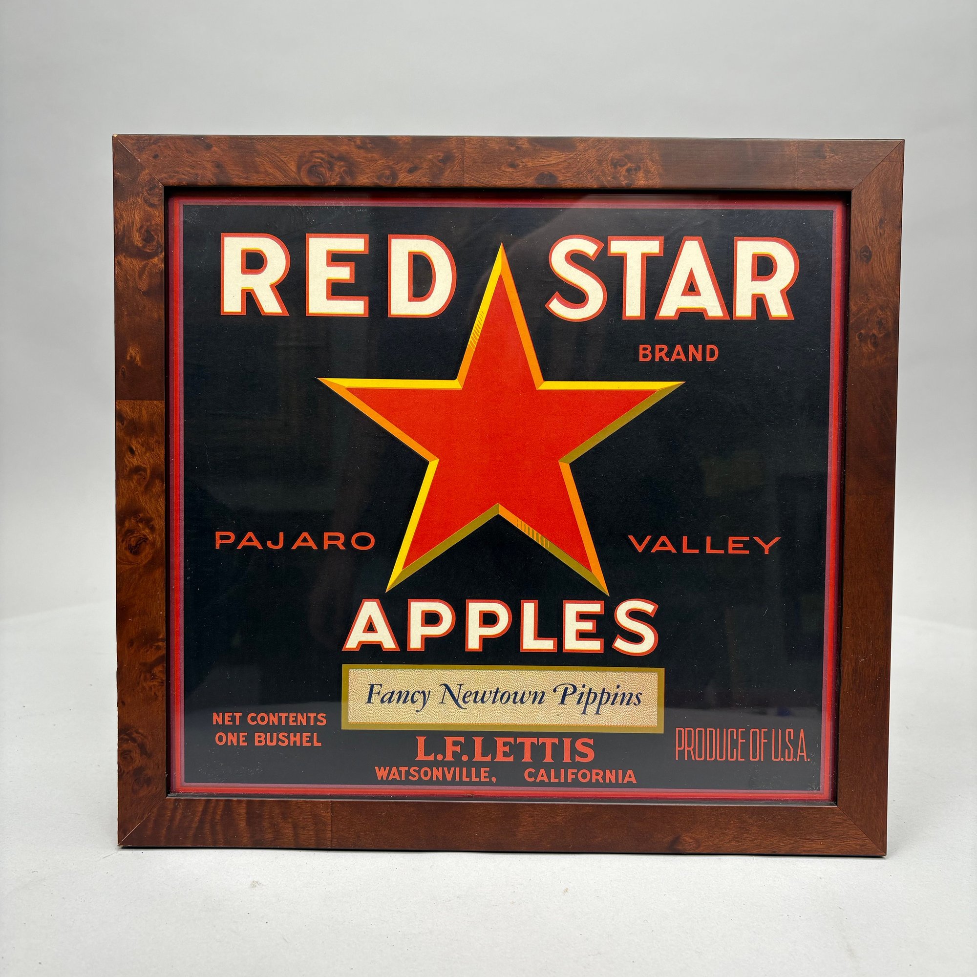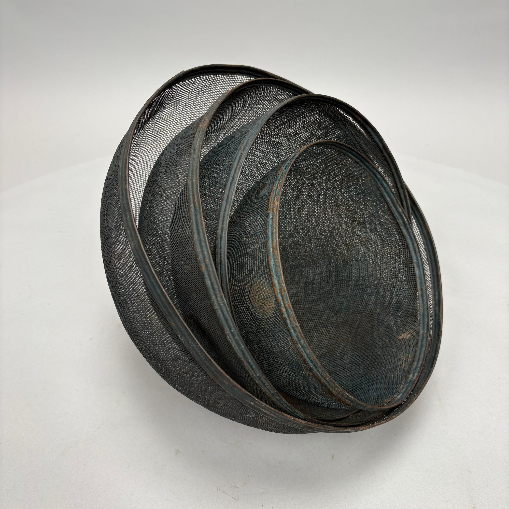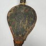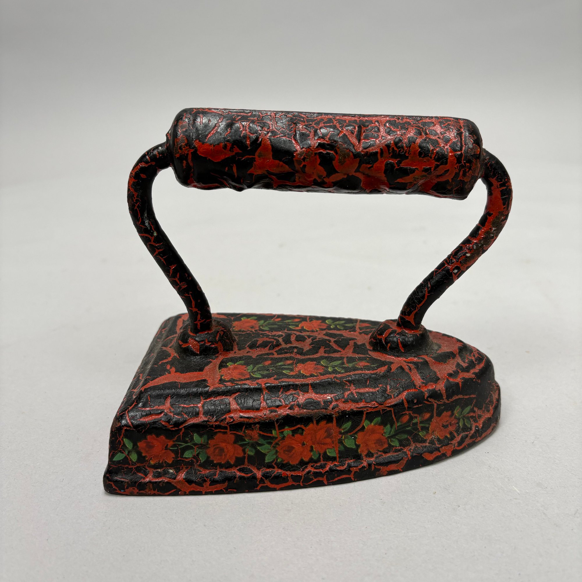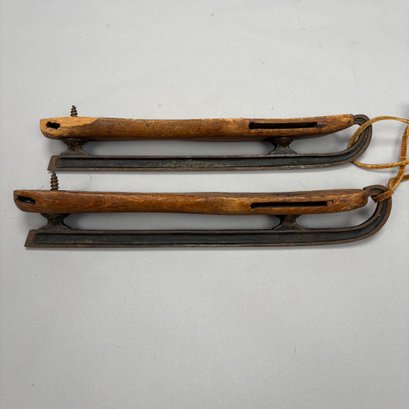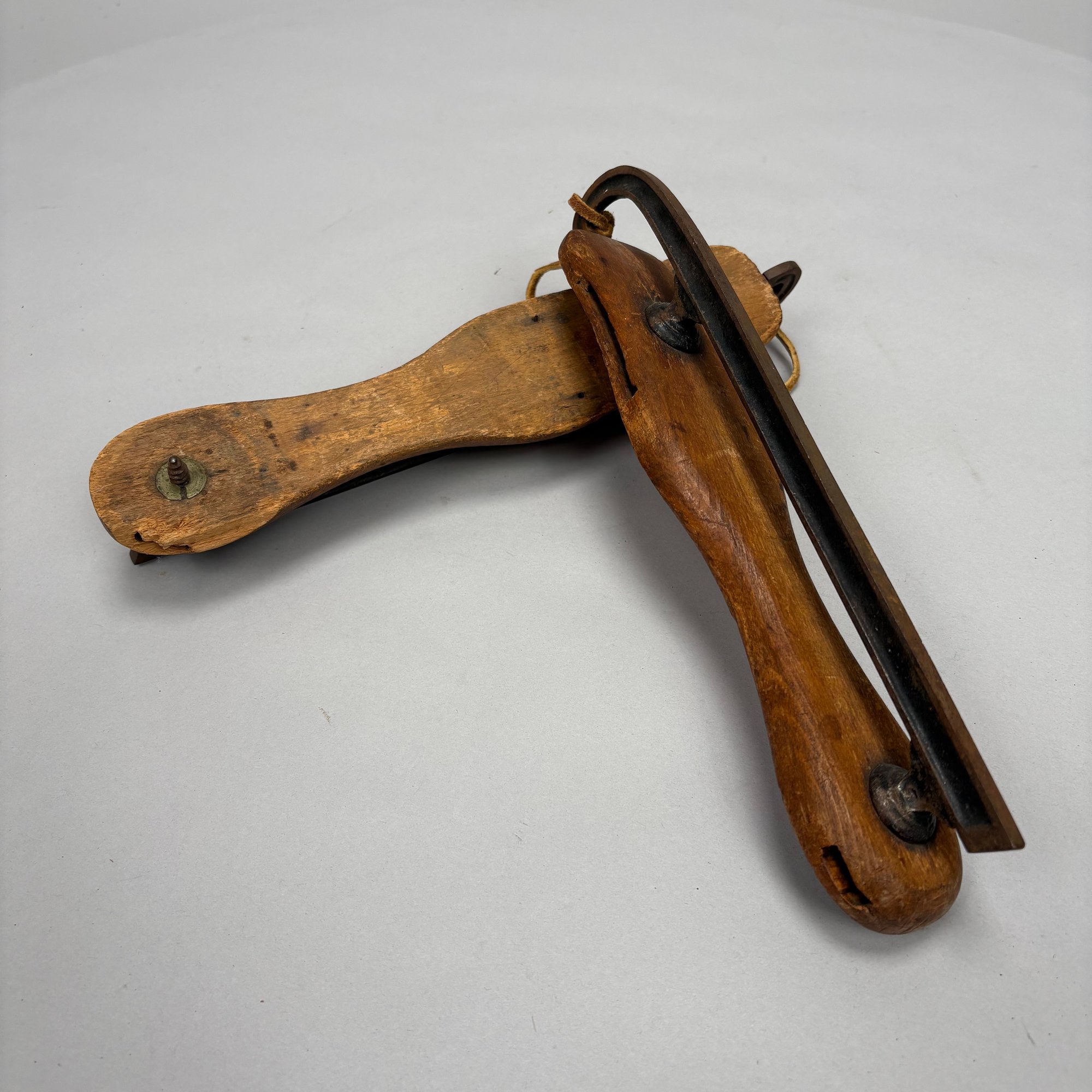 Eight Wood, Cast-Iron, Mesh and Glass Country Items, 19th and 20th Century. Comprising a pair of ice skates with screw-in heels, an iron, a bellows, set of four graduated food covers and a "RED STAR APPLES" advertisement.
