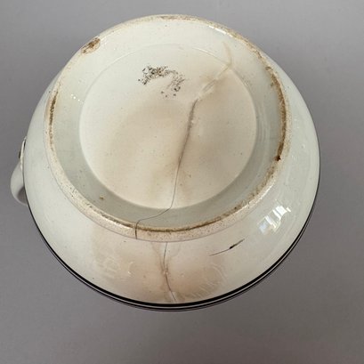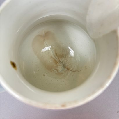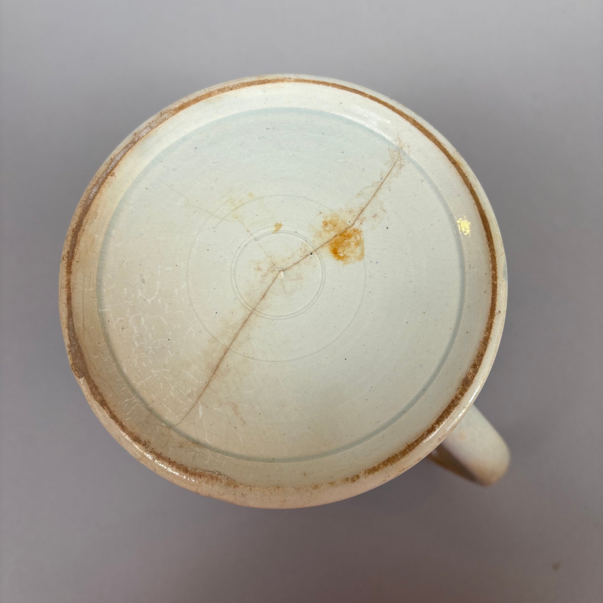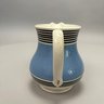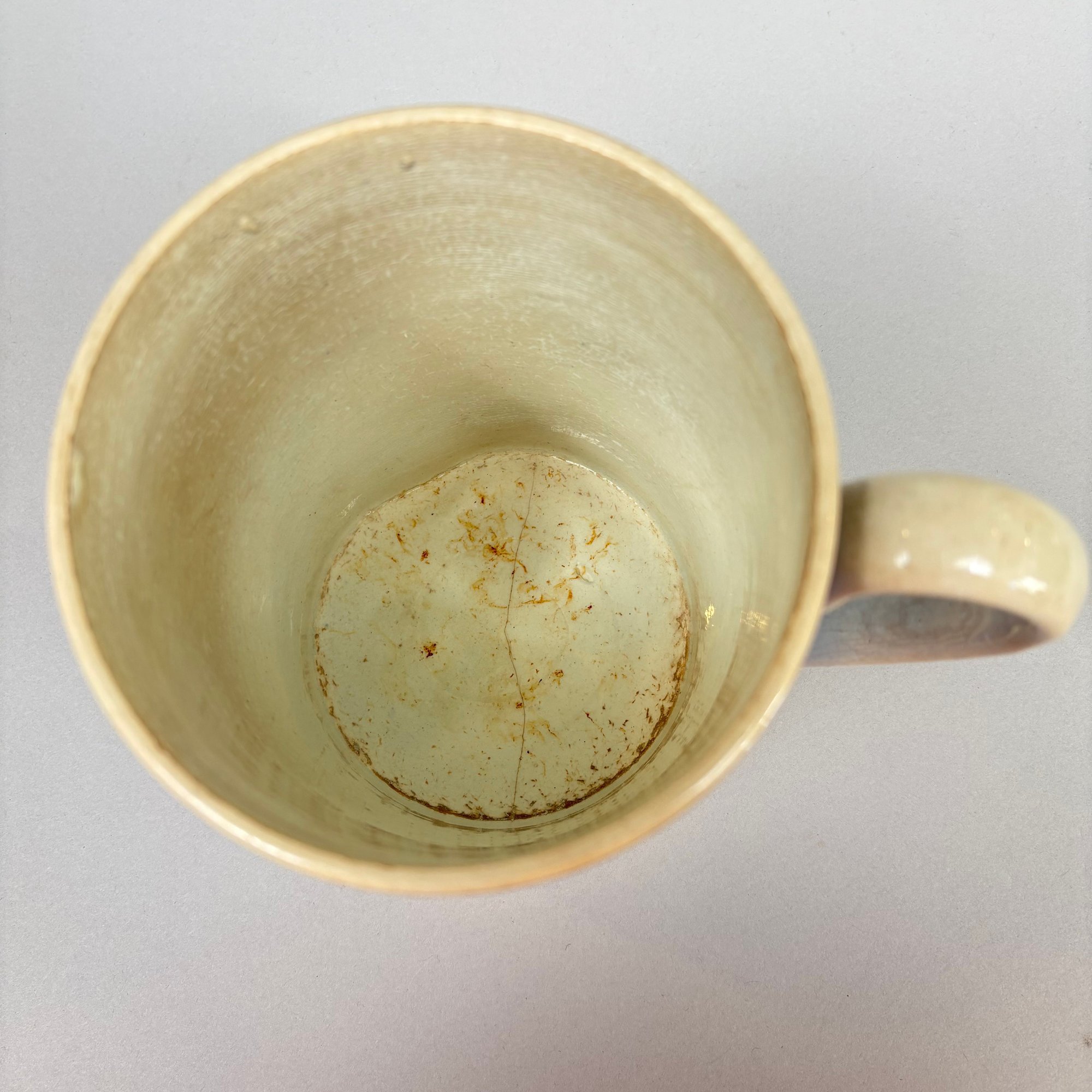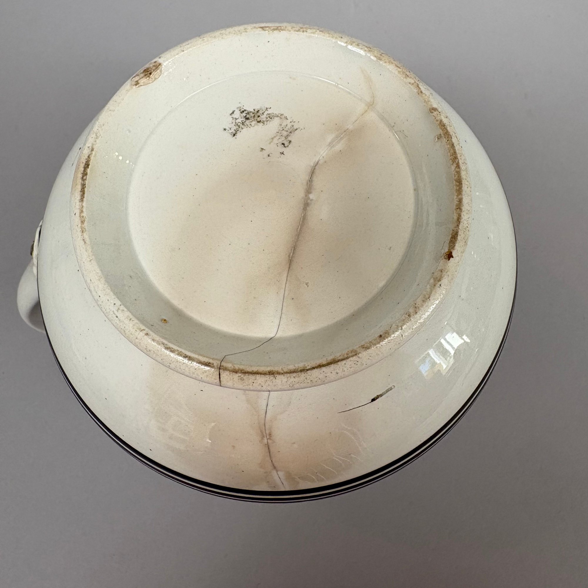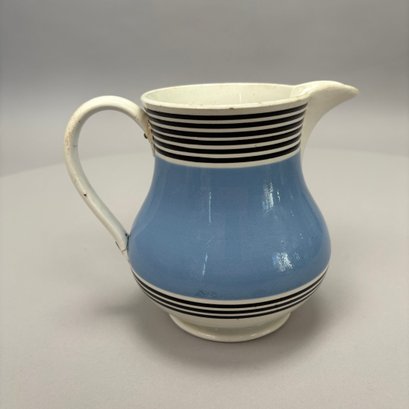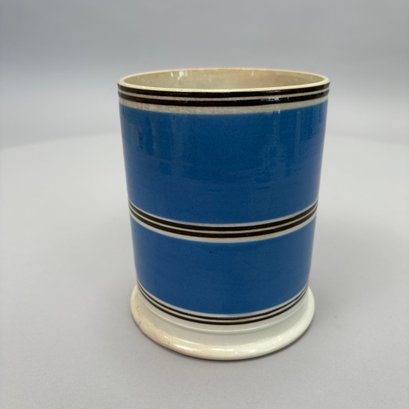 English Pearlware Mochaware Mug and a Whiteware Pitcher, 19th Century. Each slip-banded in blue within dark brown bands.
