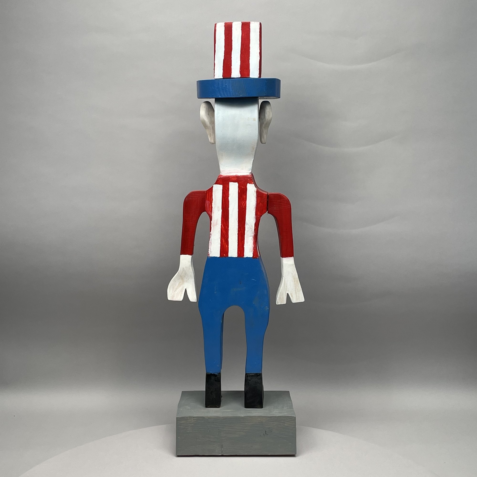 George Hardy (Deer Isle, Maine, 1917-2003). Folk Art Carved and Painted Pine Figure of Uncle Sam, Late 20th Century. Stamped "HARDY" on the front of the base.